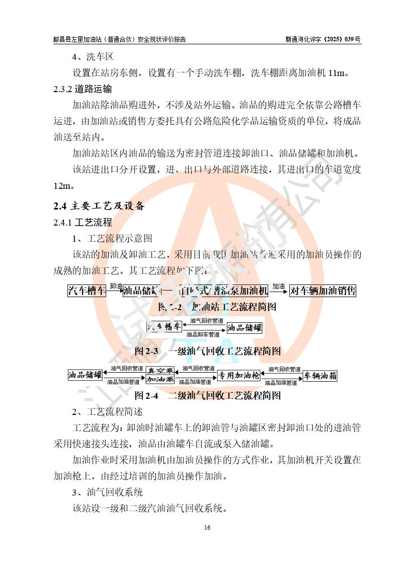 项目简介 | 都昌县左里加油站(普通合伙)是一家专门从事成品油零售经营的普通合伙企业,执行事务合伙人:付玉华,周满福,经营场所位于江西省九江市都昌县左里镇左里街。该加油站现有从业人员4人,其中安全管理人员1人,主要负责人蔡建荣。 该加油站站区占地面积1927m2,站区内设置有3台双枪程控燃油加油机、1台单枪程控燃油加油机及配套的工艺管线、30m3双层0#柴油储罐2台、30m3双层92#汽油储罐1台、20m3双层95#汽油储罐1台,油品储罐总容积为110m3(折算成汽油为80m3)。按现行《汽车加油加气加氢站技术标准》对加油站的等级划分原则,该站属于三级加油站。 该站由九江市行政审批局换发《危险化学品经营许可证》(证号:赣九行审经(甲)字[2022]000088号),**期限2022年07月03日至2025年07月02日 | |||