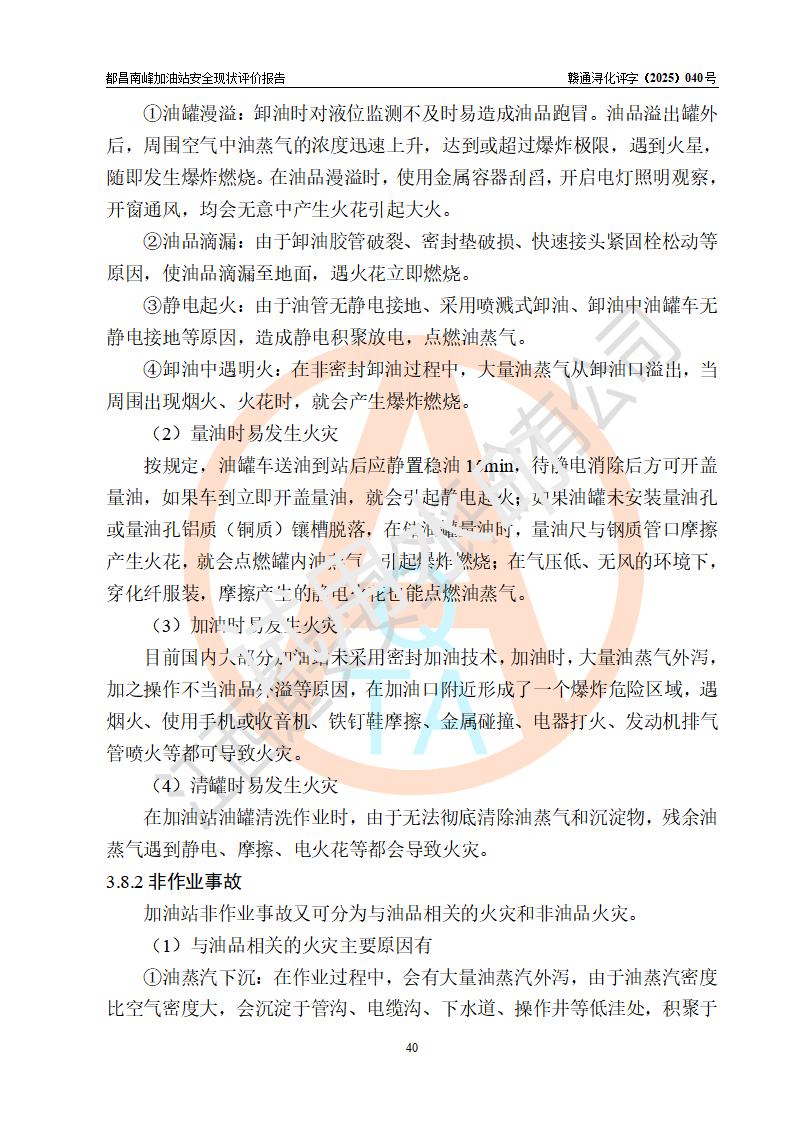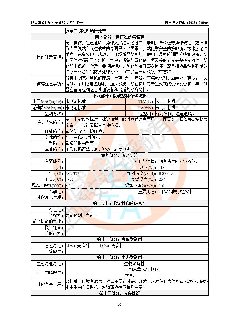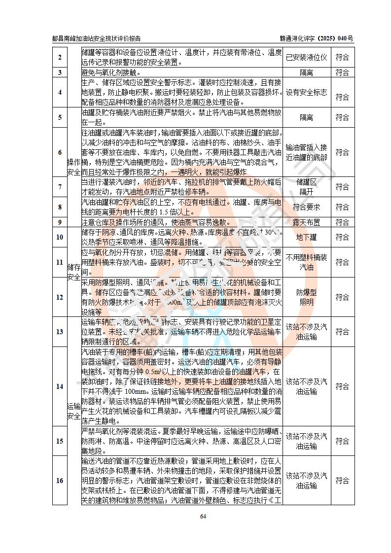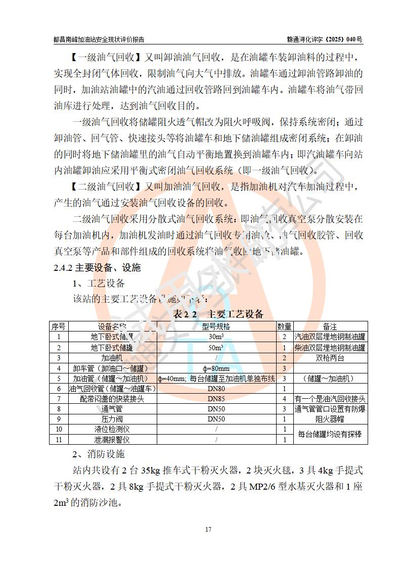 都昌南峰加油站是一家专门从事成品油零售经营的个人独资企业,投资人冯上生,经营场所位于都昌县南峰镇南峰街。该加油站现有从业人员4人,其中安全管理人员1人,主要负责人冯肖肖。 该加油站占地面积约520m2,站区内设置有2台双枪程控燃油加油机及配套的工艺管线、50m3双层0#柴油储罐1台、30m3双层92#汽油储罐1台、30m3双层95#汽油储罐1台,油品储罐总容积为110m3(折算成汽油为85m3),。按现行《汽车加油加气加氢站技术标准》对加油站的等级划分原则,该站属于三级加油站。 该站由九江市行政审批局换发《危险化学品经营许可证》(证号:赣九行审经(甲)字[2022]000075号),**期限2022年06月24日至2025年06月23日。 |