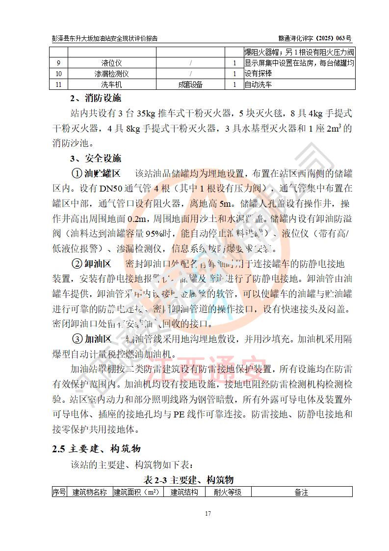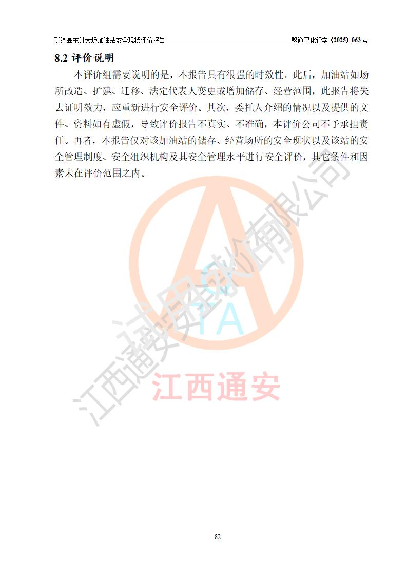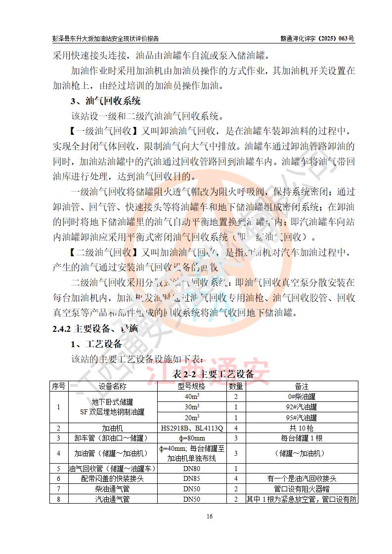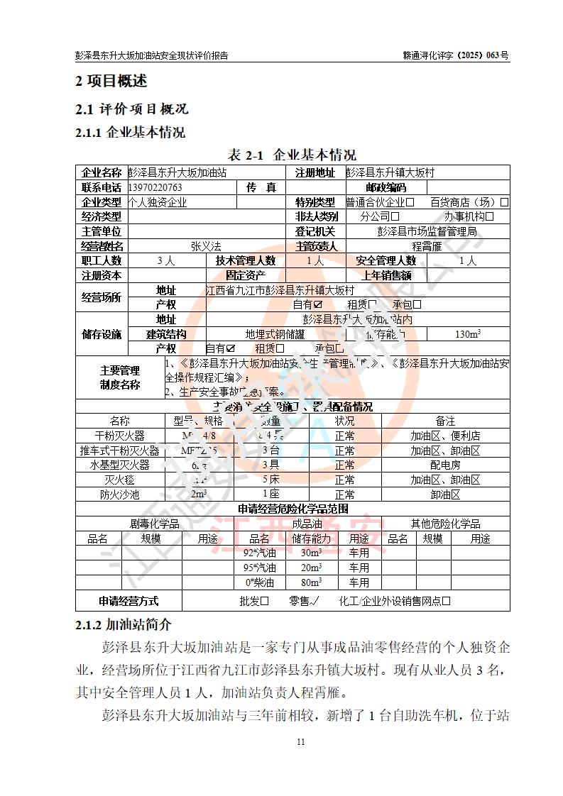 评价报告名称 | 彭泽县东升大坂加油站安全现状评价报告 | |||