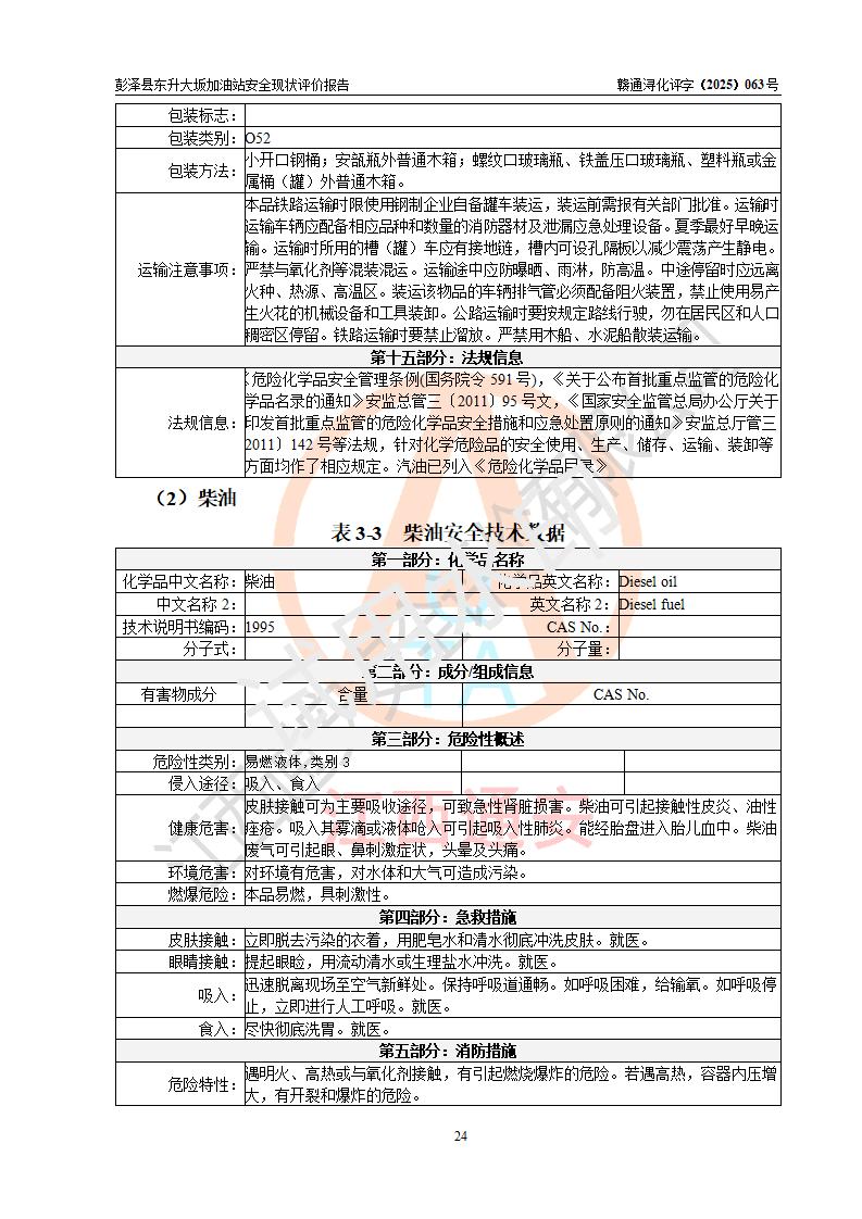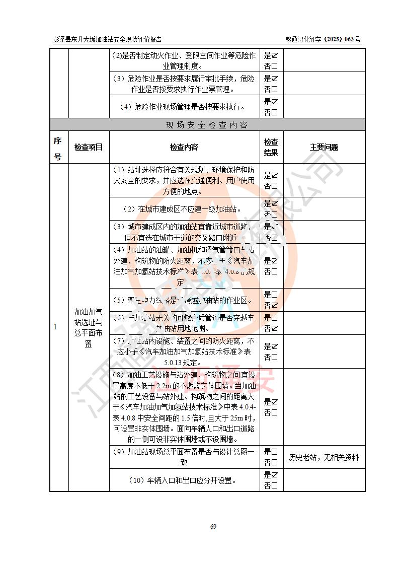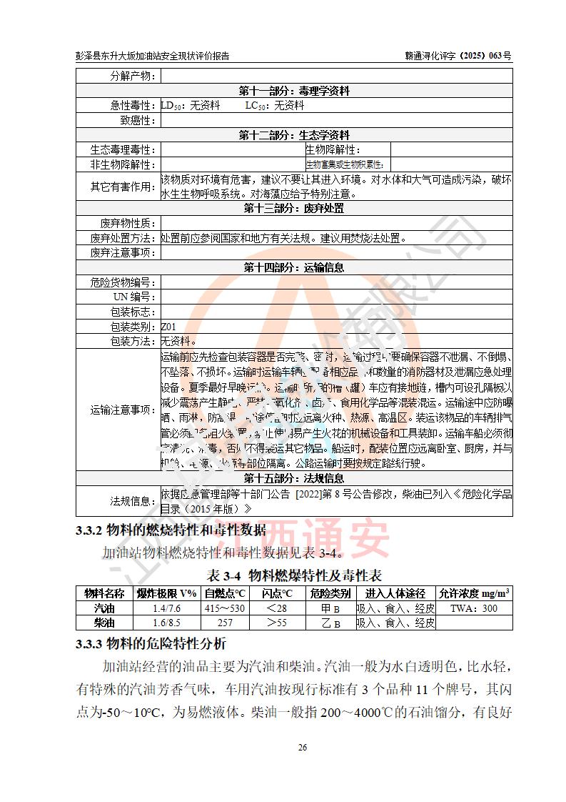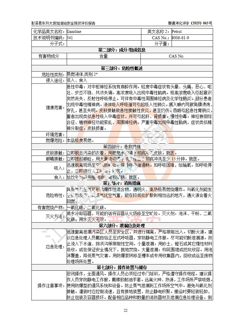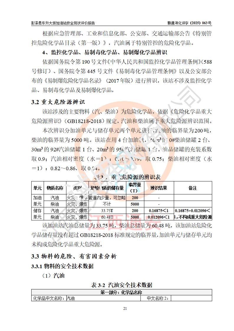 评价报告名称 | 彭泽县东升大坂加油站安全现状评价报告 | |||