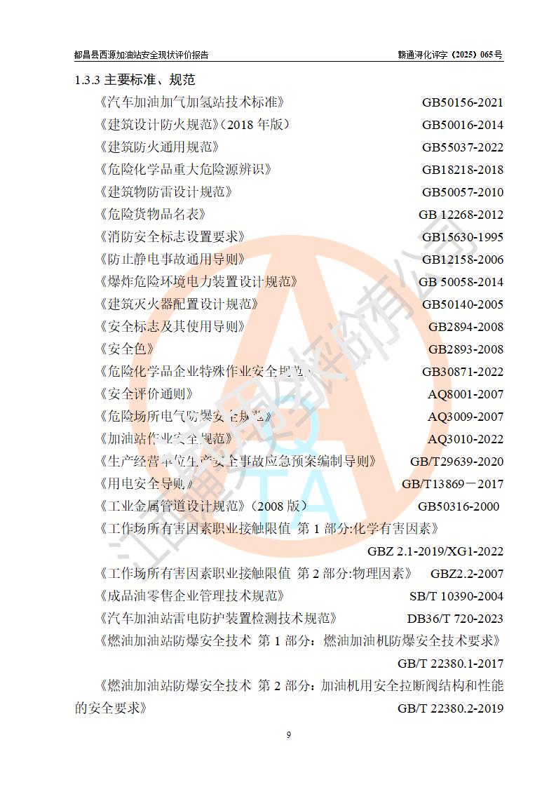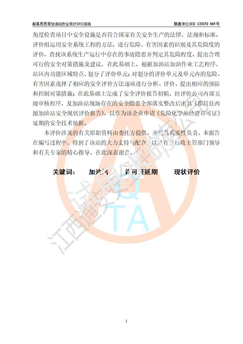 评价报告名称 | 都昌县西源加油站安全现状评价报告 | |||