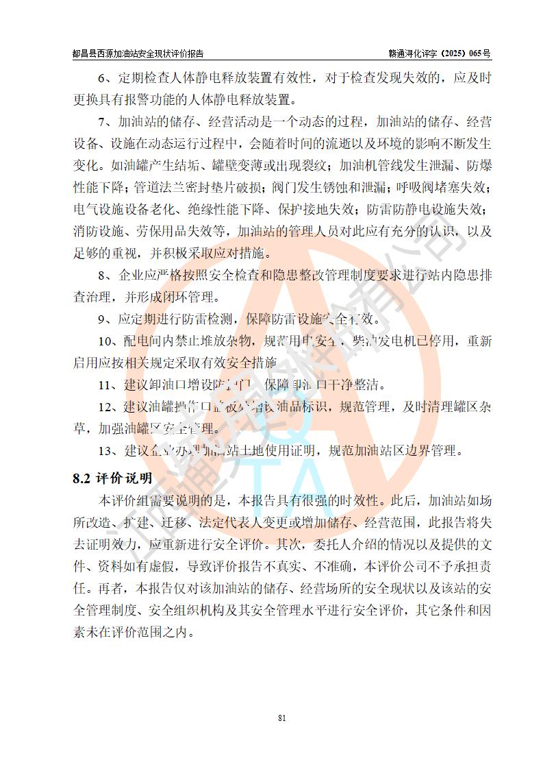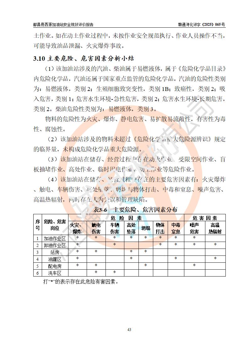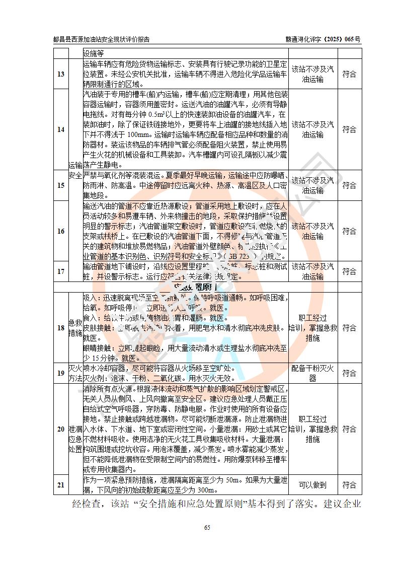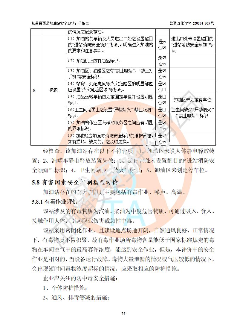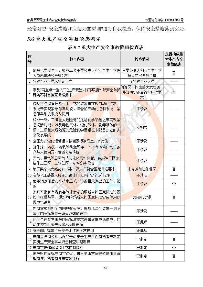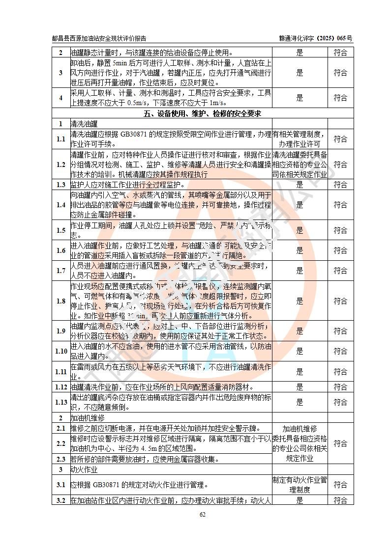 评价结论 | 都昌县西源加油站涉及的安全条件、安全经营条件、安全生产管理符合《危险化学品经营许可证管理办法》、《汽车加油加气加氢站技术标准》等**有关法规、标准、规范要求,能满足危险化学品经营安全条件。 | |||
