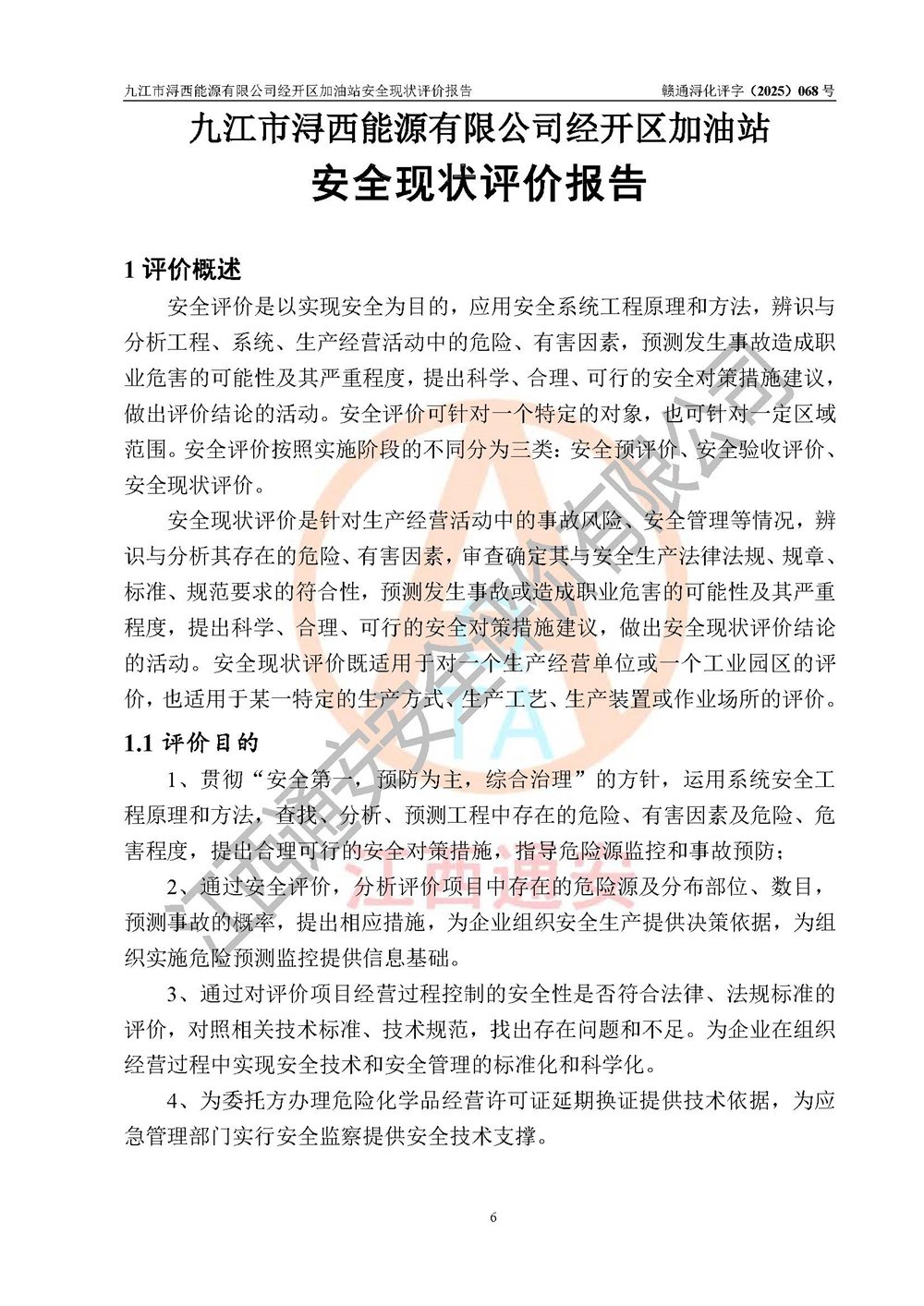 评价报告名称 | 九江市浔西能源有限公司经开区加油站安全现状评价报告 | |||