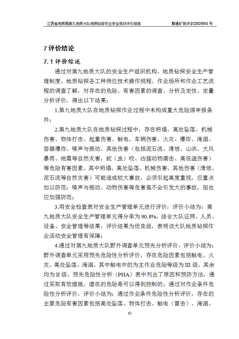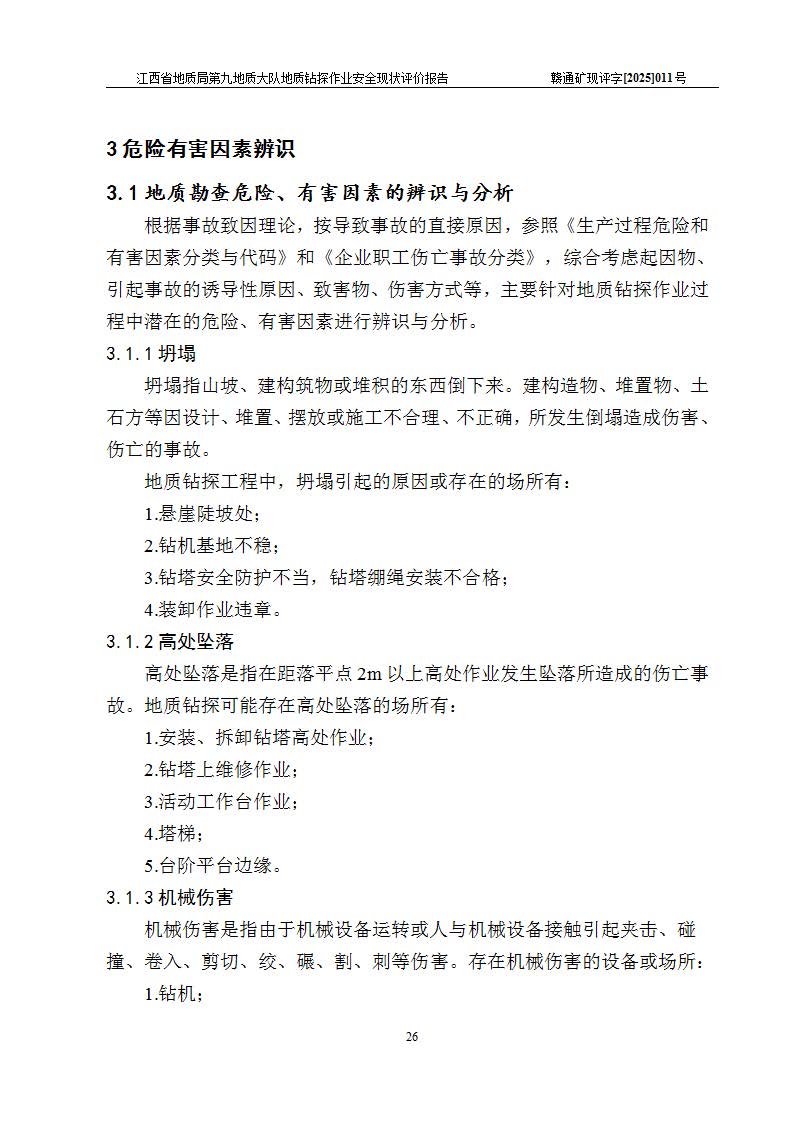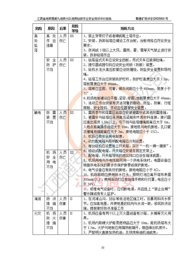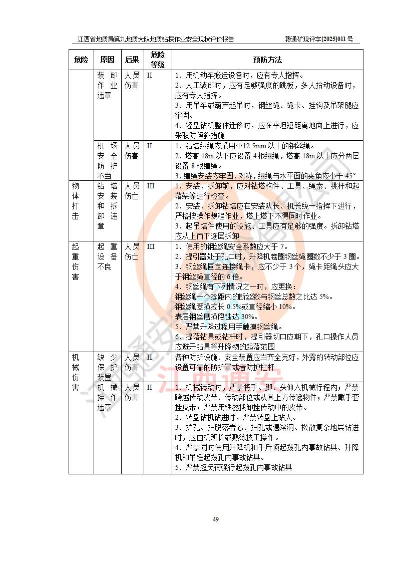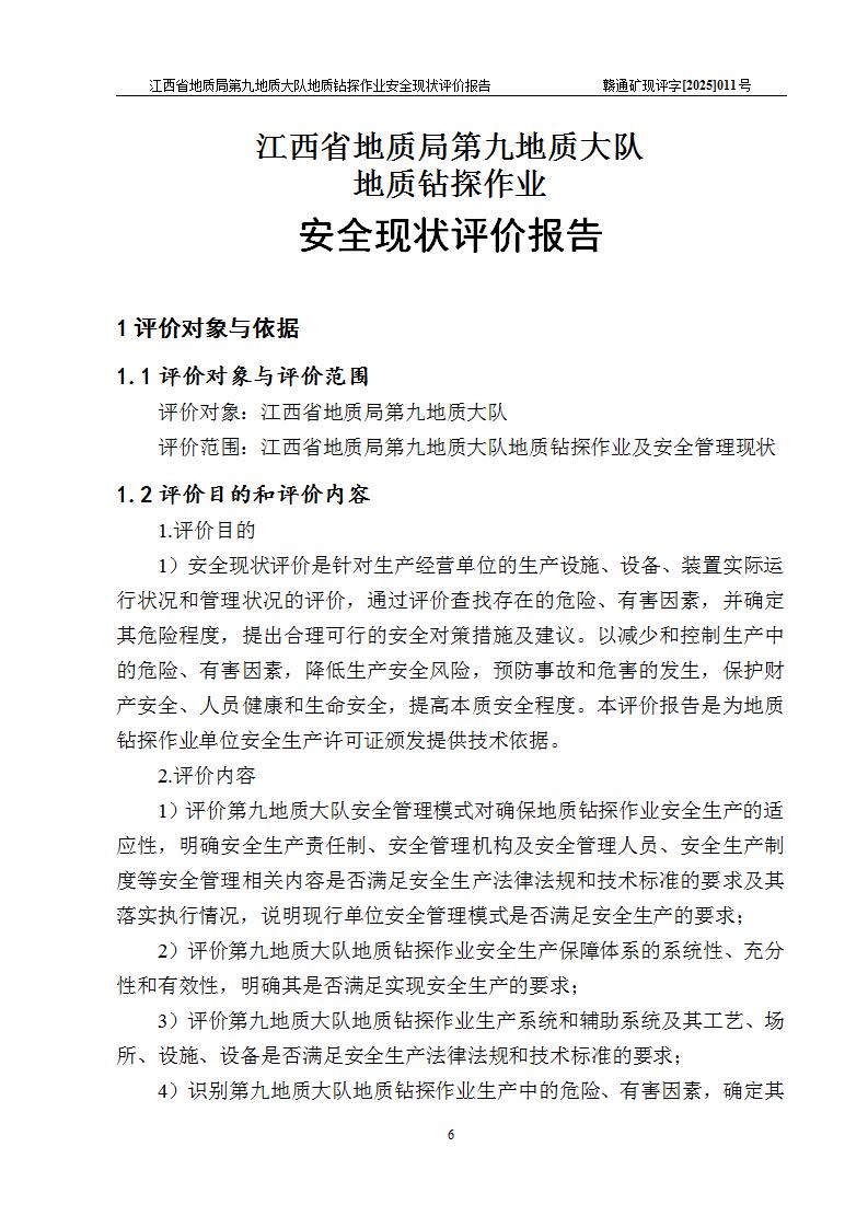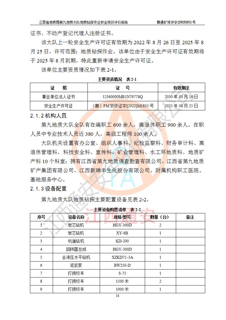 报告名称 | 江西省地质局第九地质大队地质钻探作业安全现状评价报告 | |||||