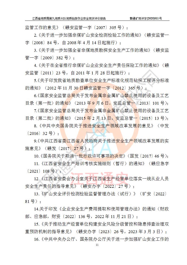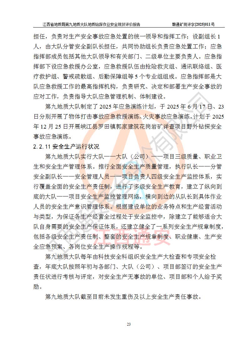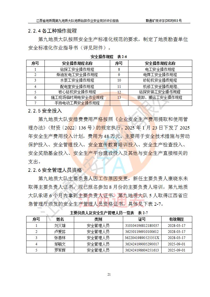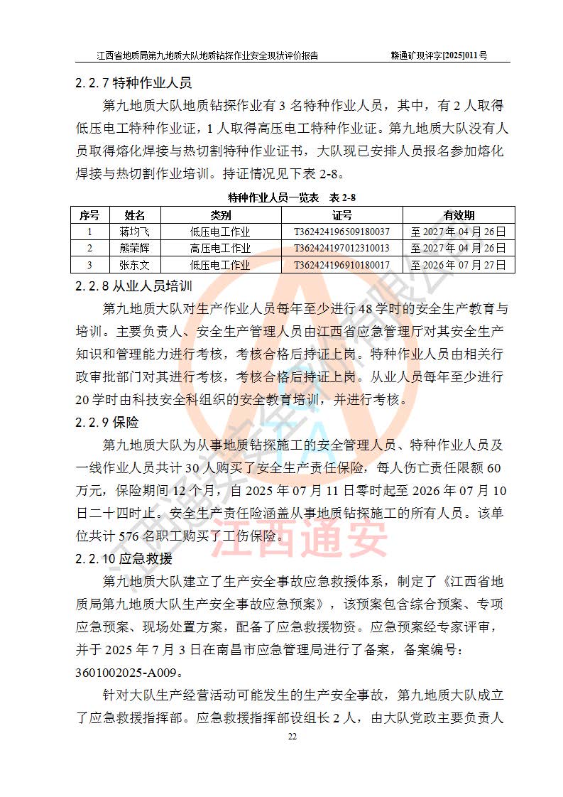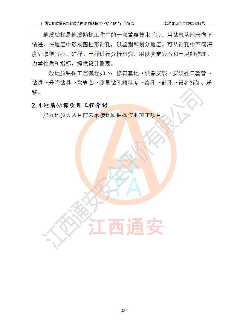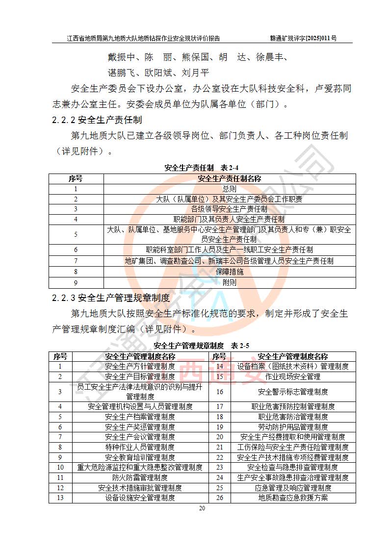 报告名称 | 江西省地质局第九地质大队地质钻探作业安全现状评价报告 | |||||