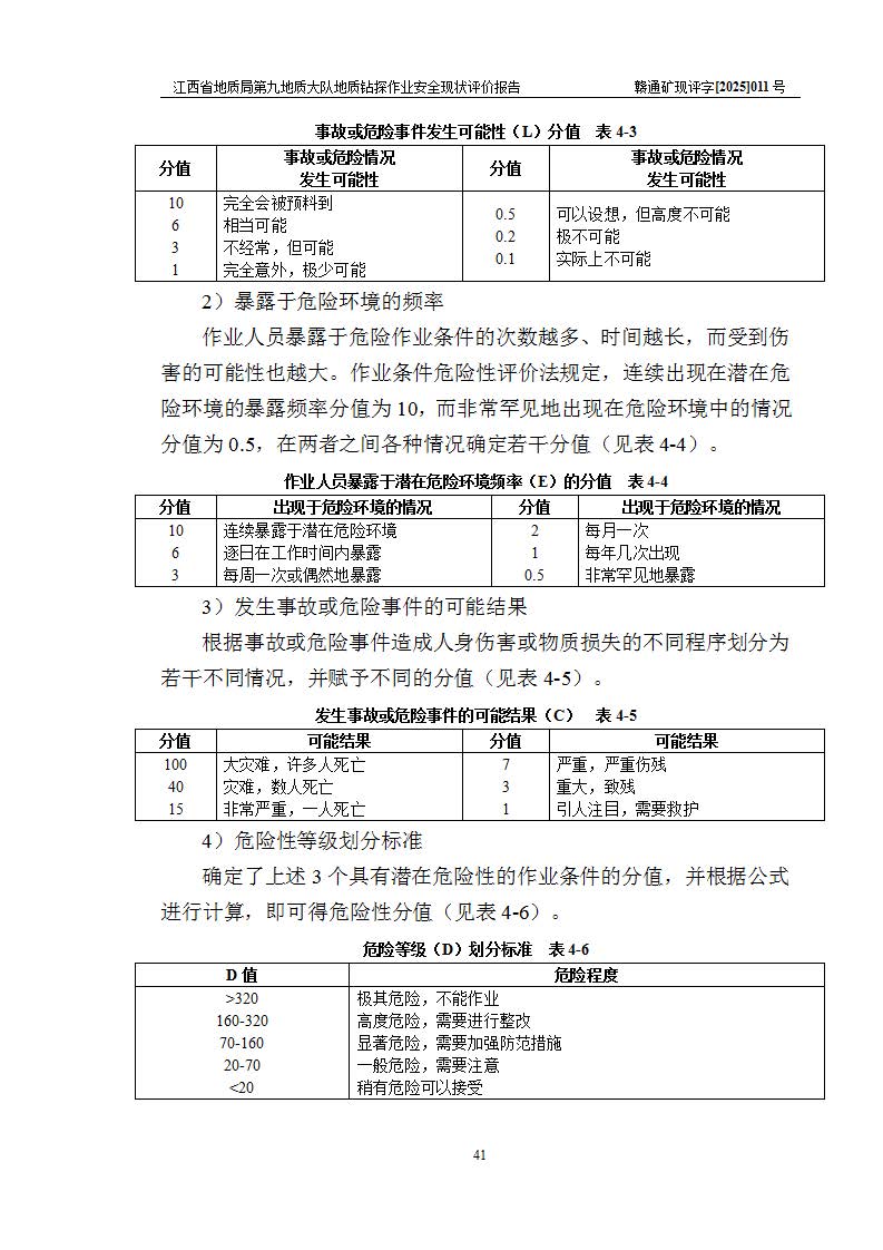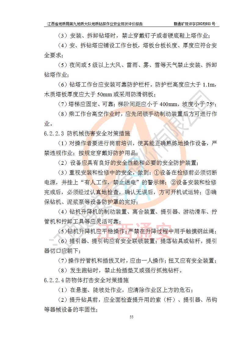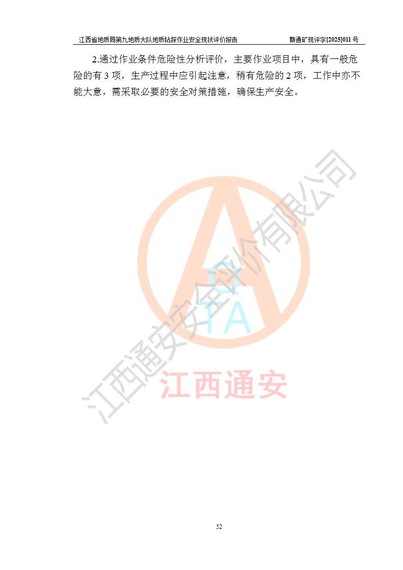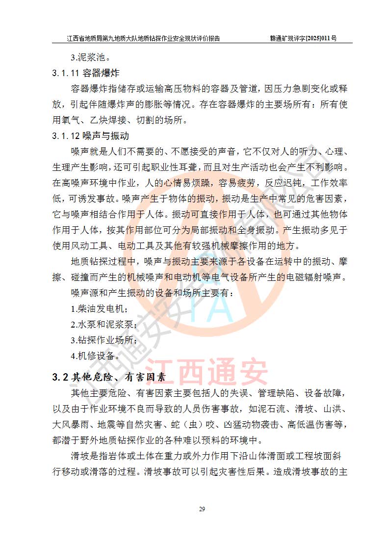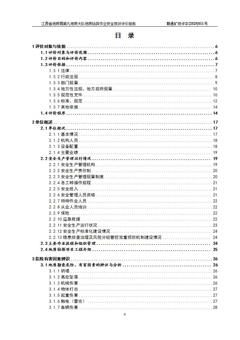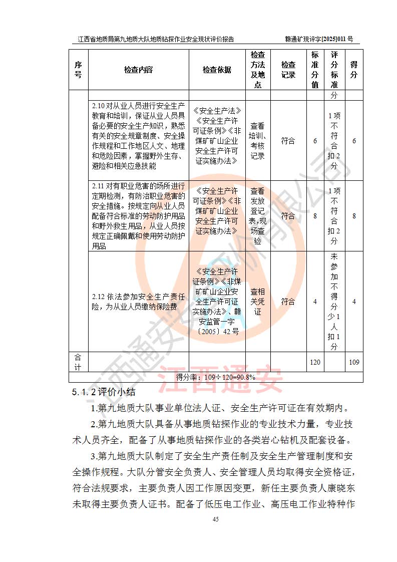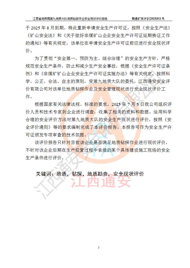 报告名称 | 江西省地质局第九地质大队地质钻探作业安全现状评价报告 | |||||