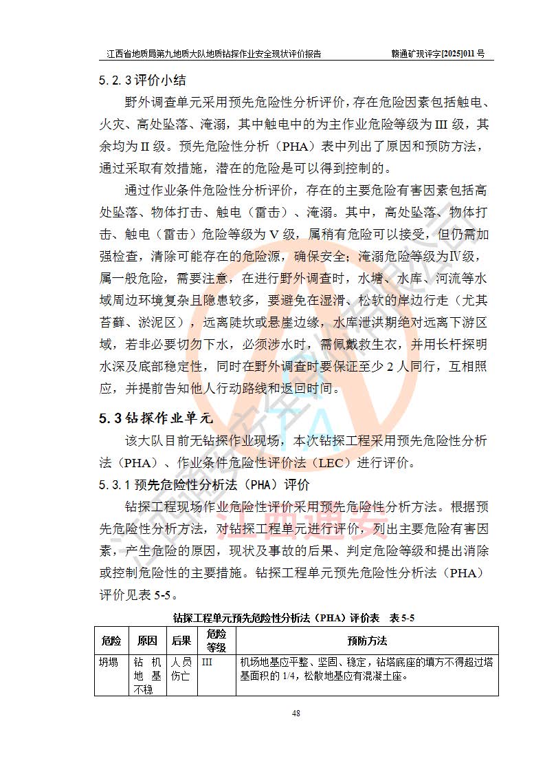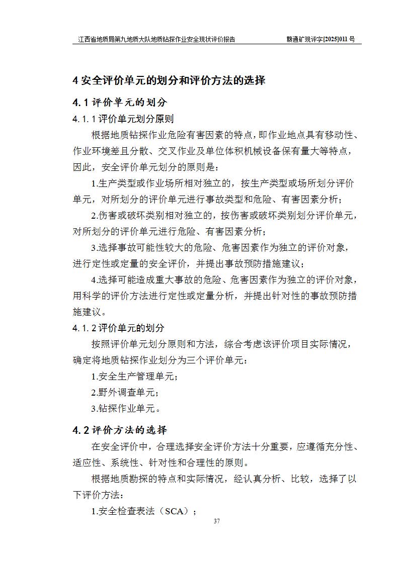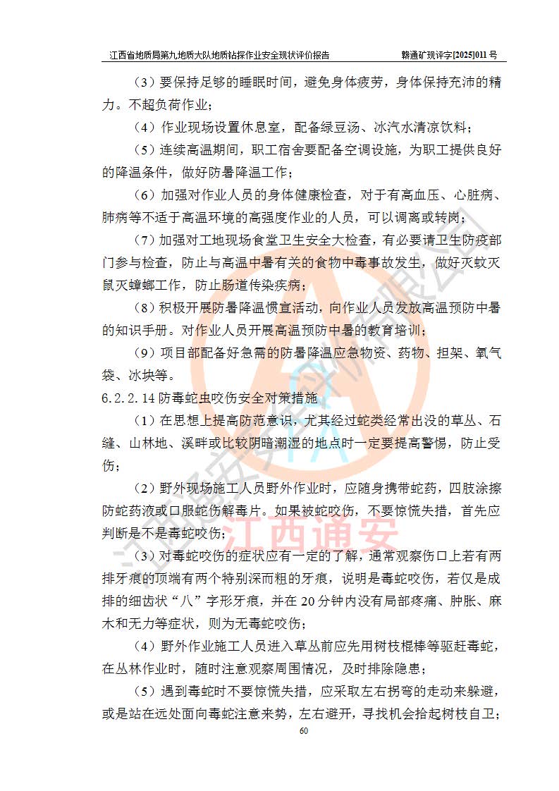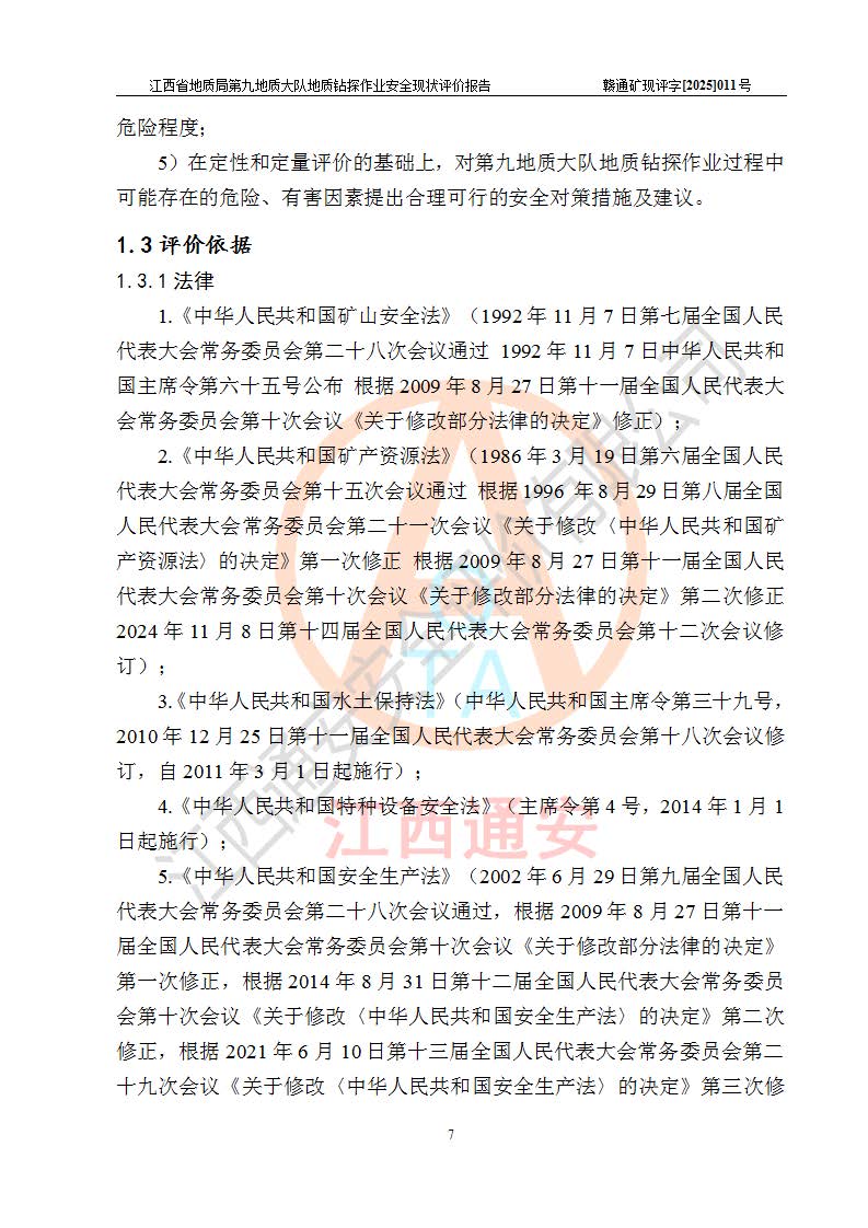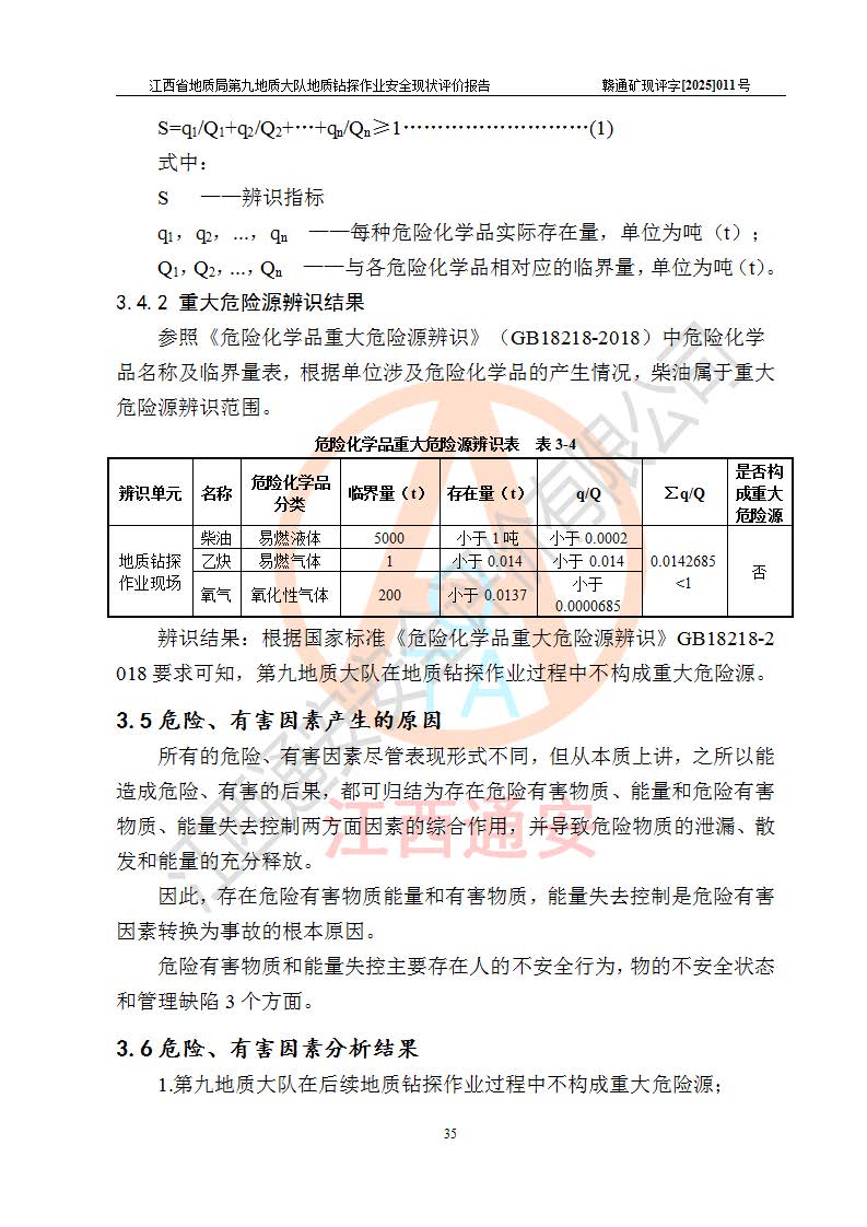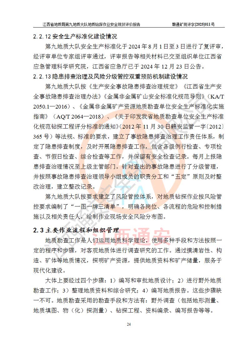 报告名称 | 江西省地质局第九地质大队地质钻探作业安全现状评价报告 | |||||