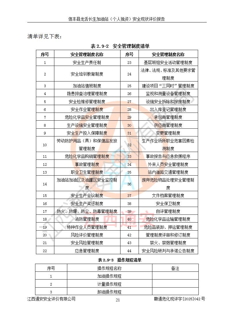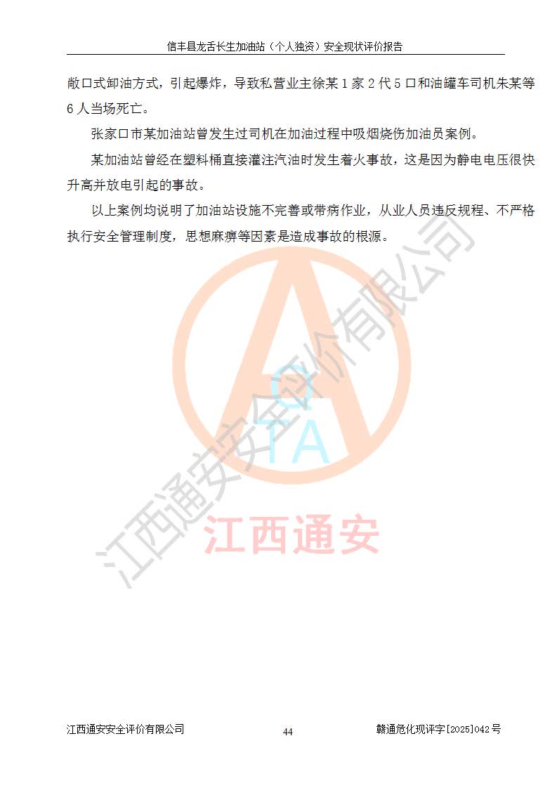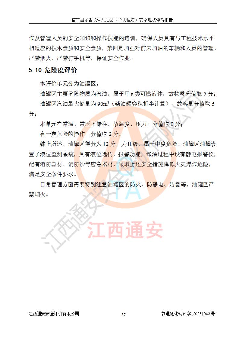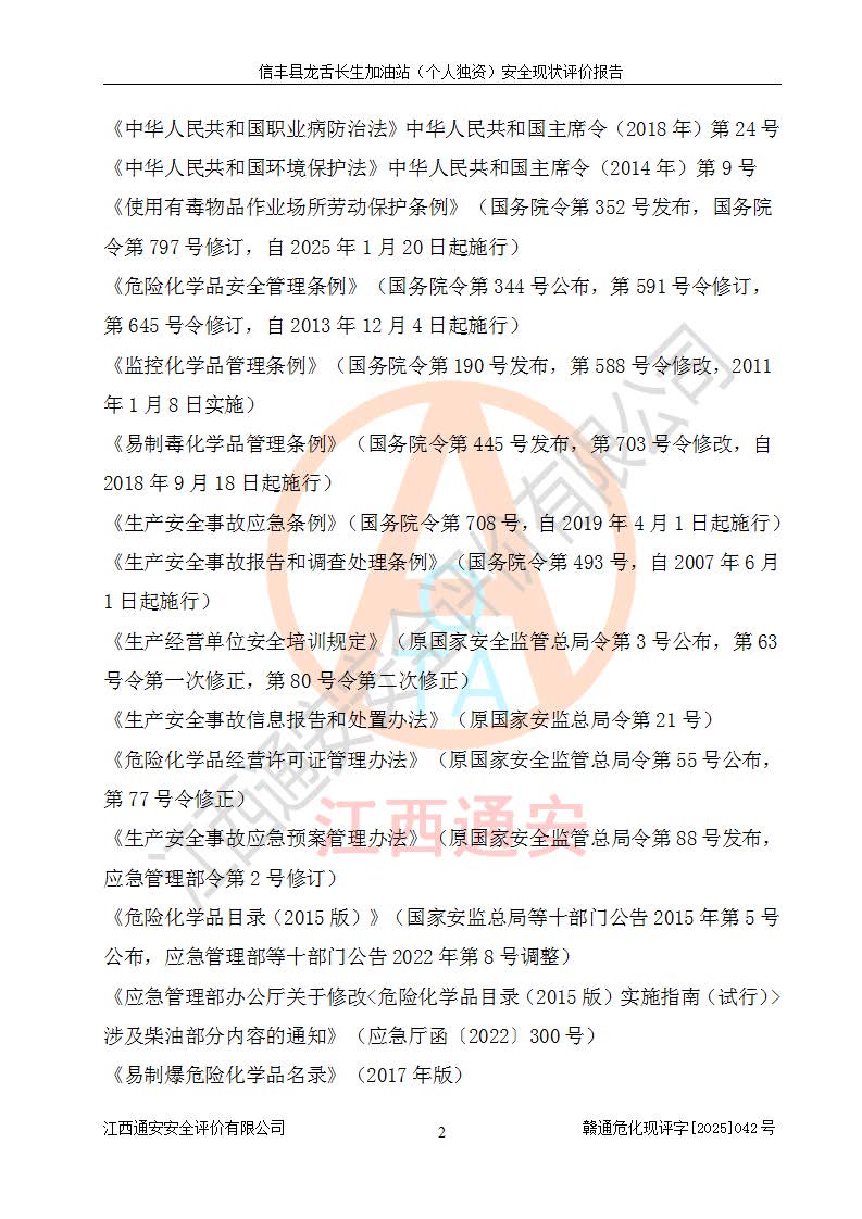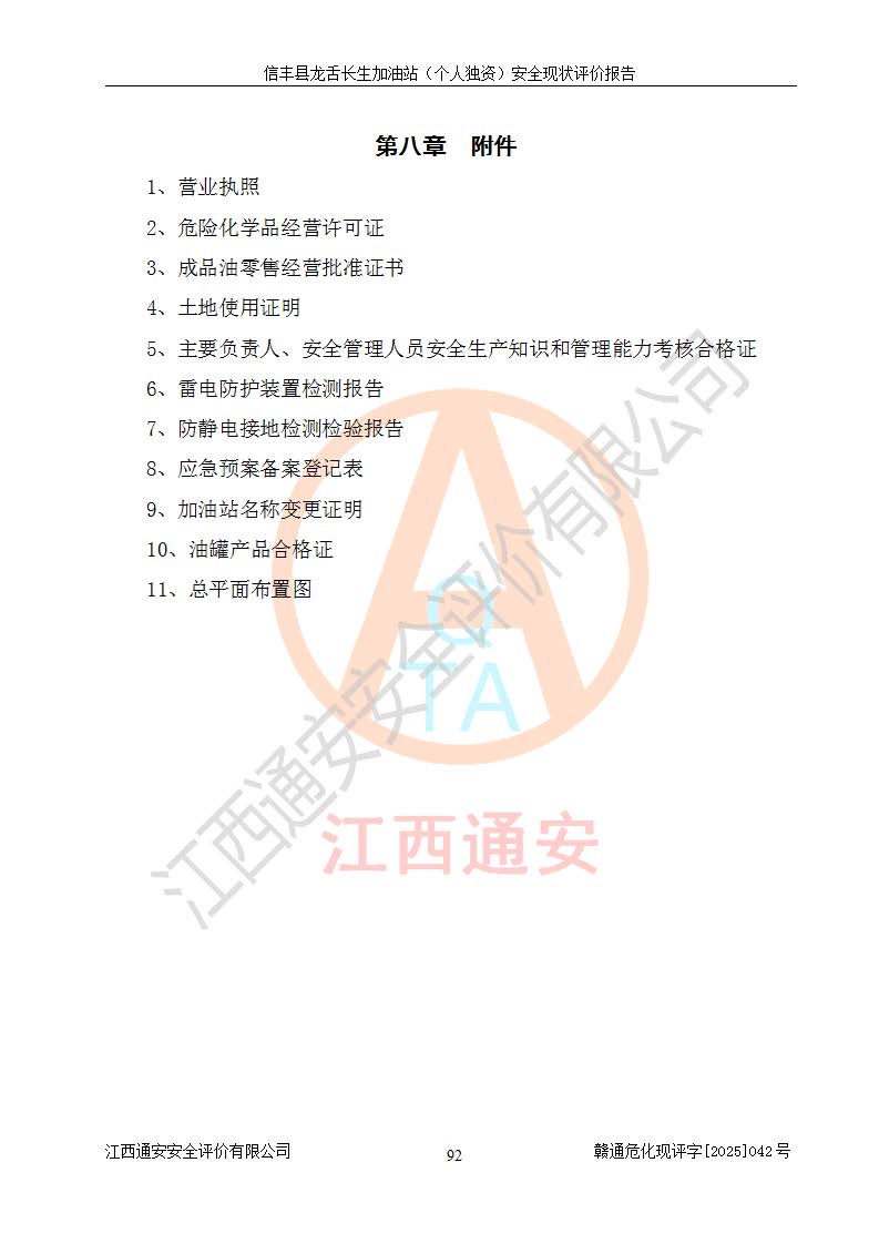 评价报告名称 | 信丰县龙舌长生加油站(个人独资)安全现状评价报告 | |||