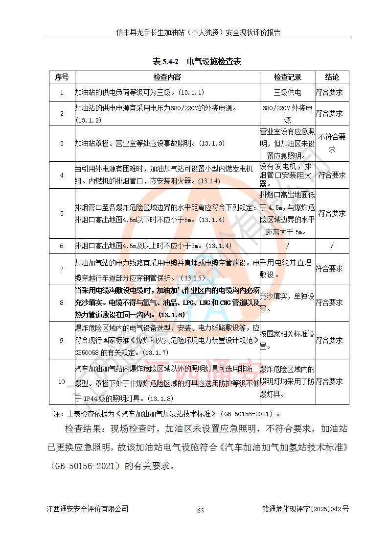 勘察现场发现的问题及安全对策措施 | 序号现场存在的问题安全对策措施1加油区未设置应急照明。增加应急照明。