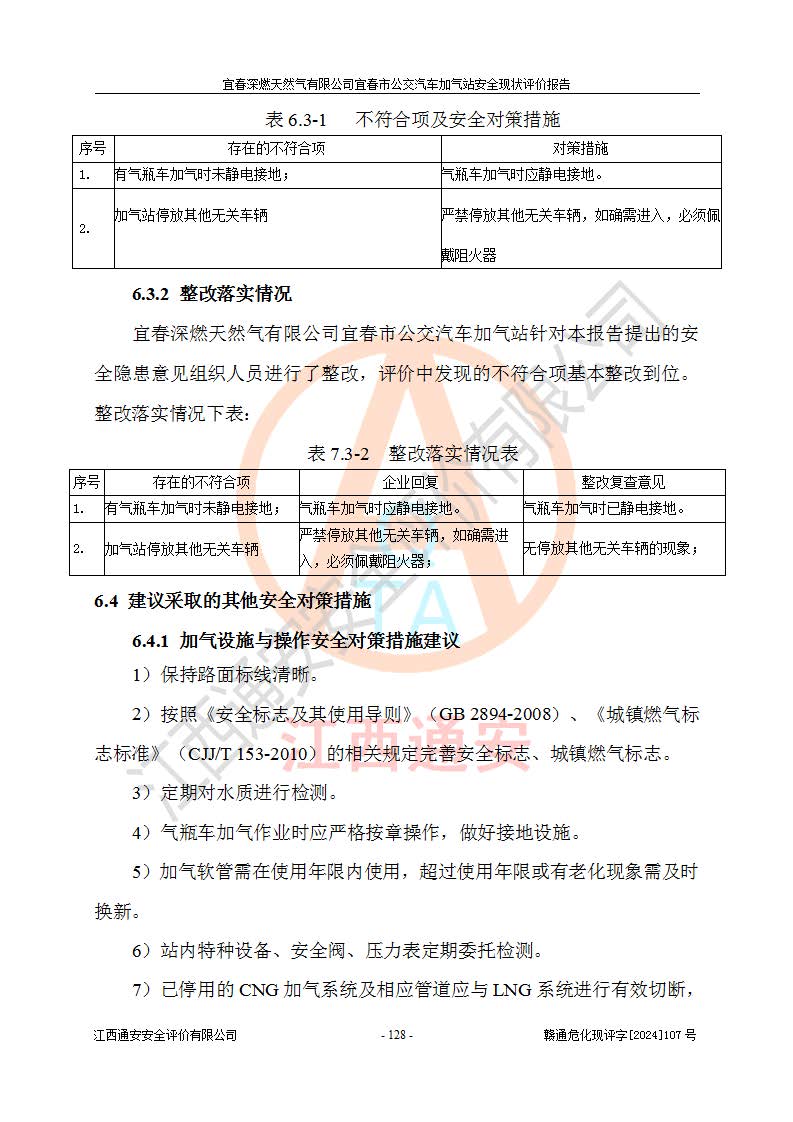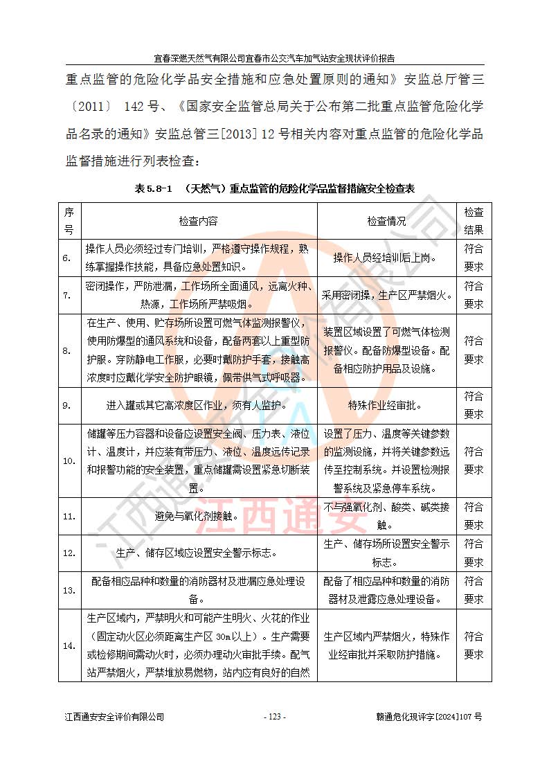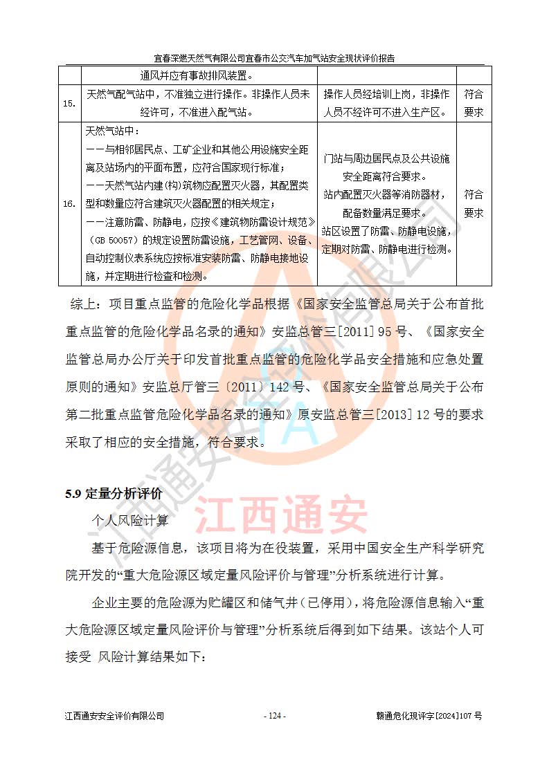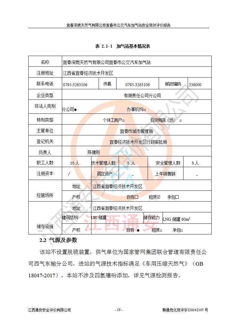 项目名称 | 宜春深燃天然气有限公司宜春市公交汽车加气站安全现状评价报告 | ||||