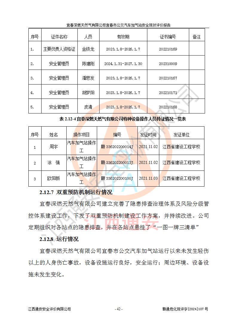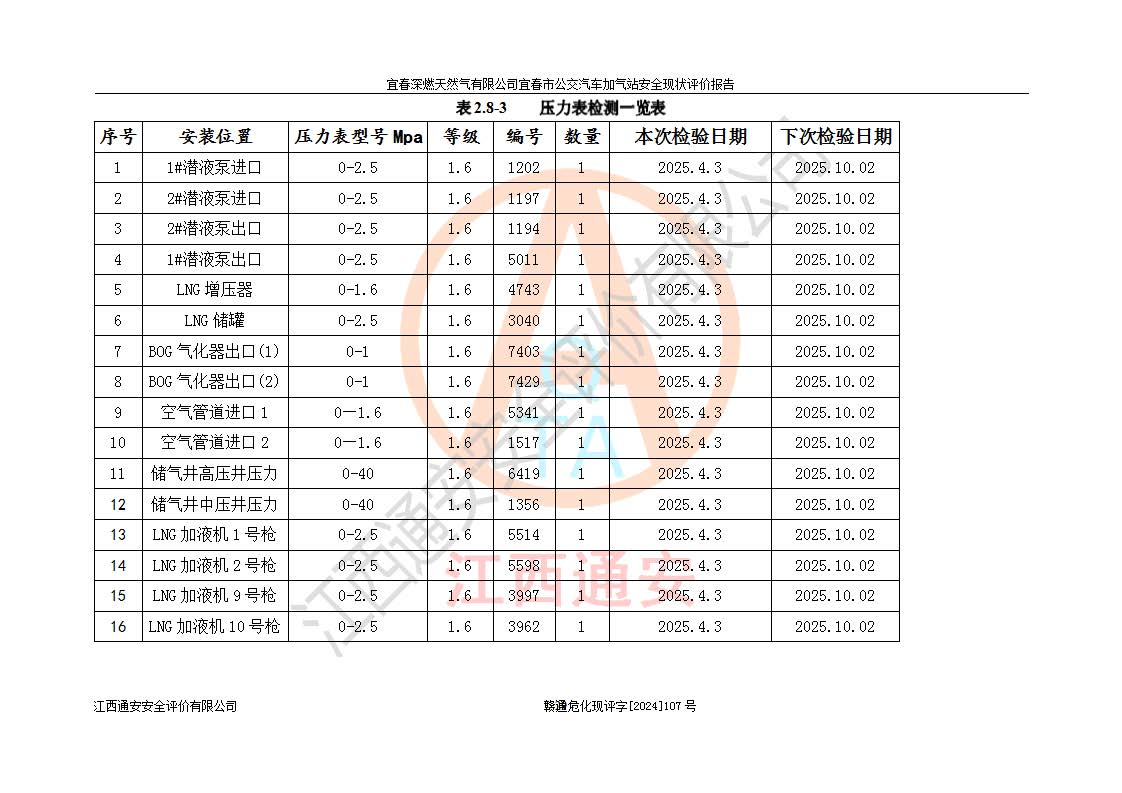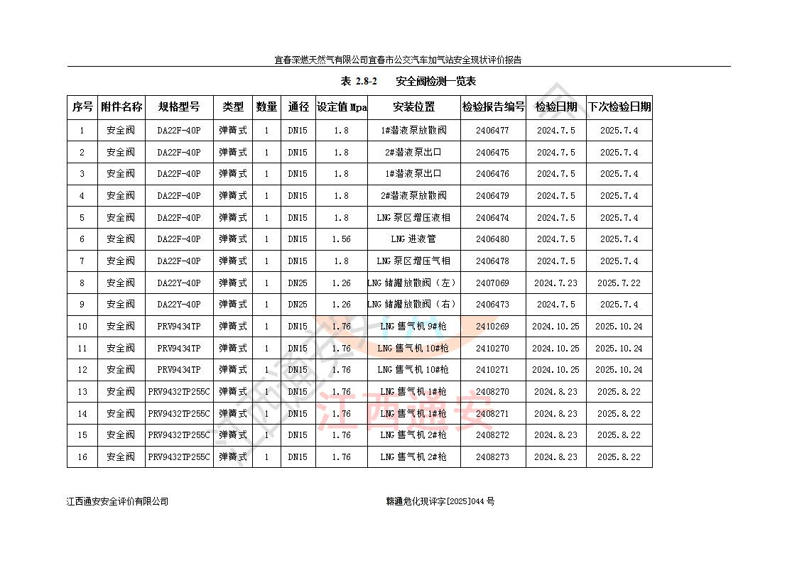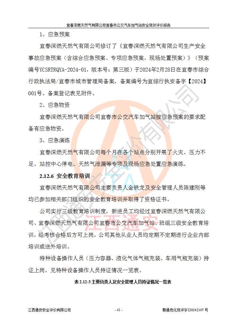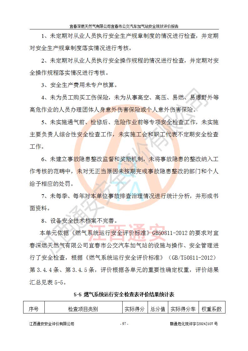 项目名称 | 宜春深燃天然气有限公司宜春市公交汽车加气站安全现状评价报告 | ||||