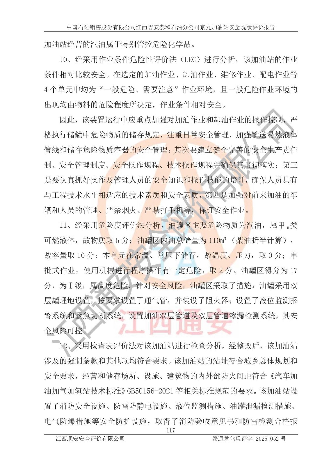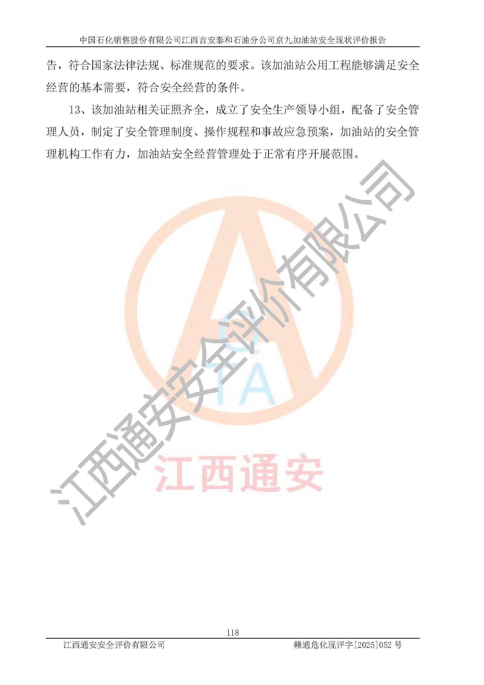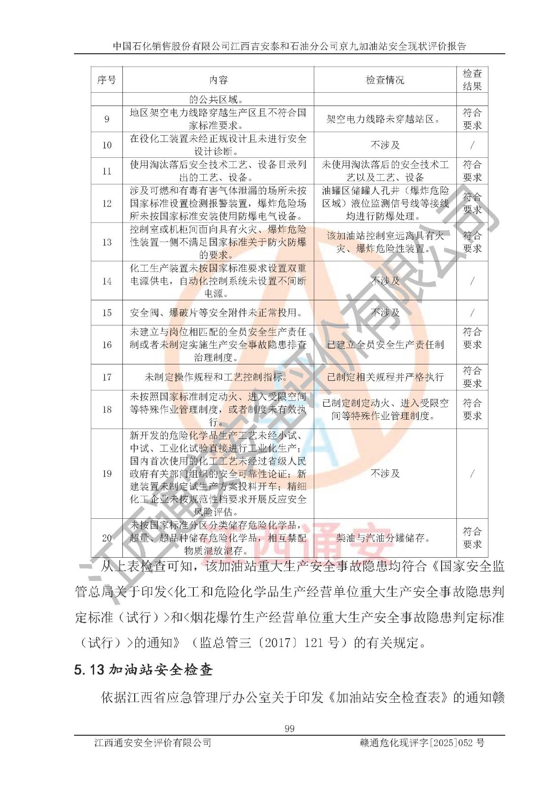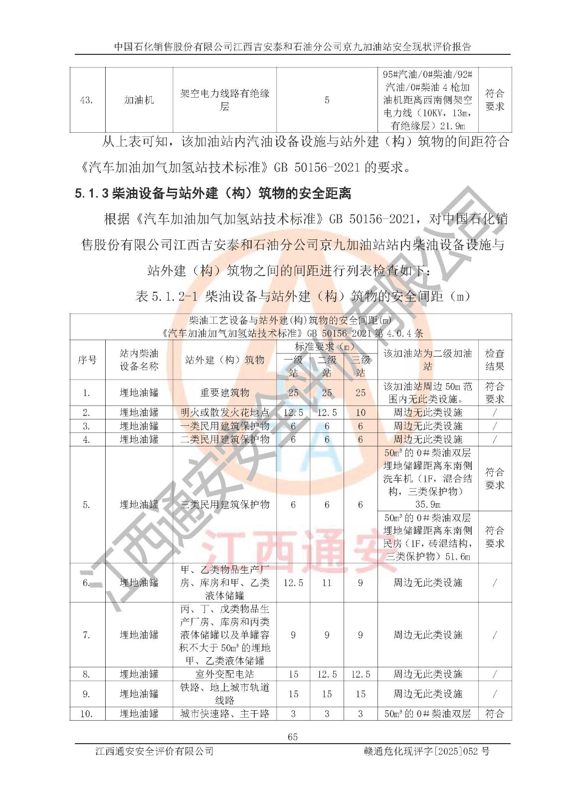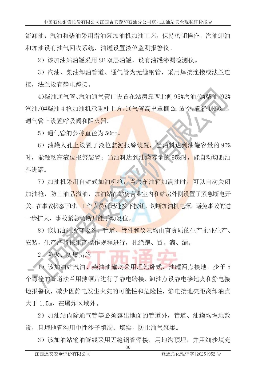 项目名称 | 中国石化销售股份有限公司江西吉安泰和石油分公司京九加油站 安全现状评价报告 | ||||