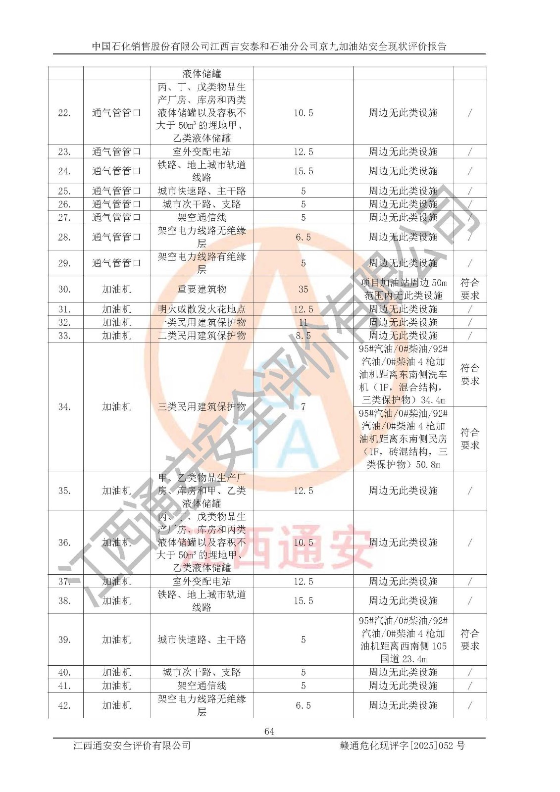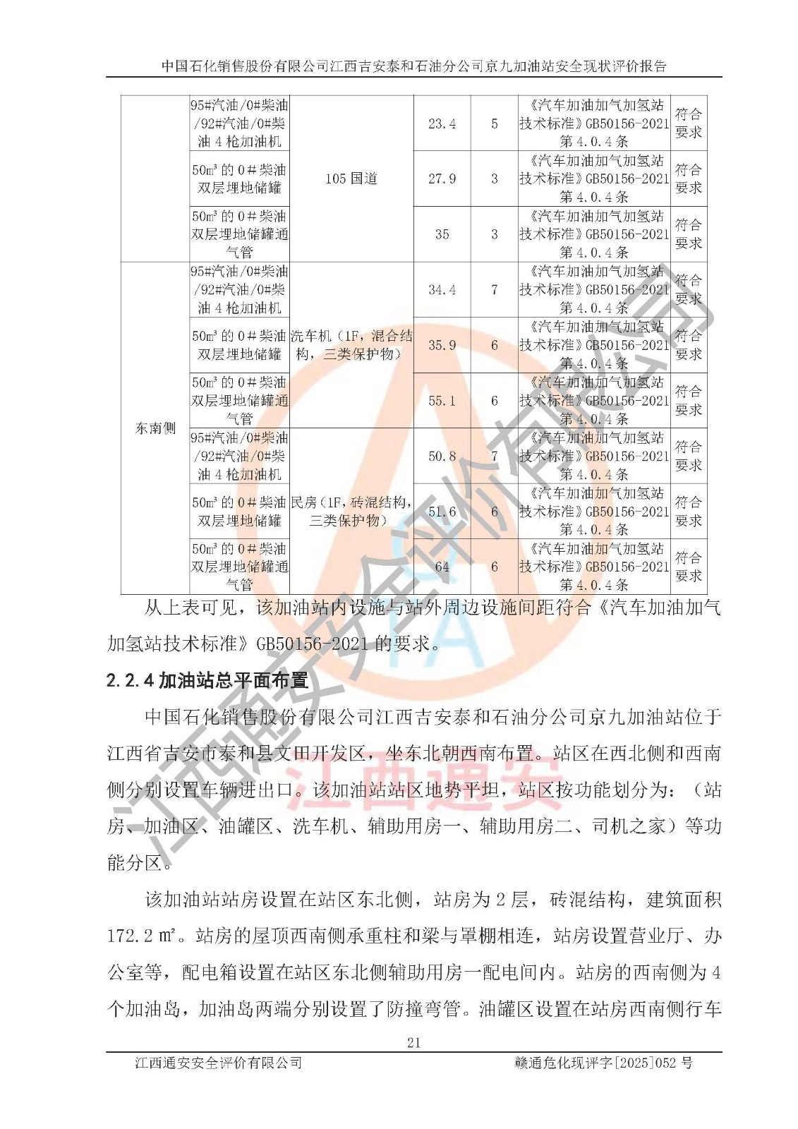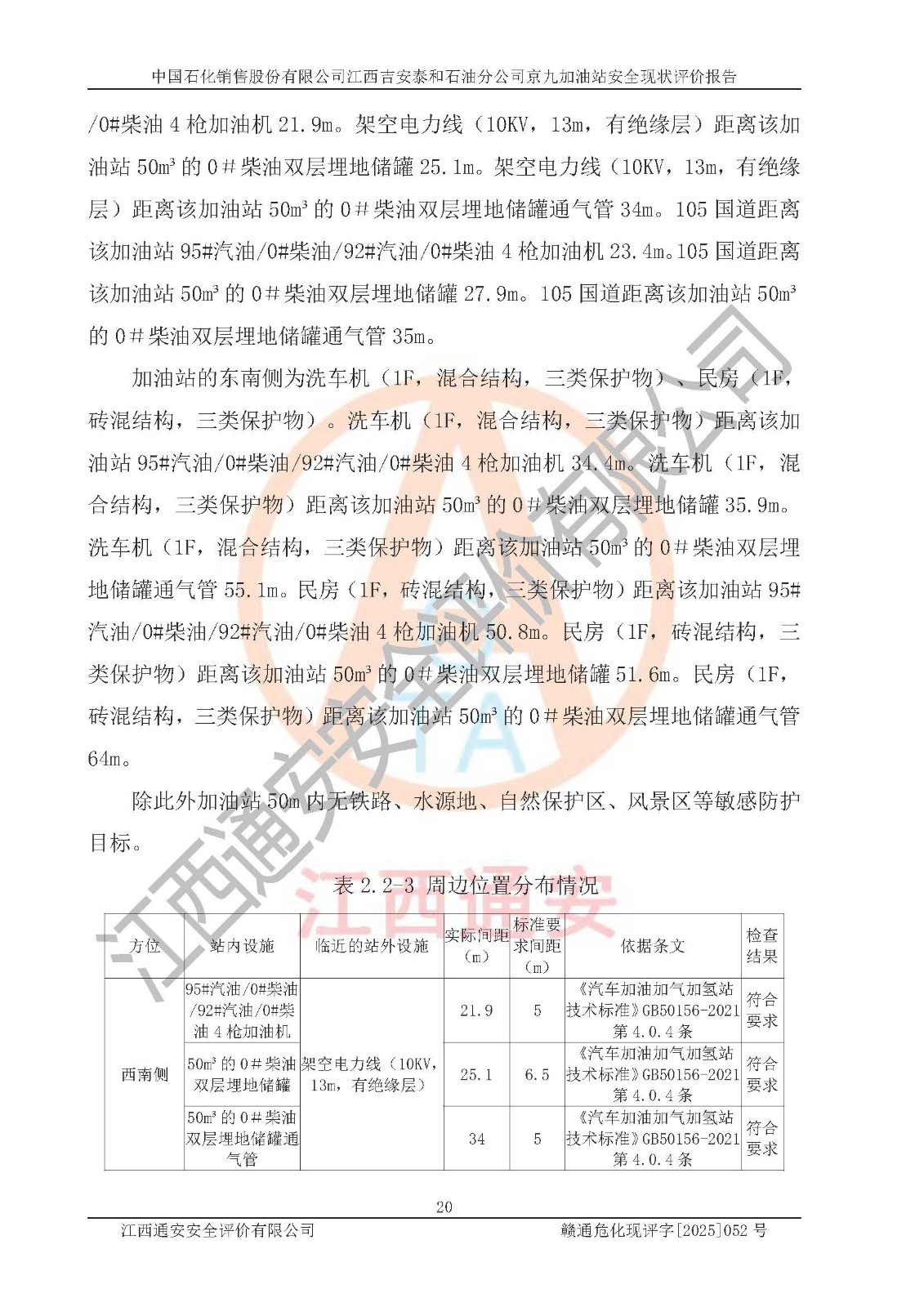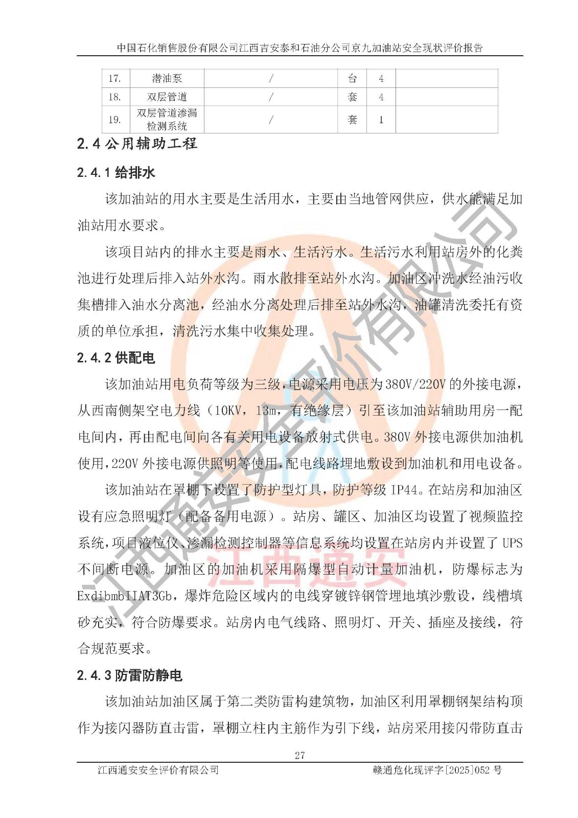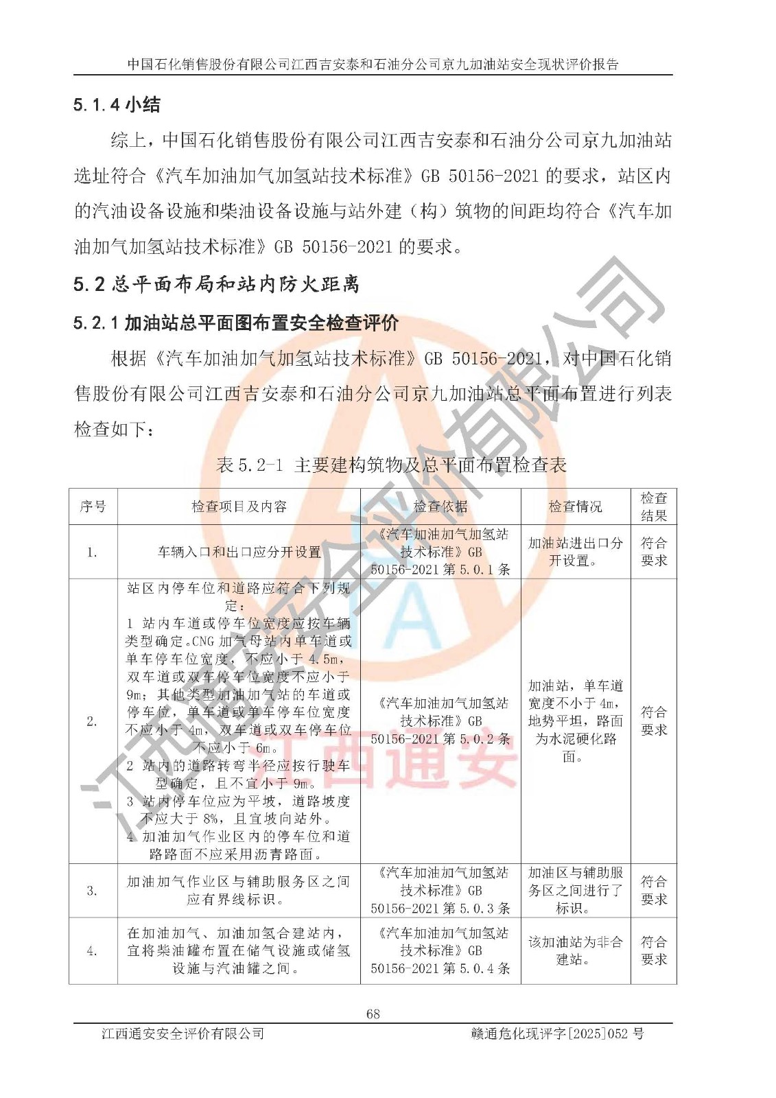 项目名称 | 中国石化销售股份有限公司江西吉安泰和石油分公司京九加油站 安全现状评价报告 | ||||