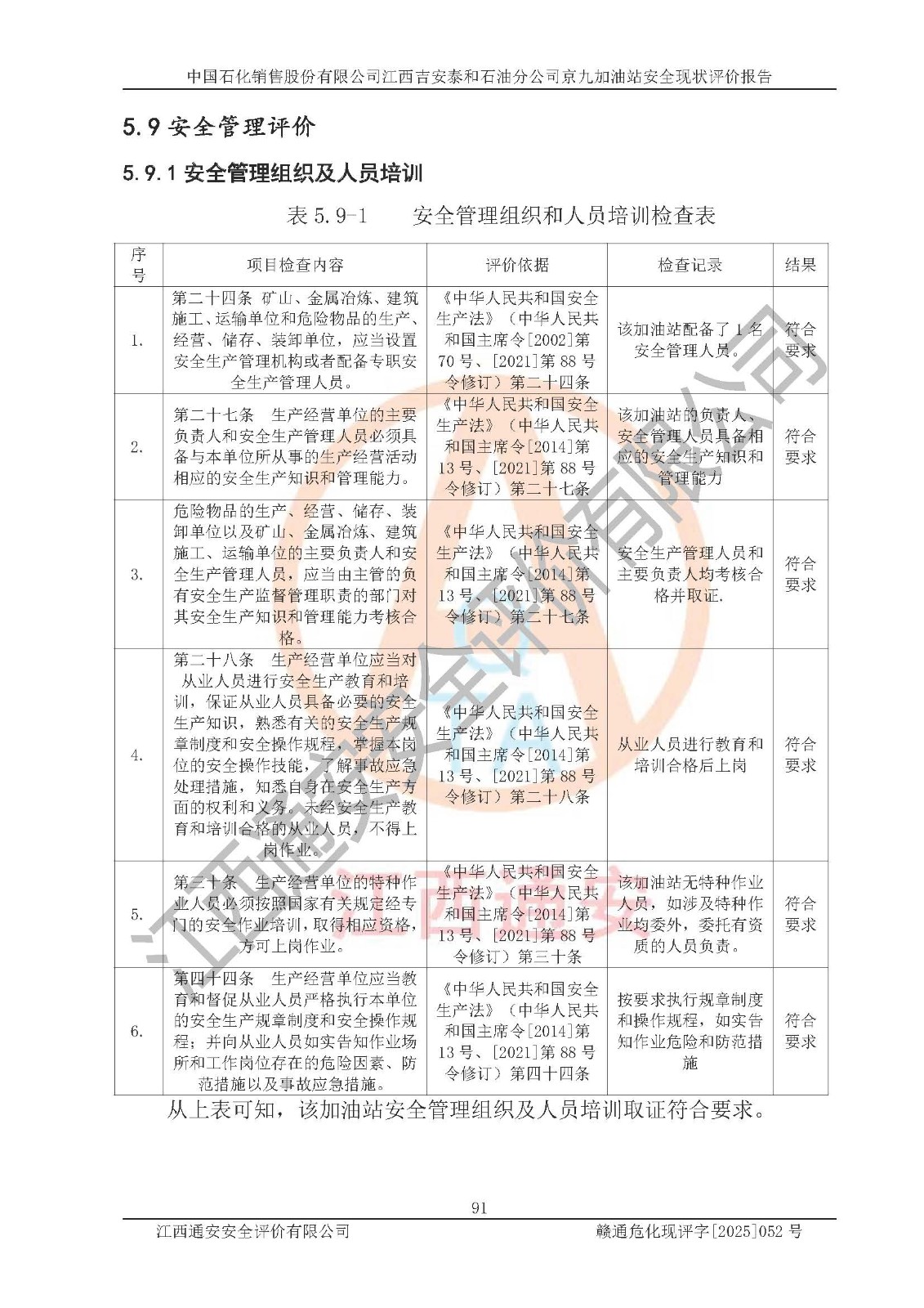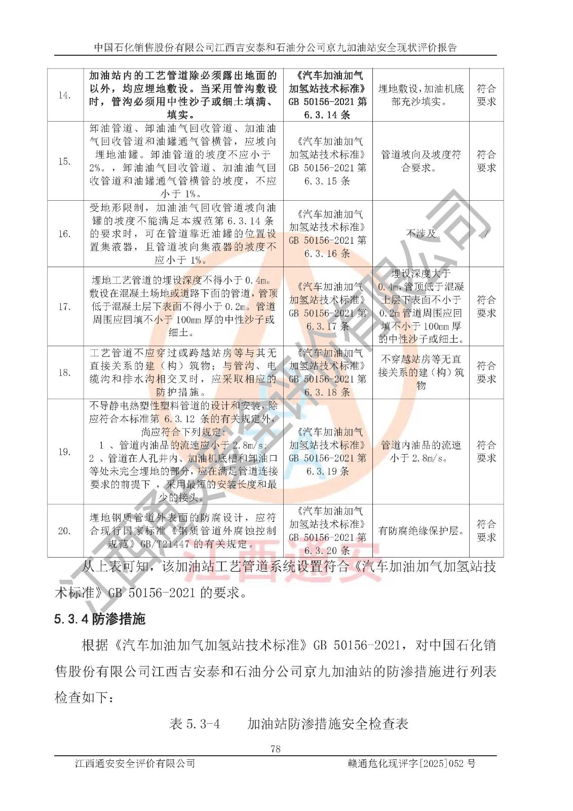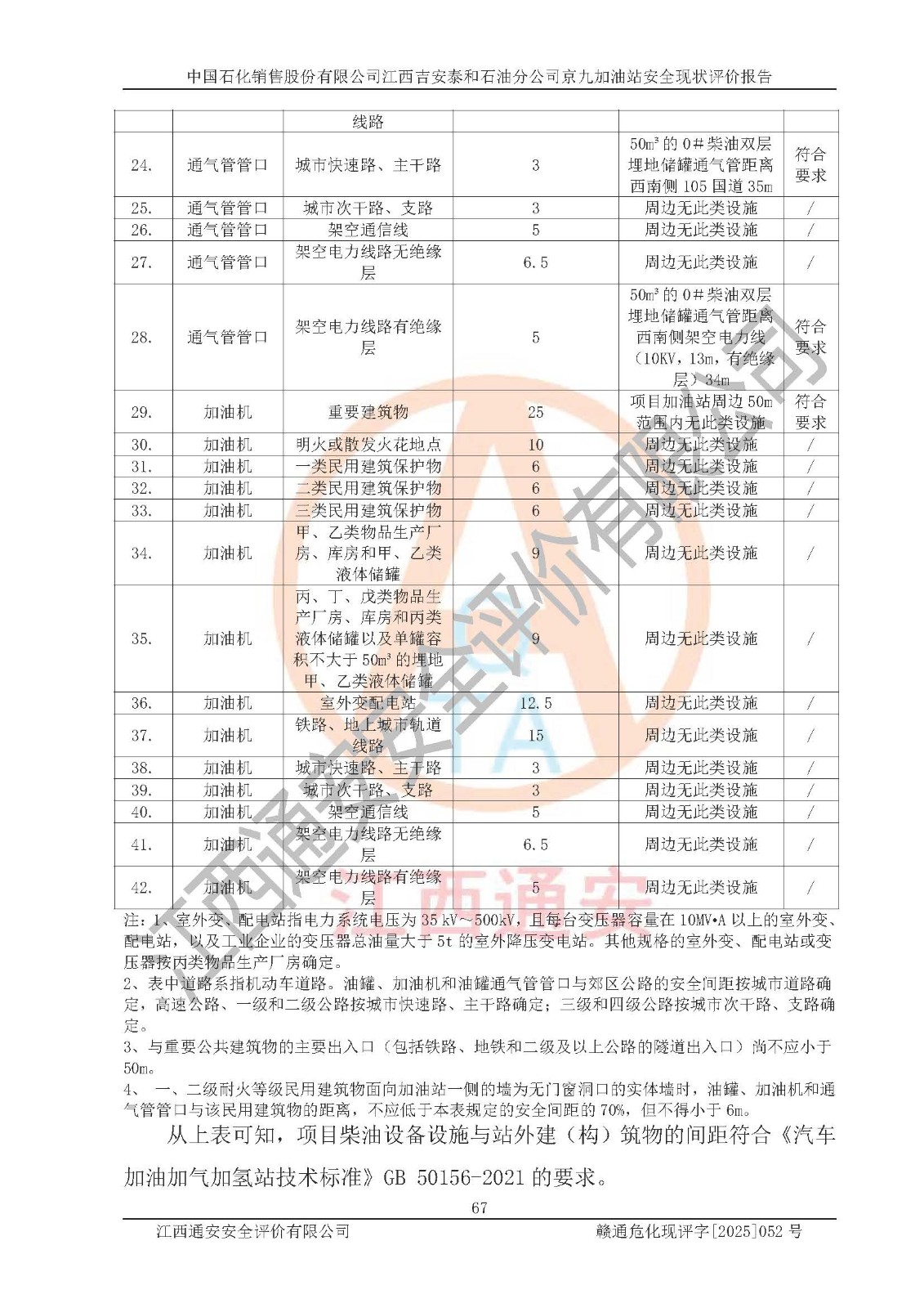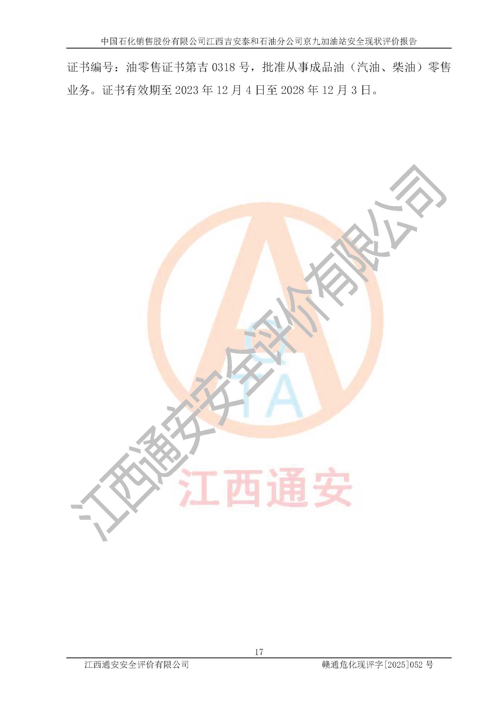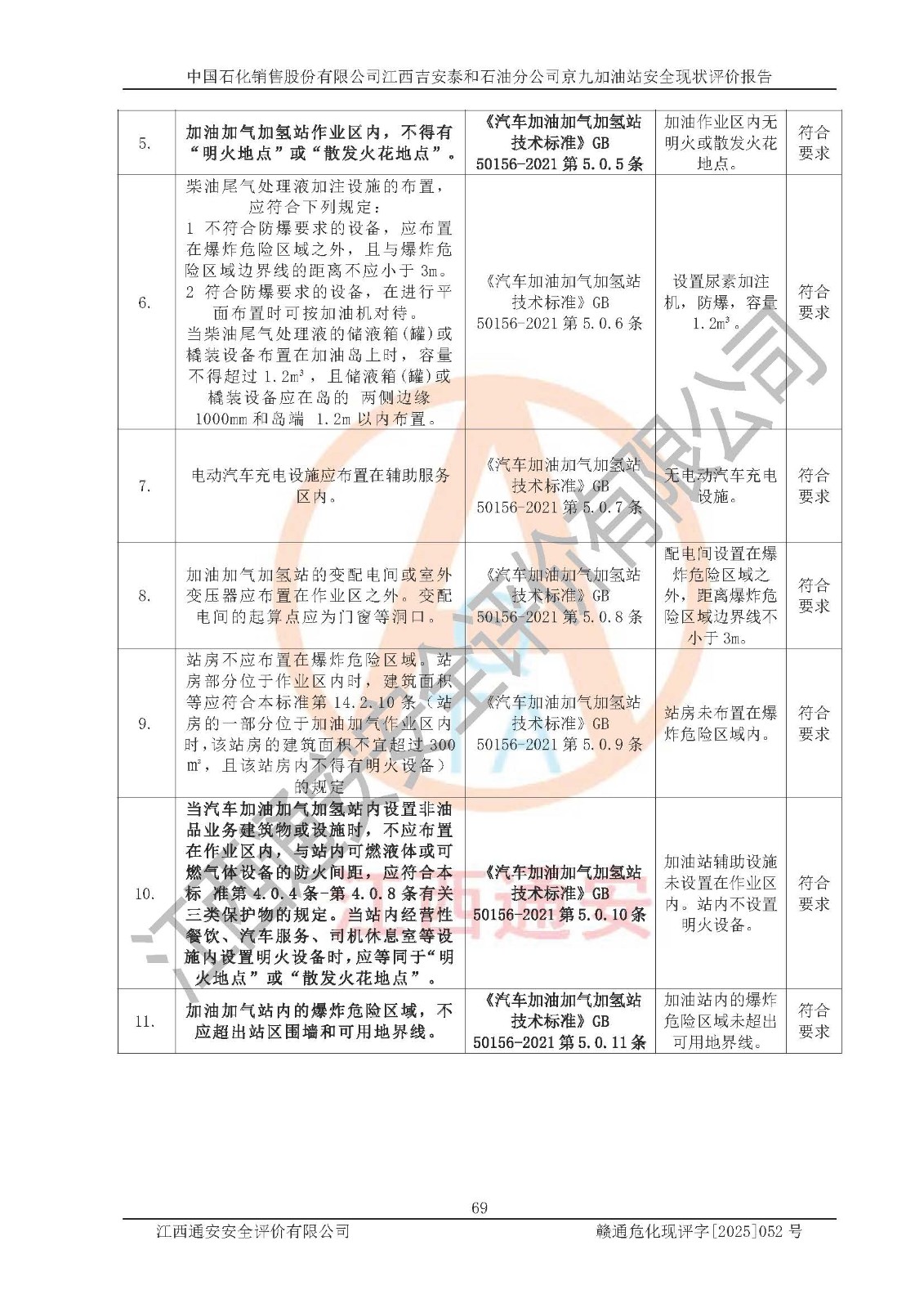 项目名称 | 中国石化销售股份有限公司江西吉安泰和石油分公司京九加油站 安全现状评价报告 | ||||