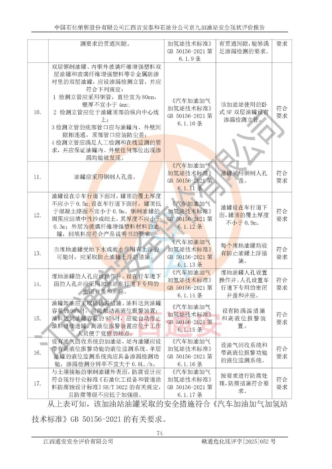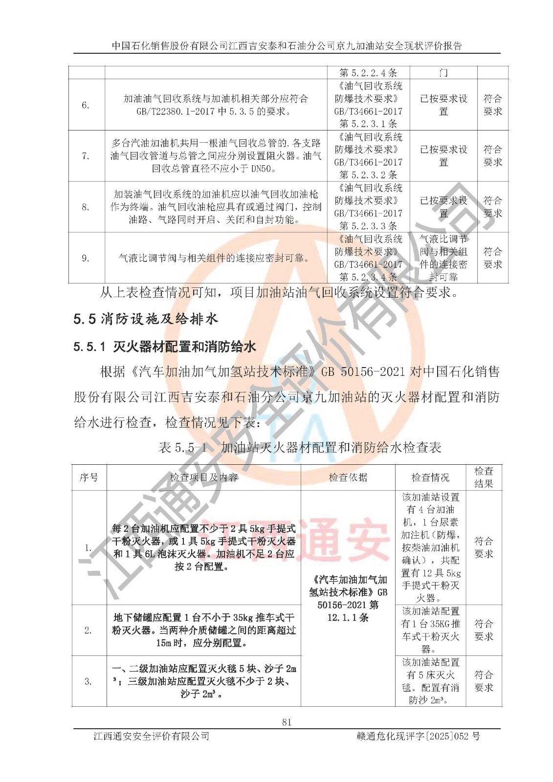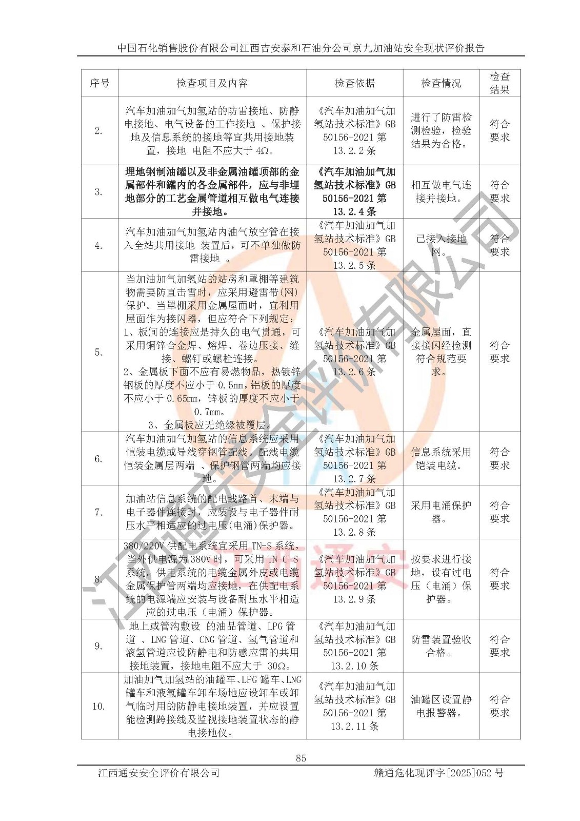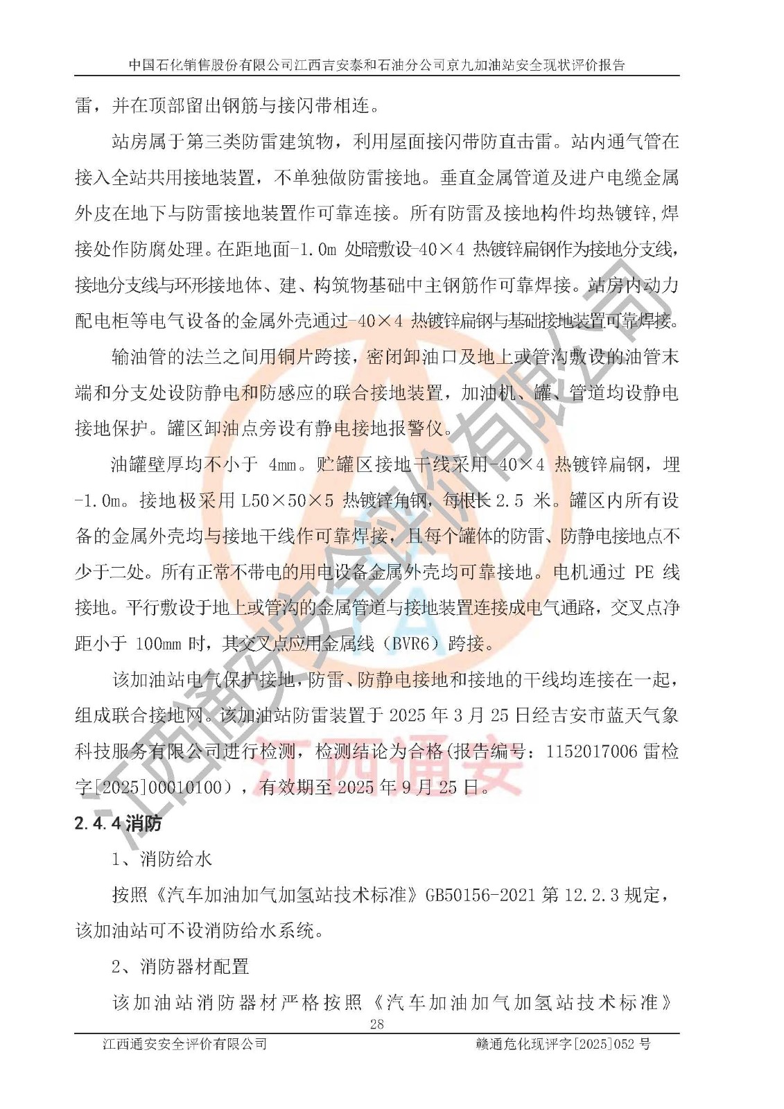 项目名称 | 中国石化销售股份有限公司江西吉安泰和石油分公司京九加油站 安全现状评价报告 | ||||