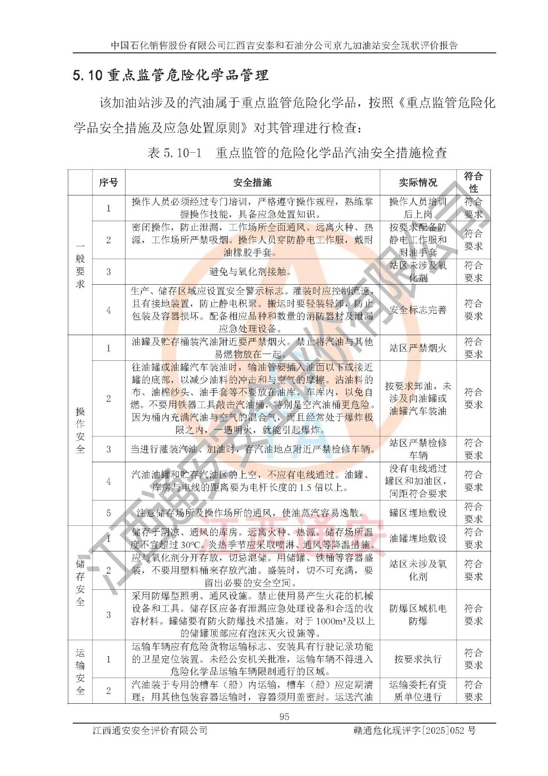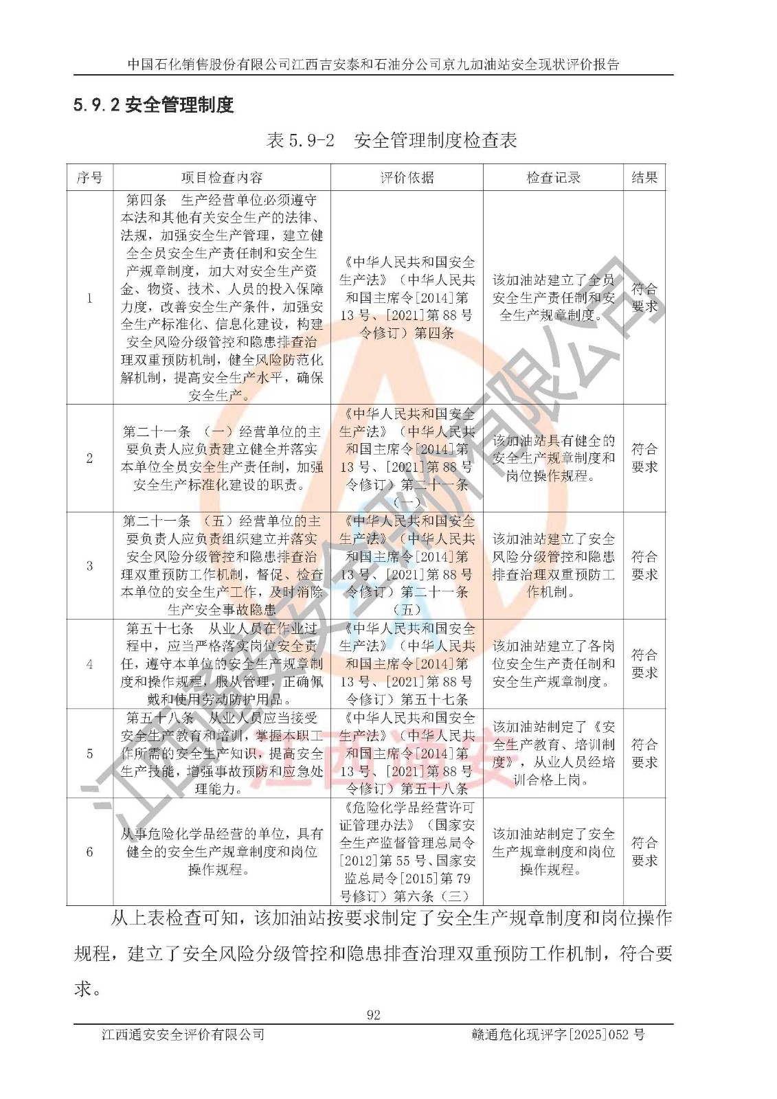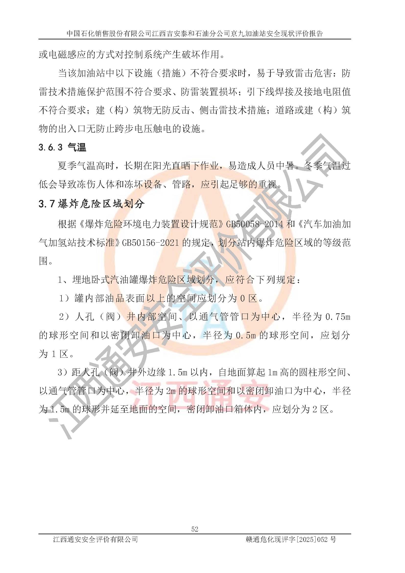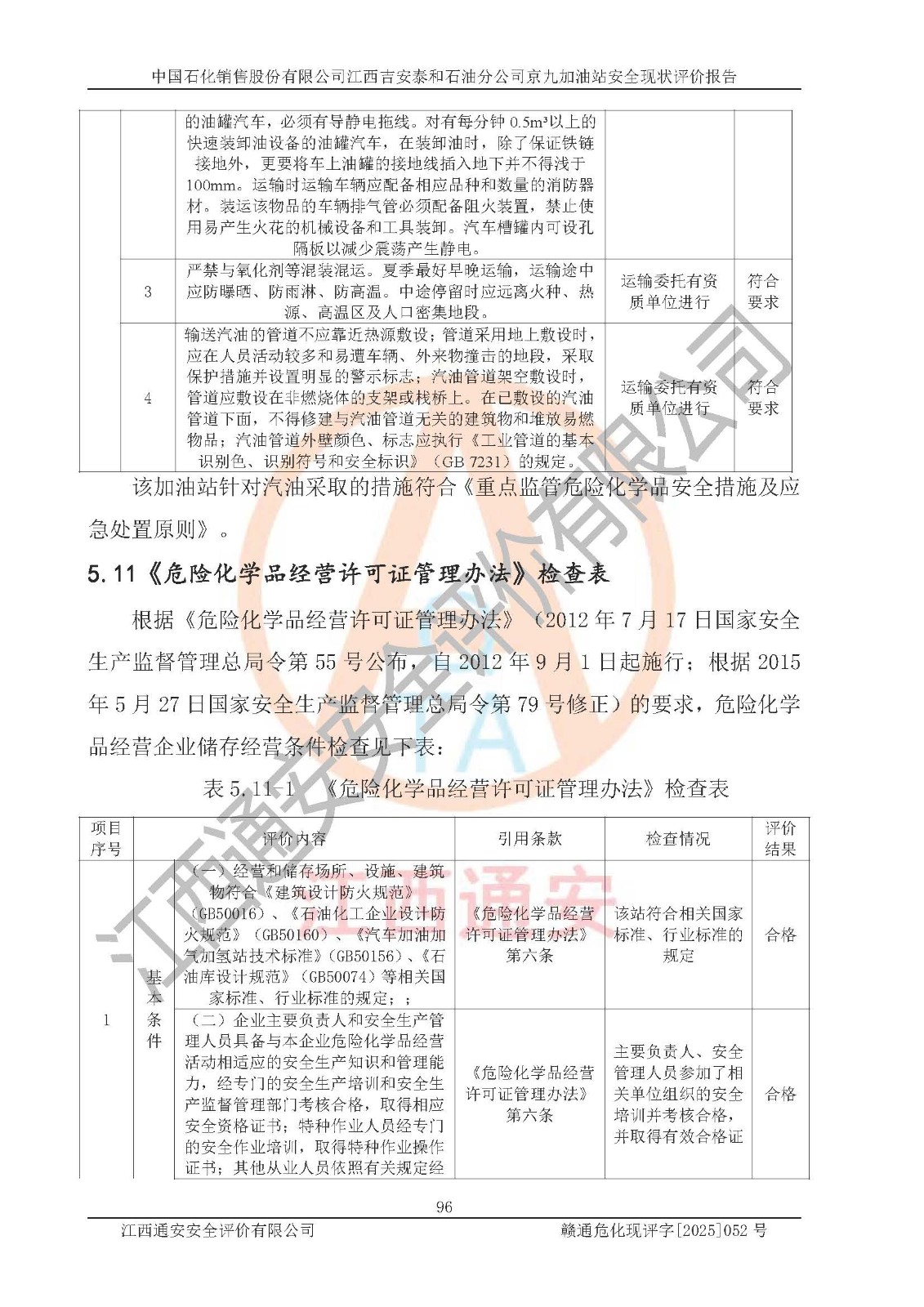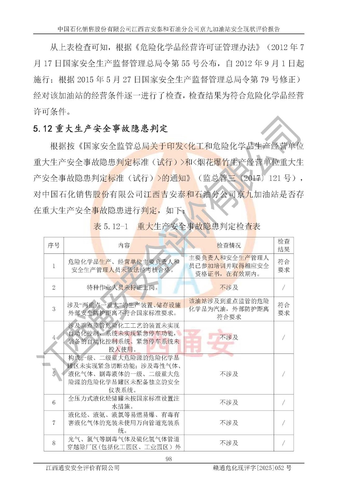 项目名称 | 中国石化销售股份有限公司江西吉安泰和石油分公司京九加油站 安全现状评价报告 | ||||