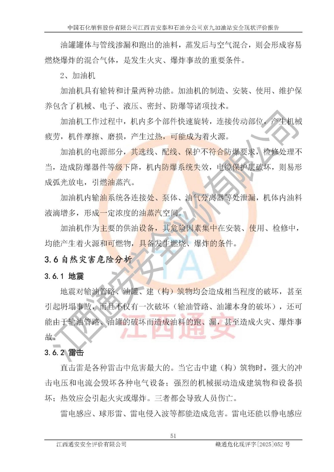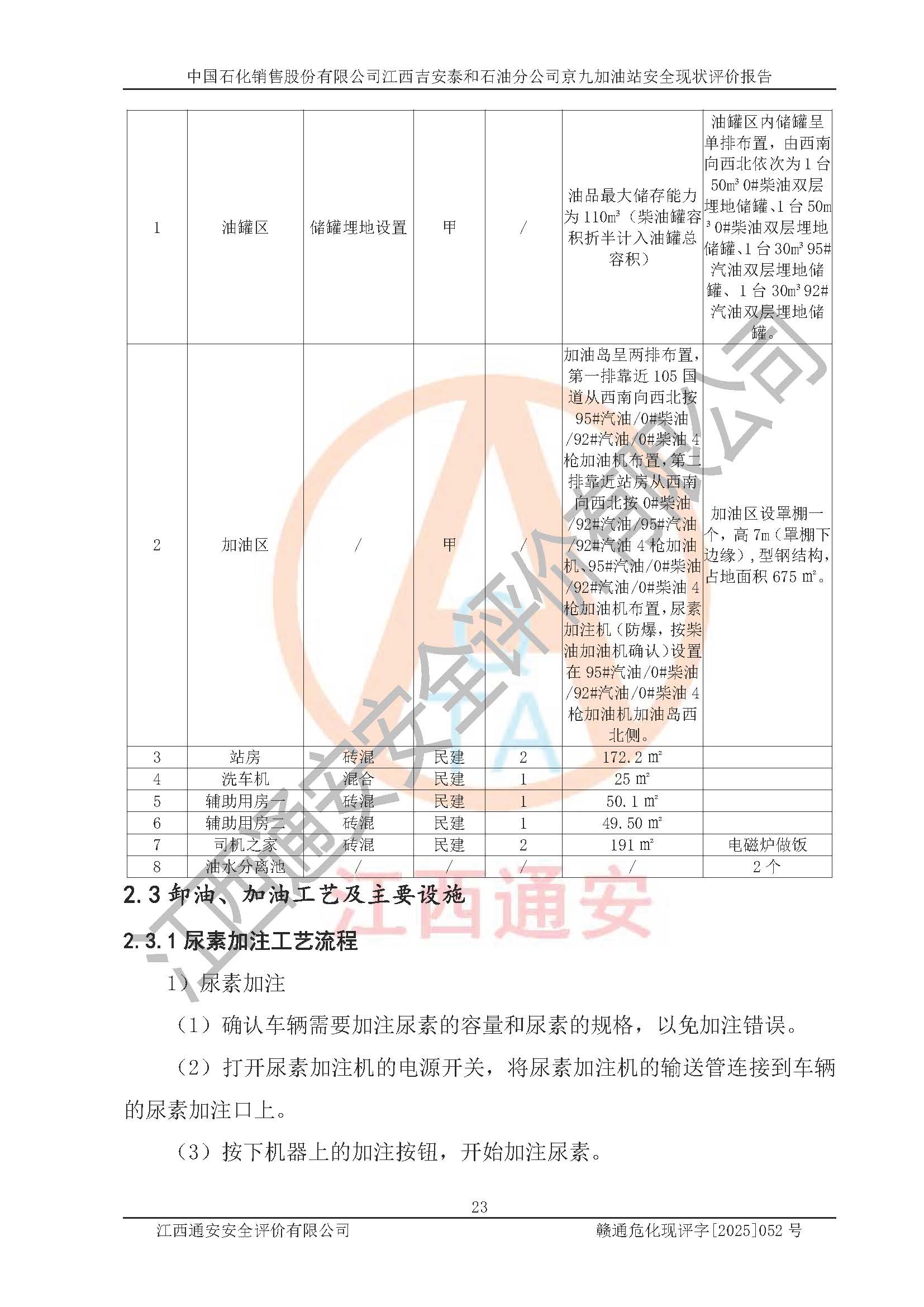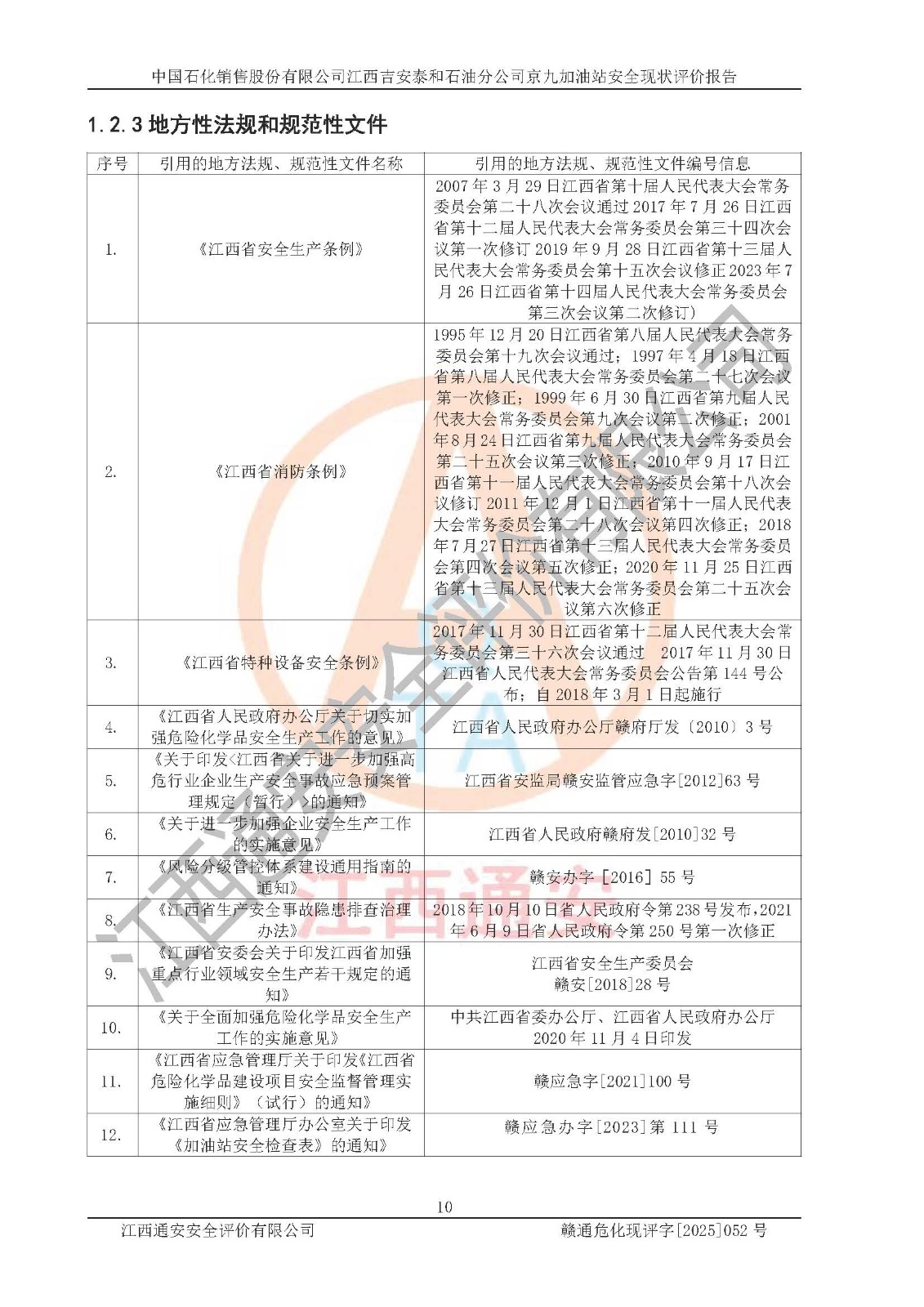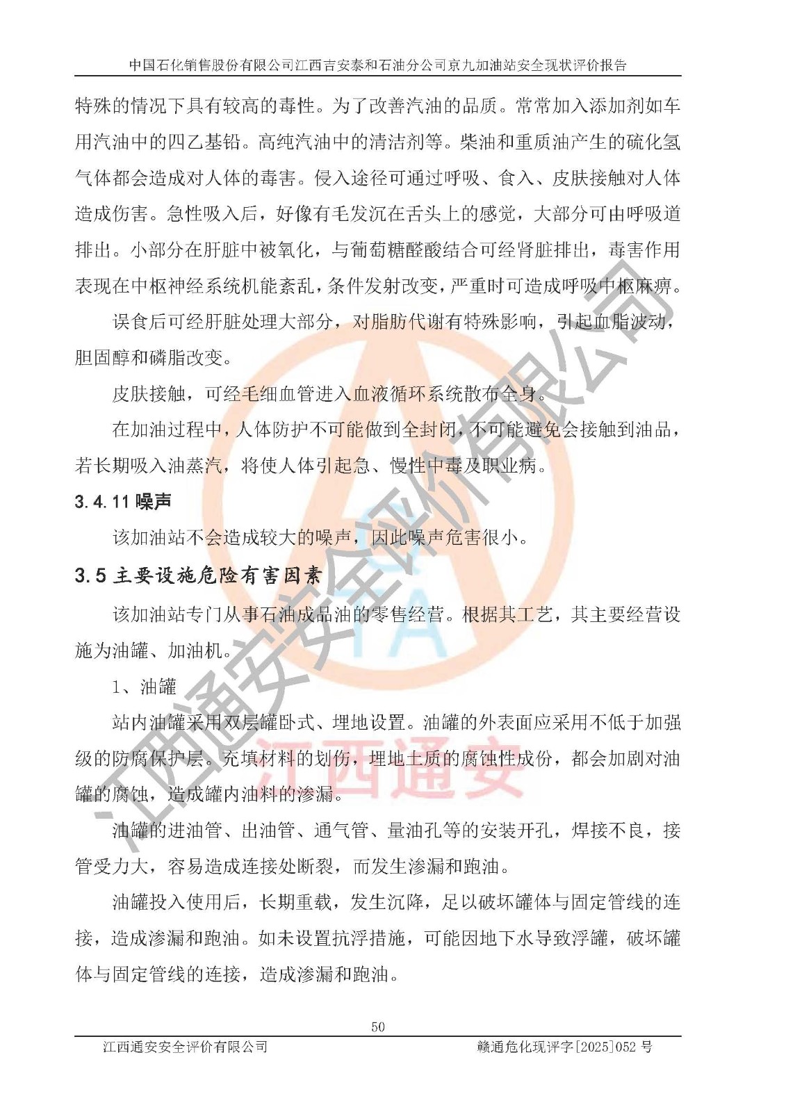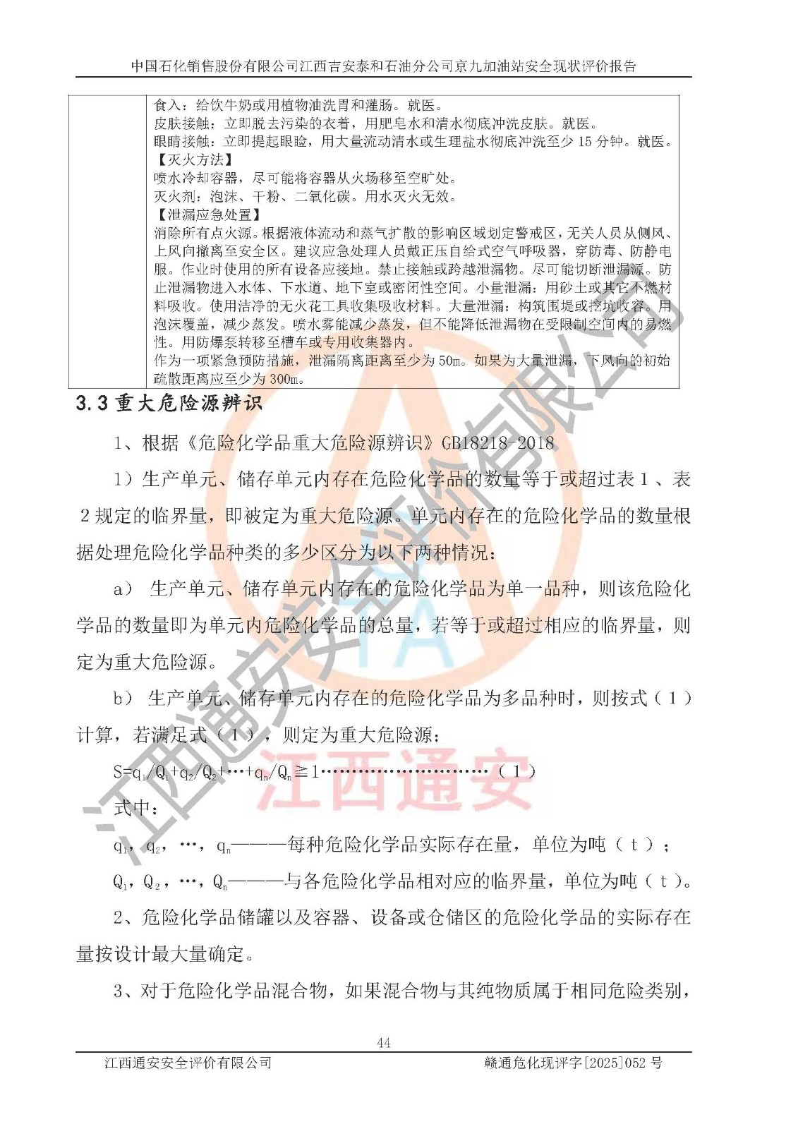 项目名称 | 中国石化销售股份有限公司江西吉安泰和石油分公司京九加油站 安全现状评价报告 | ||||