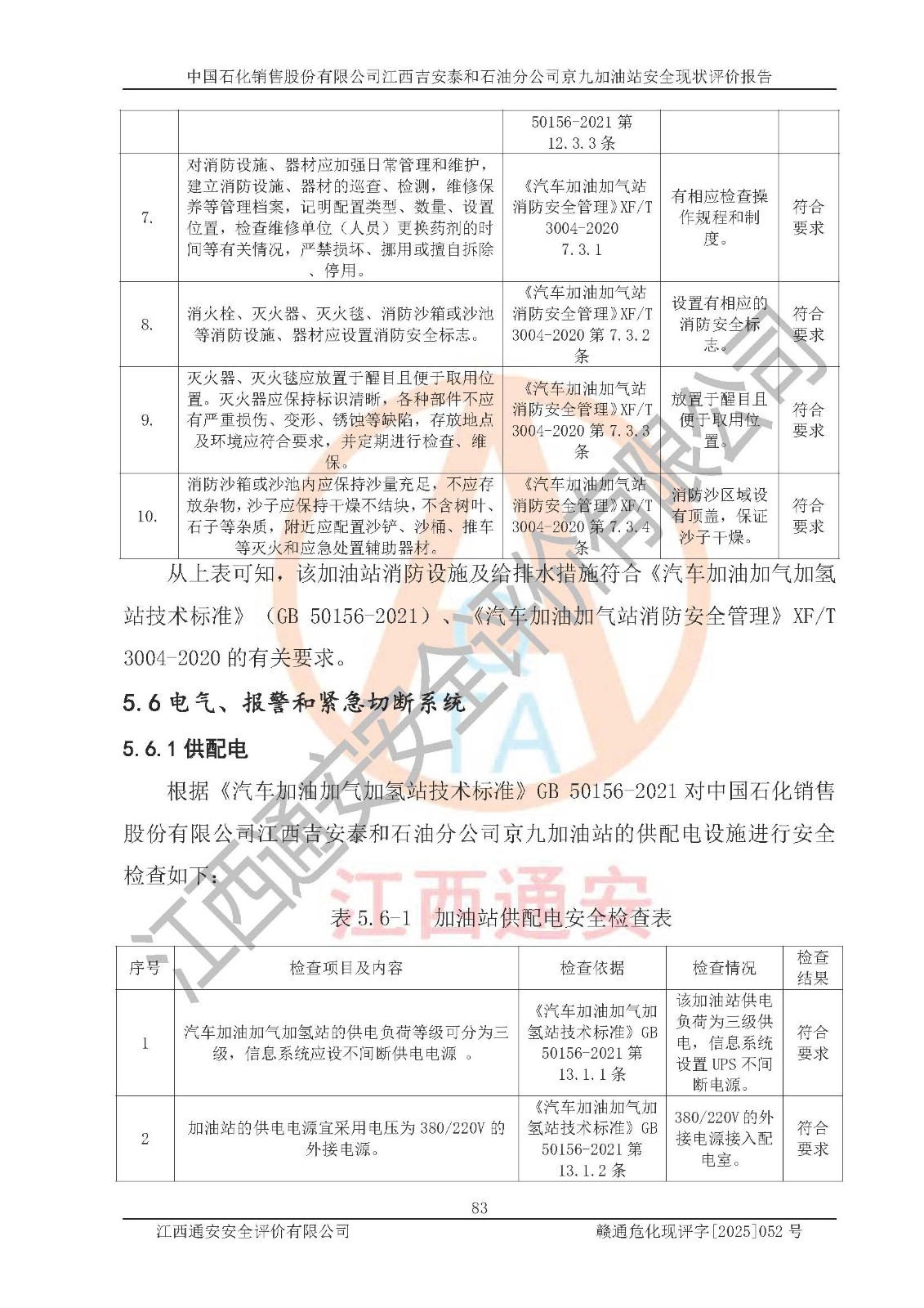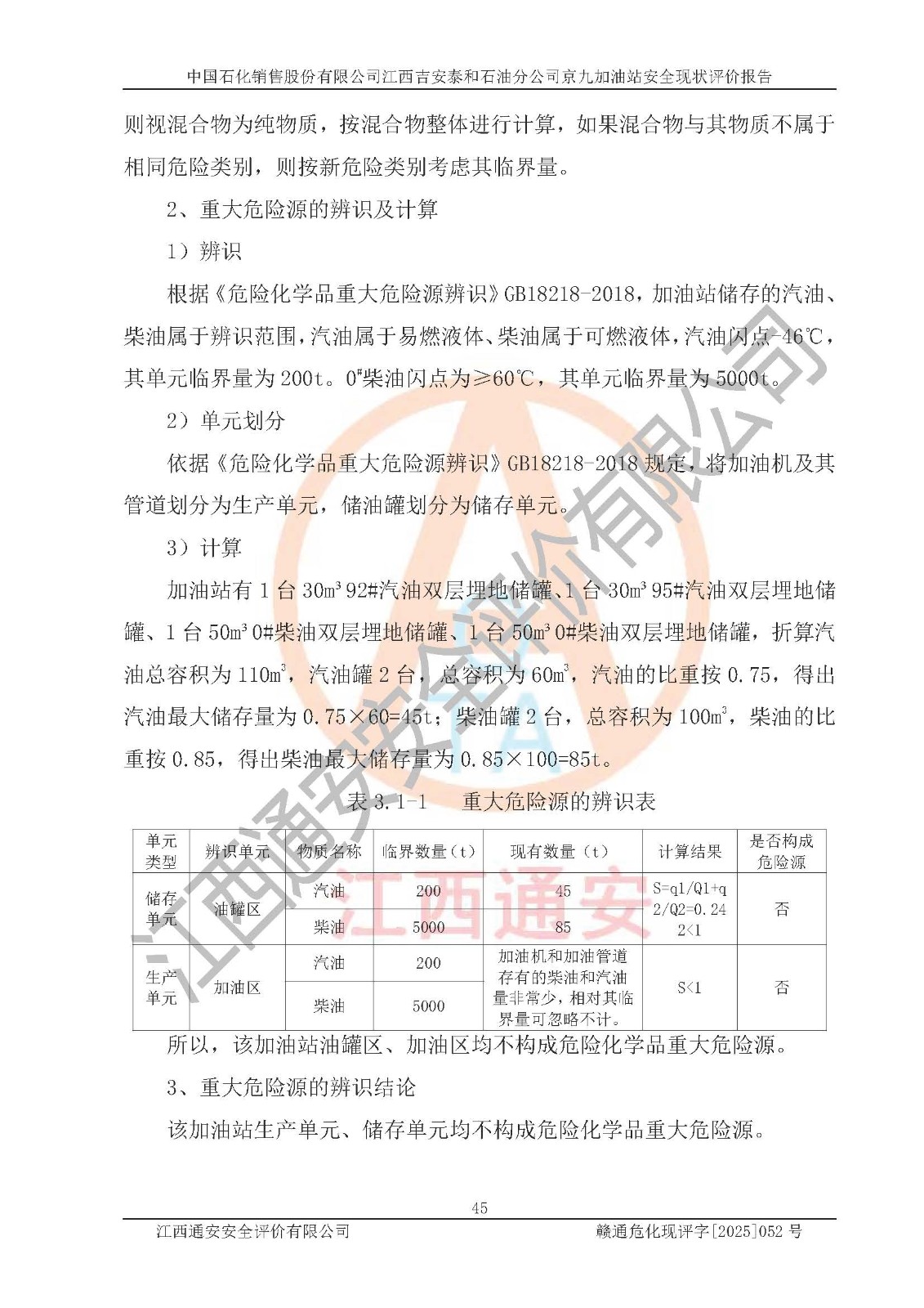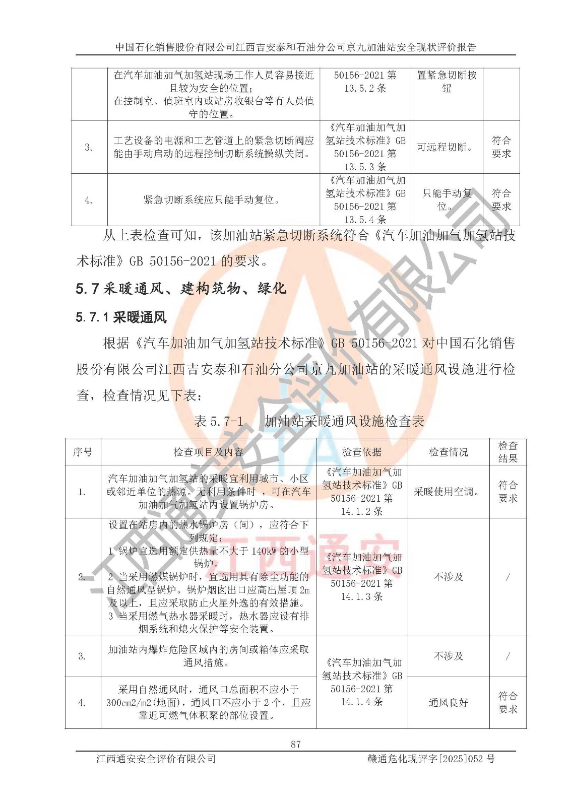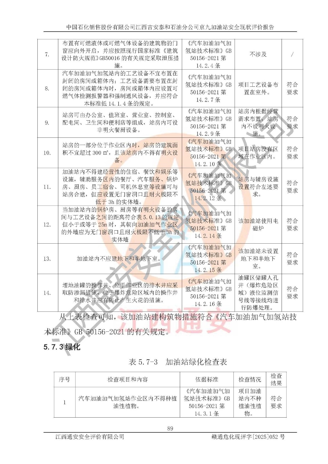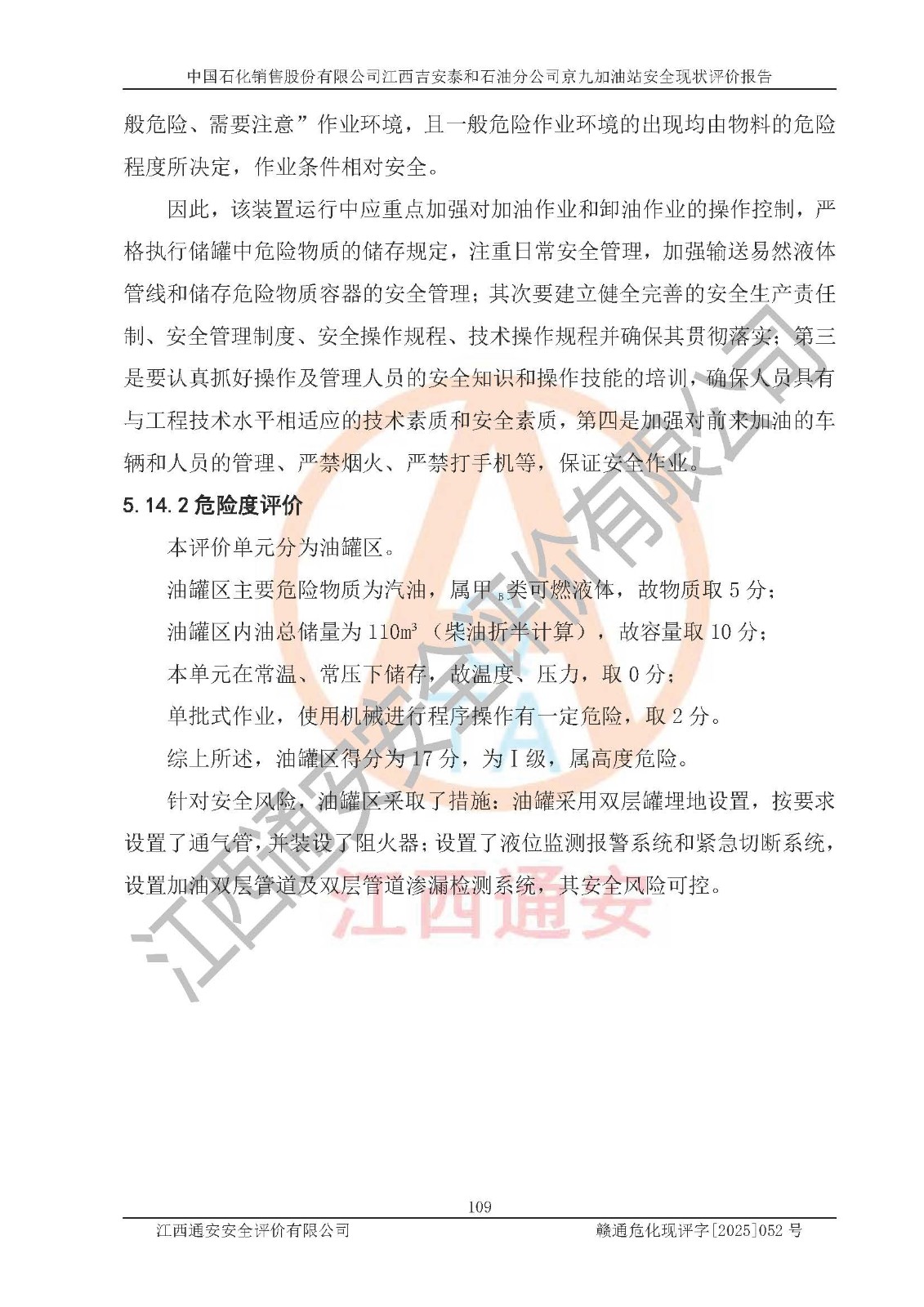 项目名称 | 中国石化销售股份有限公司江西吉安泰和石油分公司京九加油站 安全现状评价报告 | ||||