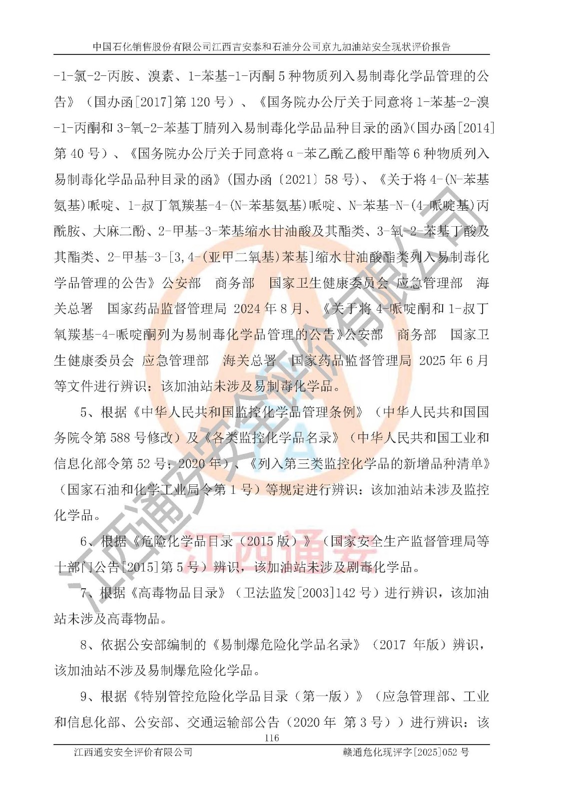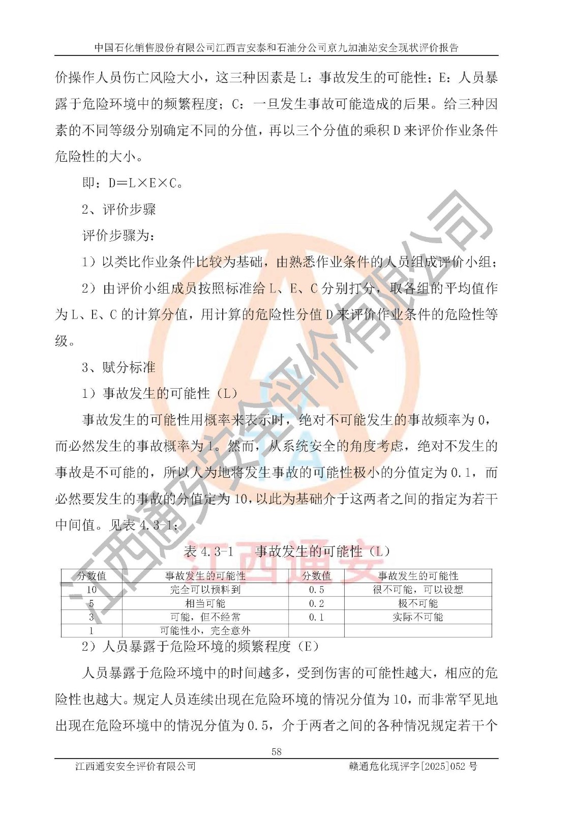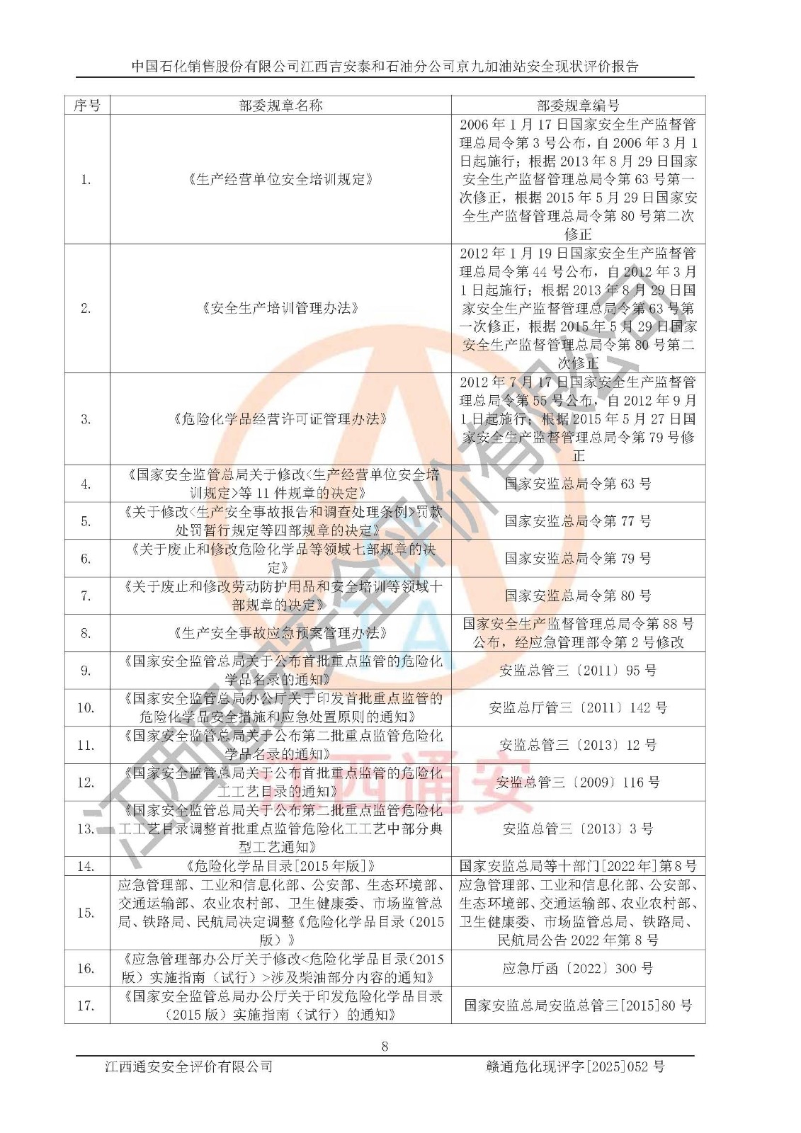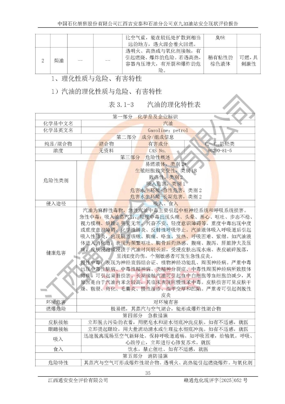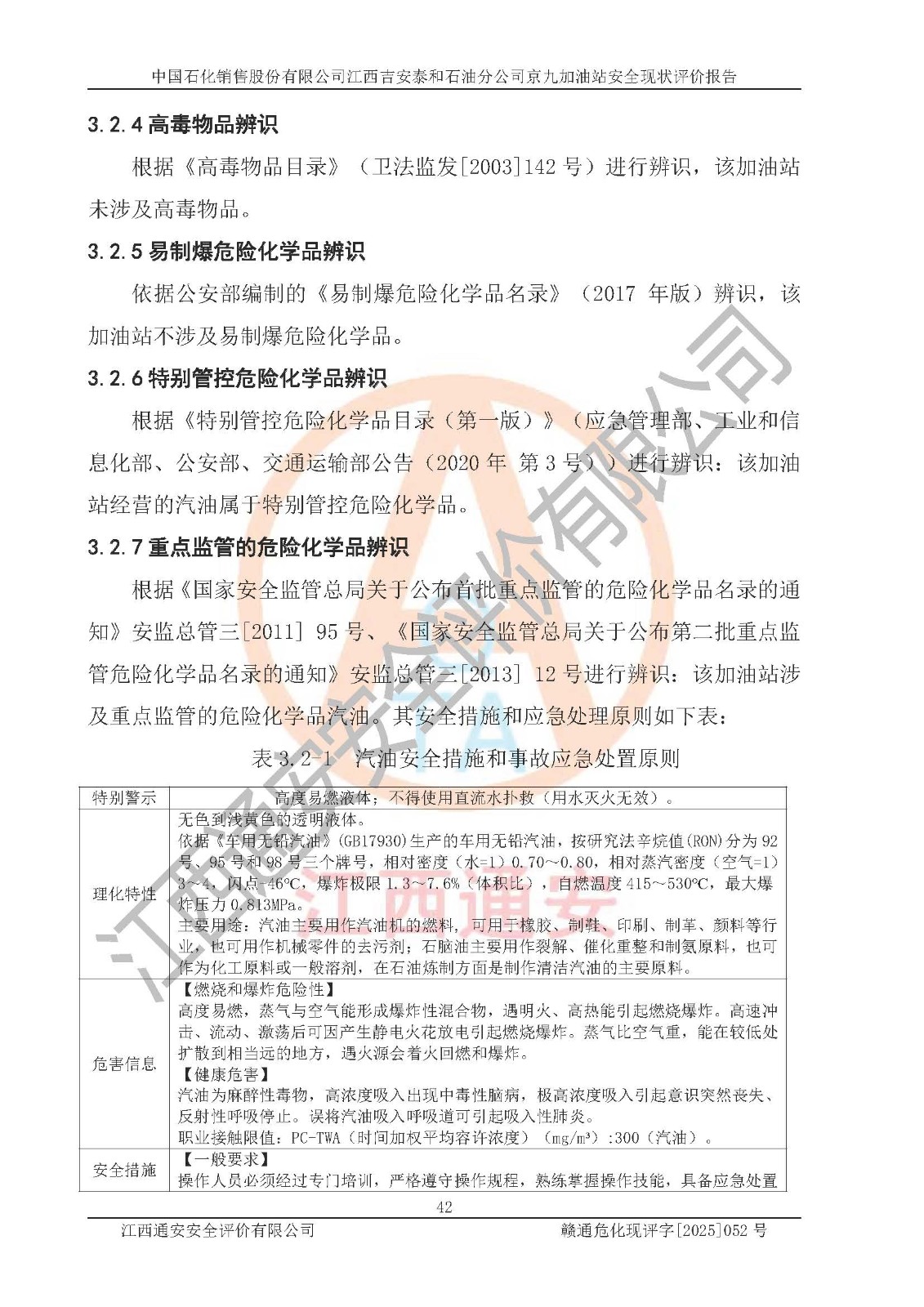 项目名称 | 中国石化销售股份有限公司江西吉安泰和石油分公司京九加油站 安全现状评价报告 | ||||