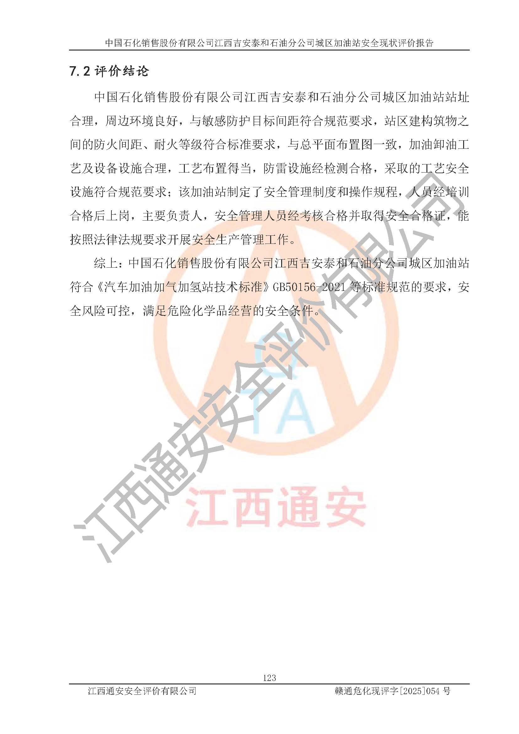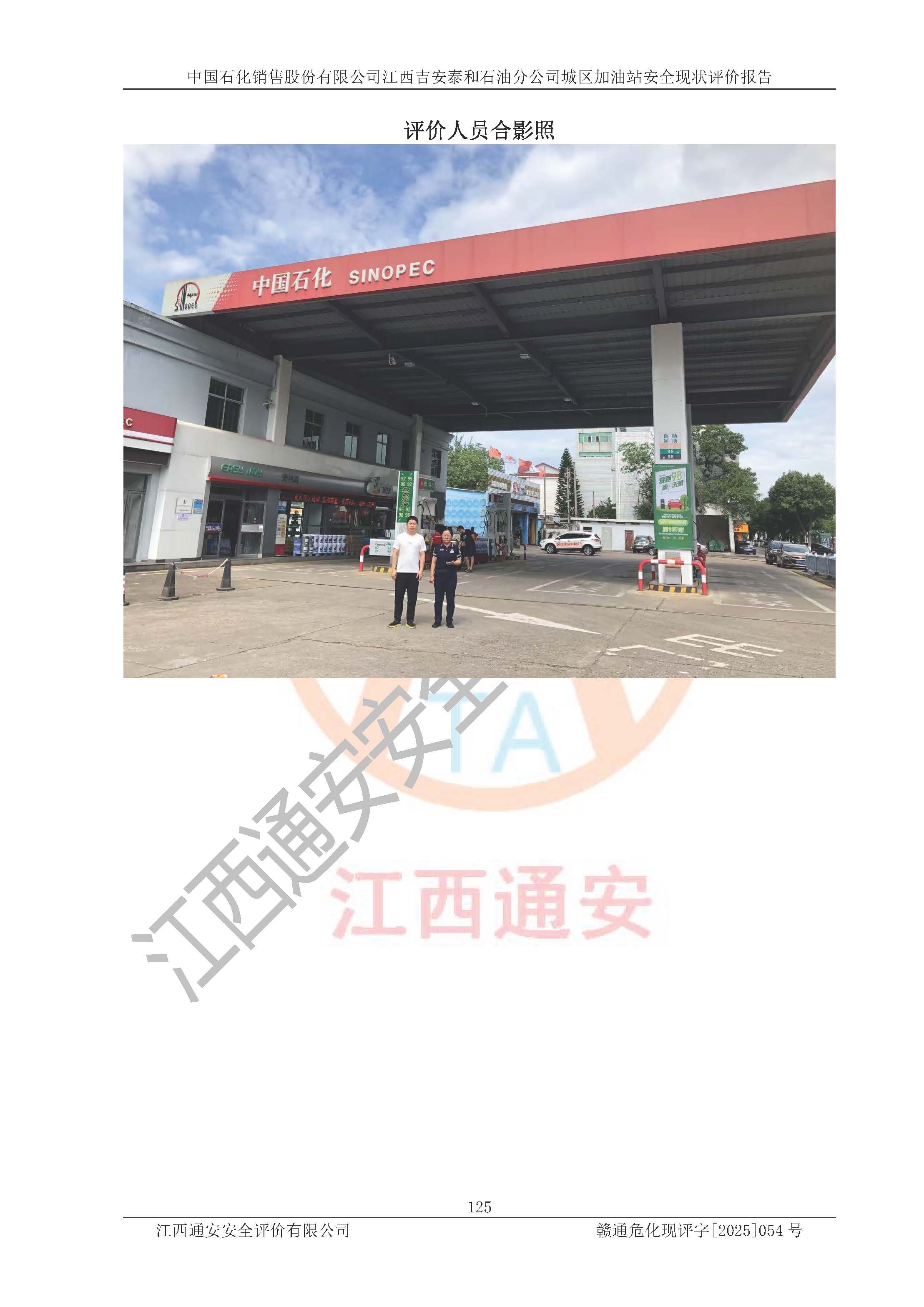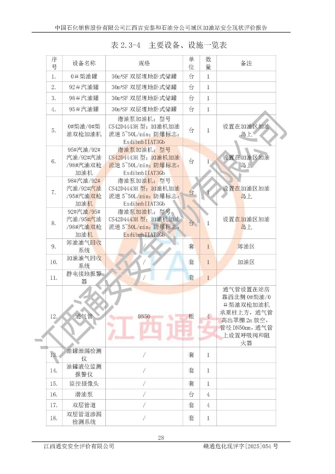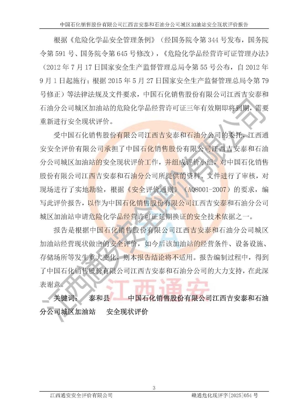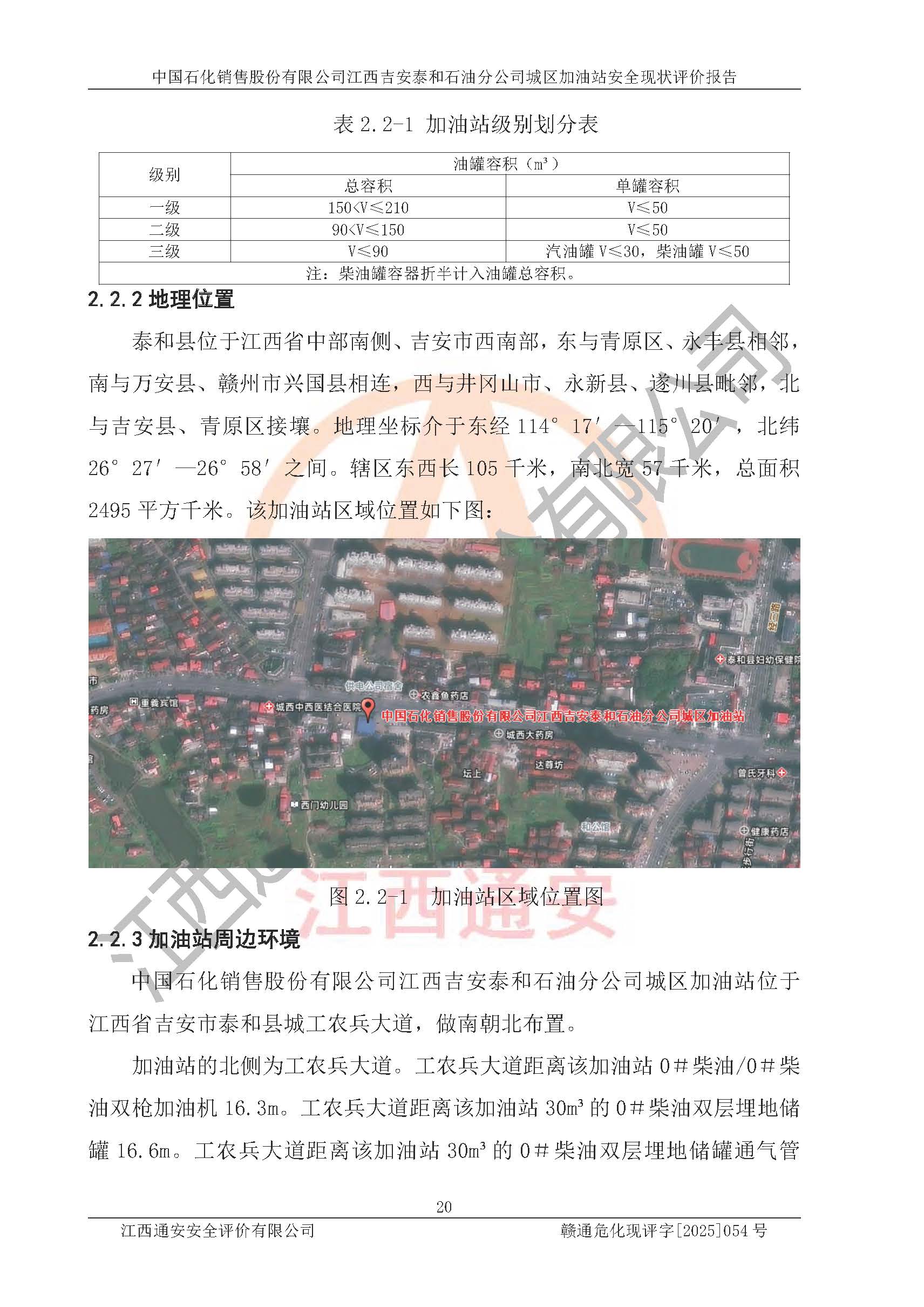 项目名称 | 中国石化销售股份有限公司江西吉安泰和石油分公司城区加油站 安全现状评价报告 | ||||