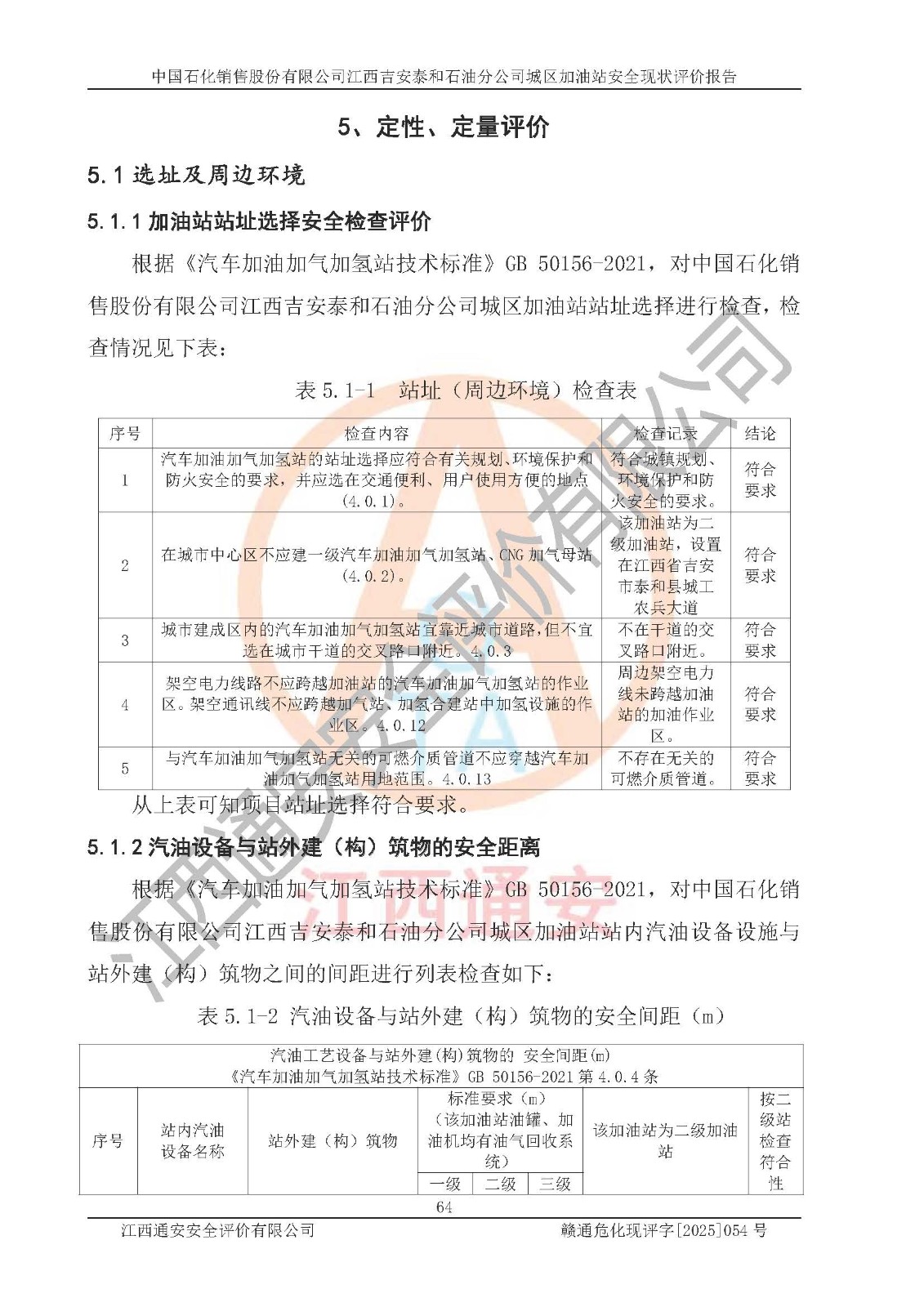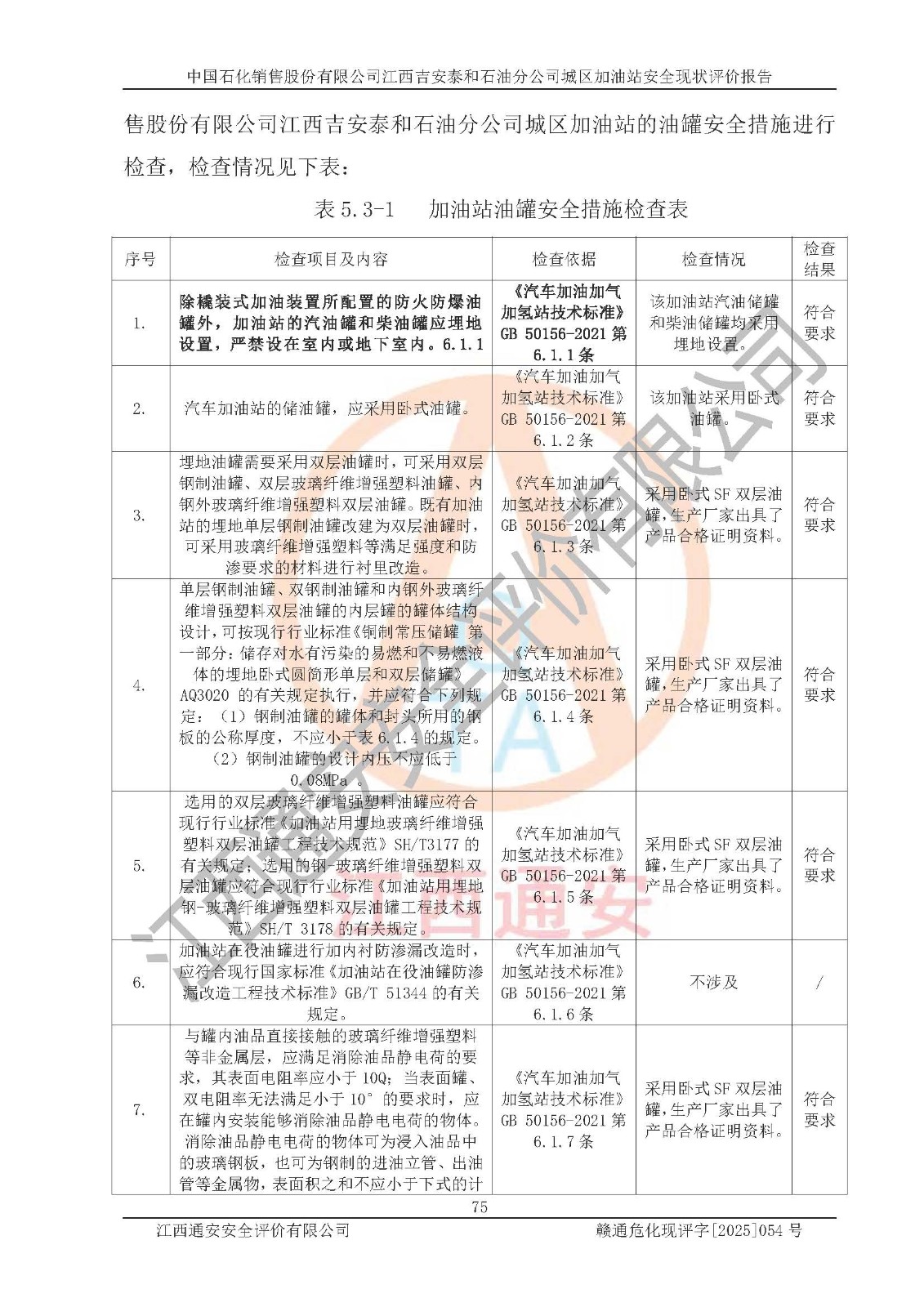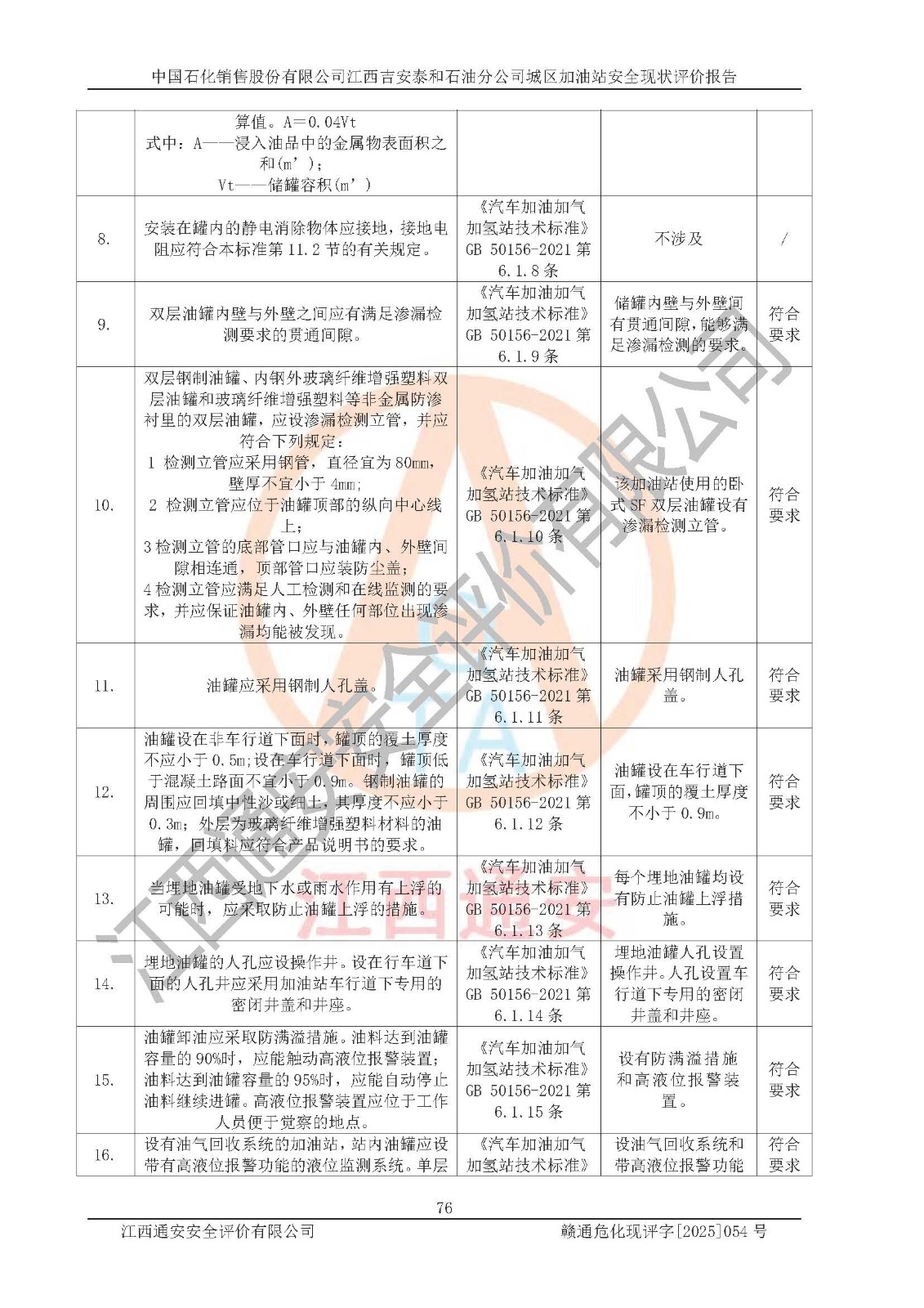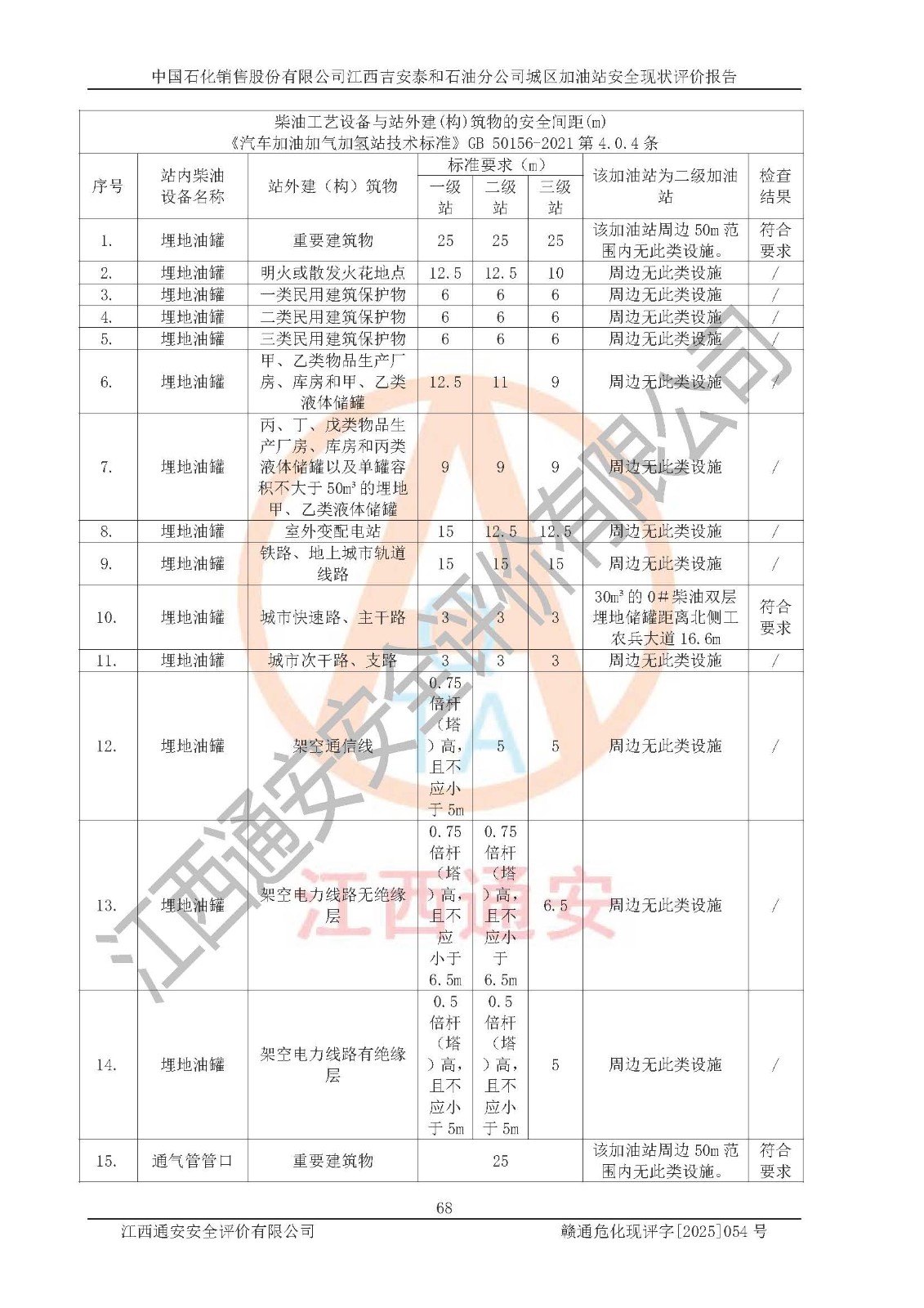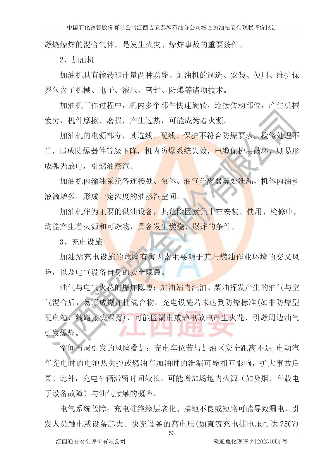 项目名称 | 中国石化销售股份有限公司江西吉安泰和石油分公司城区加油站 安全现状评价报告 | ||||