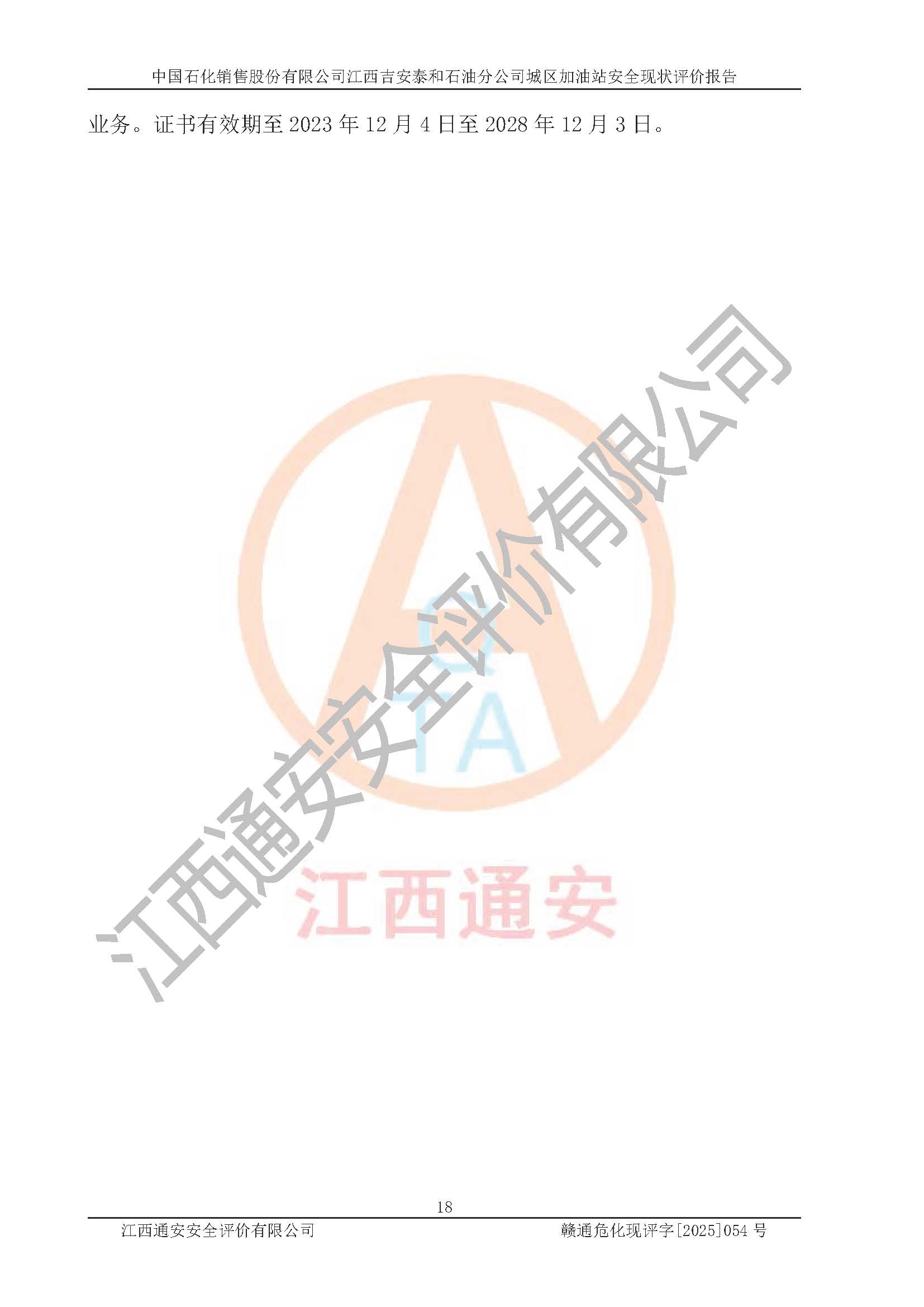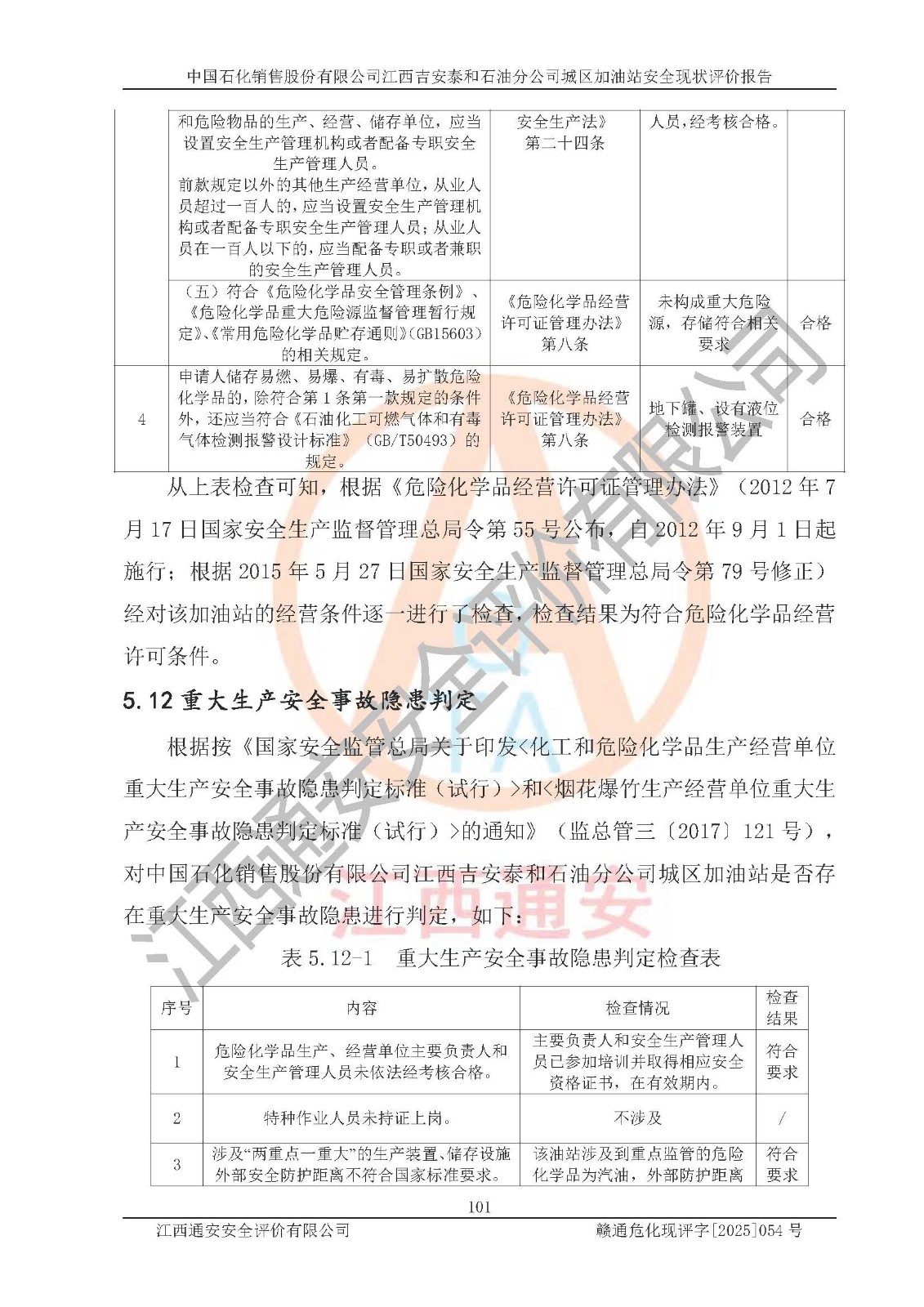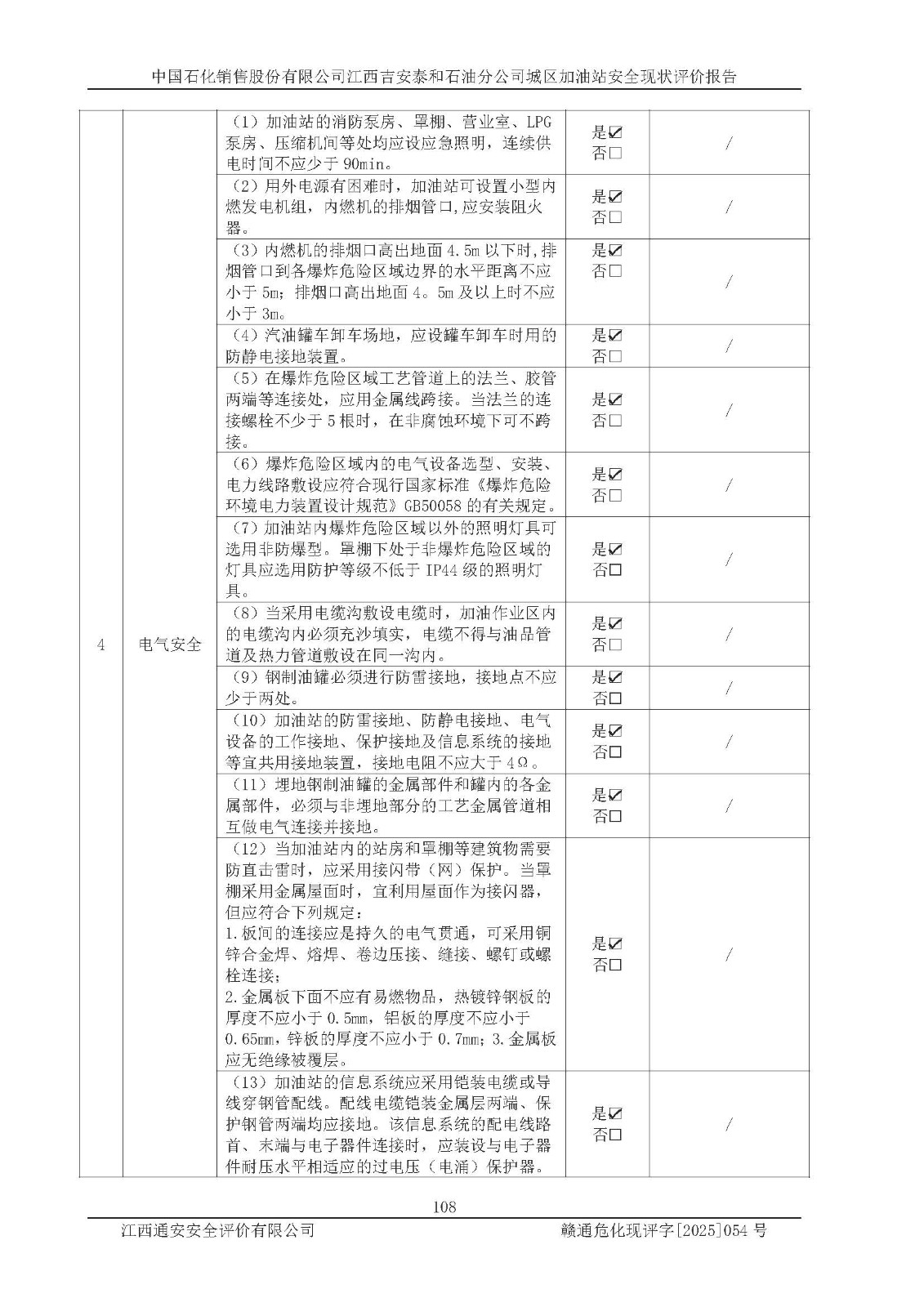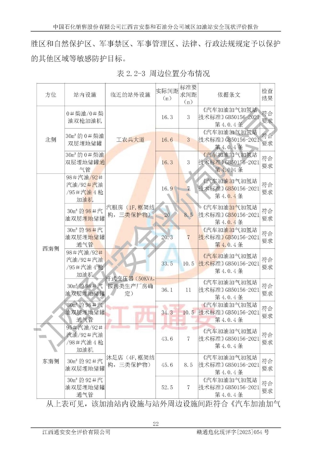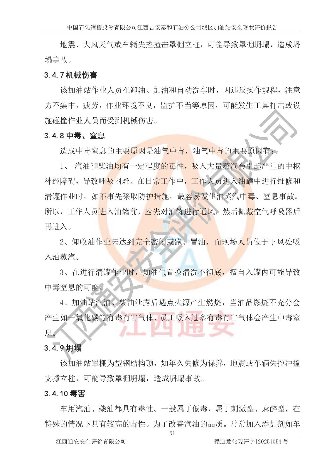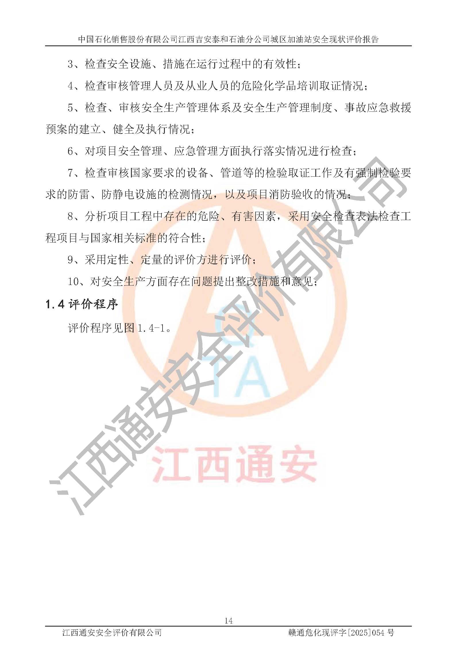项目名称 | 中国石化销售股份有限公司江西吉安泰和石油分公司城区加油站 安全现状评价报告 | ||||