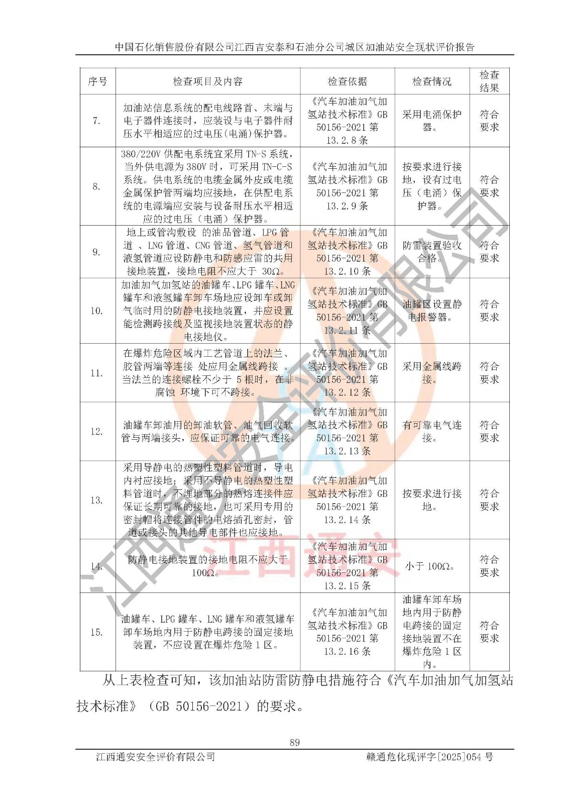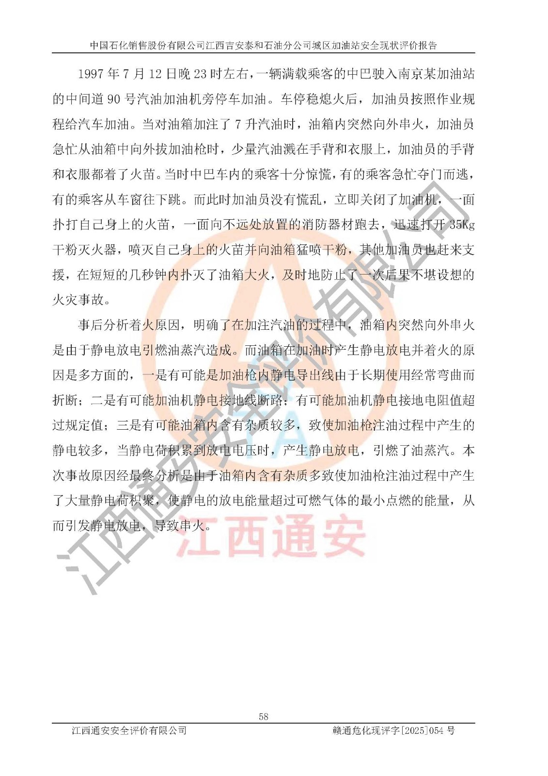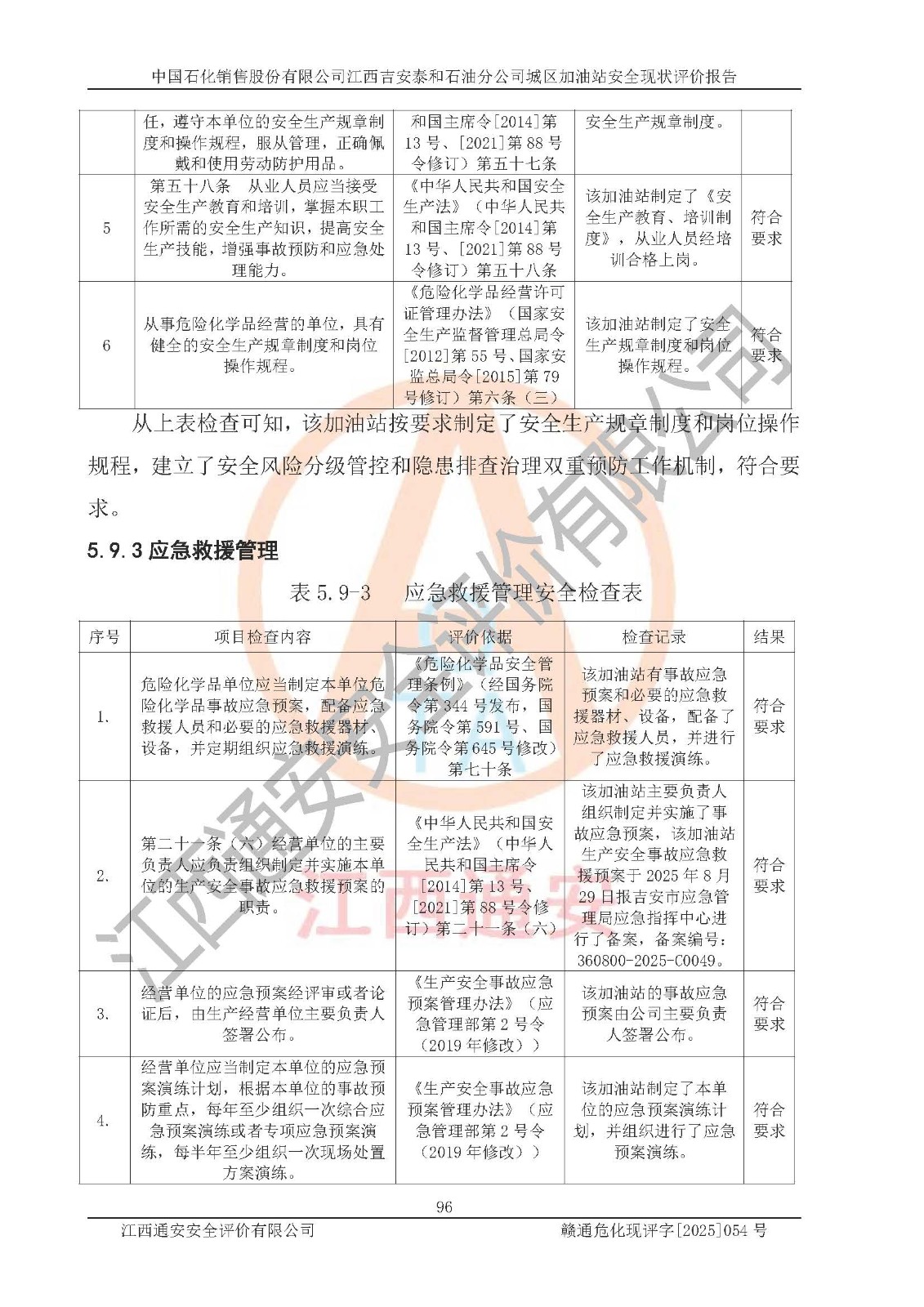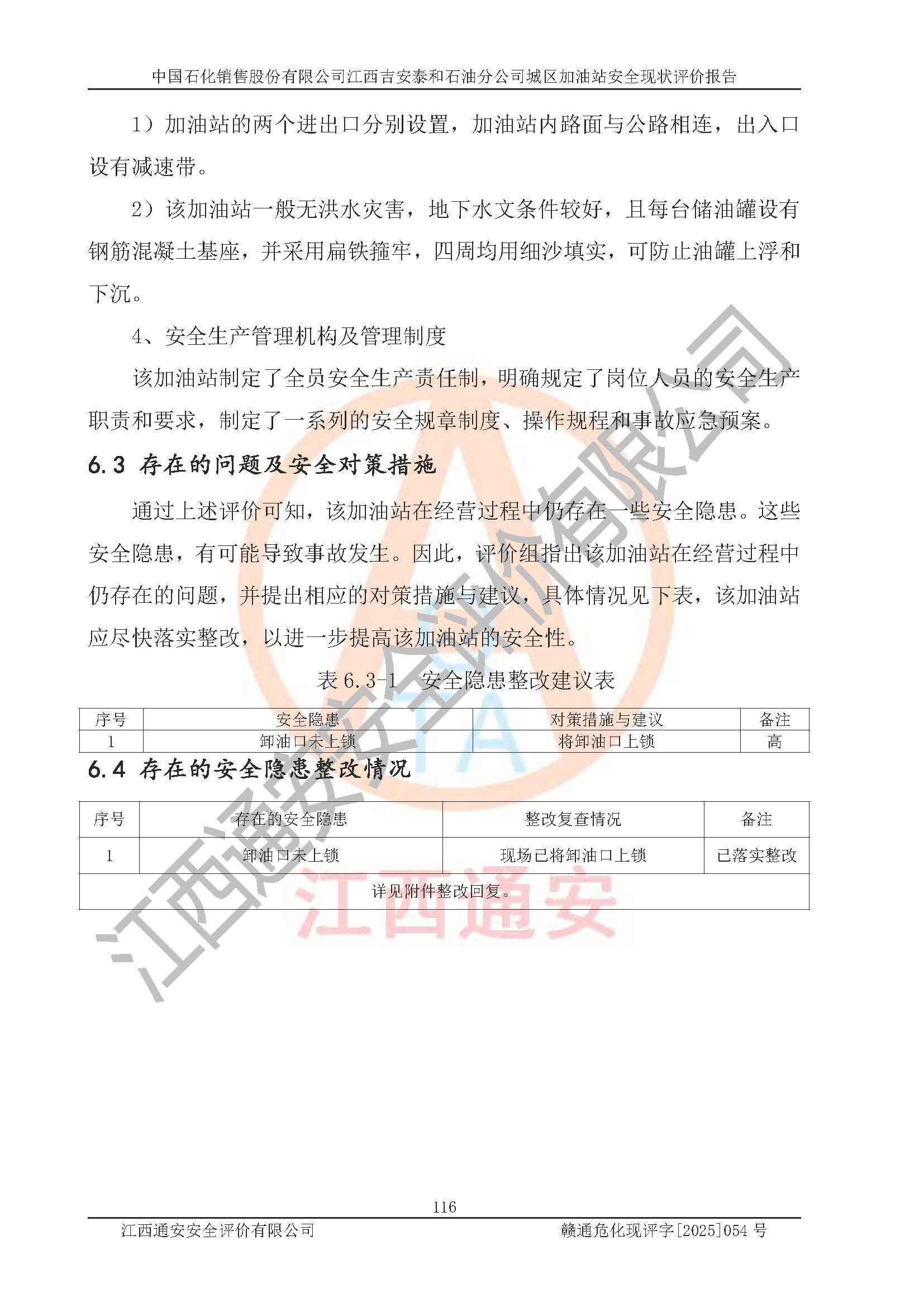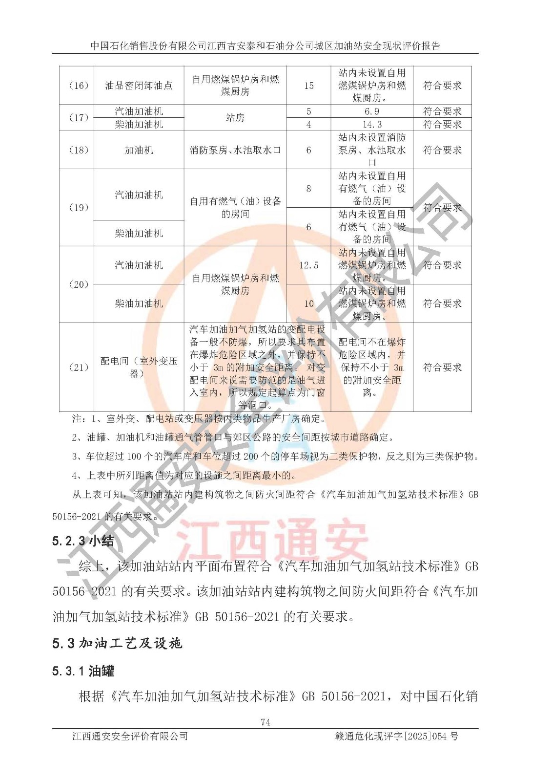 项目名称 | 中国石化销售股份有限公司江西吉安泰和石油分公司城区加油站 安全现状评价报告 | ||||