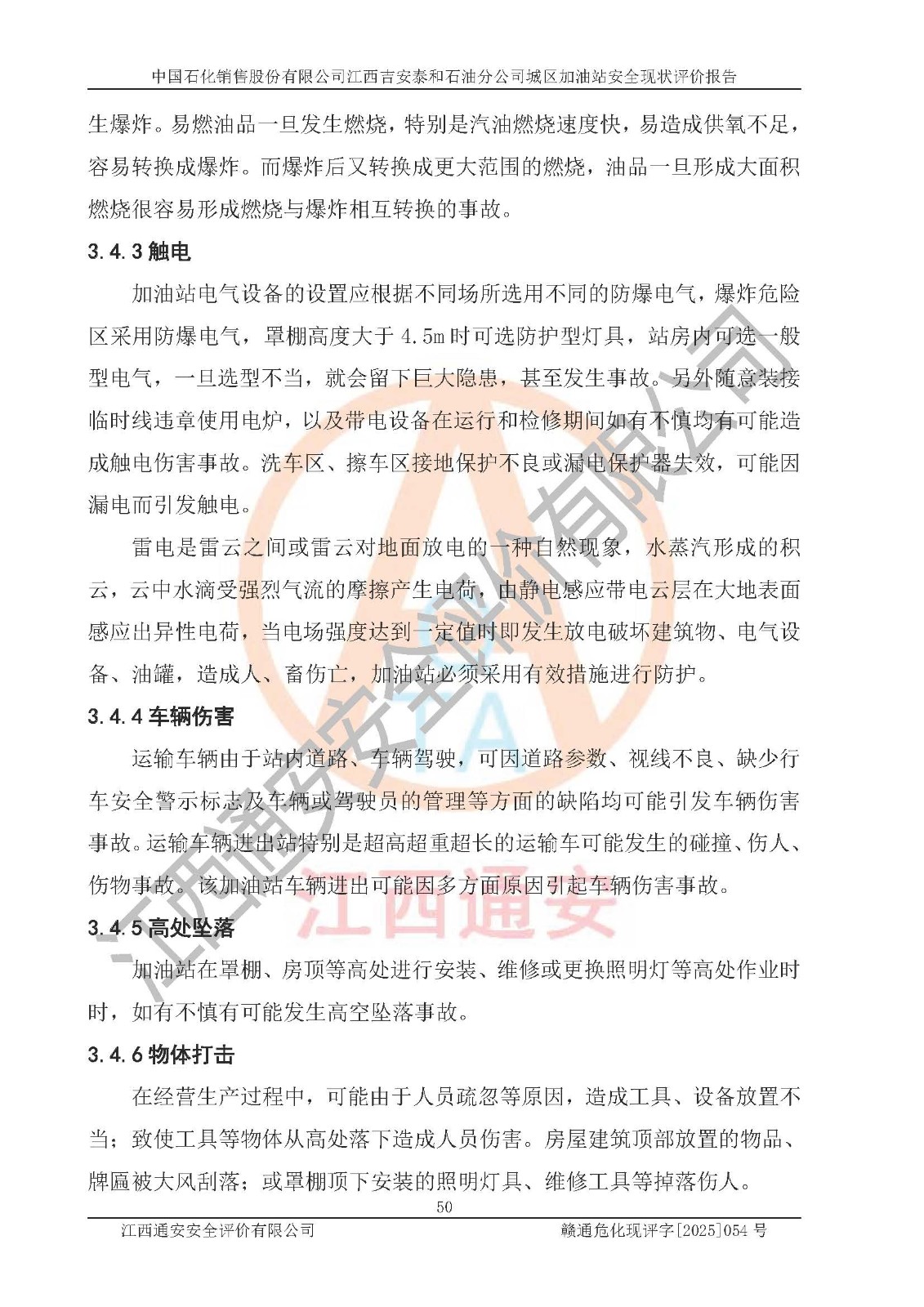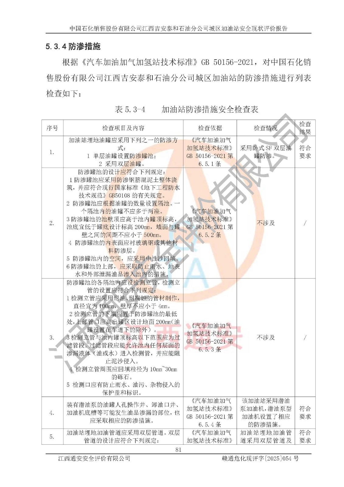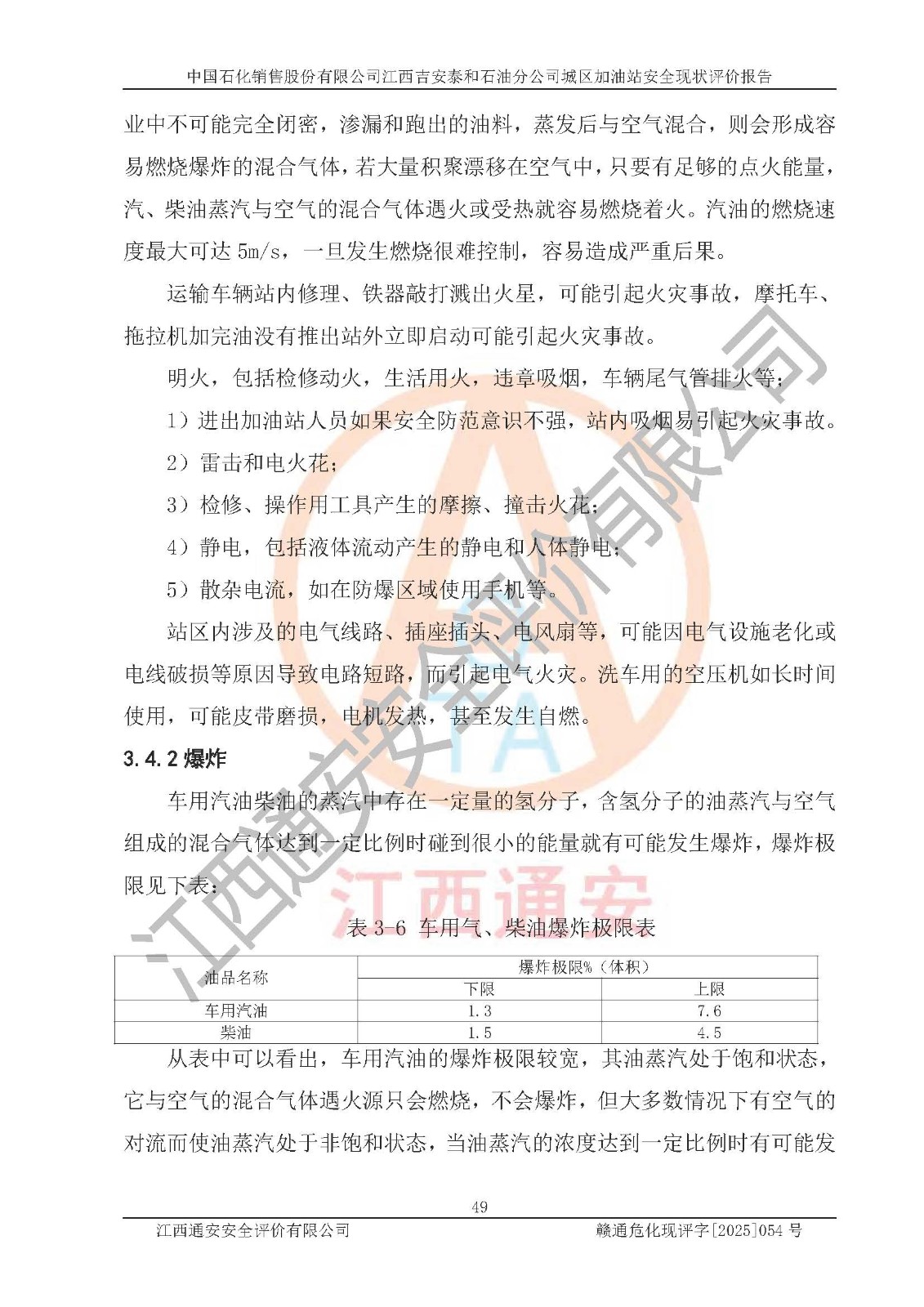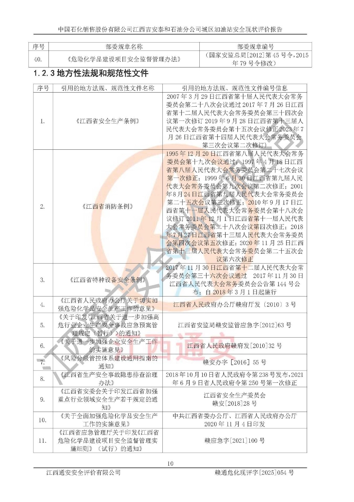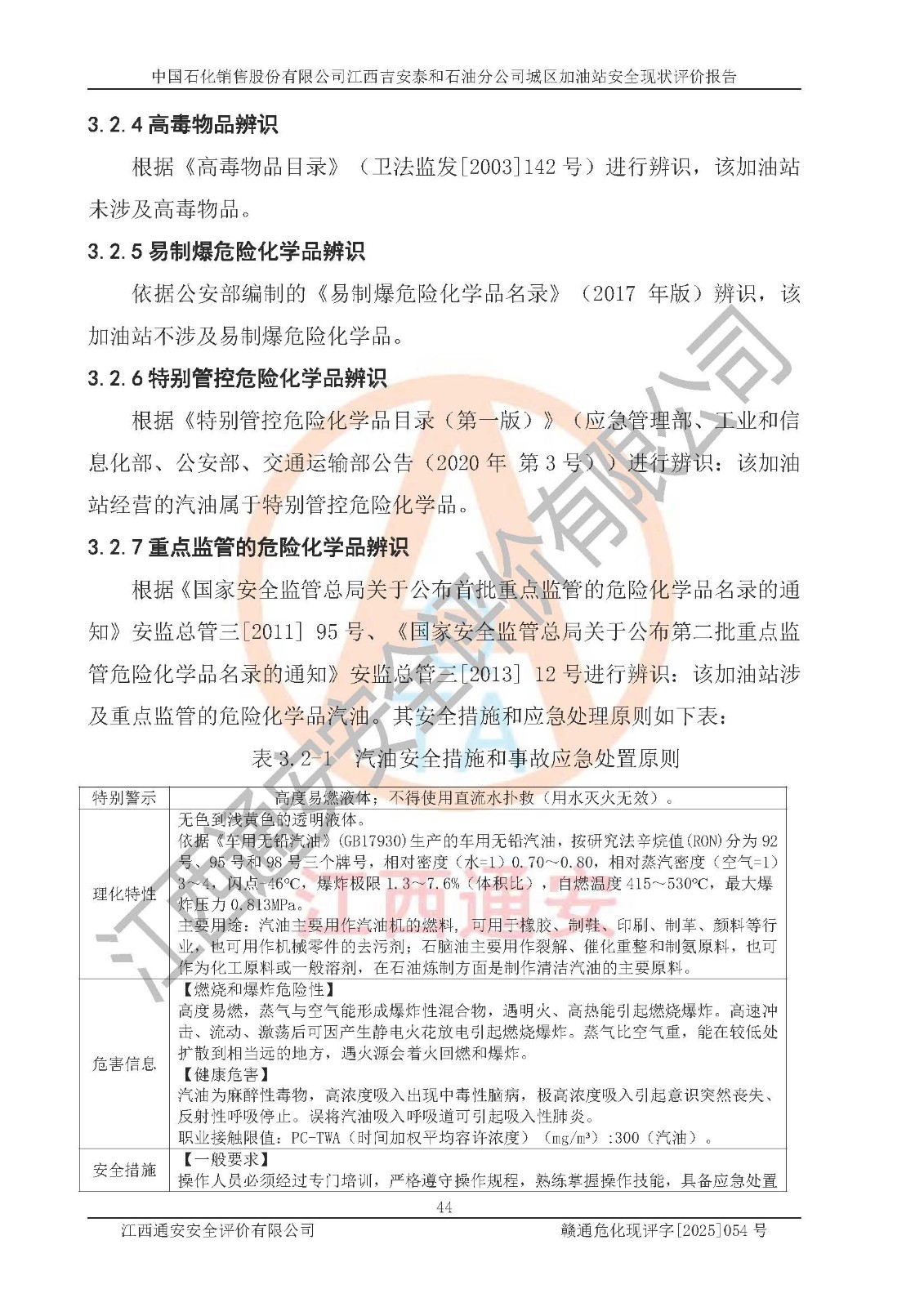 项目名称 | 中国石化销售股份有限公司江西吉安泰和石油分公司城区加油站 安全现状评价报告 | ||||