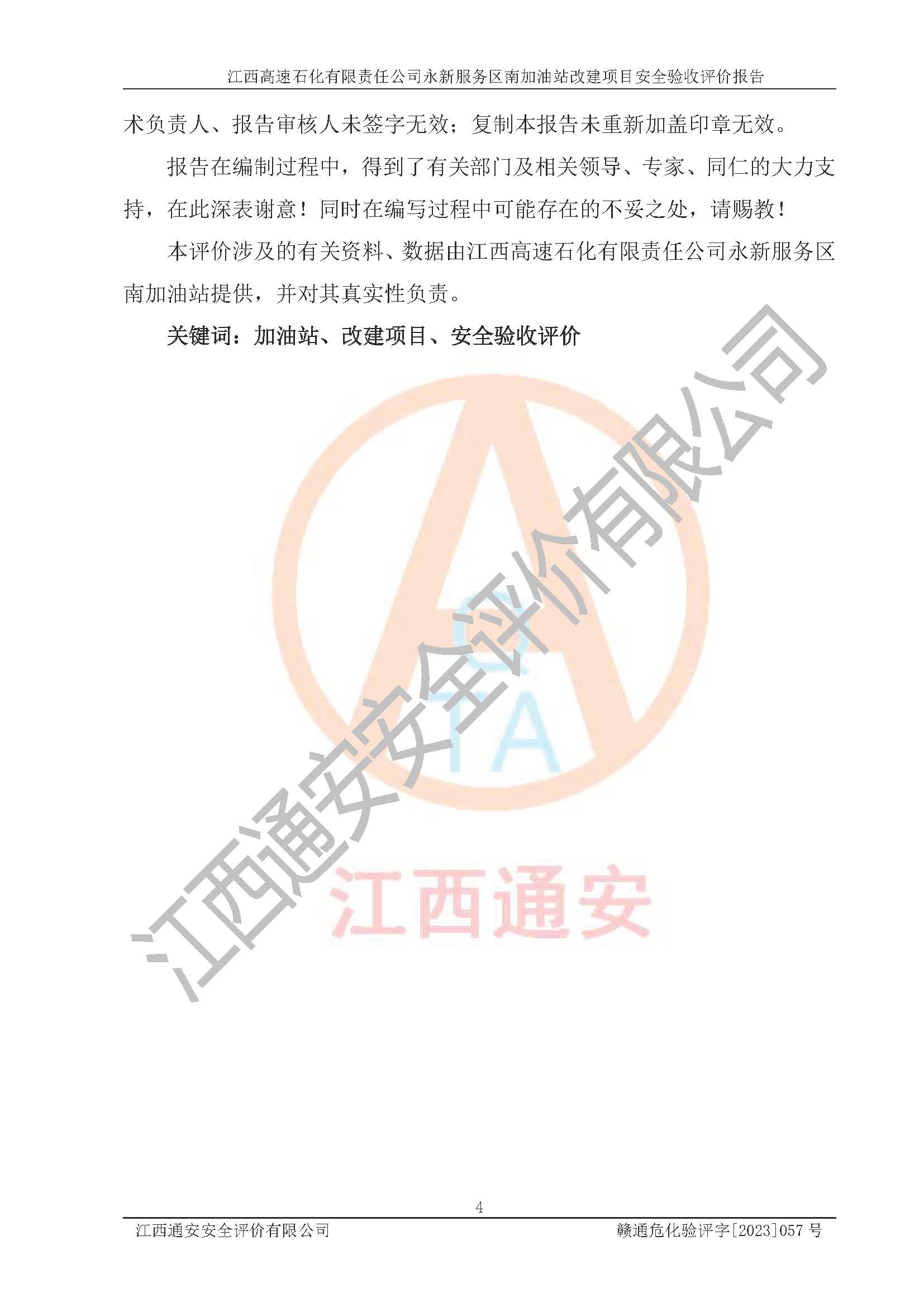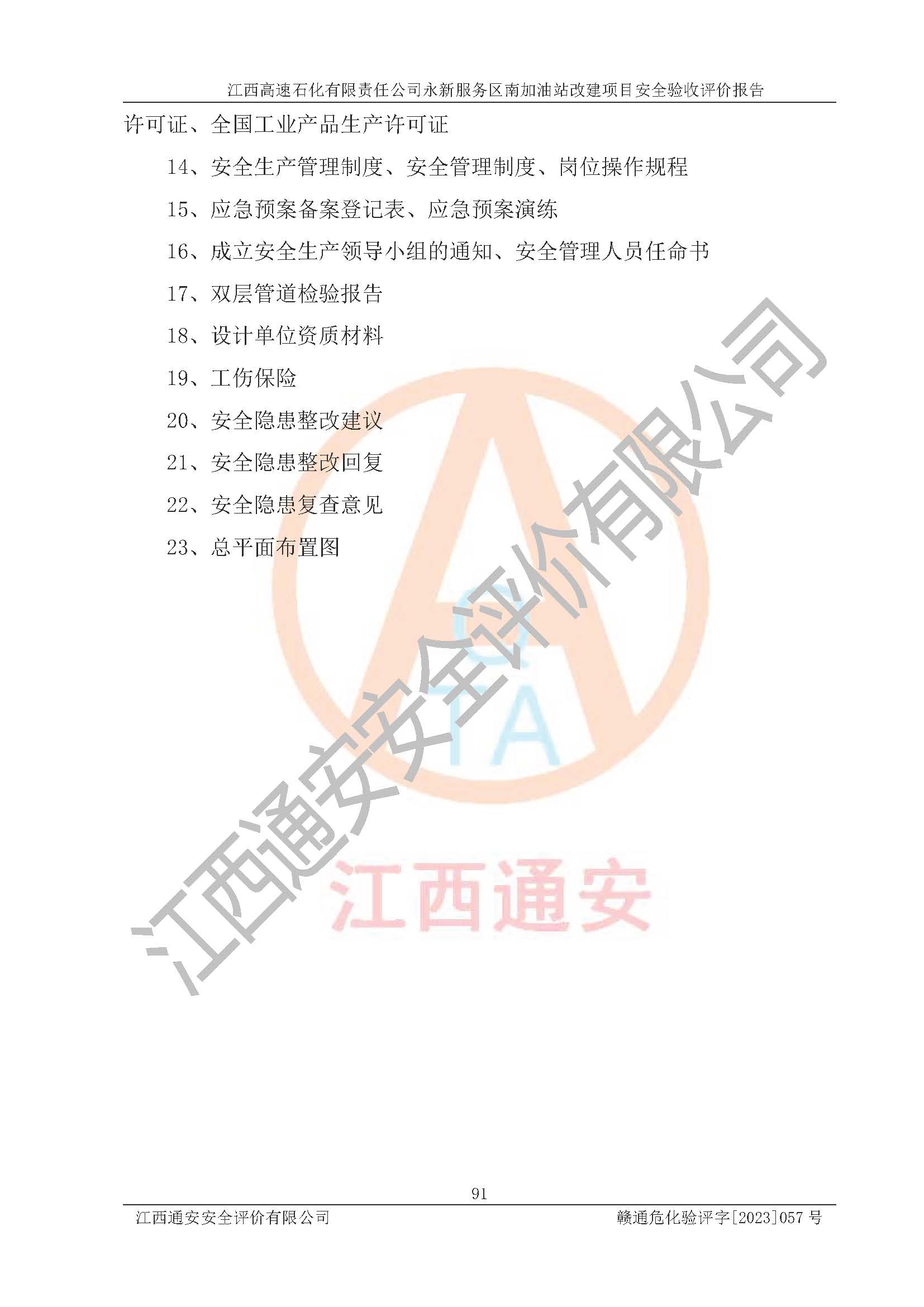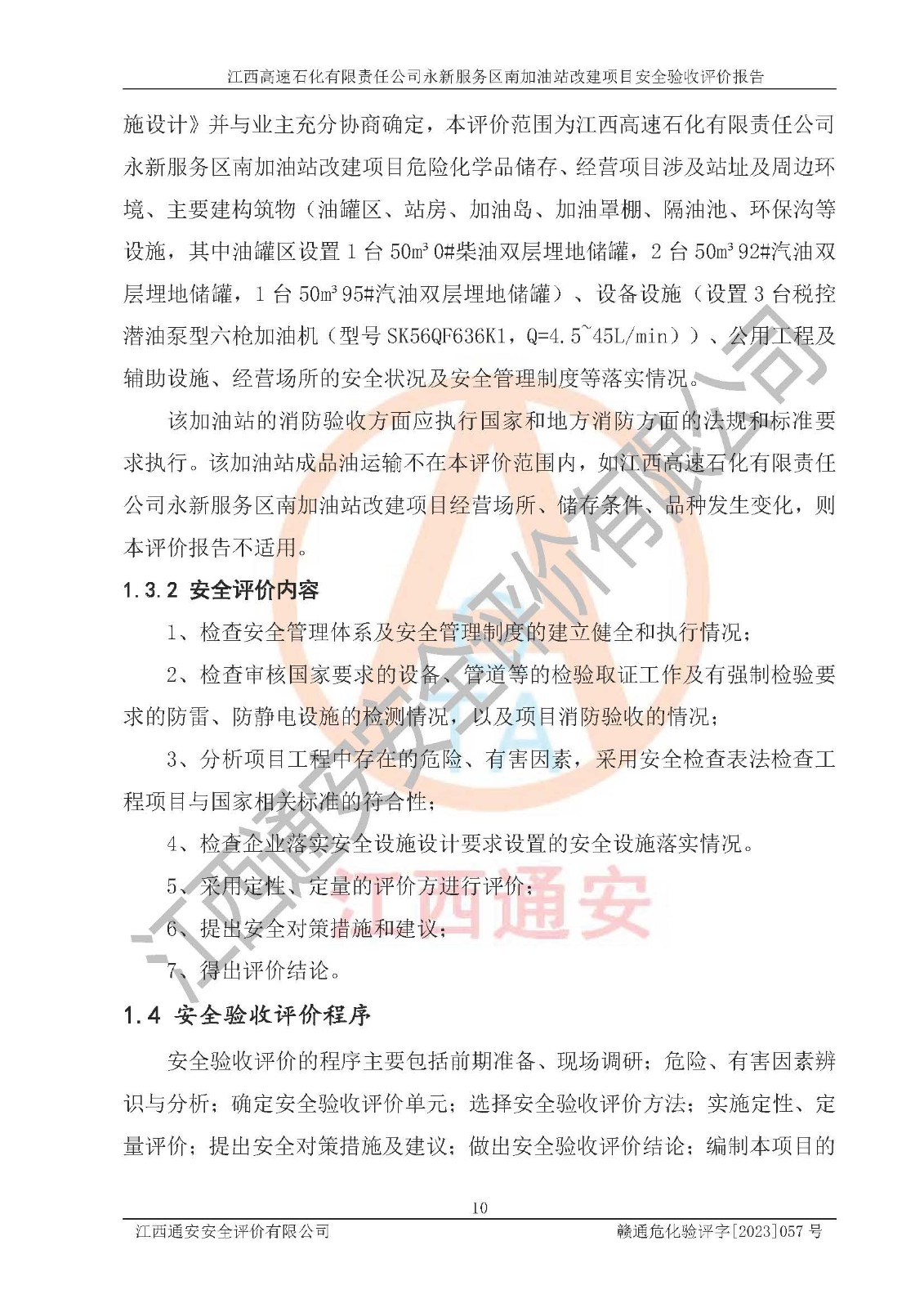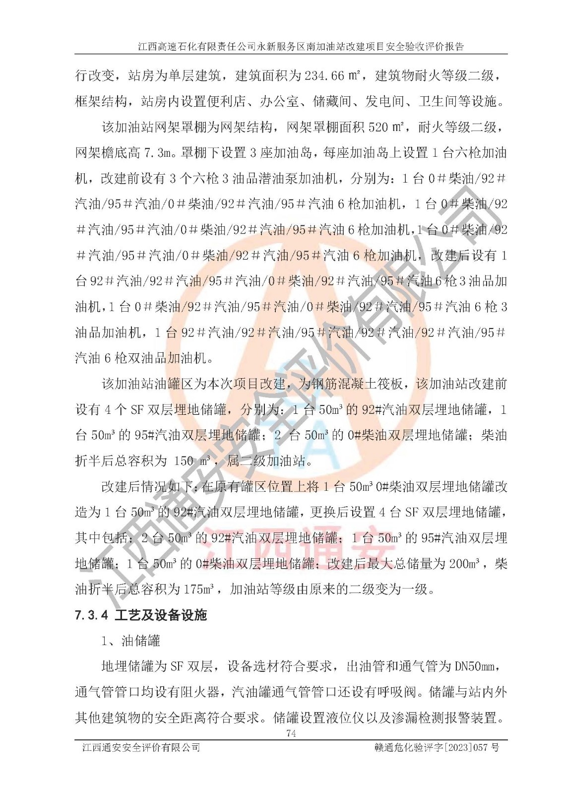 项目名称 | 江西高速石化有限责任公司永新服务区南加油站改建项目安全验收评价报告 | ||||