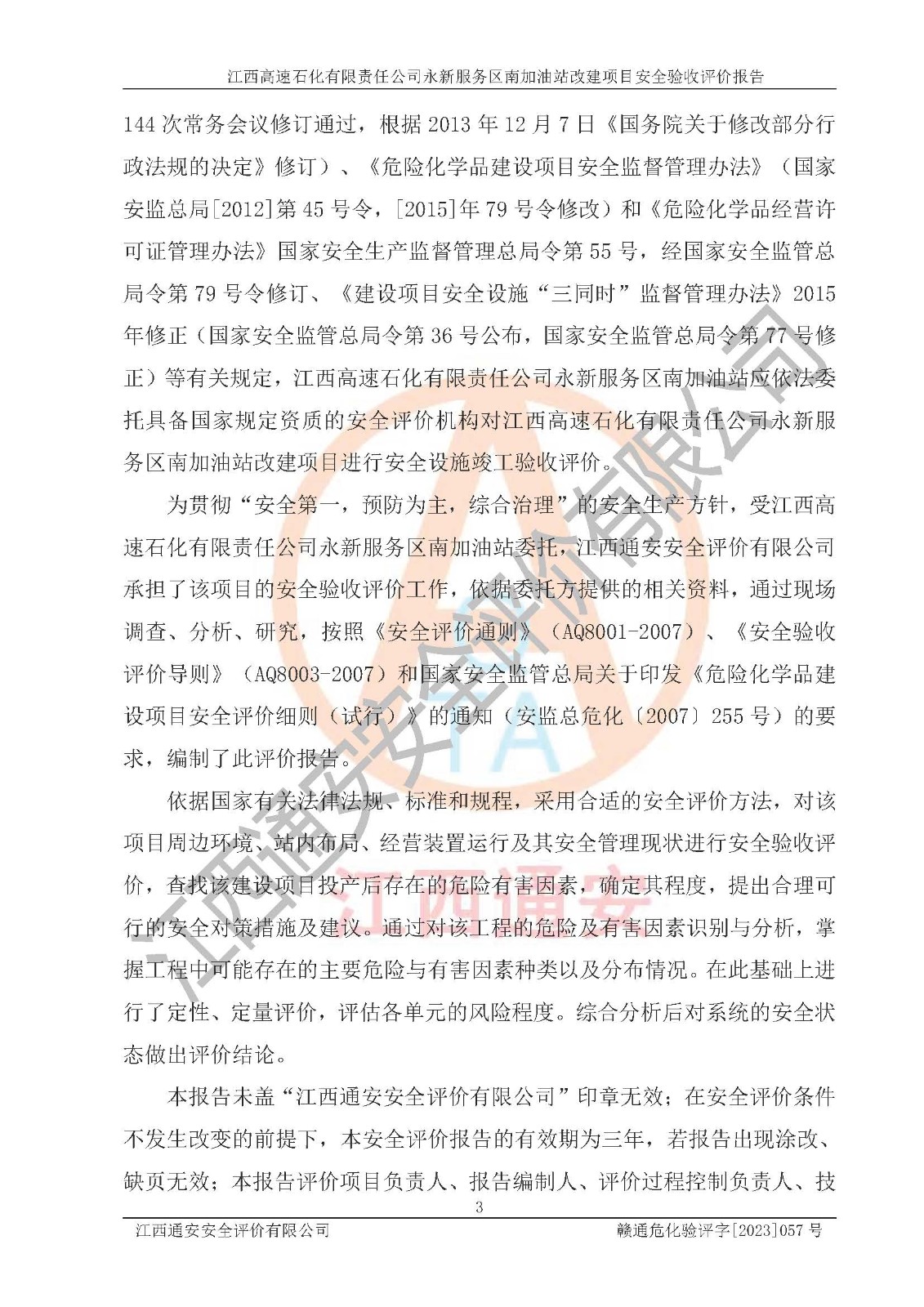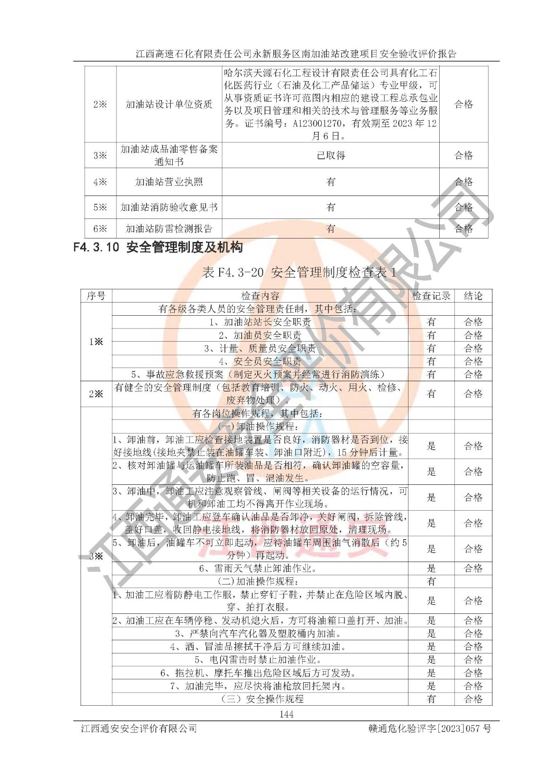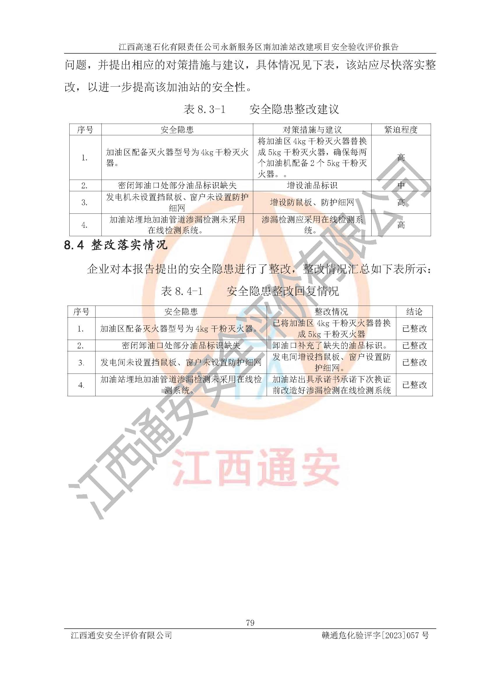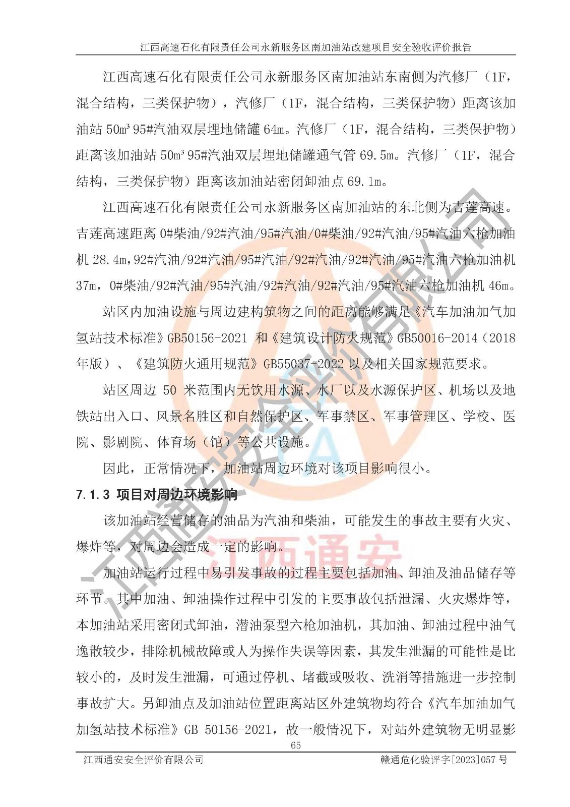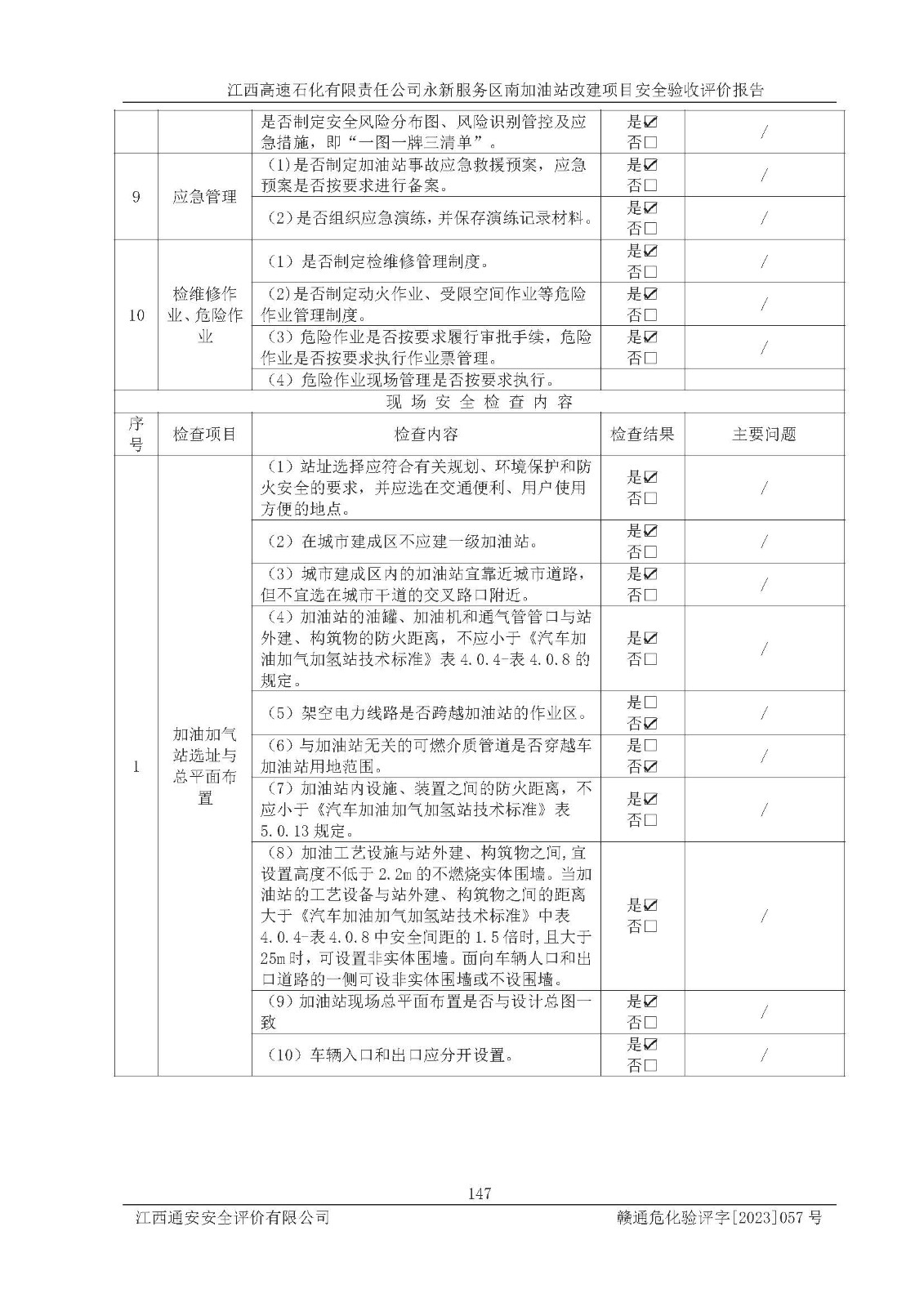 项目名称 | 江西高速石化有限责任公司永新服务区南加油站改建项目安全验收评价报告 | ||||