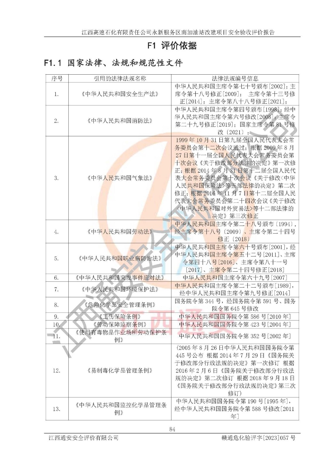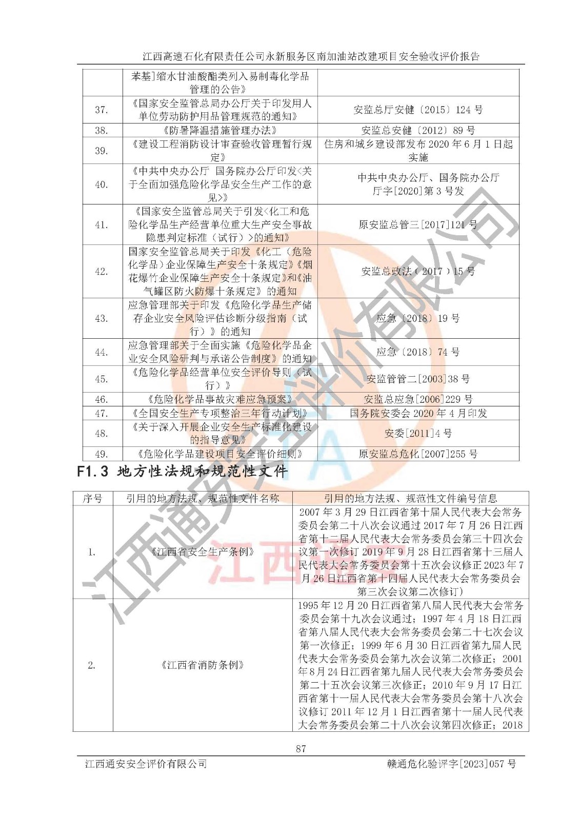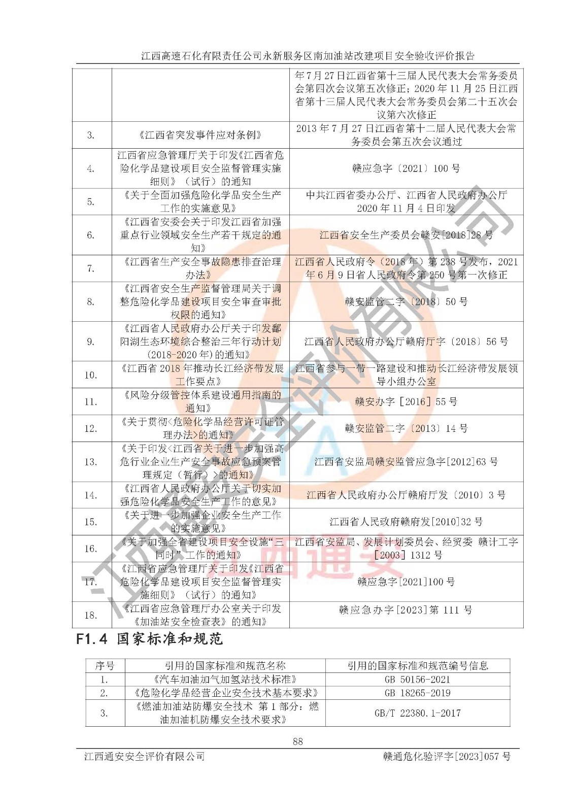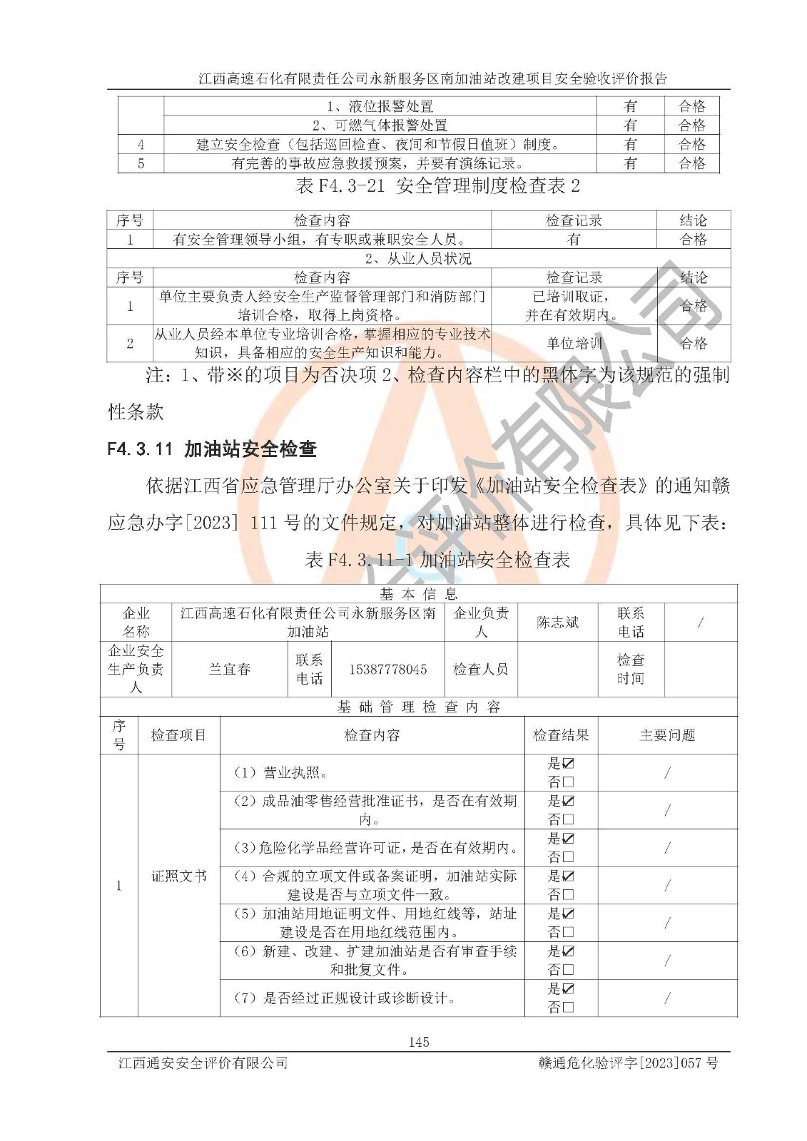 项目名称 | 江西高速石化有限责任公司永新服务区南加油站改建项目安全验收评价报告 | ||||
