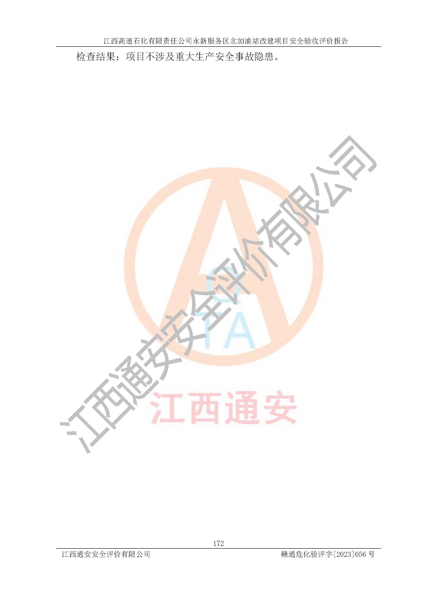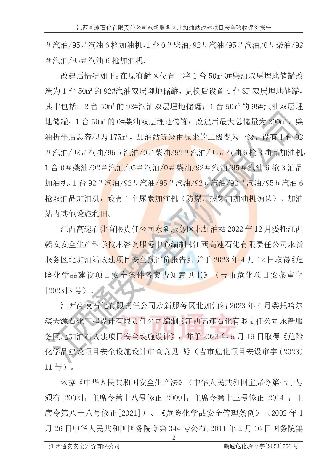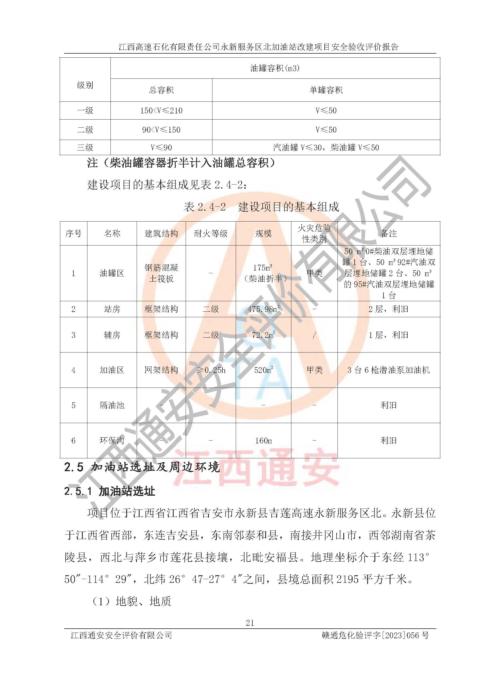 项目名称 | 江西高速石化有限责任公司永新服务区北加油站改建项目安全验收评价报告 | ||||