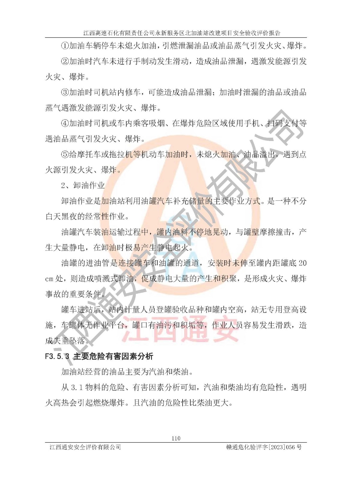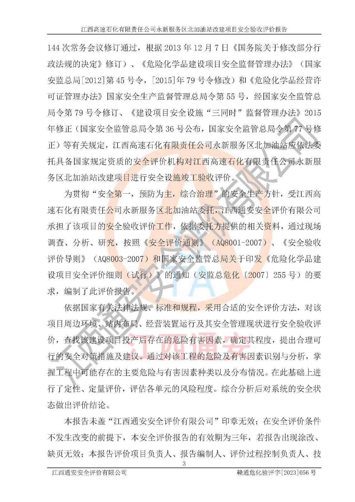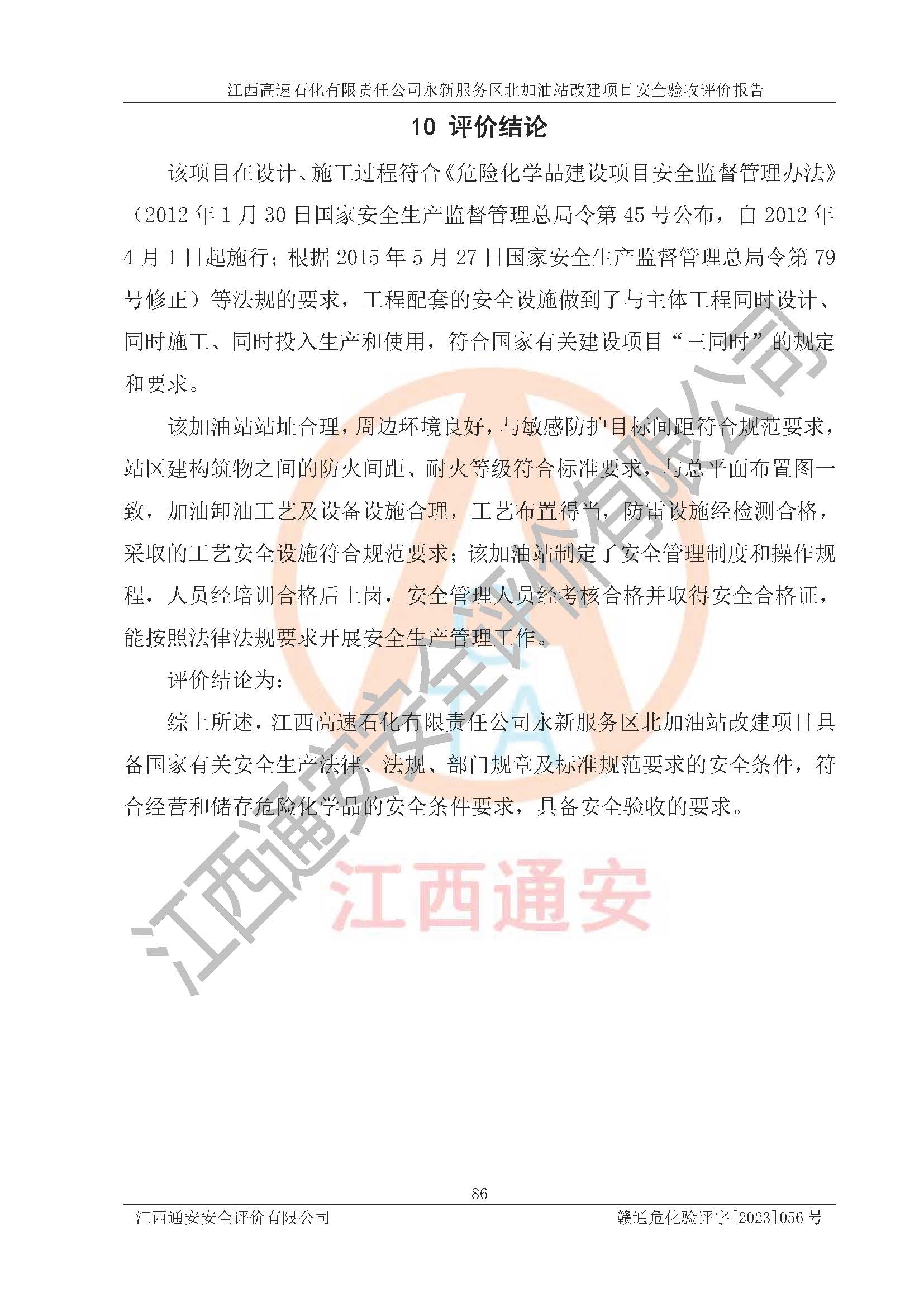 项目名称 | 江西高速石化有限责任公司永新服务区北加油站改建项目安全验收评价报告 | ||||