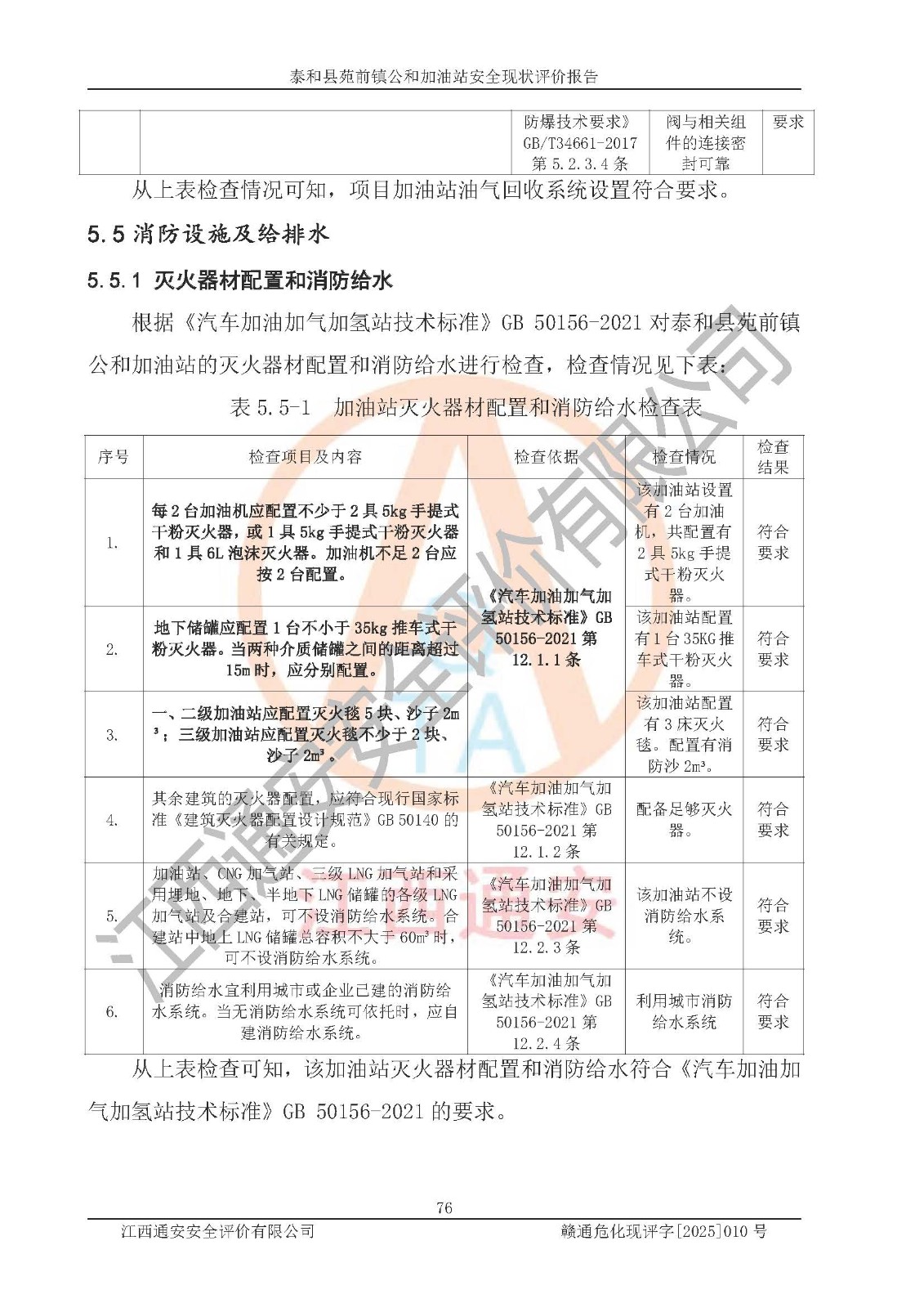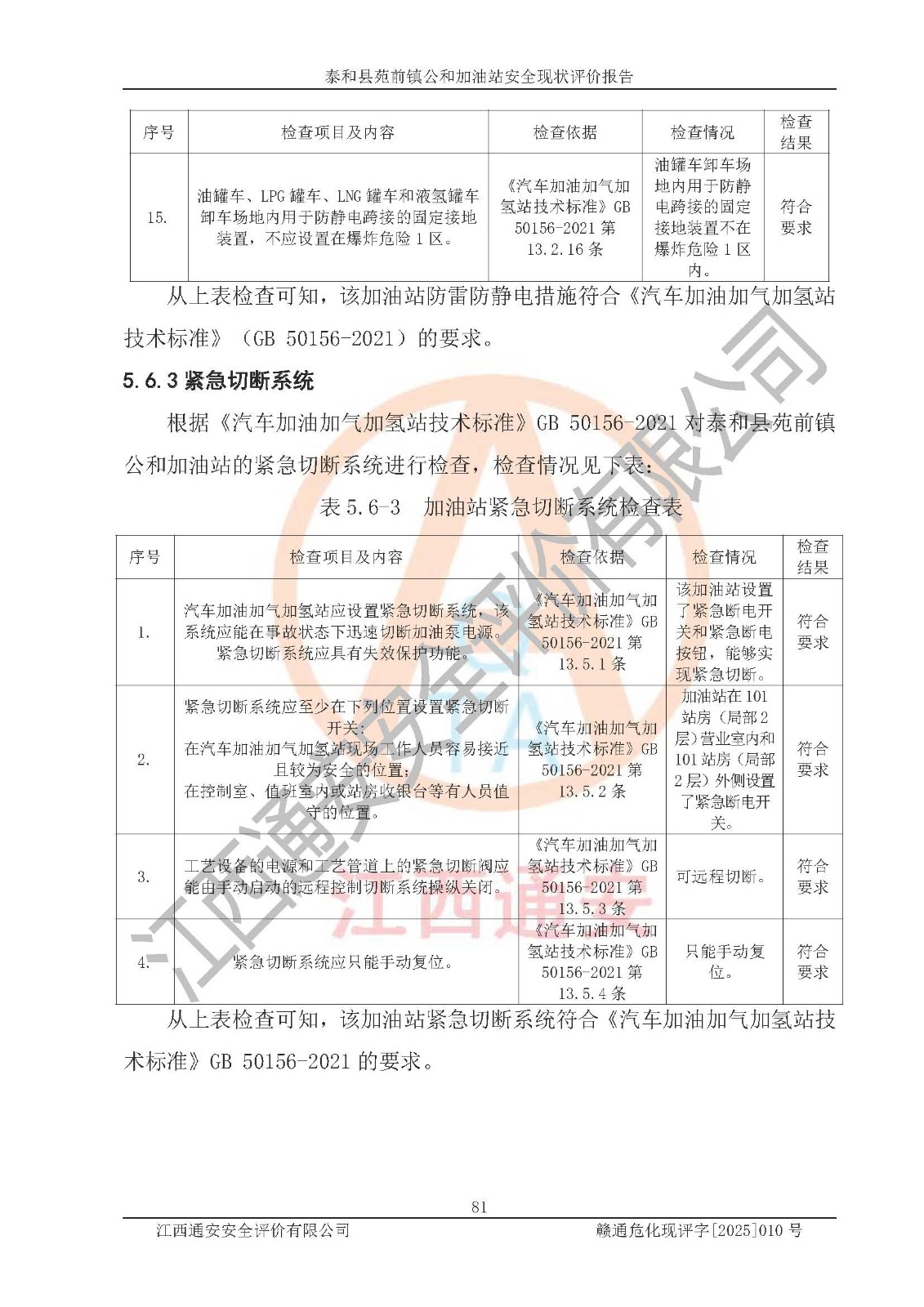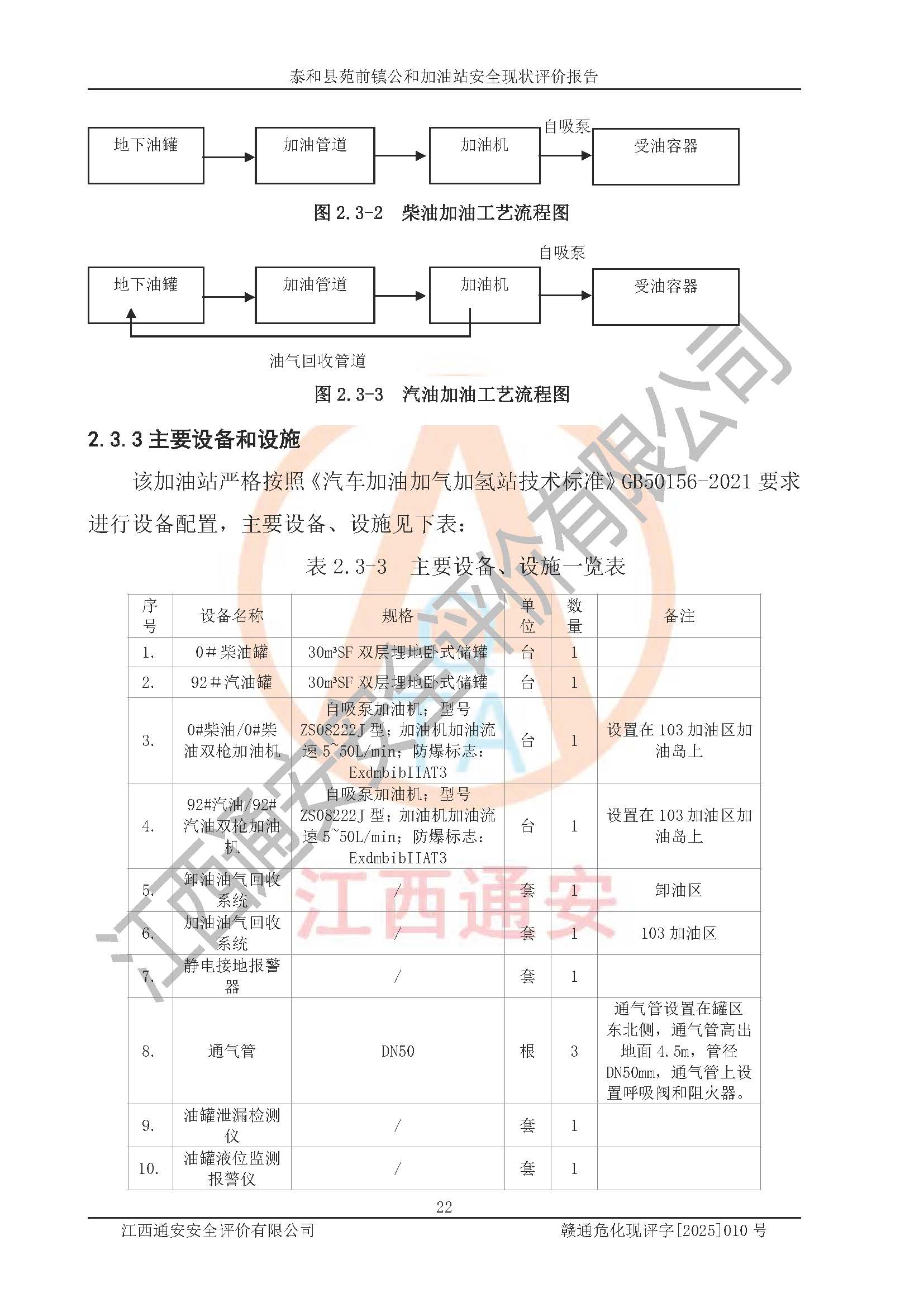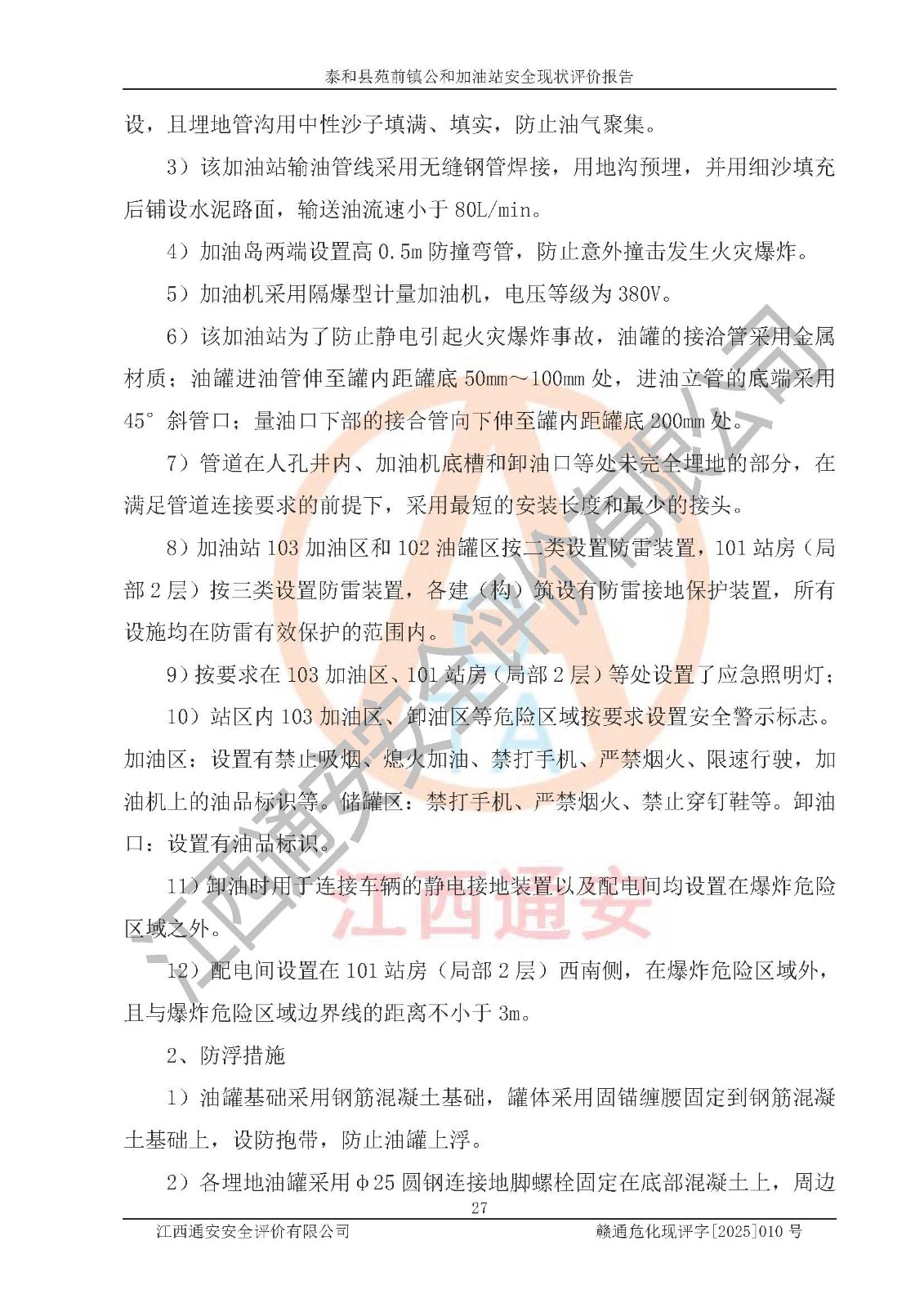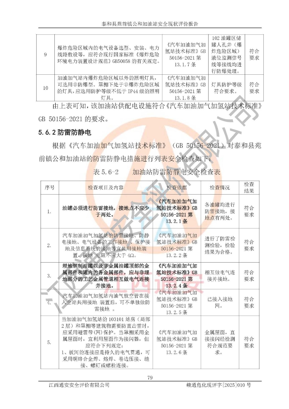项目名称 | 泰和县苑前镇公和加油站安全现状评价报告 | ||||