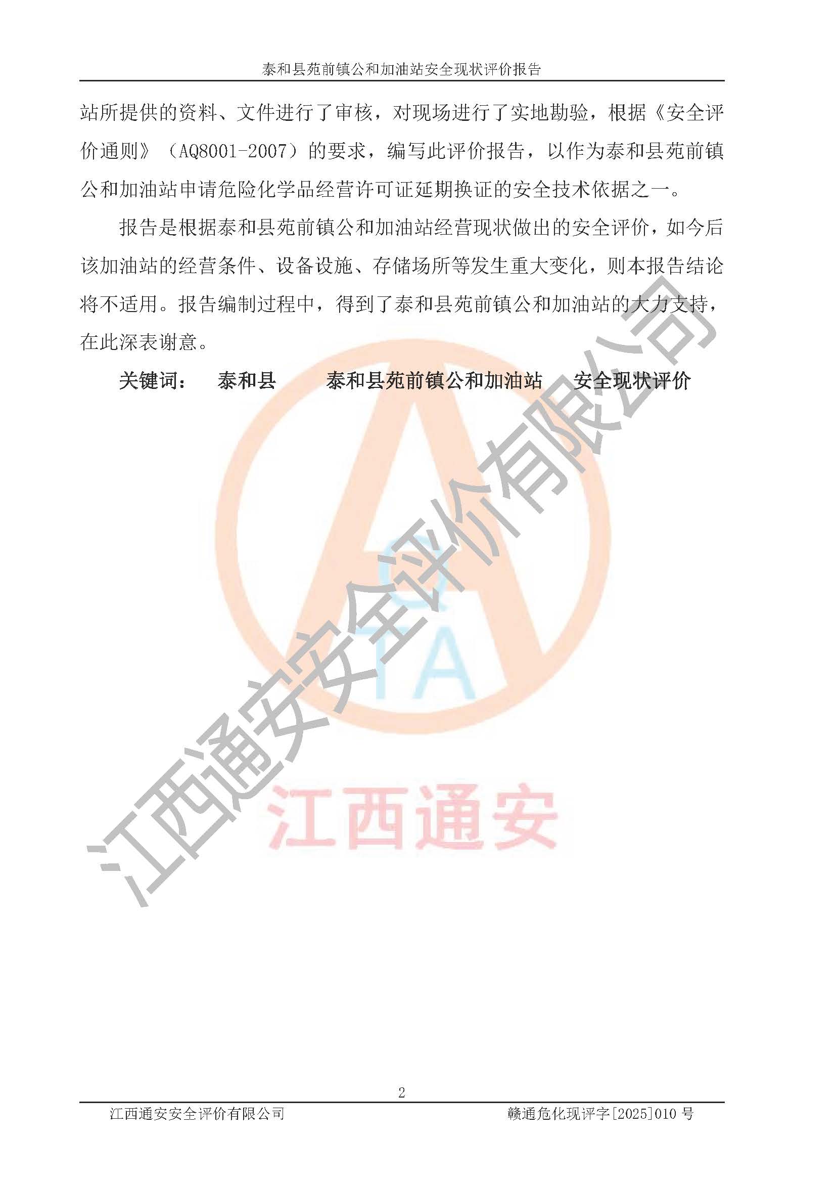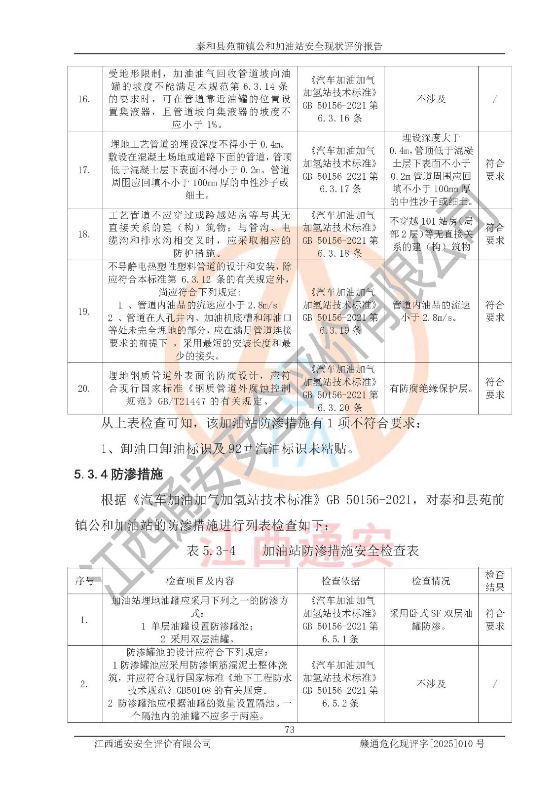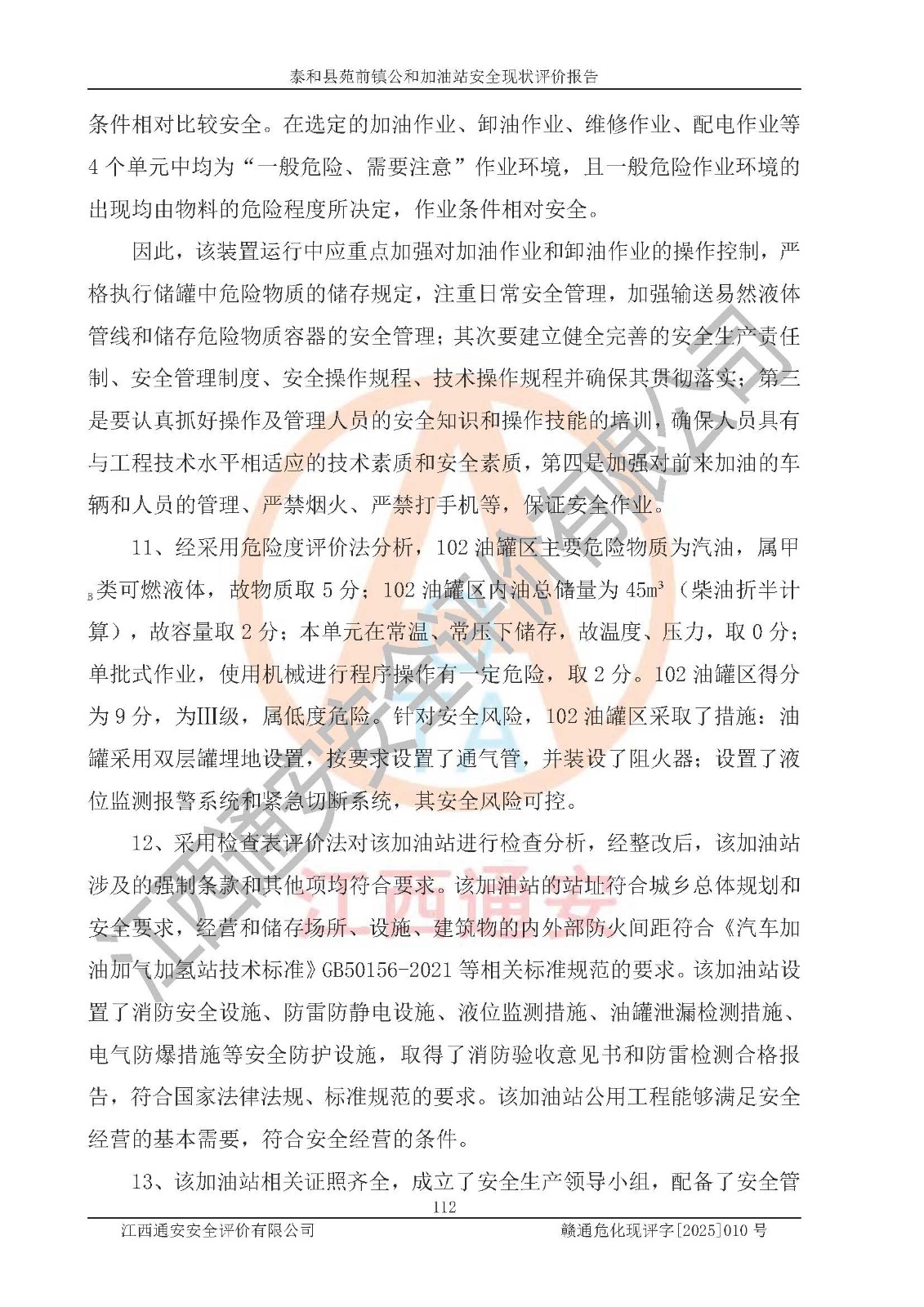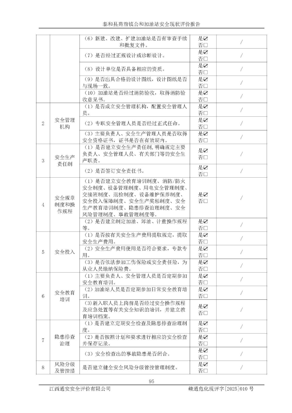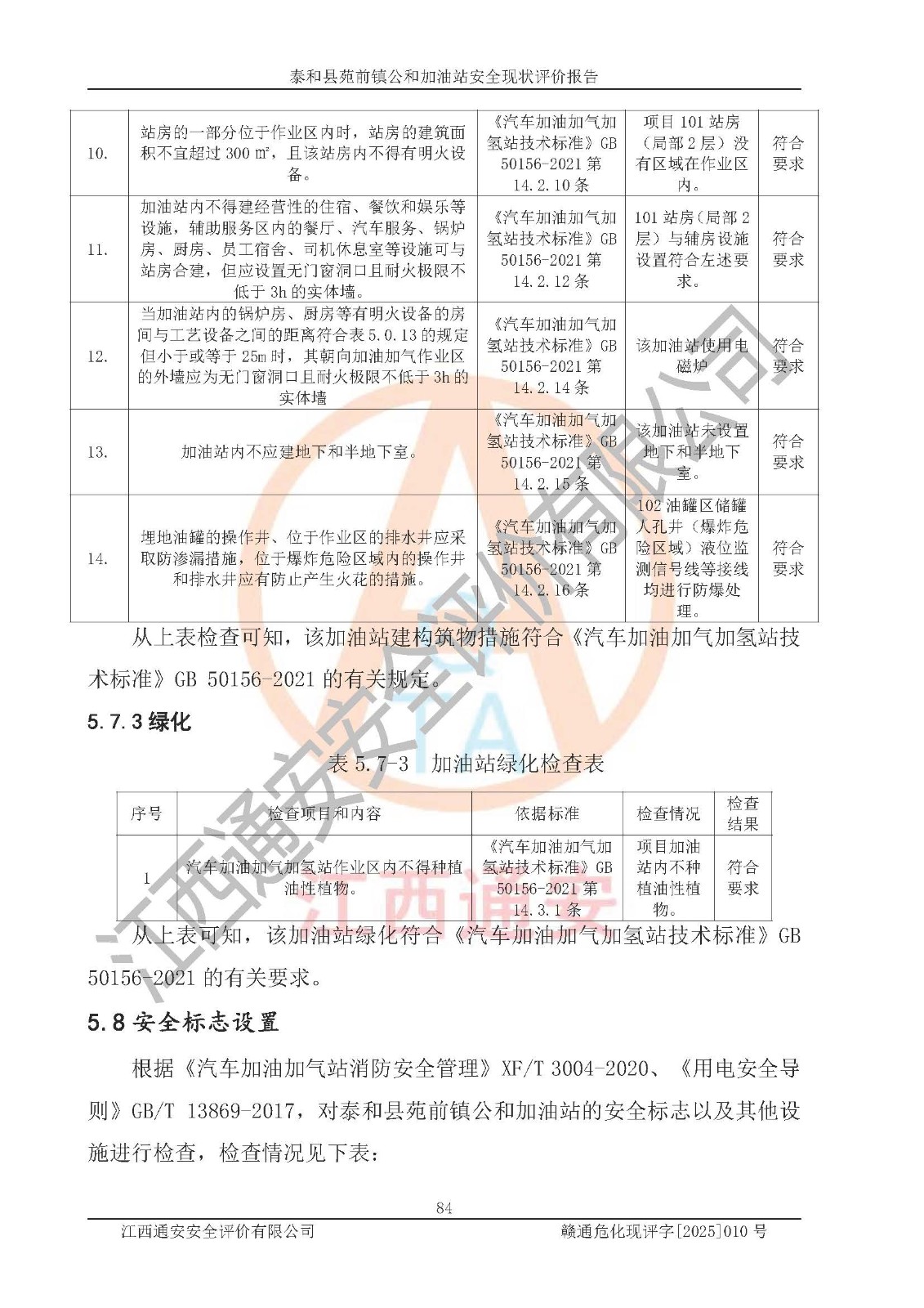 项目名称 | 泰和县苑前镇公和加油站安全现状评价报告 | ||||