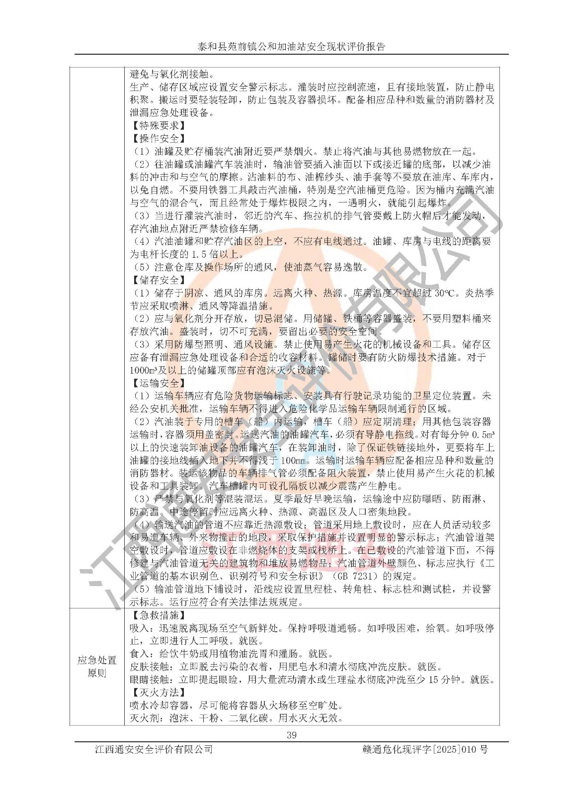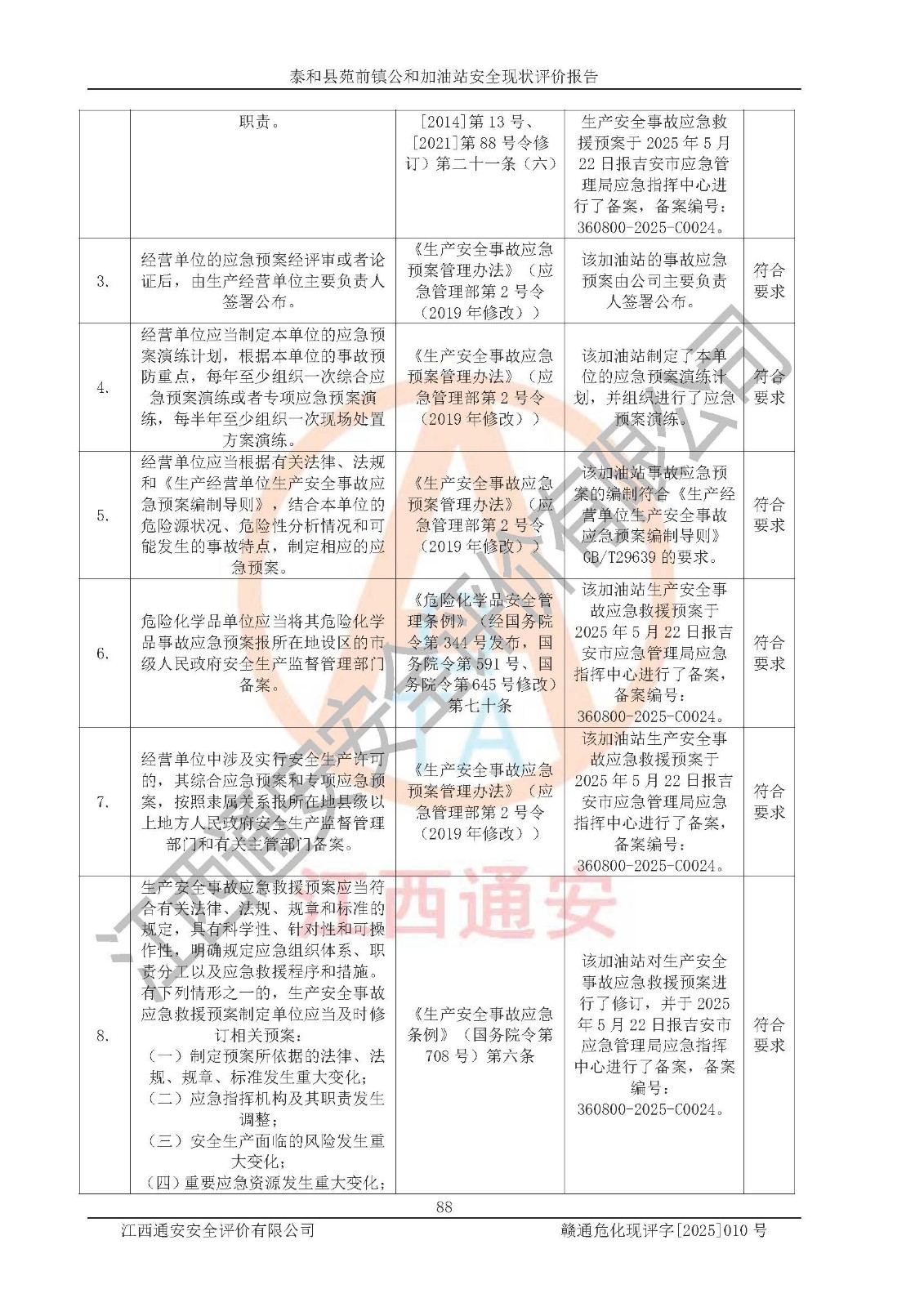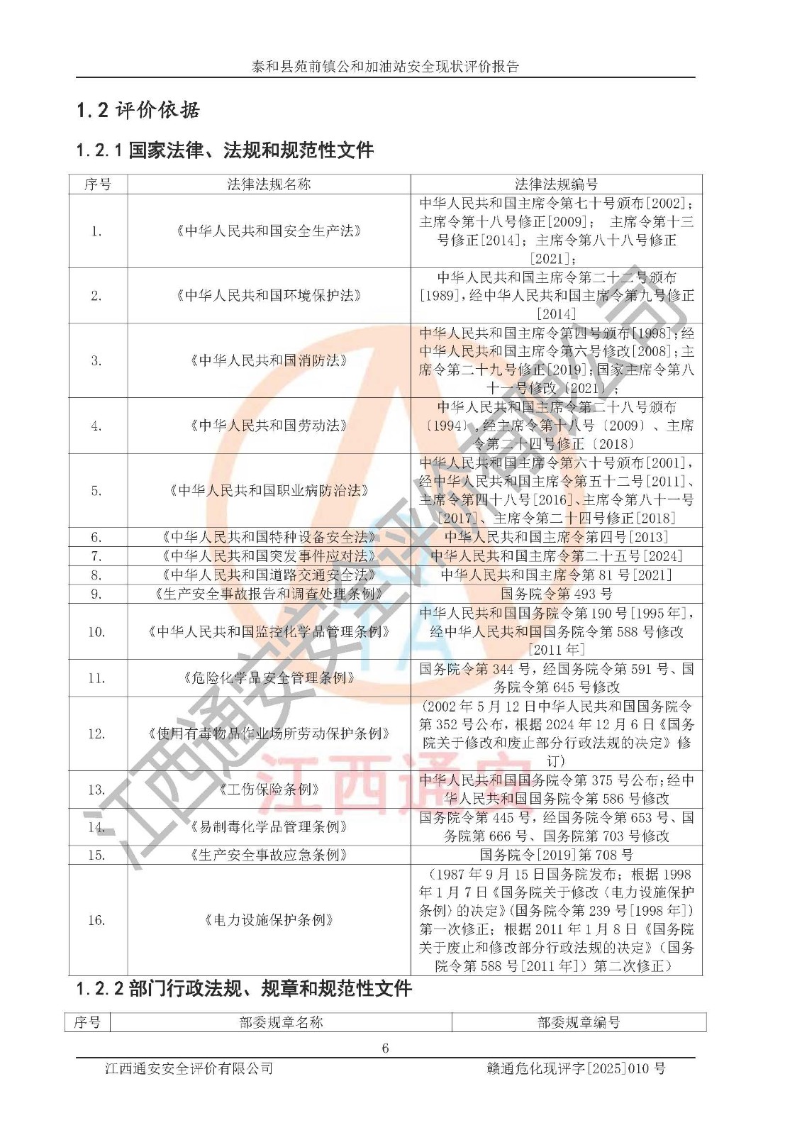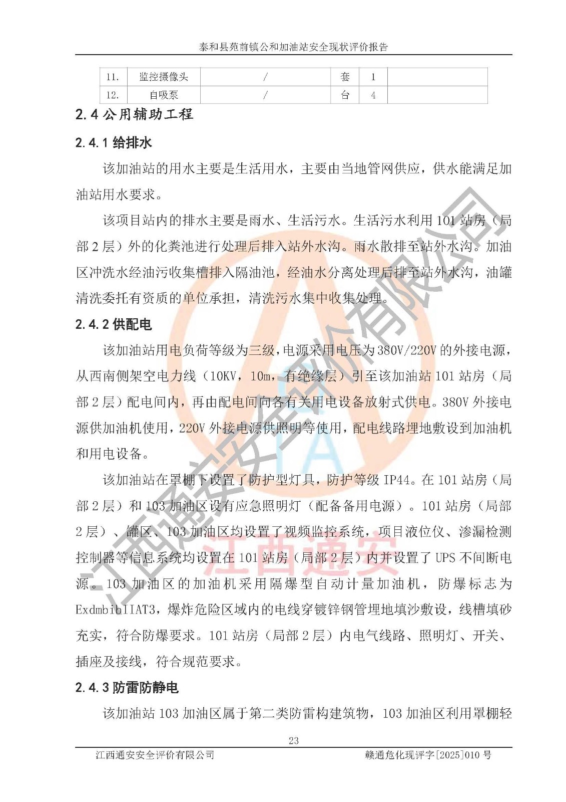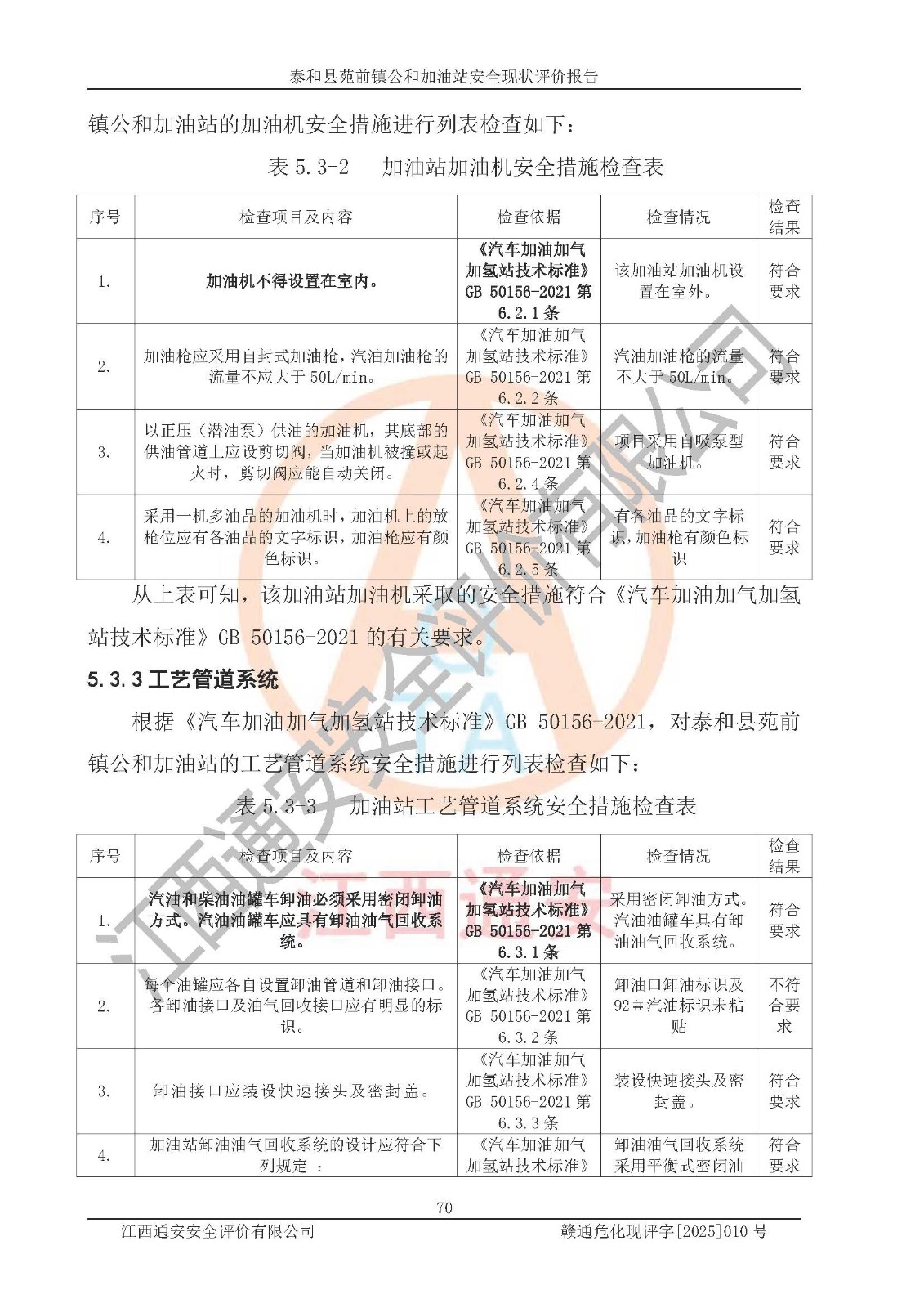 项目名称 | 泰和县苑前镇公和加油站安全现状评价报告 | ||||