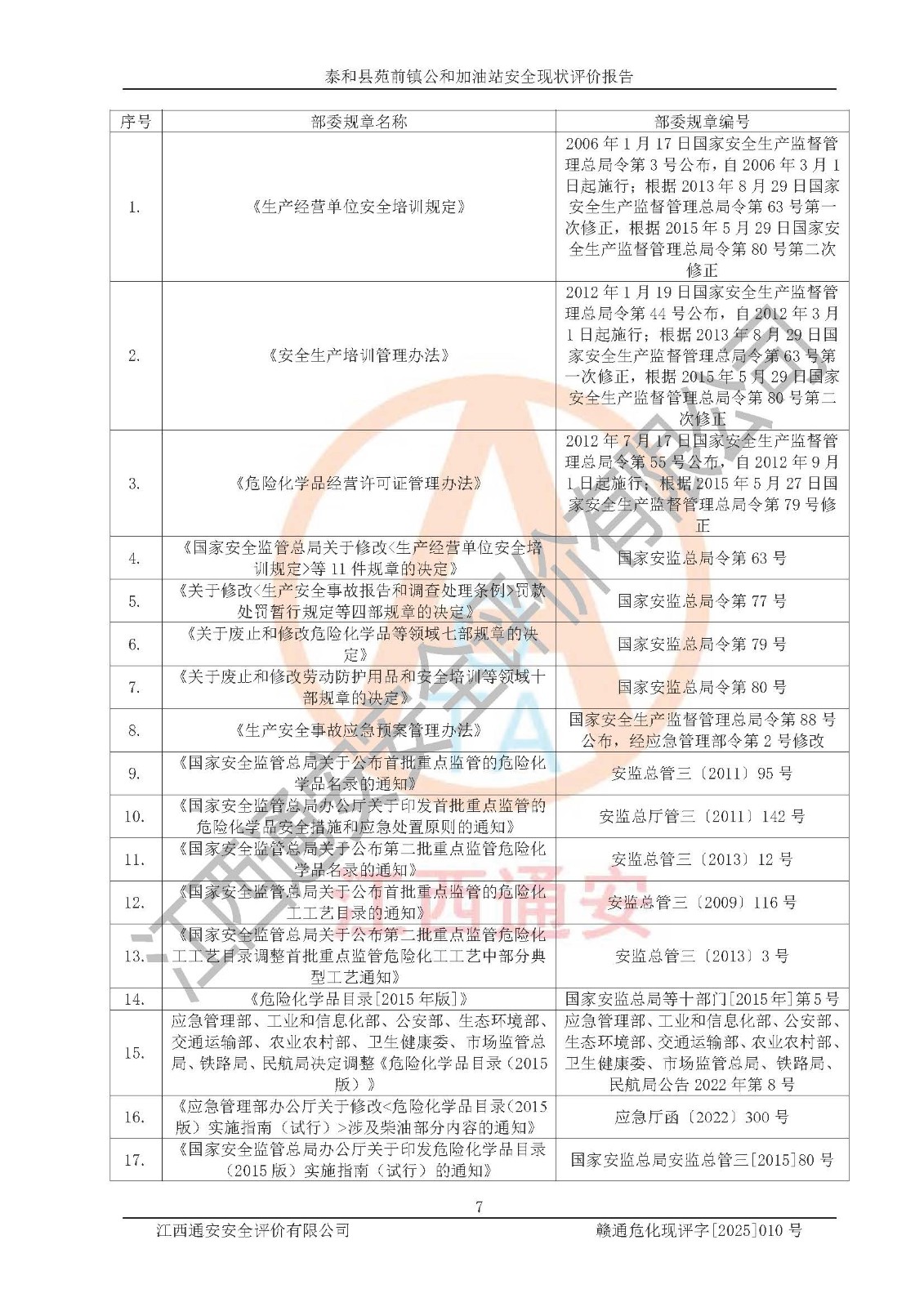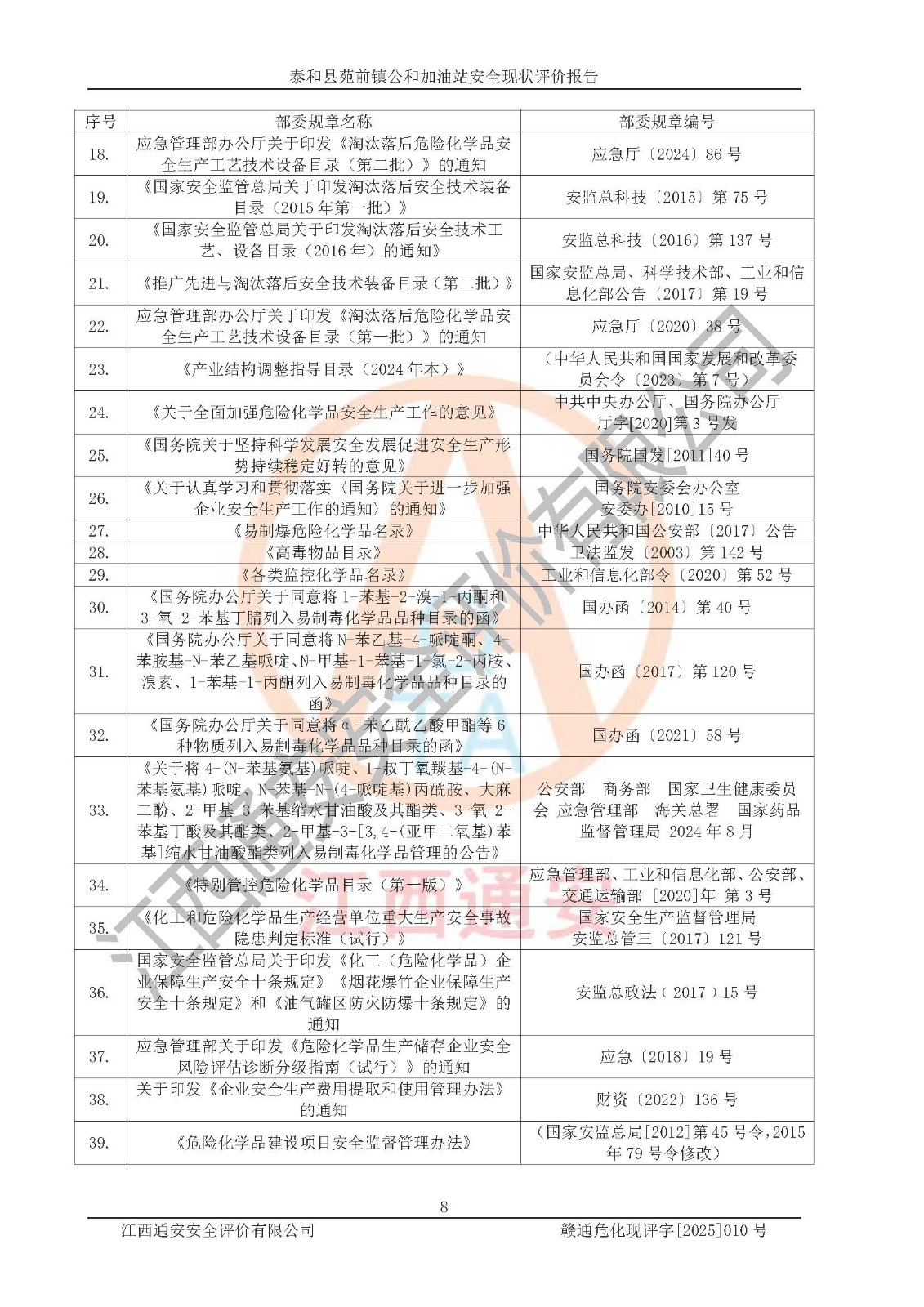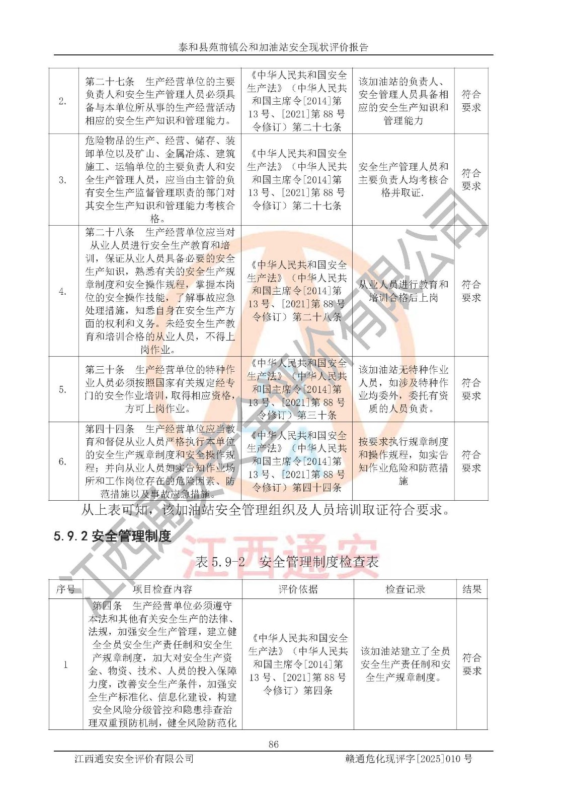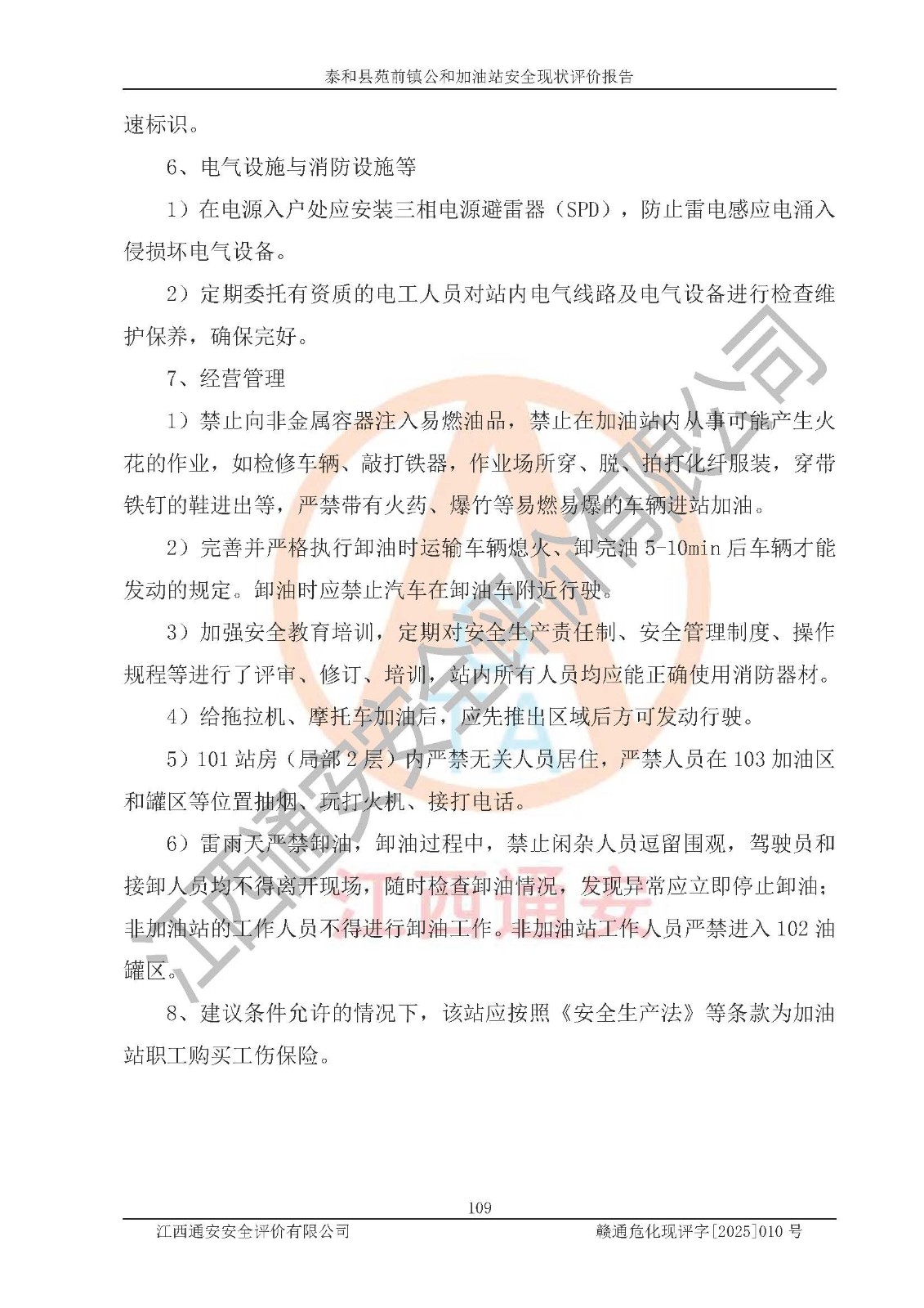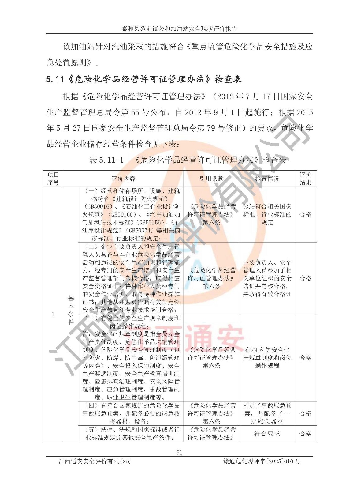 项目名称 | 泰和县苑前镇公和加油站安全现状评价报告 | ||||