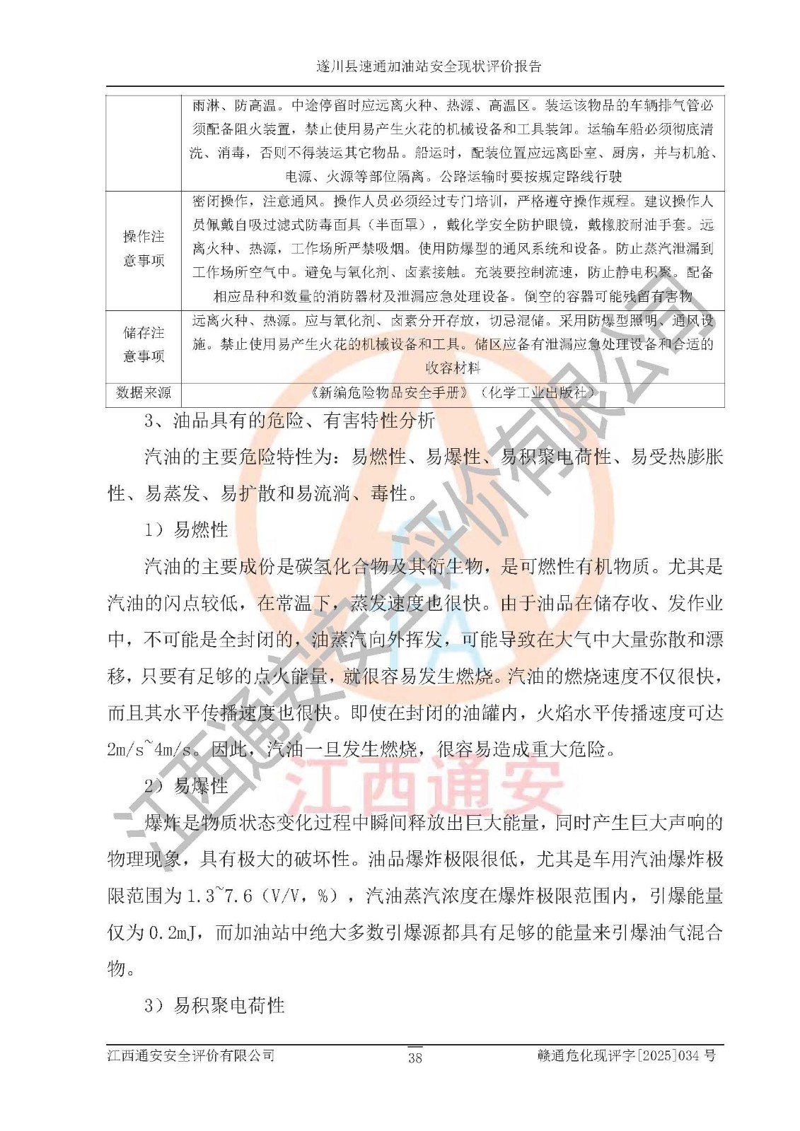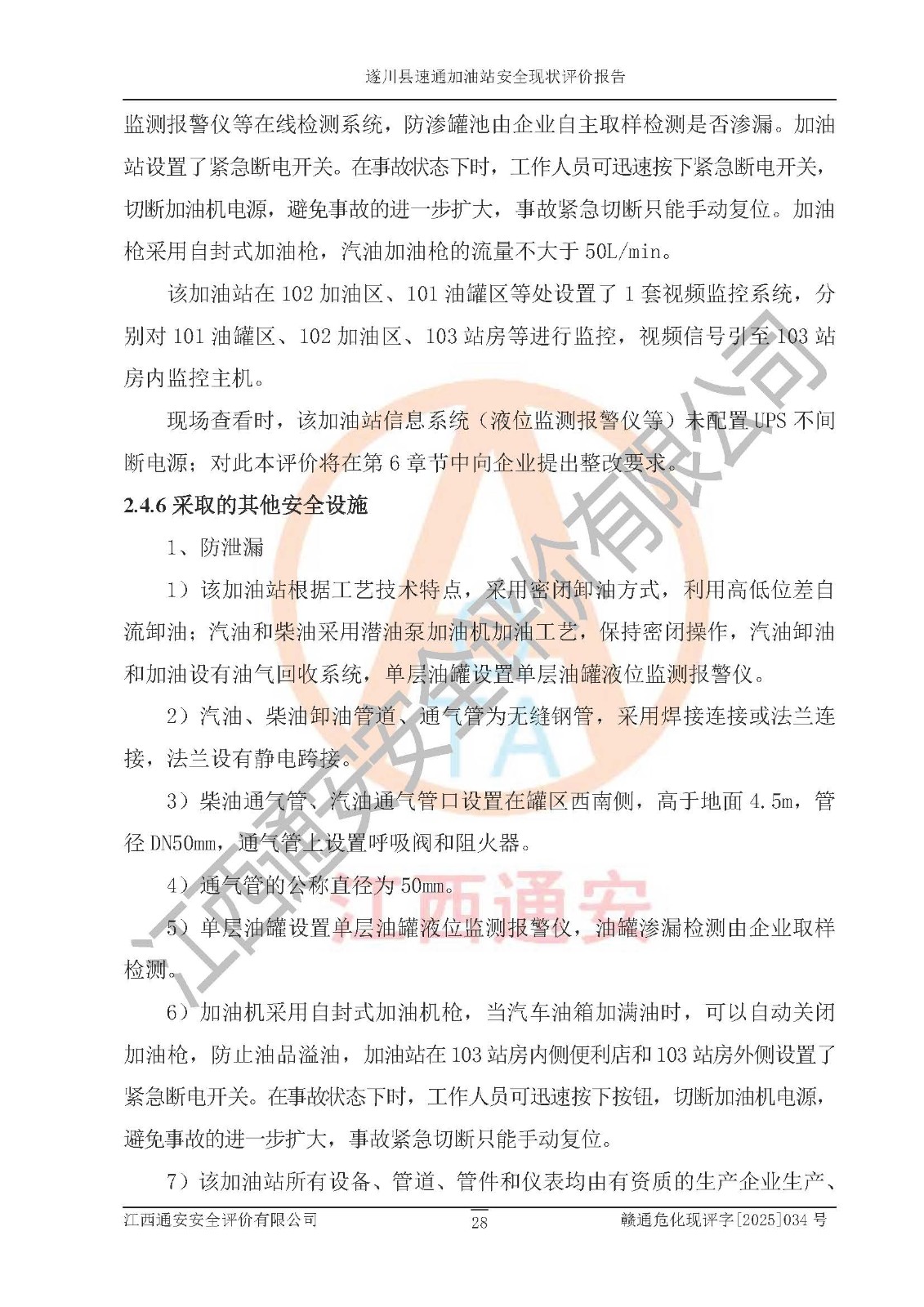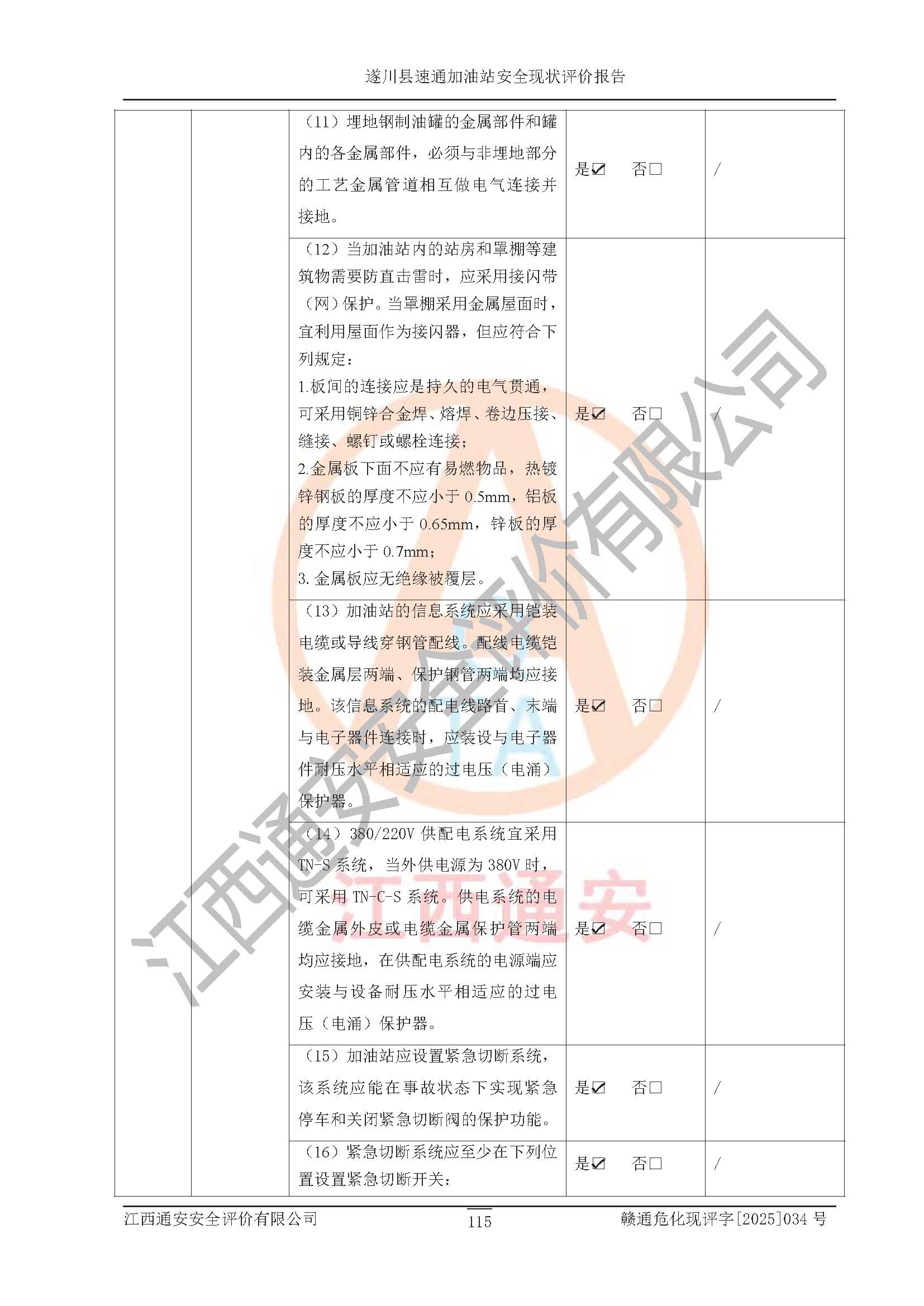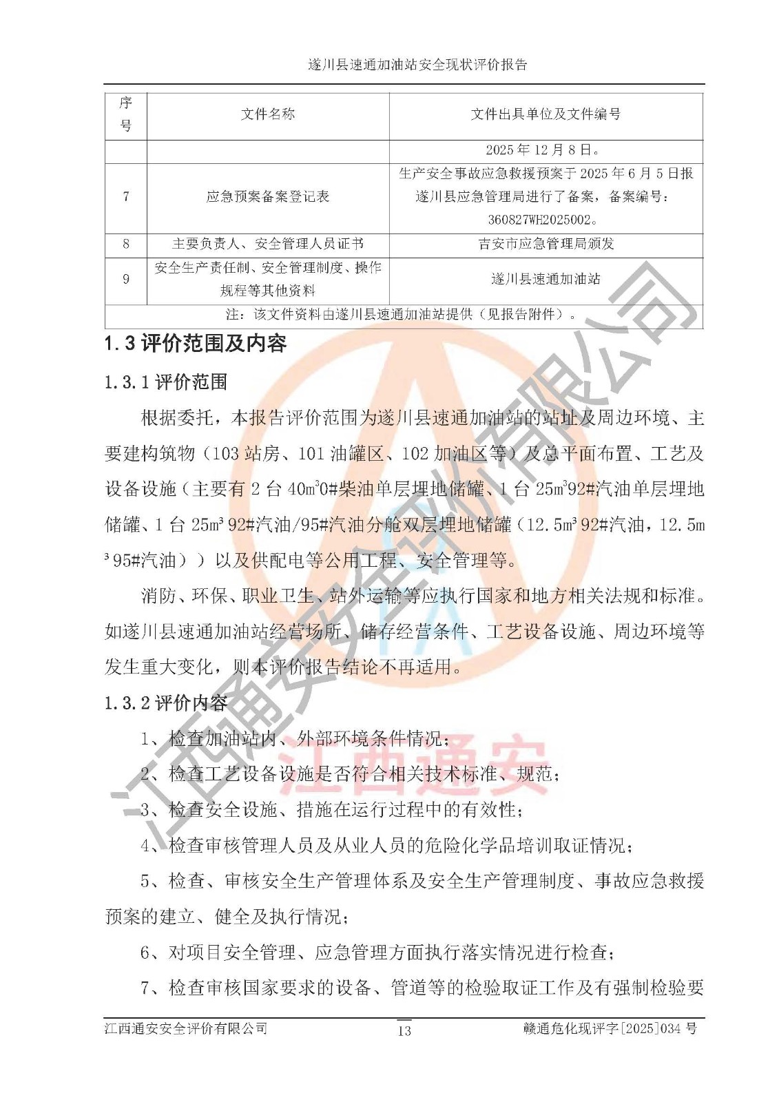 项目名称 | 遂川县速通加油站安全现状评价报告 | ||||