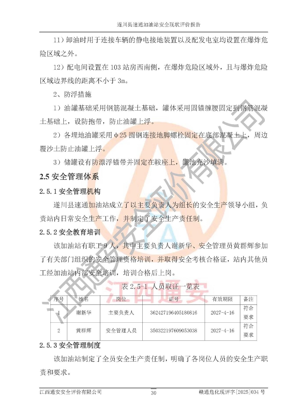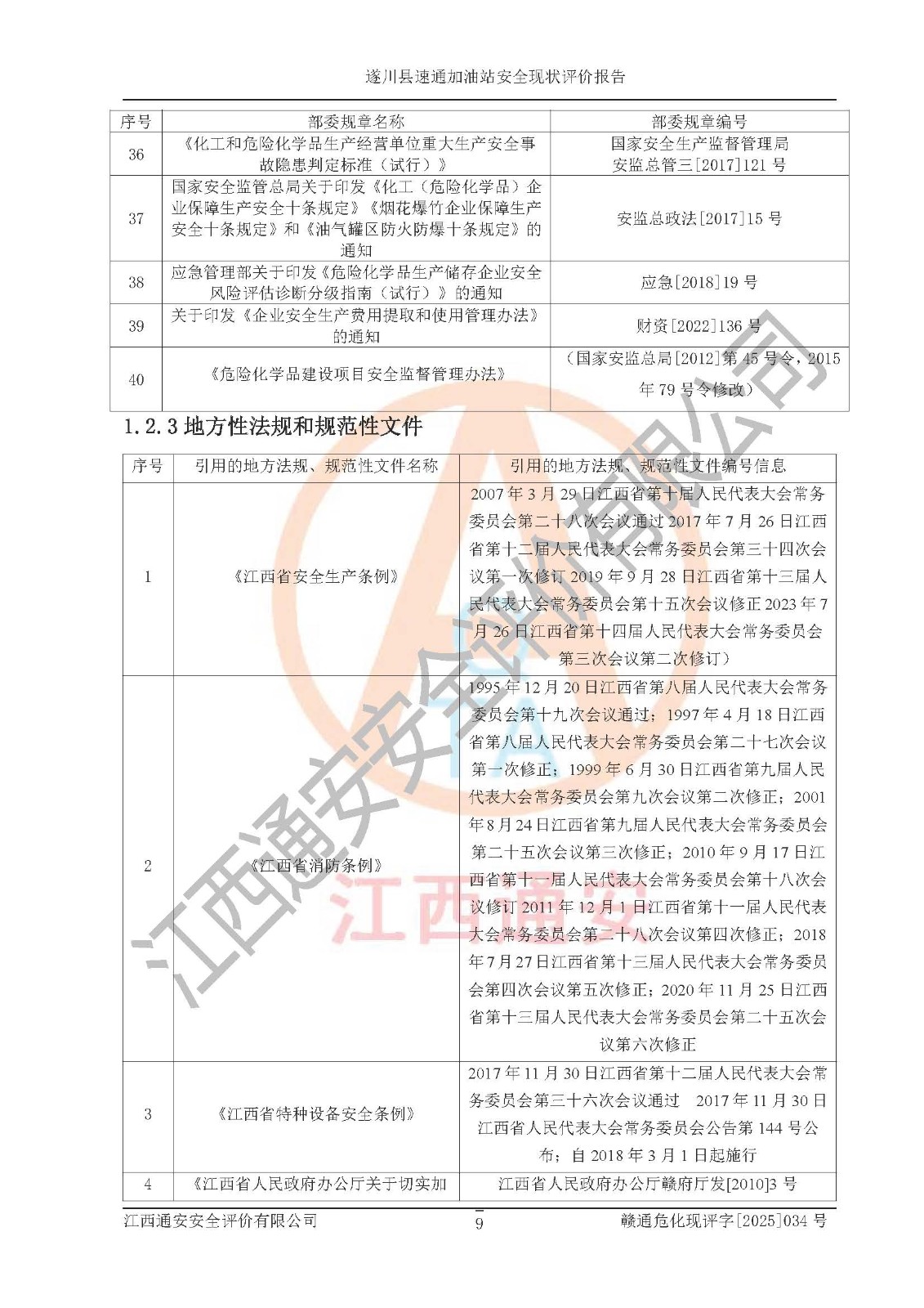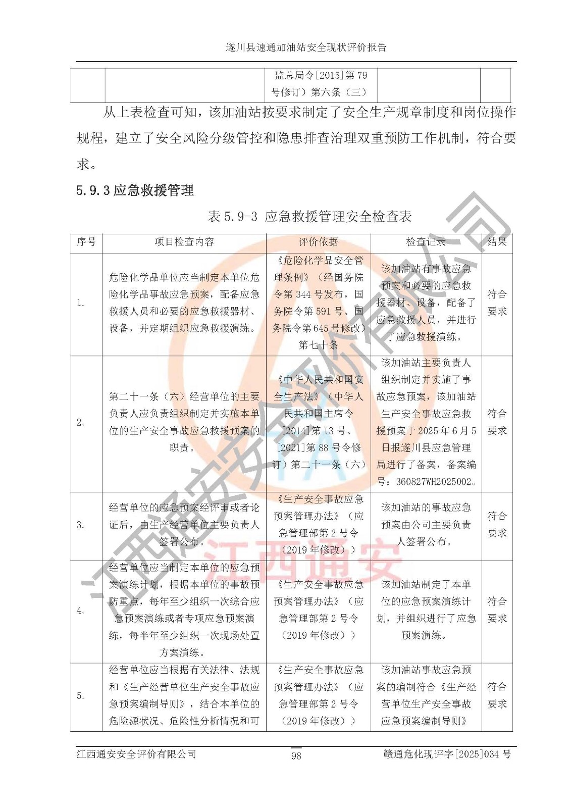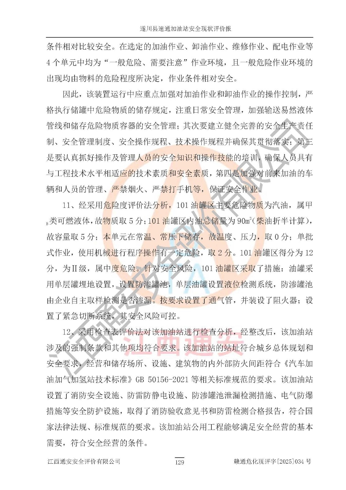 项目名称 | 遂川县速通加油站安全现状评价报告 | ||||
