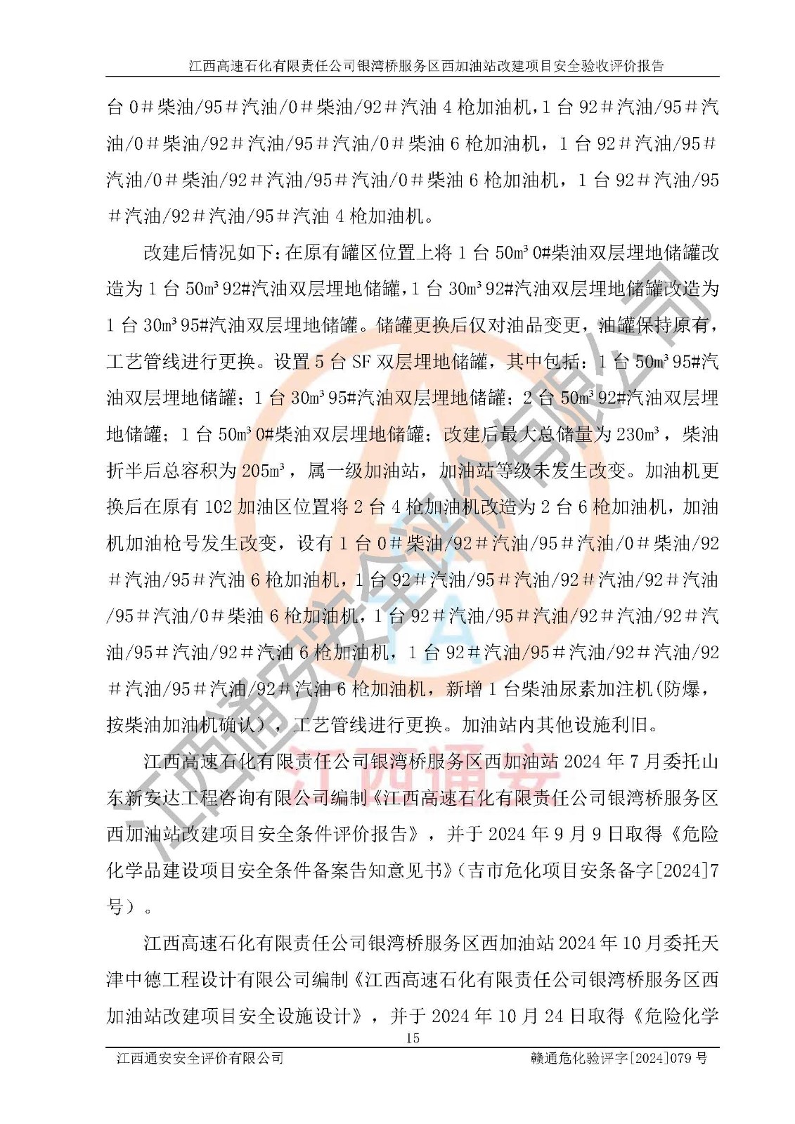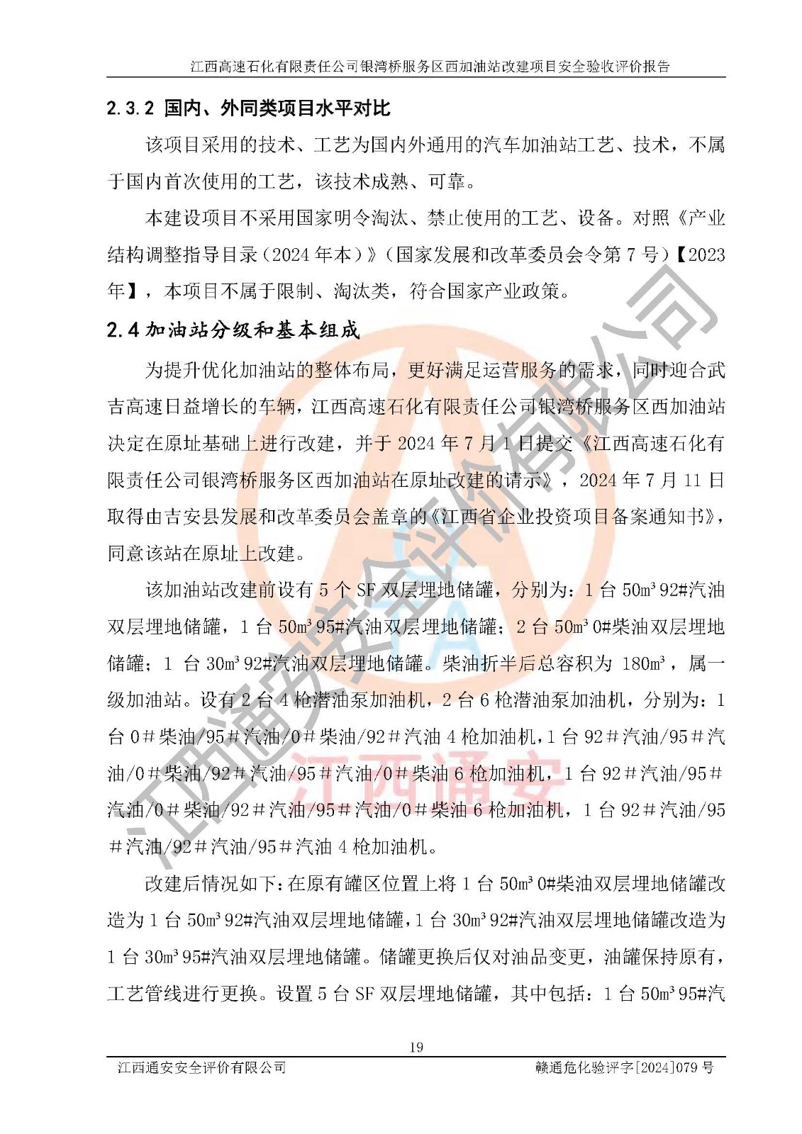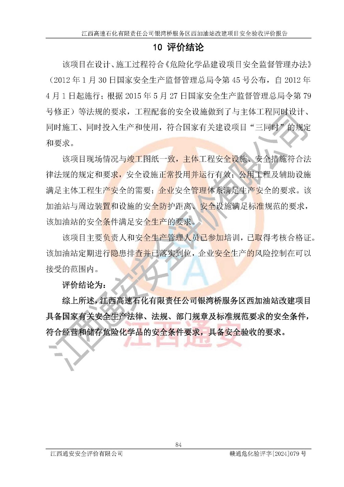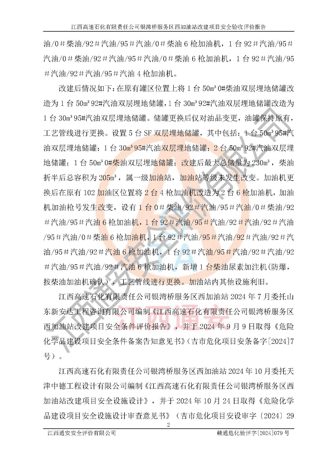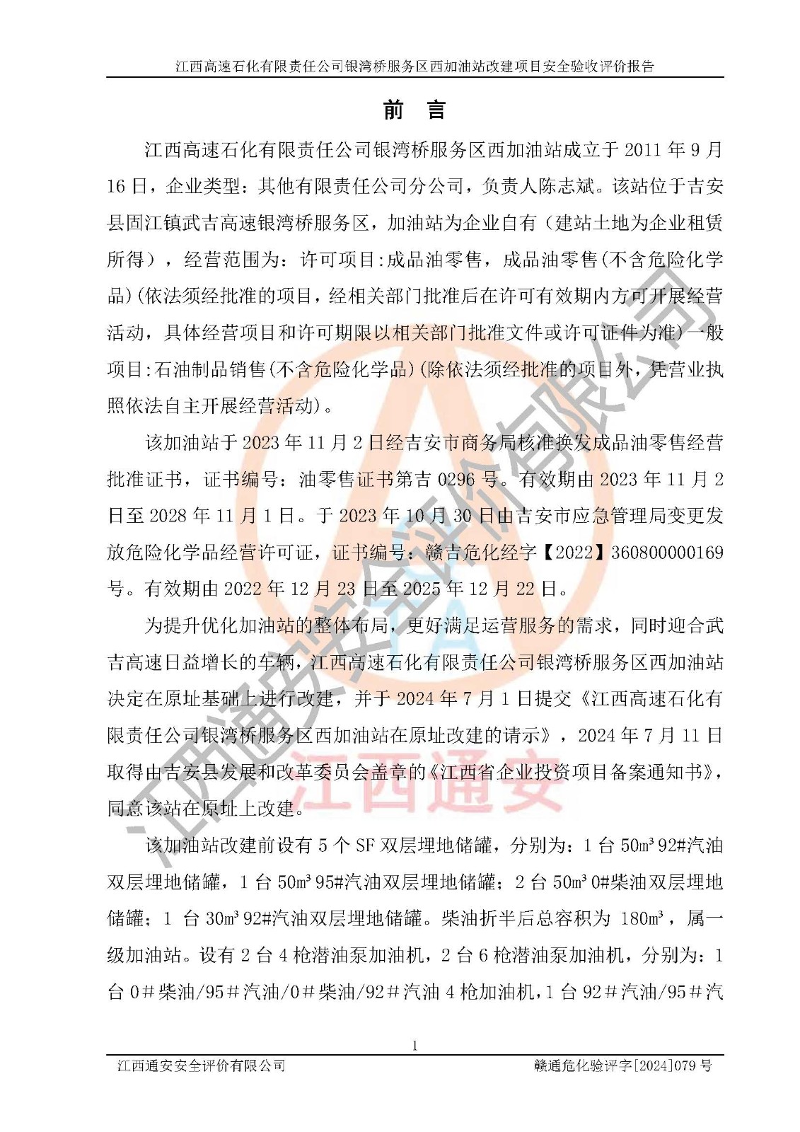 项目名称 | 江西高速石化有限责任公司银湾桥服务区西加油站改建项目安全验收评价报告 | ||||