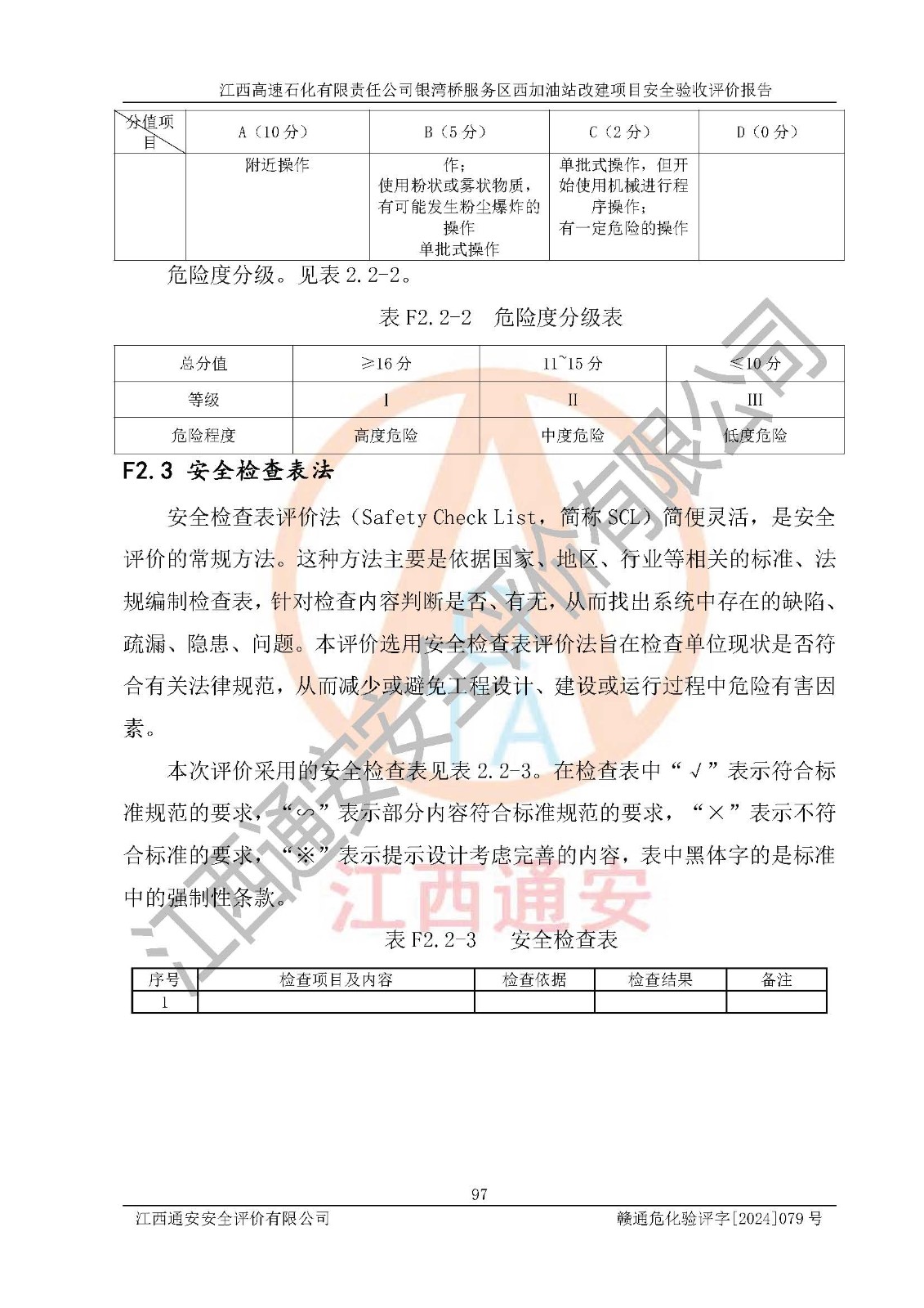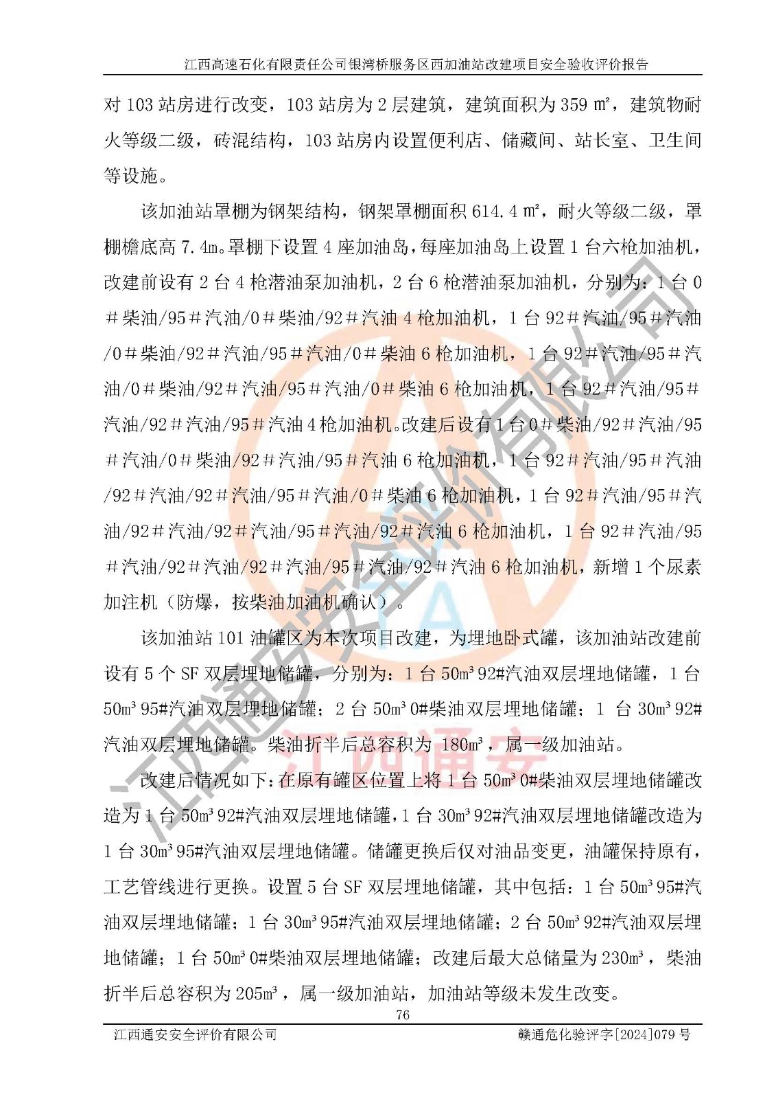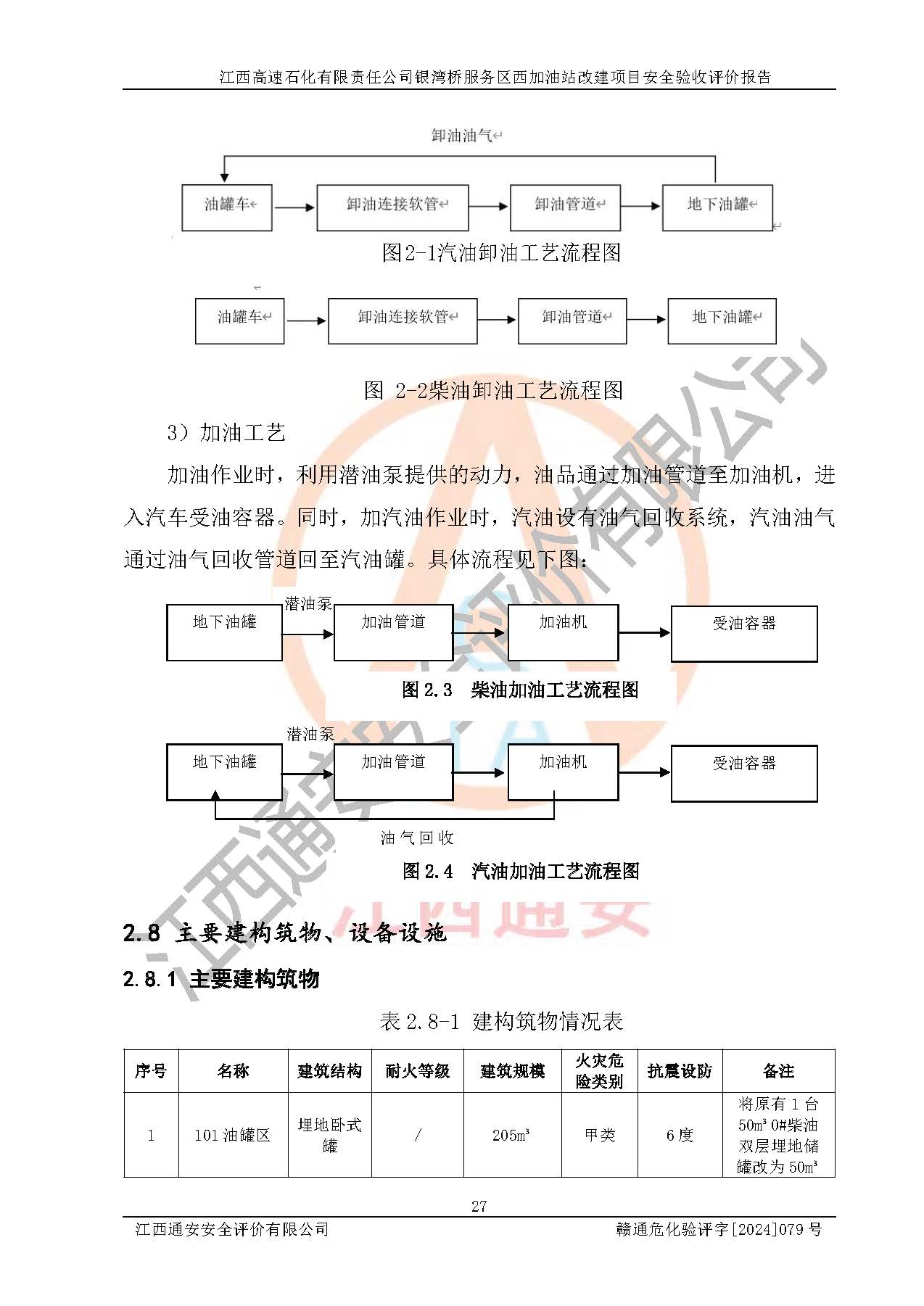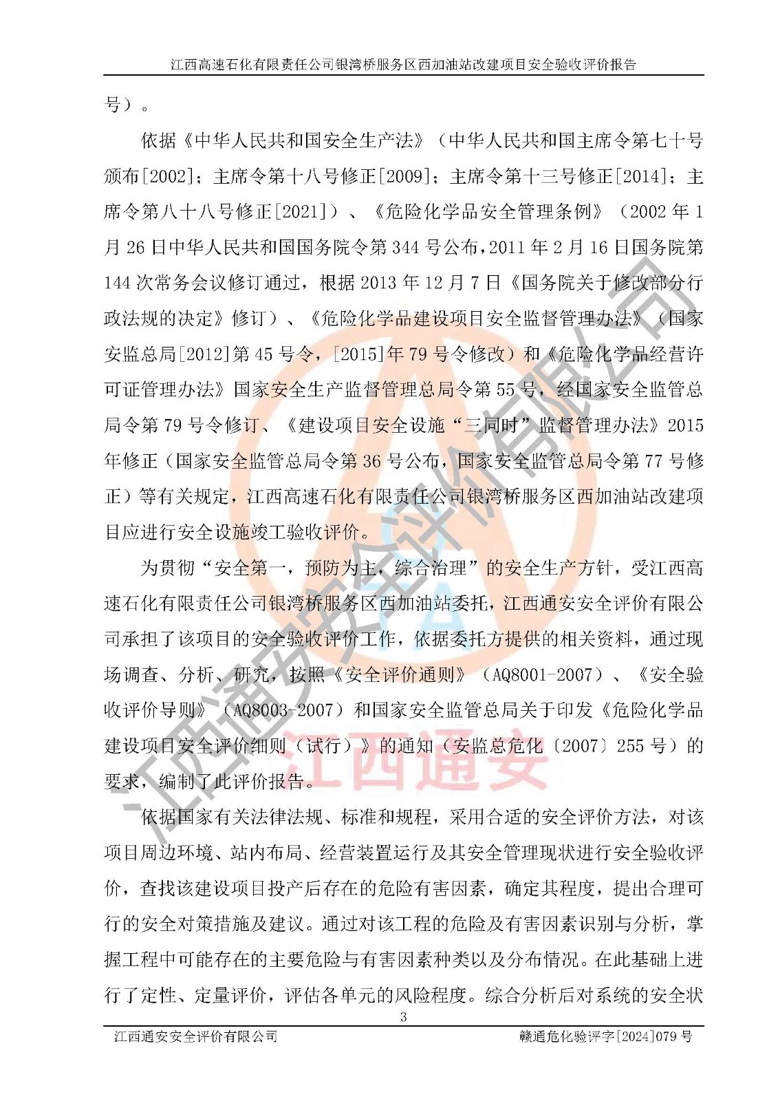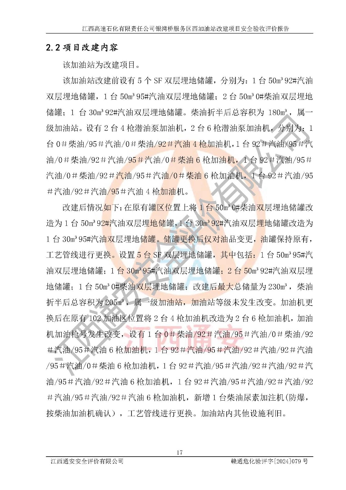 项目名称 | 江西高速石化有限责任公司银湾桥服务区西加油站改建项目安全验收评价报告 | ||||