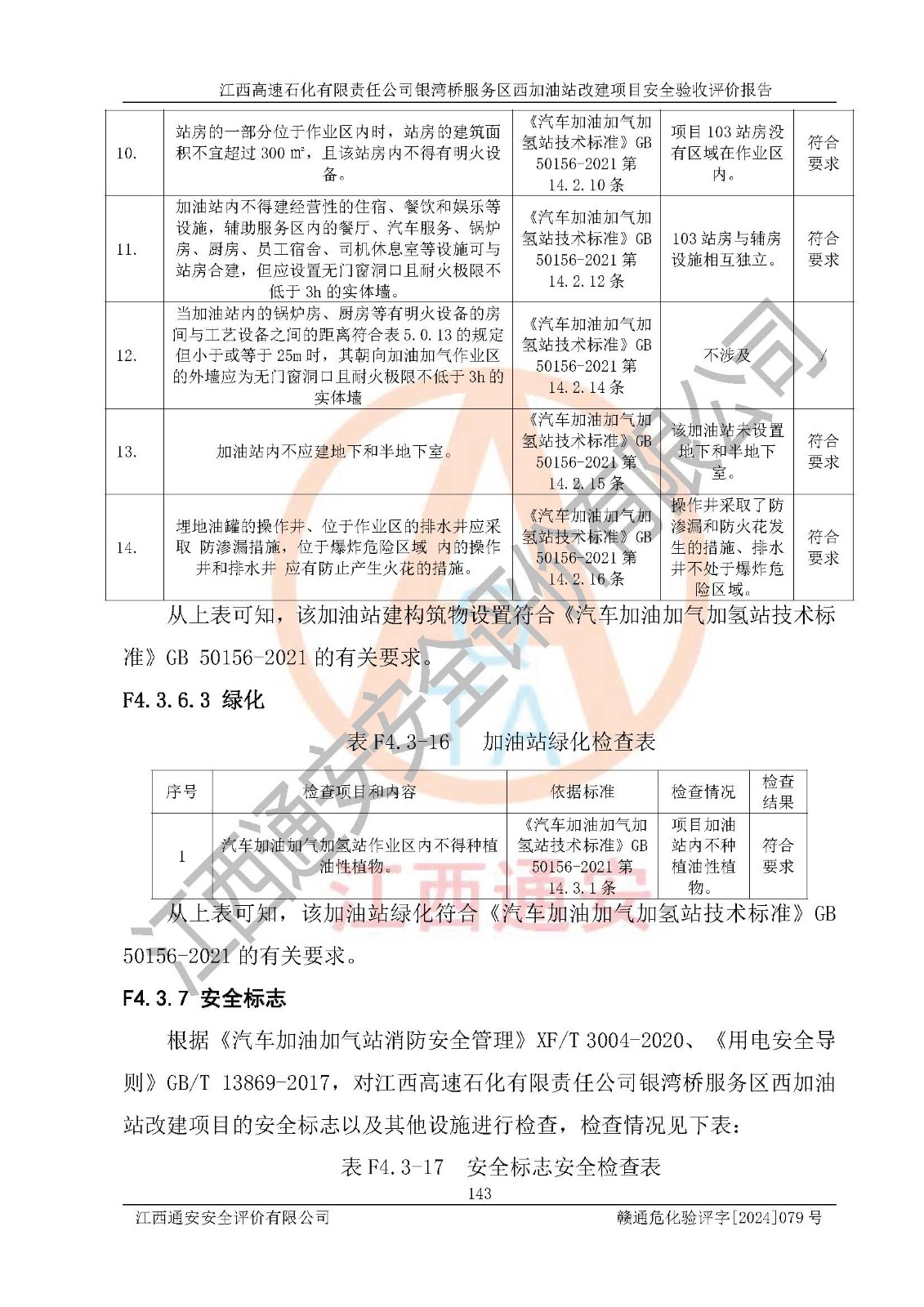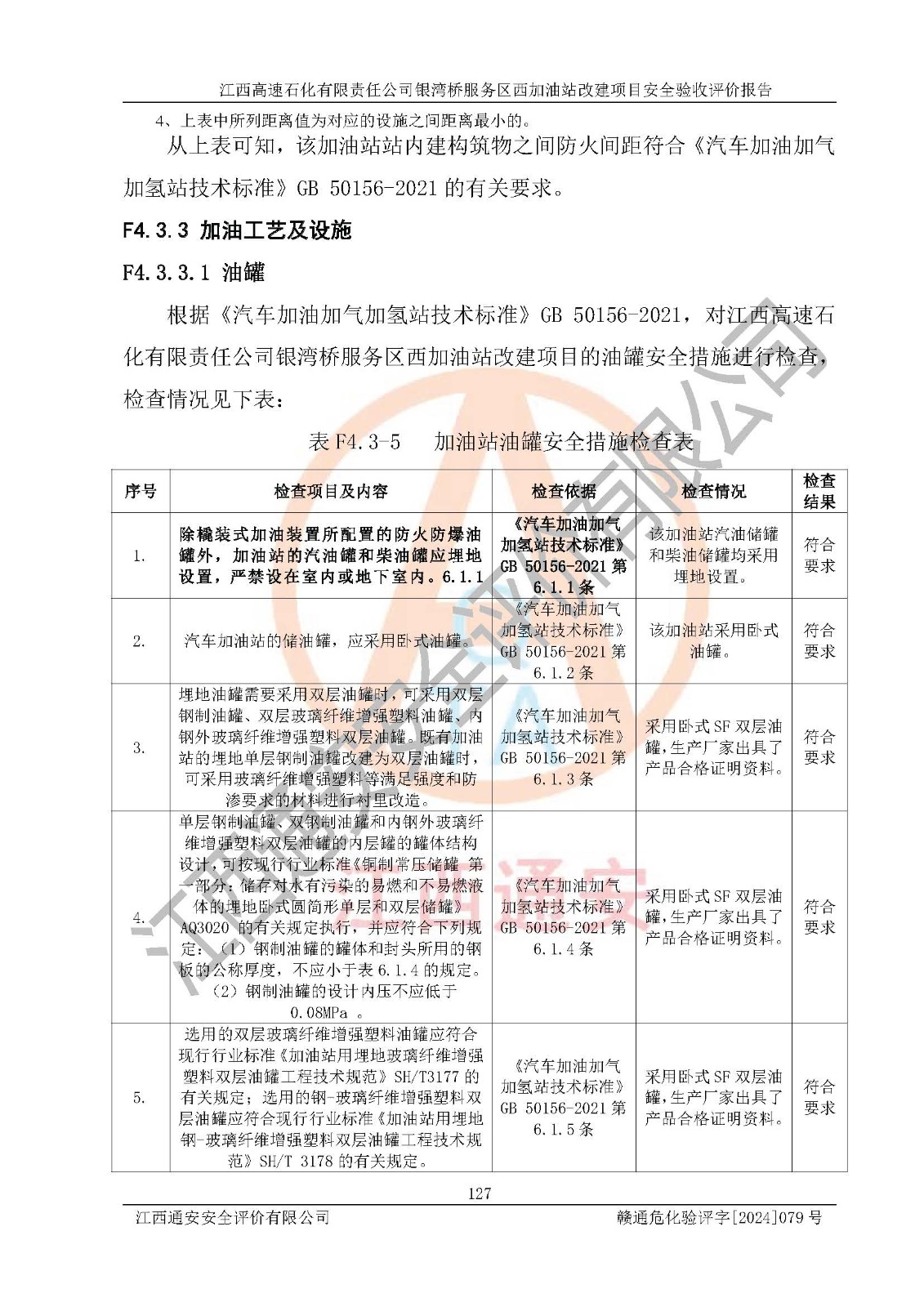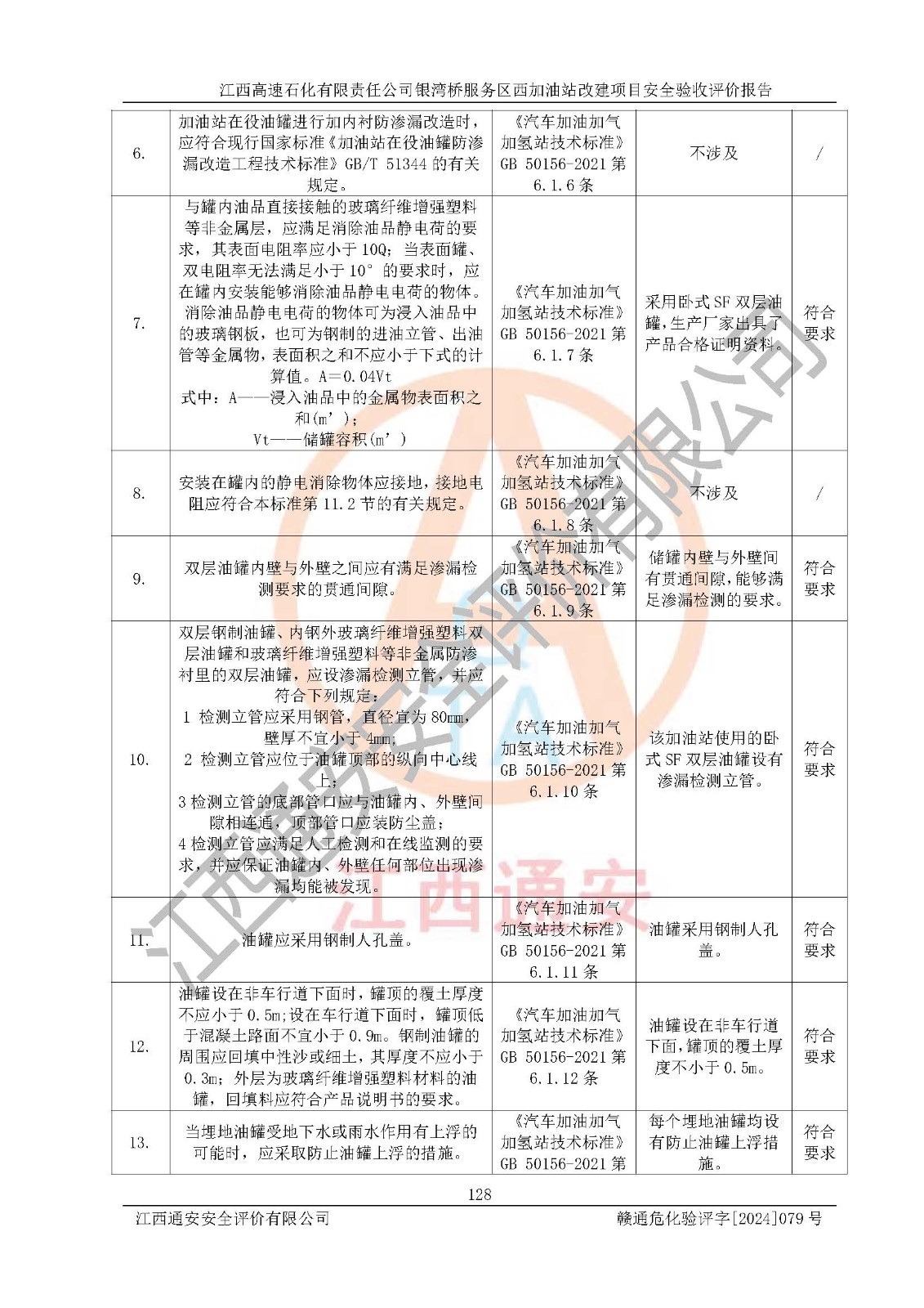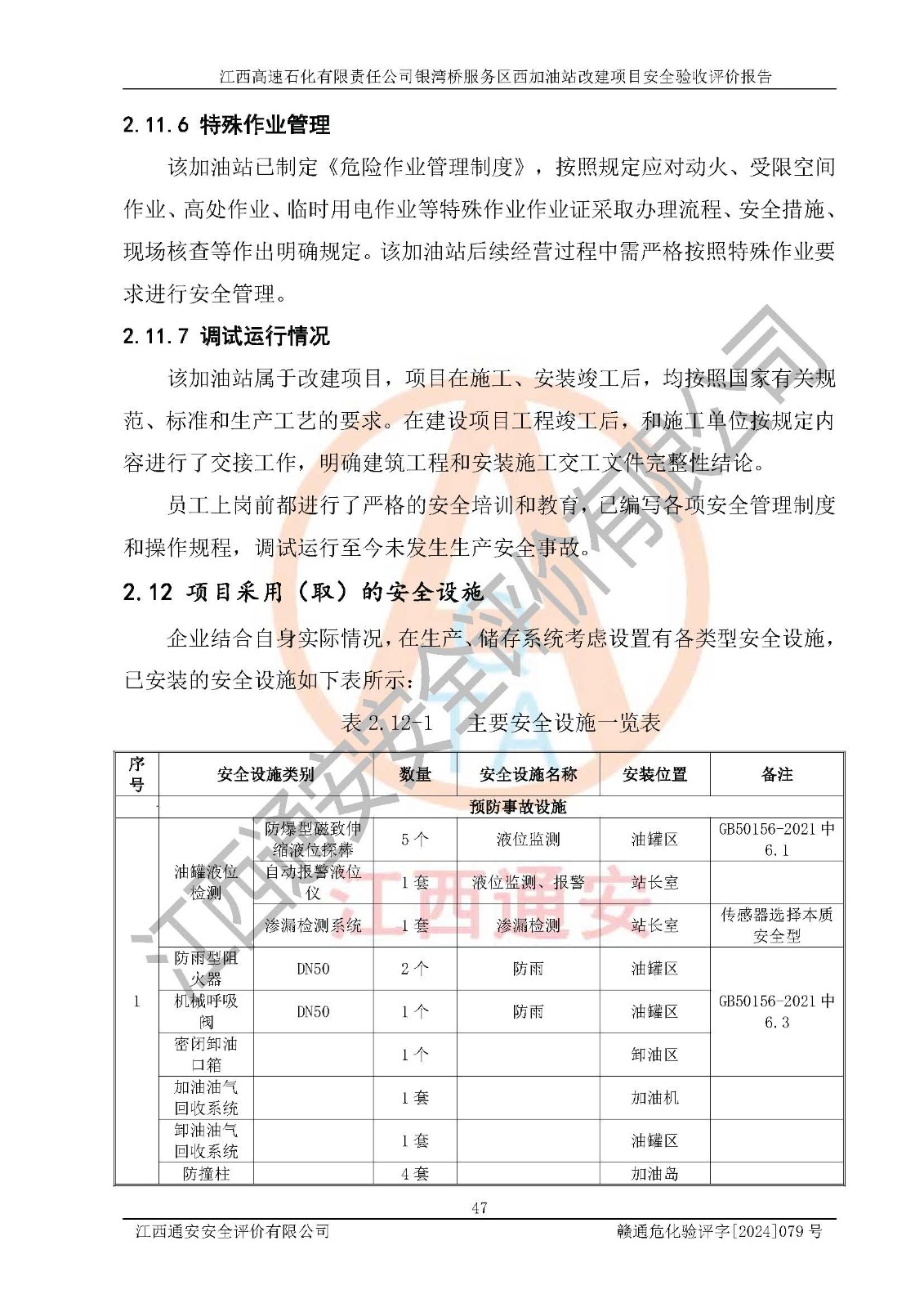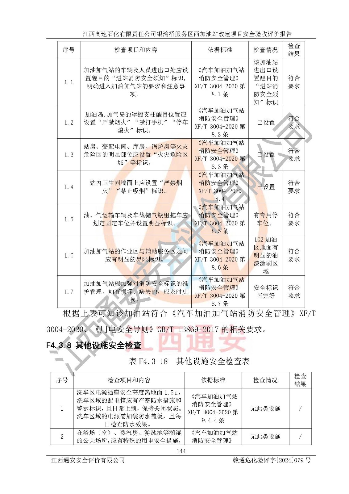 项目名称 | 江西高速石化有限责任公司银湾桥服务区西加油站改建项目安全验收评价报告 | ||||