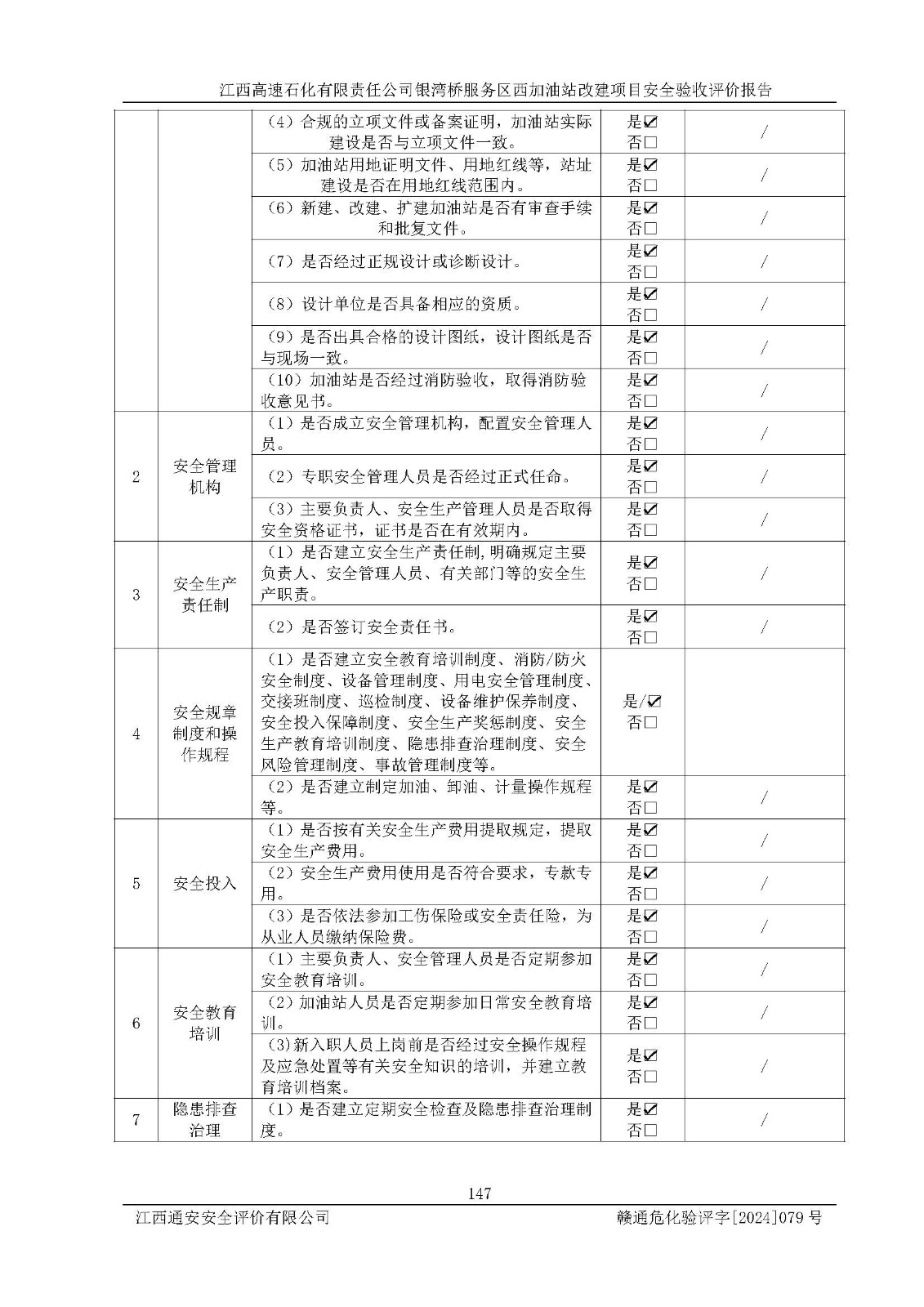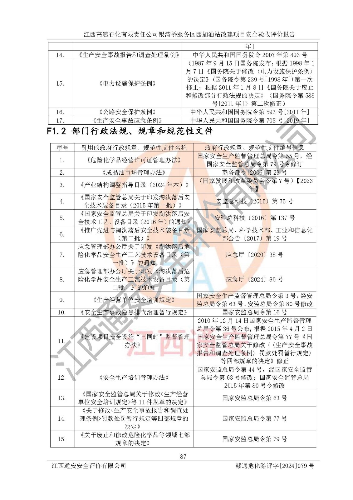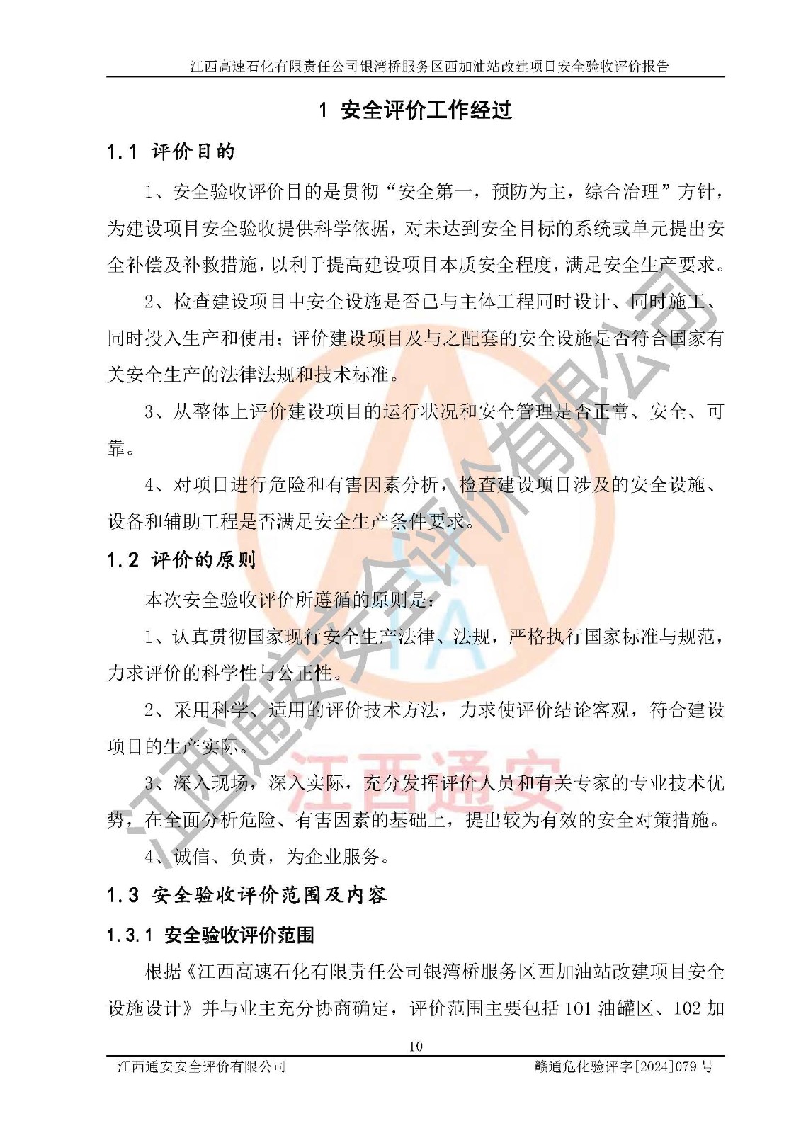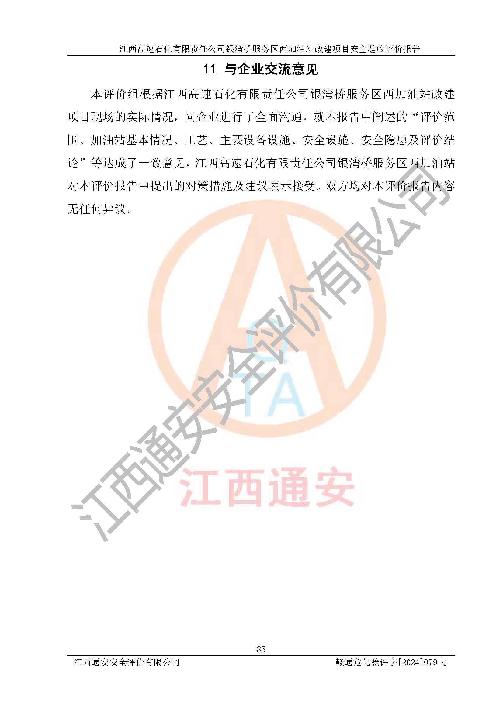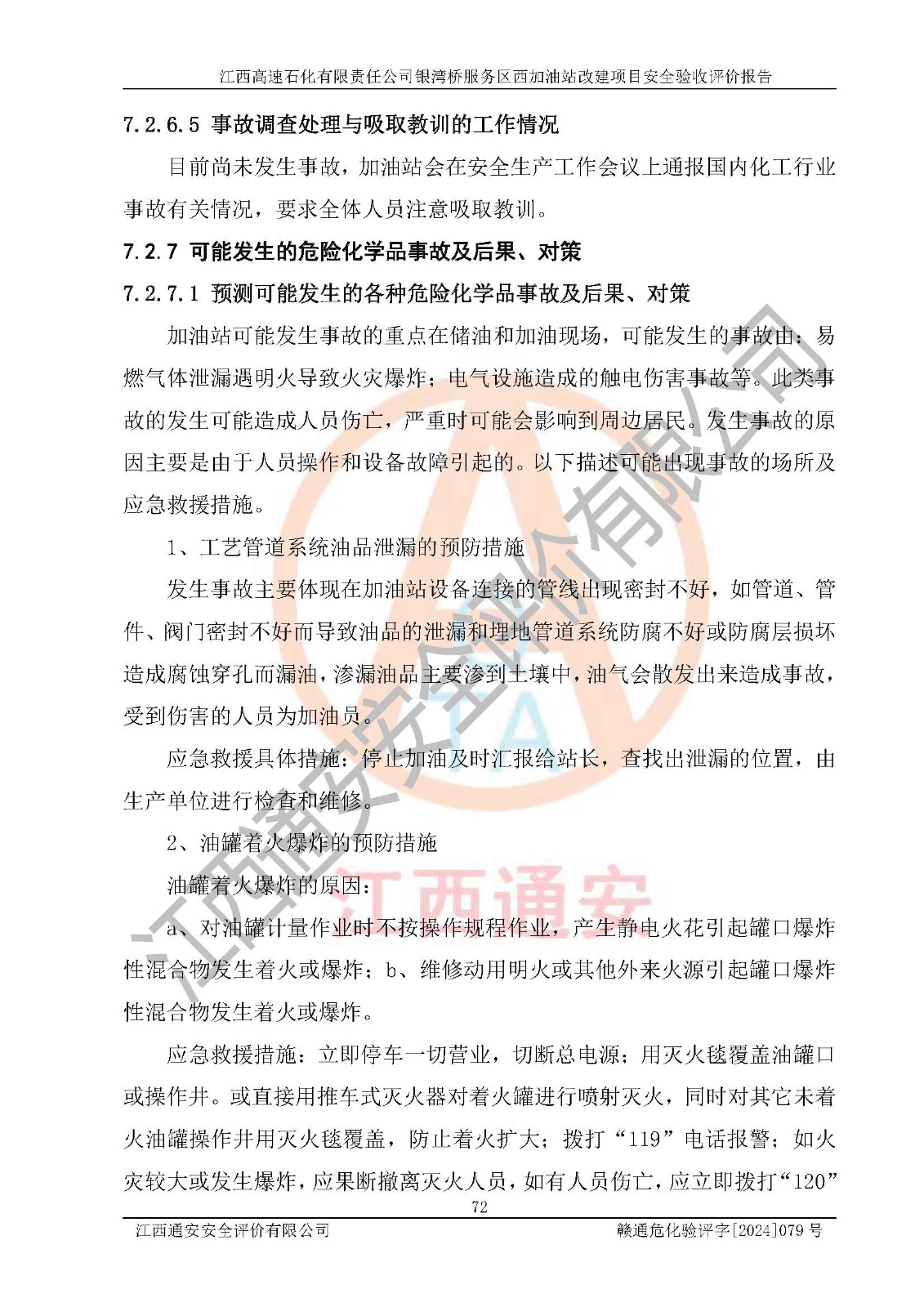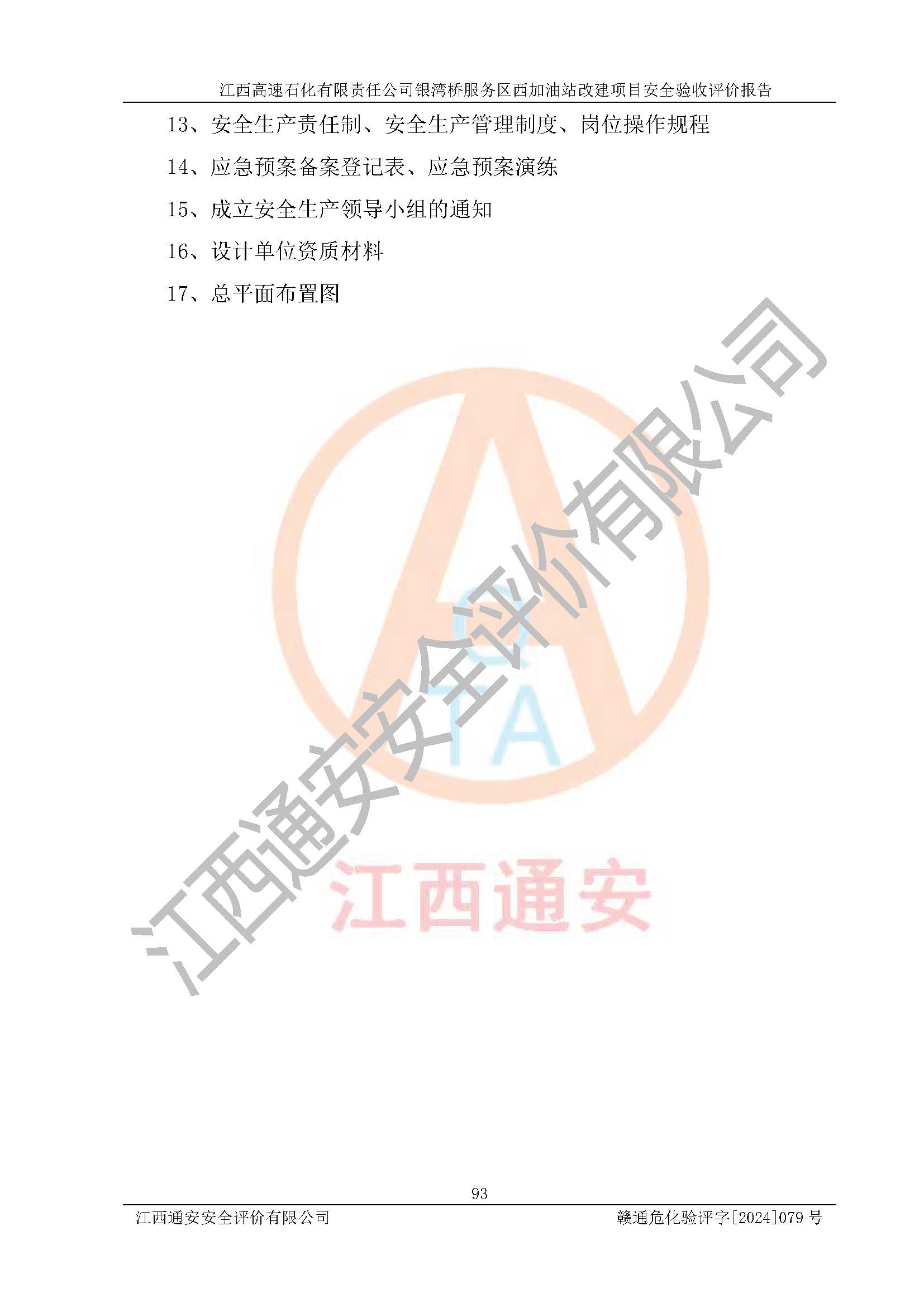 项目名称 | 江西高速石化有限责任公司银湾桥服务区西加油站改建项目安全验收评价报告 | ||||