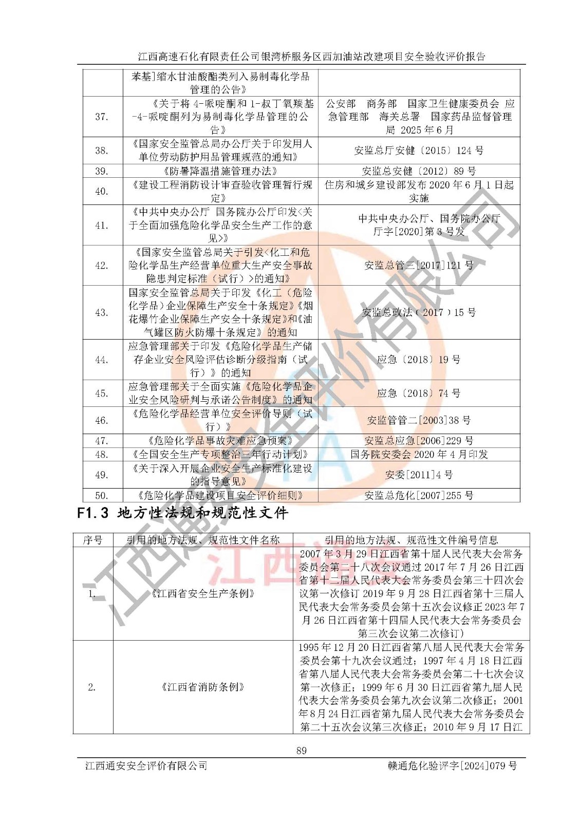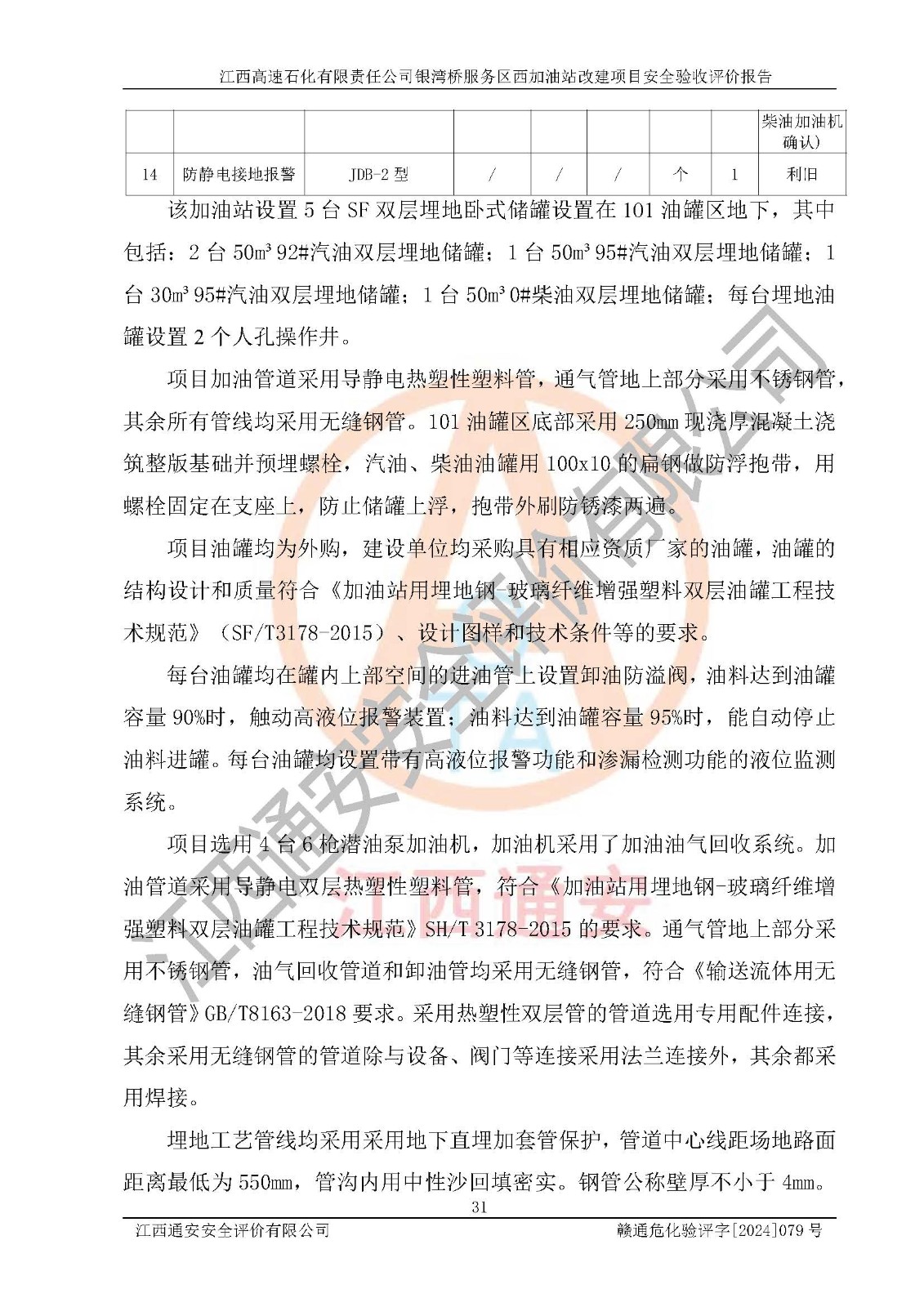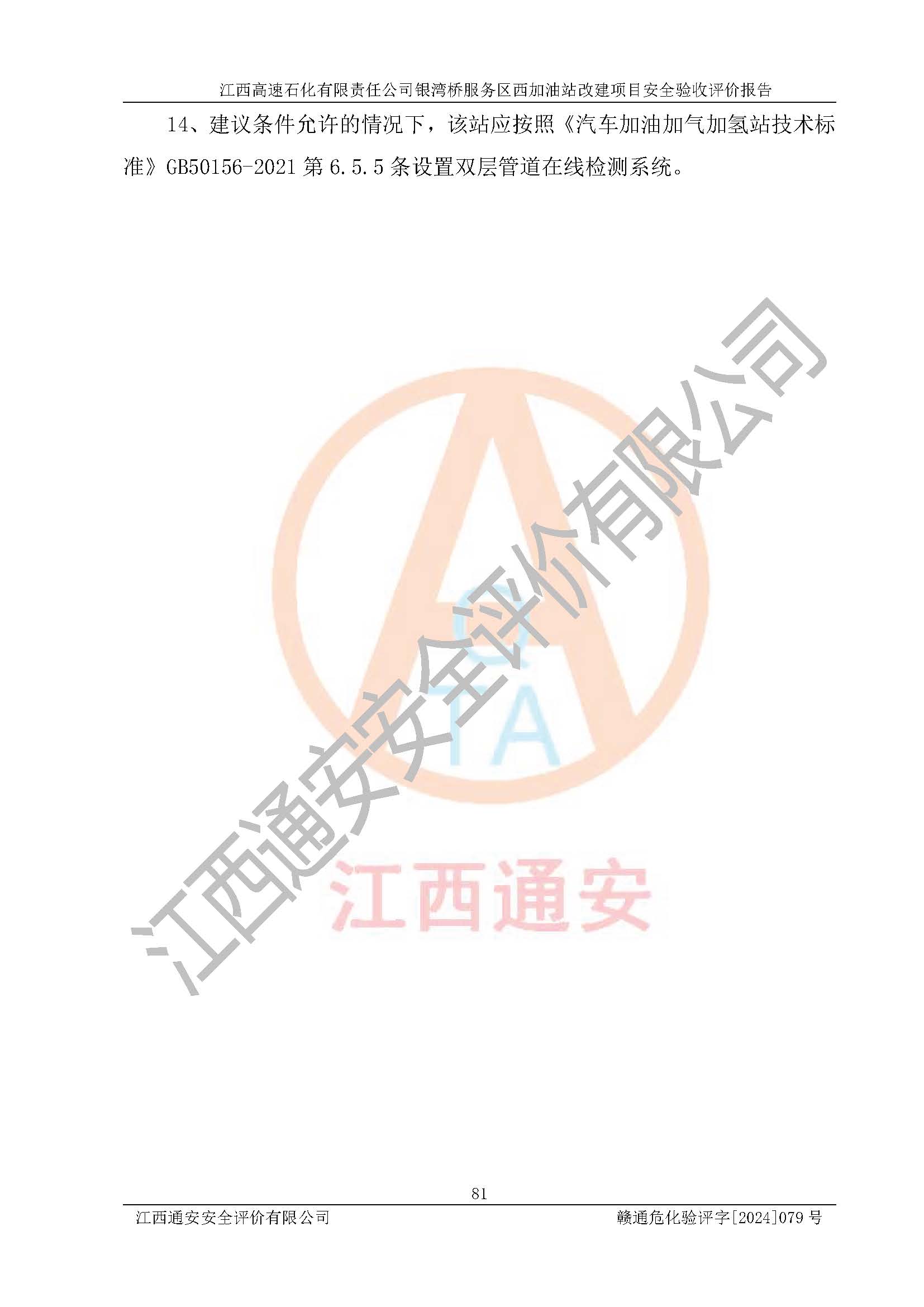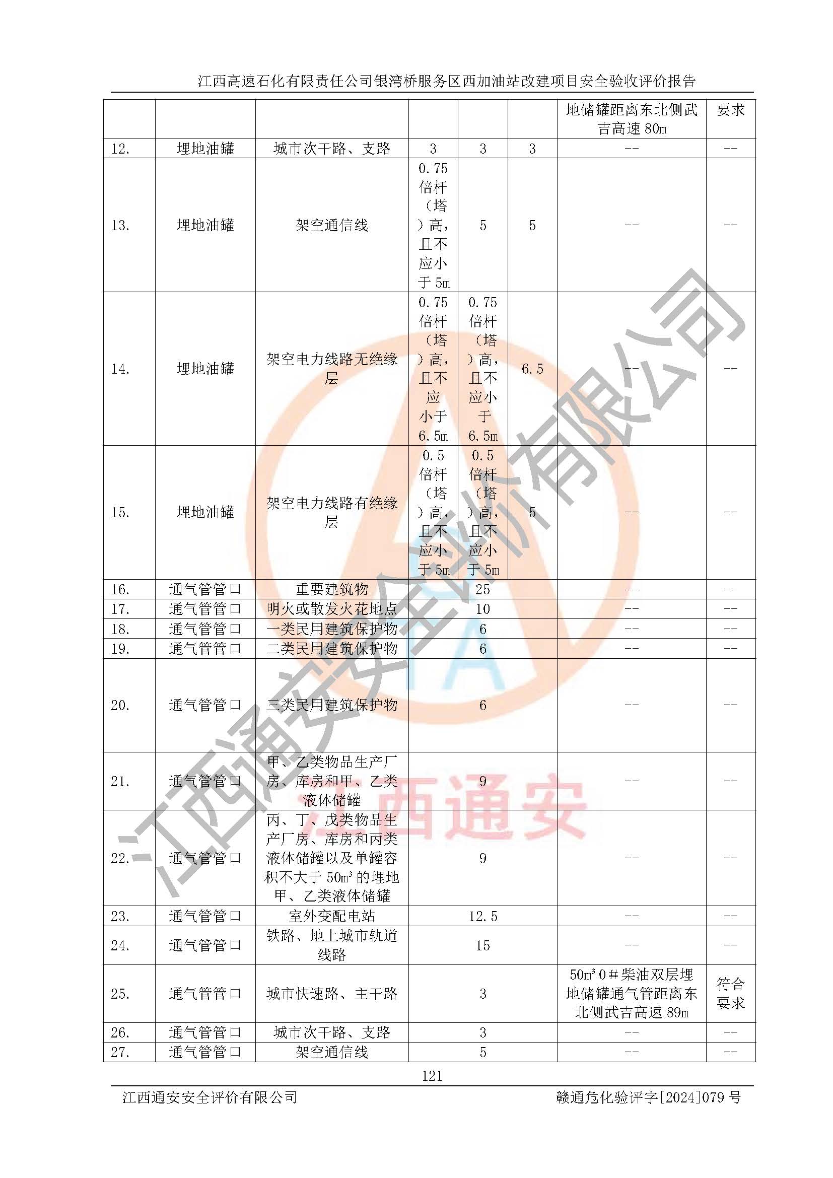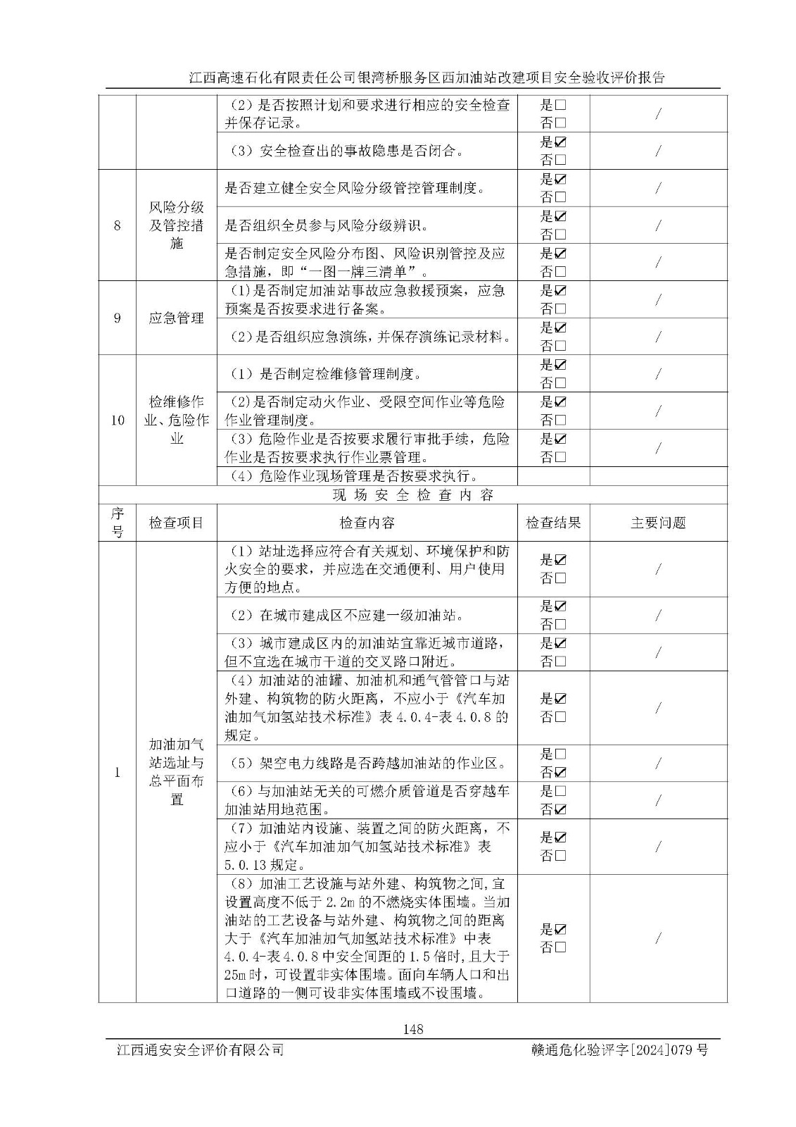 项目名称 | 江西高速石化有限责任公司银湾桥服务区西加油站改建项目安全验收评价报告 | ||||