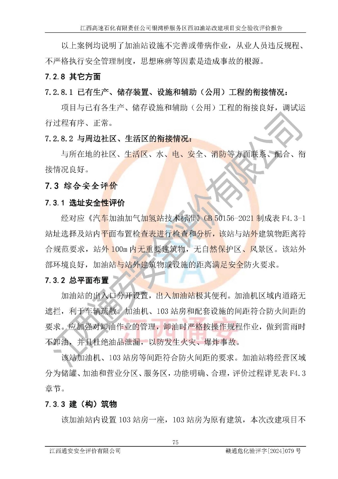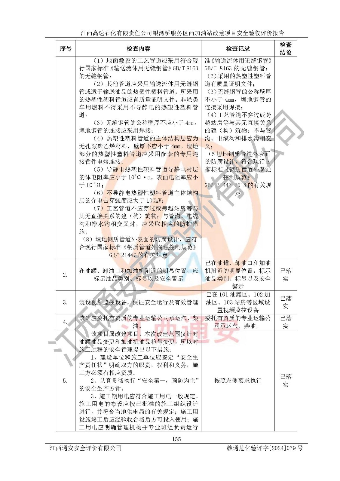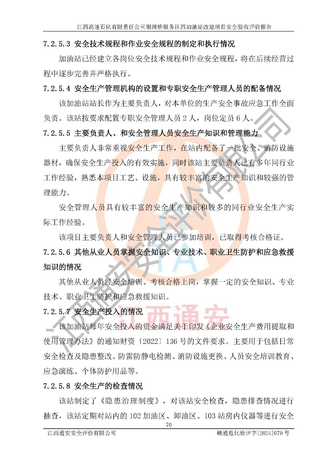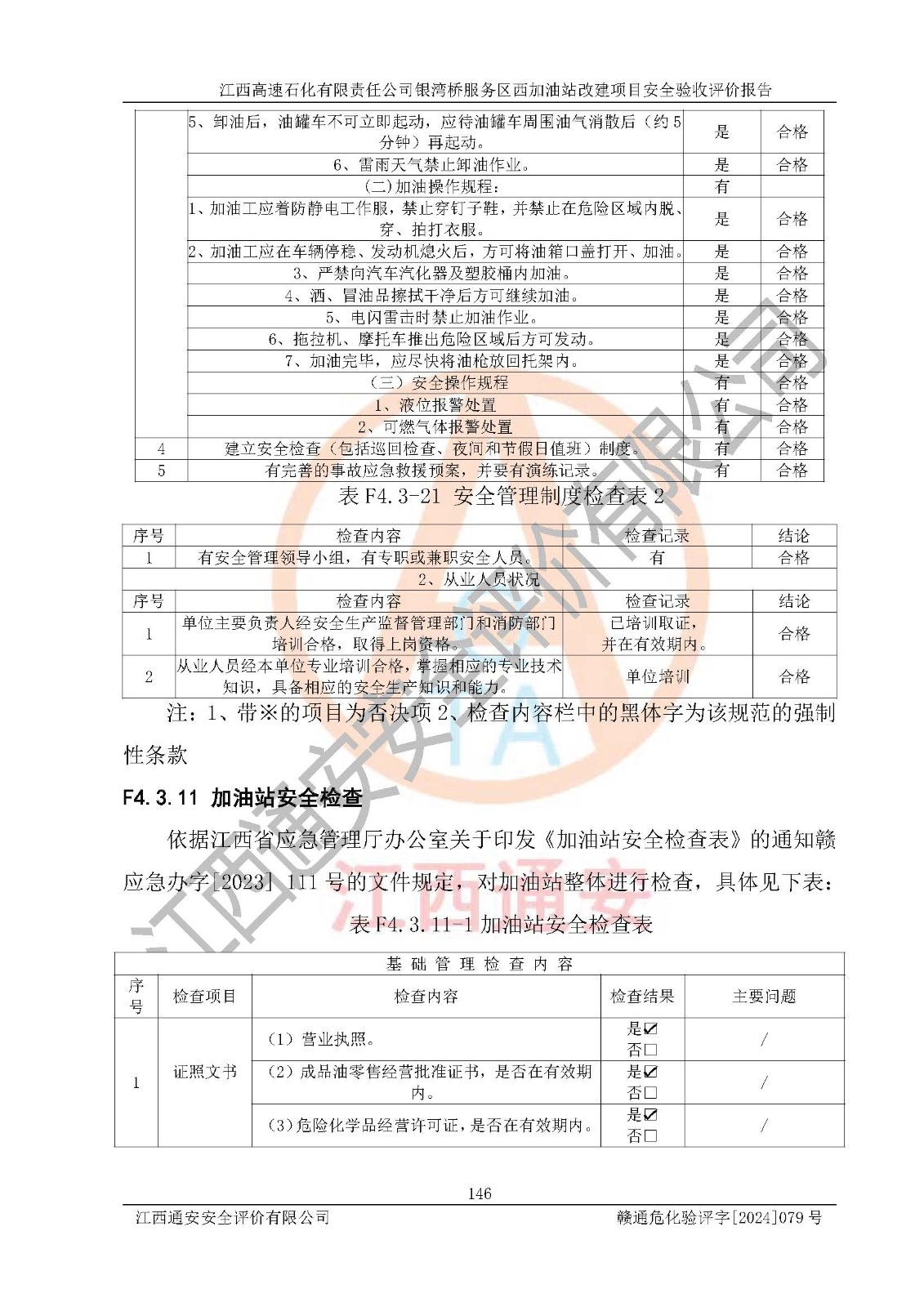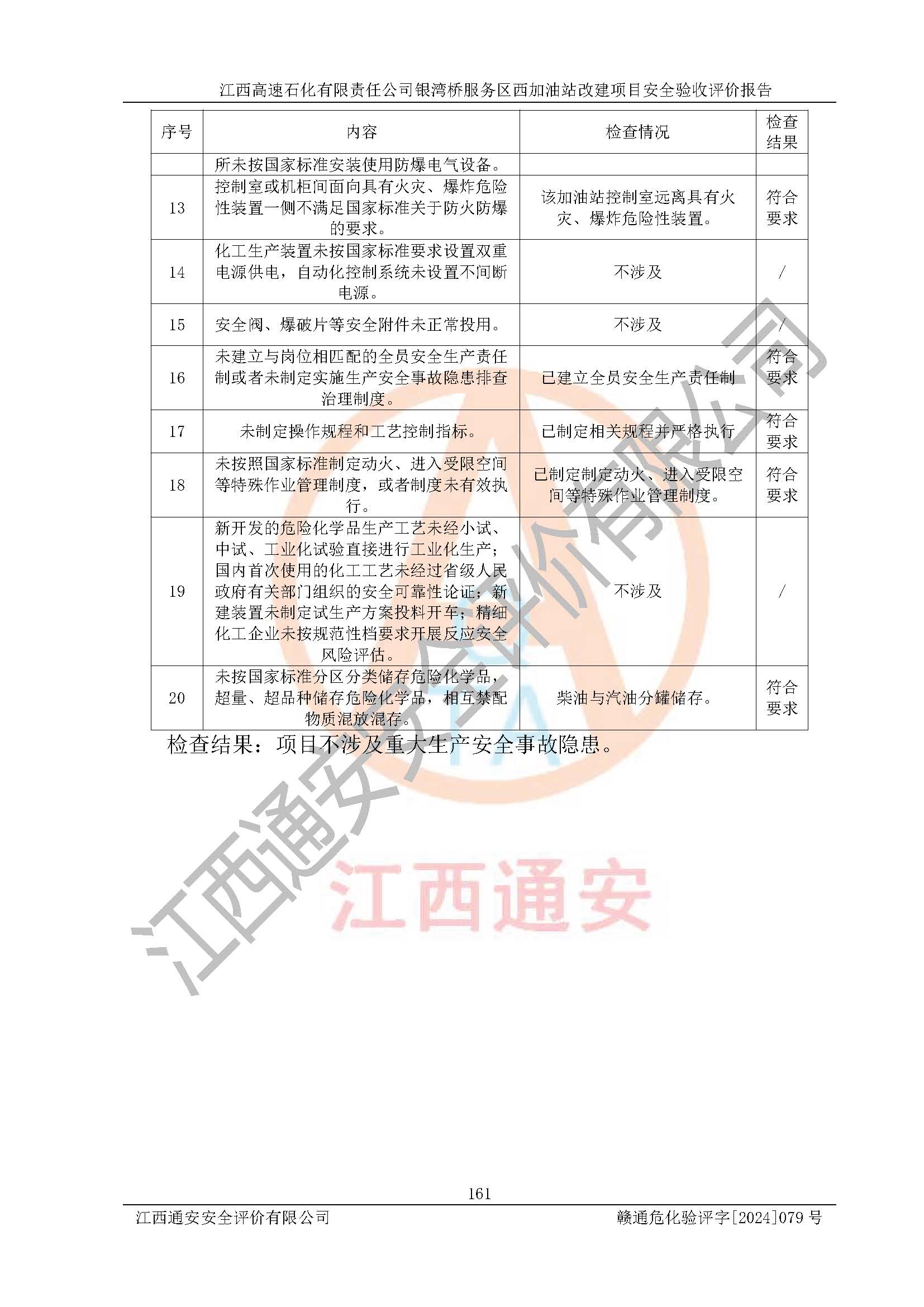 项目名称 | 江西高速石化有限责任公司银湾桥服务区西加油站改建项目安全验收评价报告 | ||||