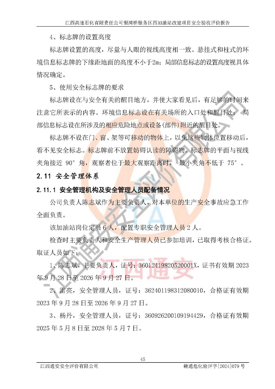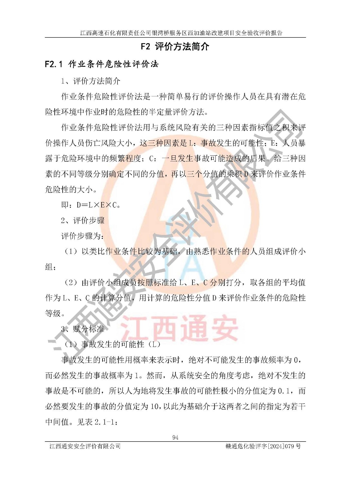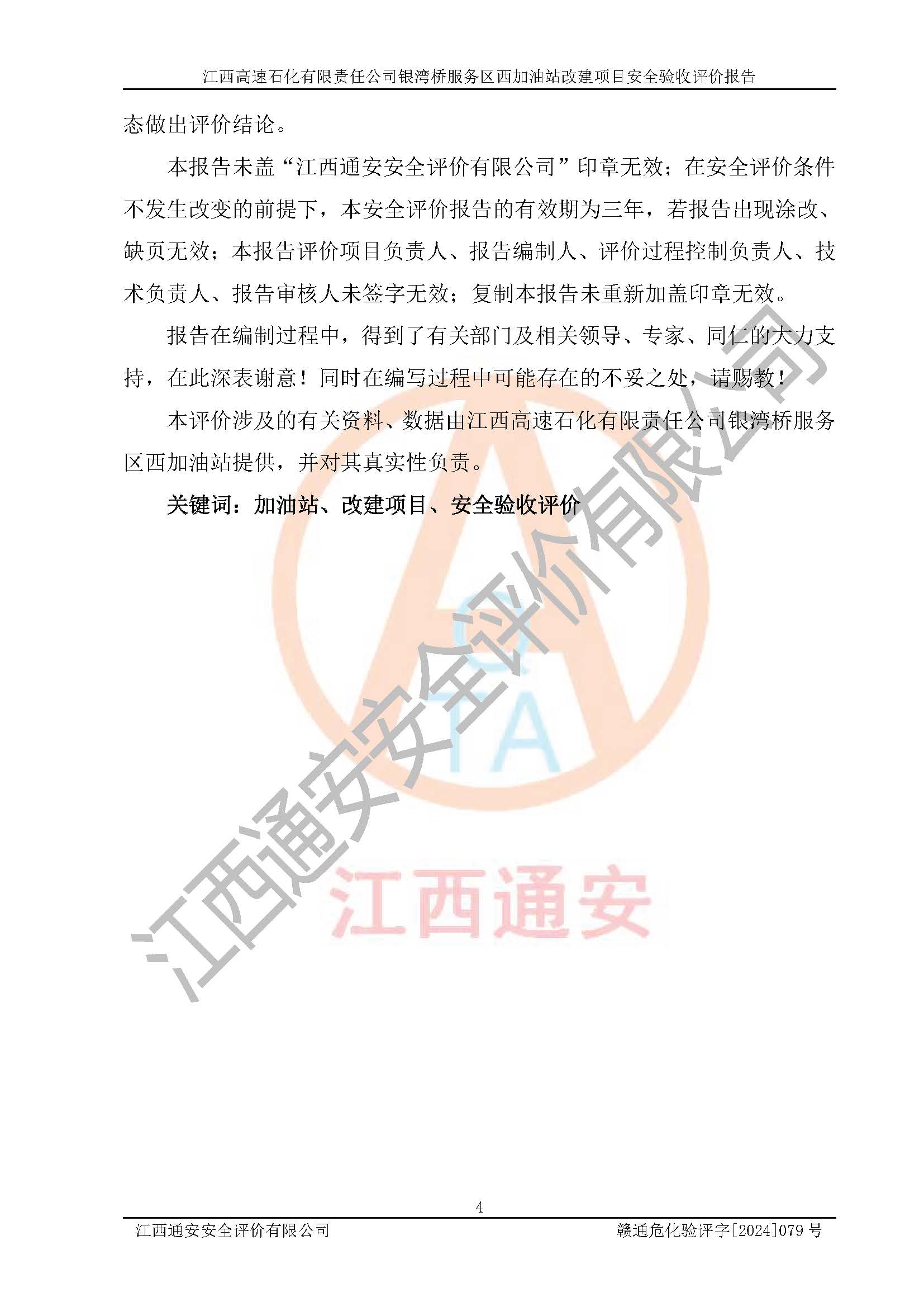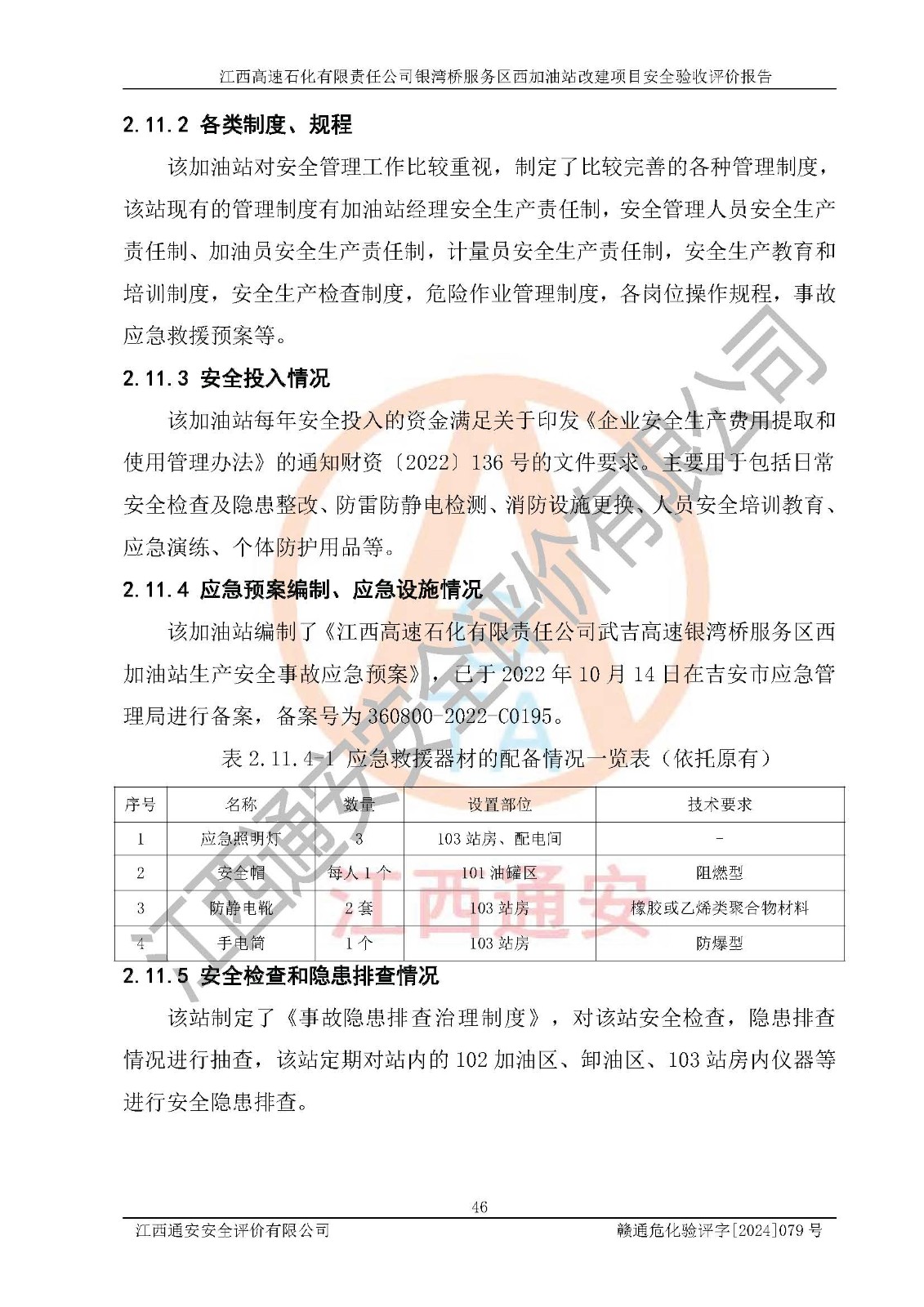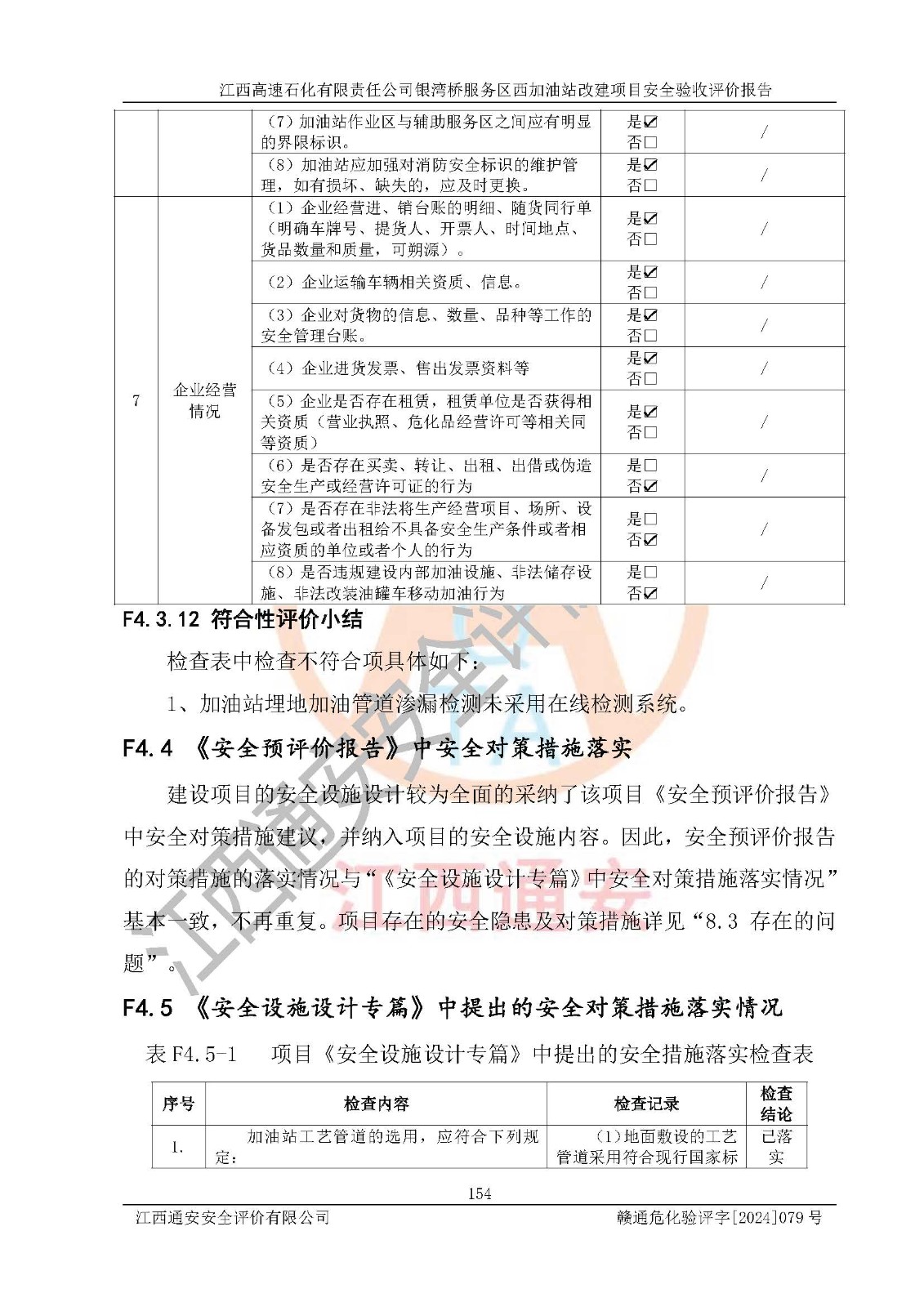 项目名称 | 江西高速石化有限责任公司银湾桥服务区西加油站改建项目安全验收评价报告 | ||||