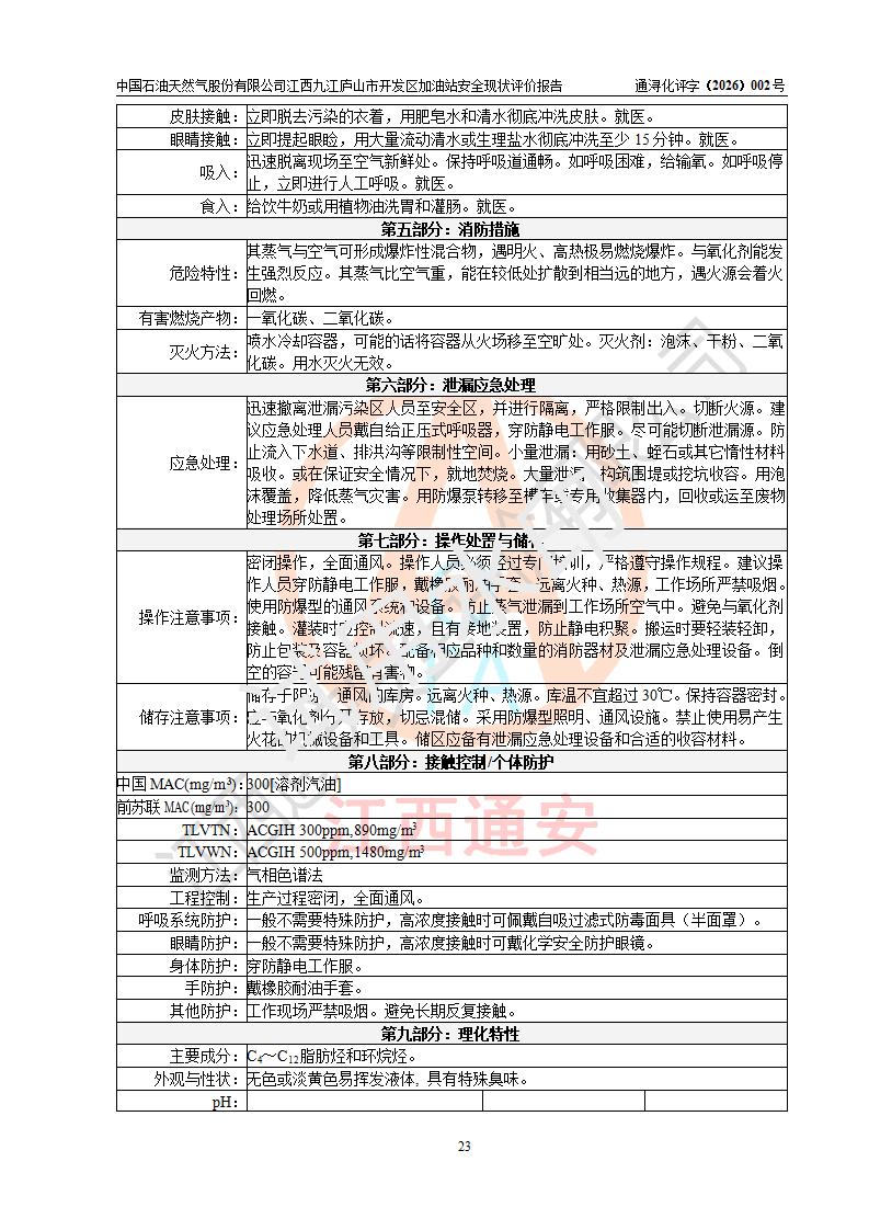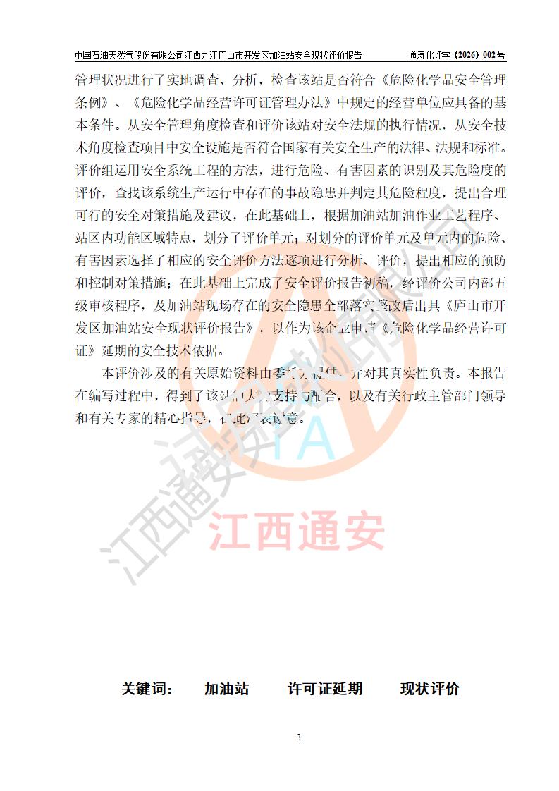 评价报告名称 | 中国石油天然气股份有限公司江西九江庐山市开发区加油站安全现状评价报告 | |||
