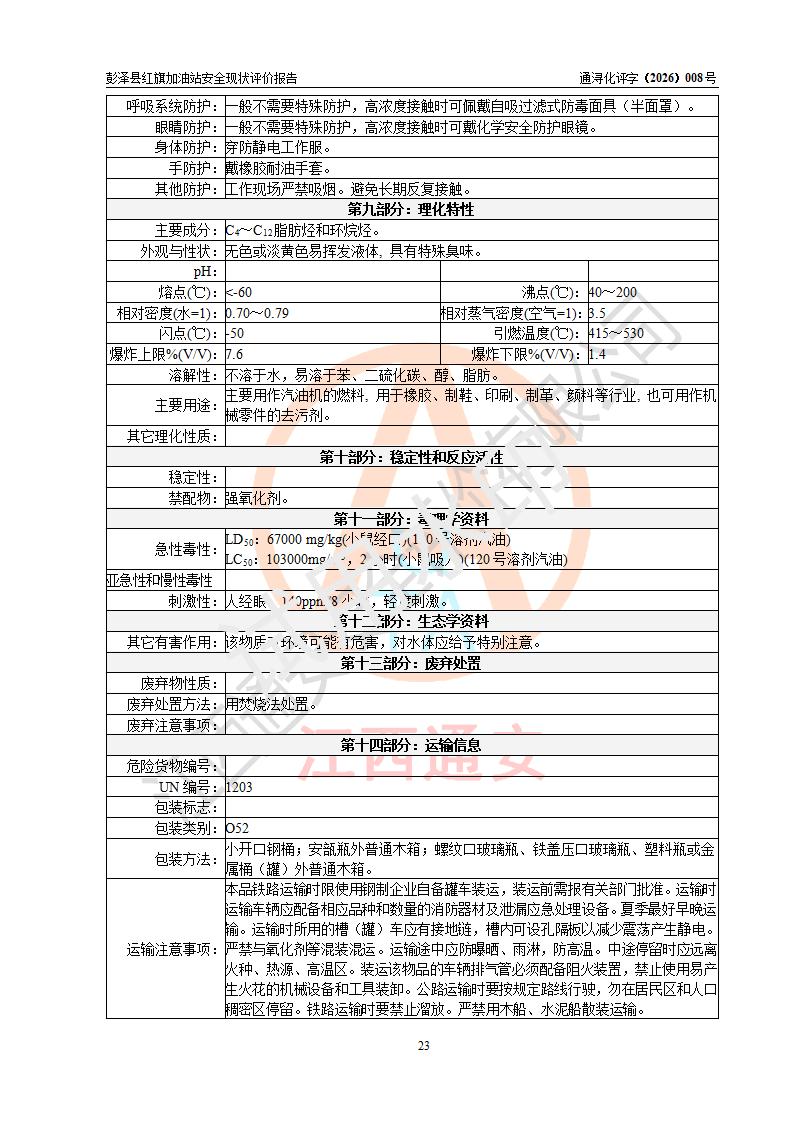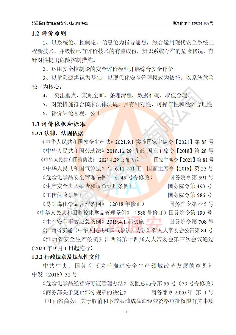 评价报告名称 | 彭泽县红旗加油站安全现状评价报告 | |||