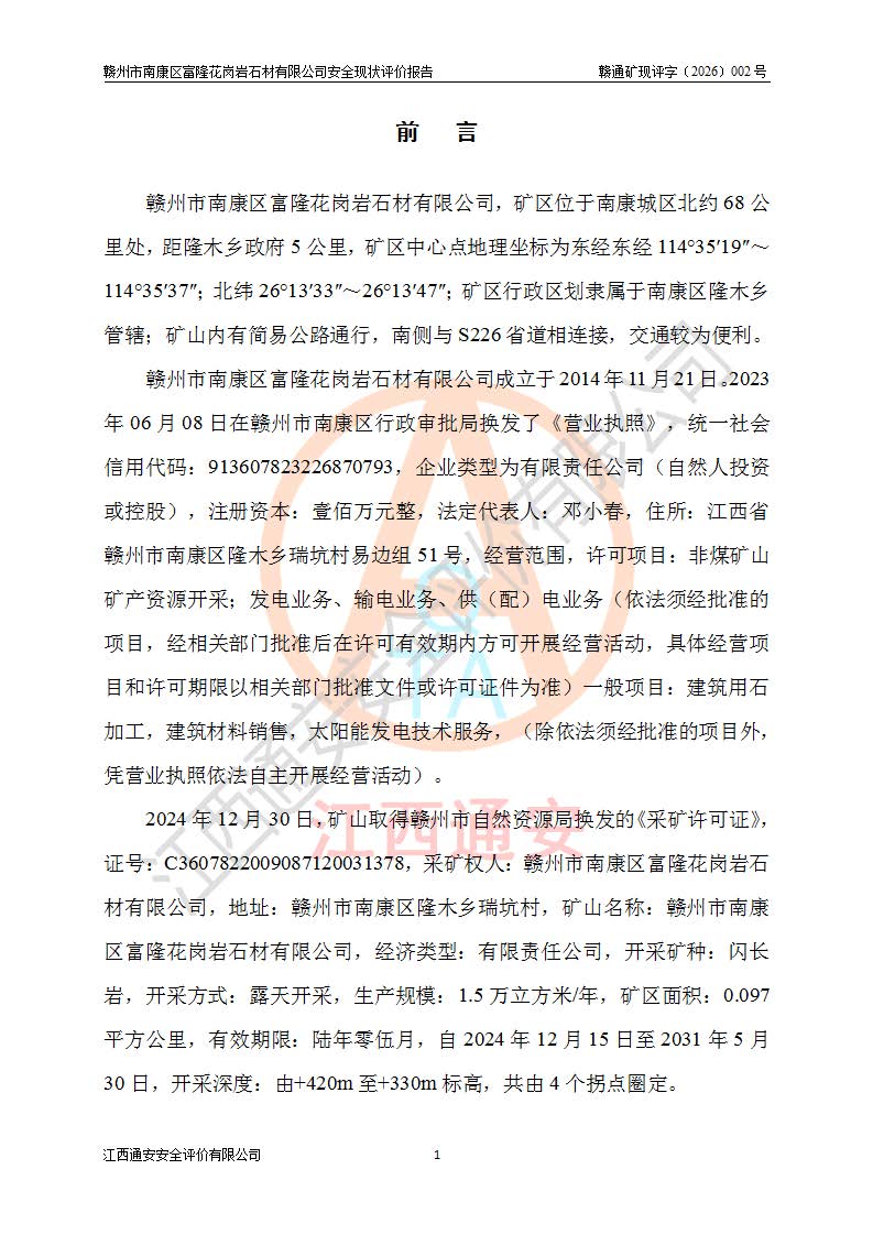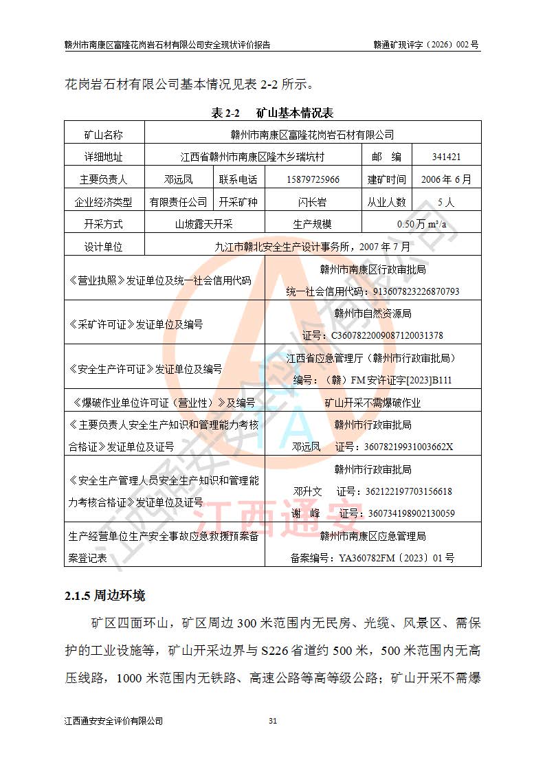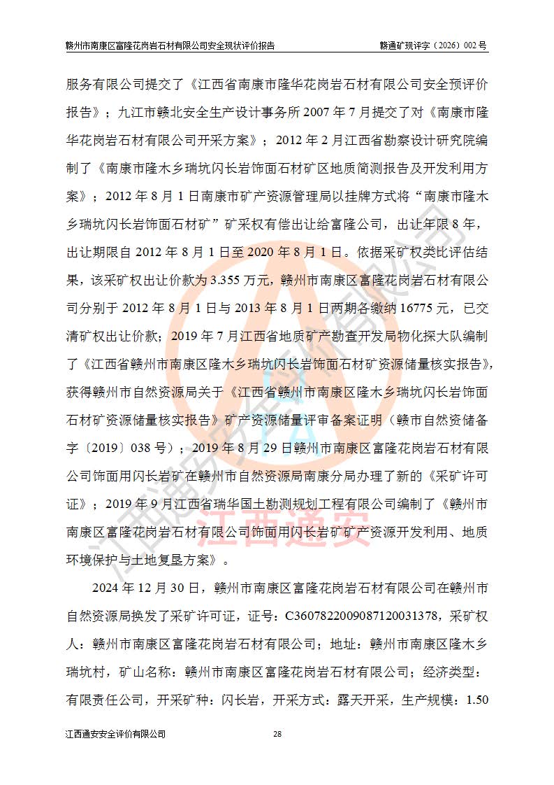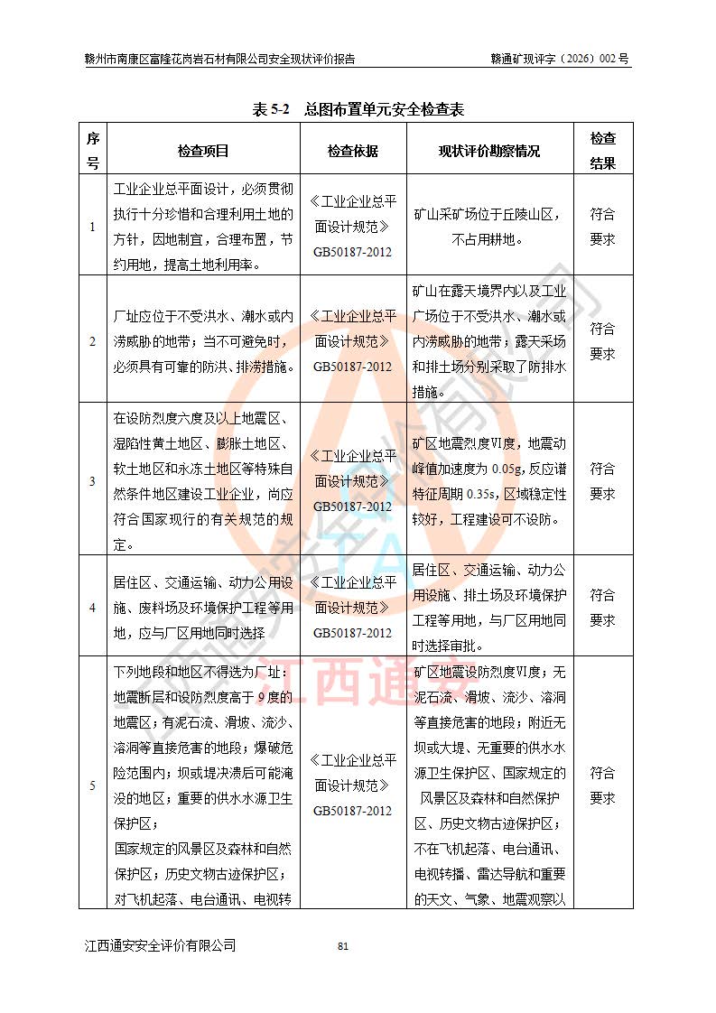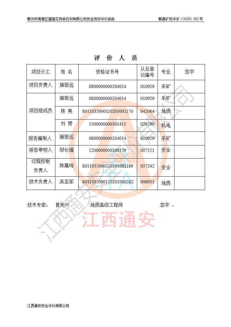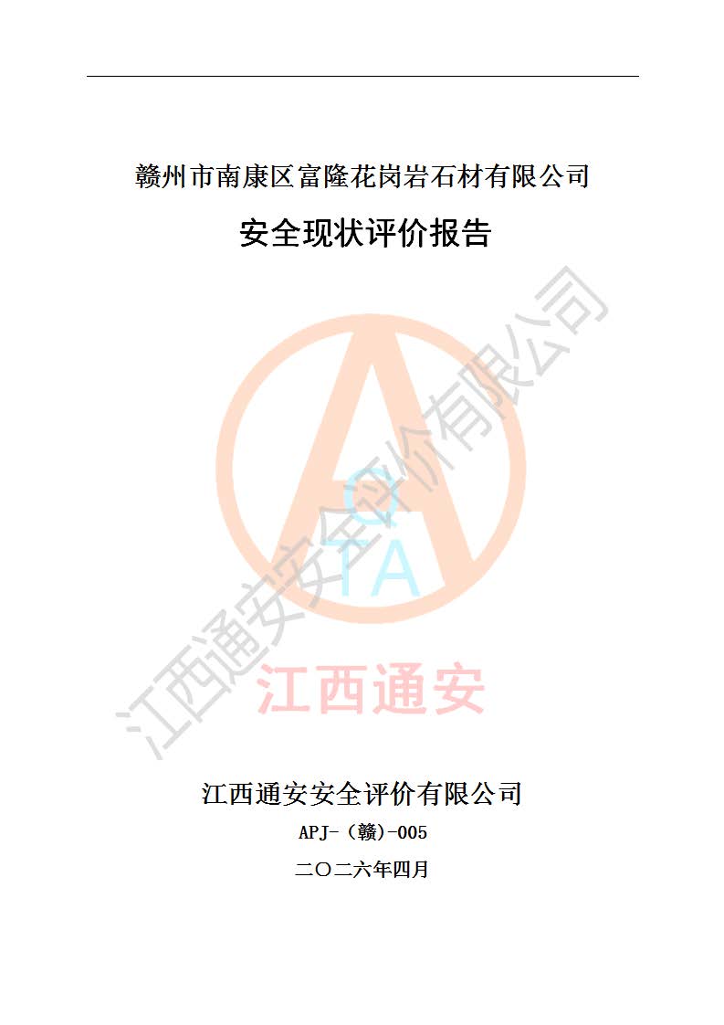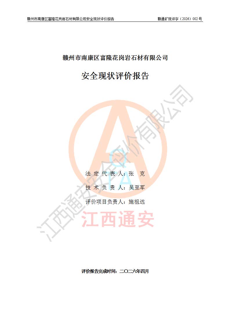 项目名称 | 赣州市南康区富隆花岗岩石材有限公司安全现状评价报告 | ||||