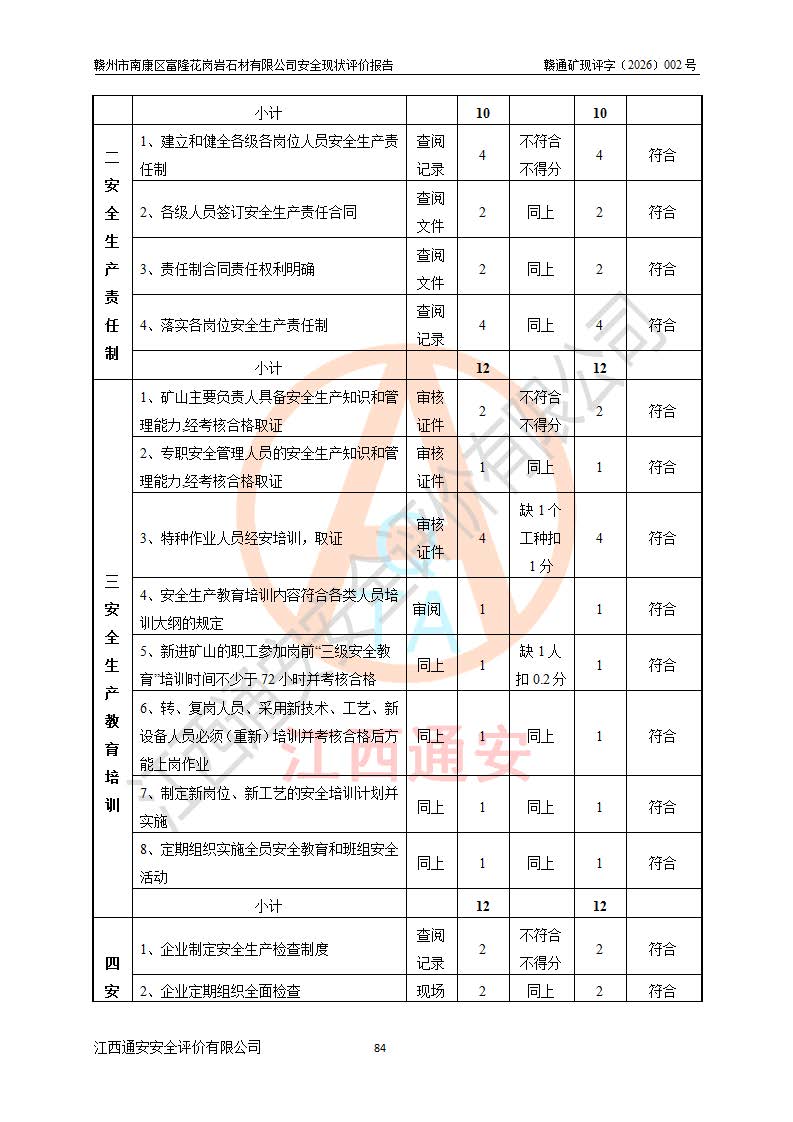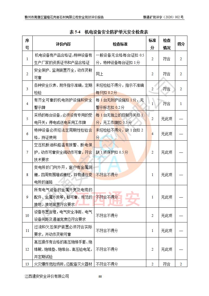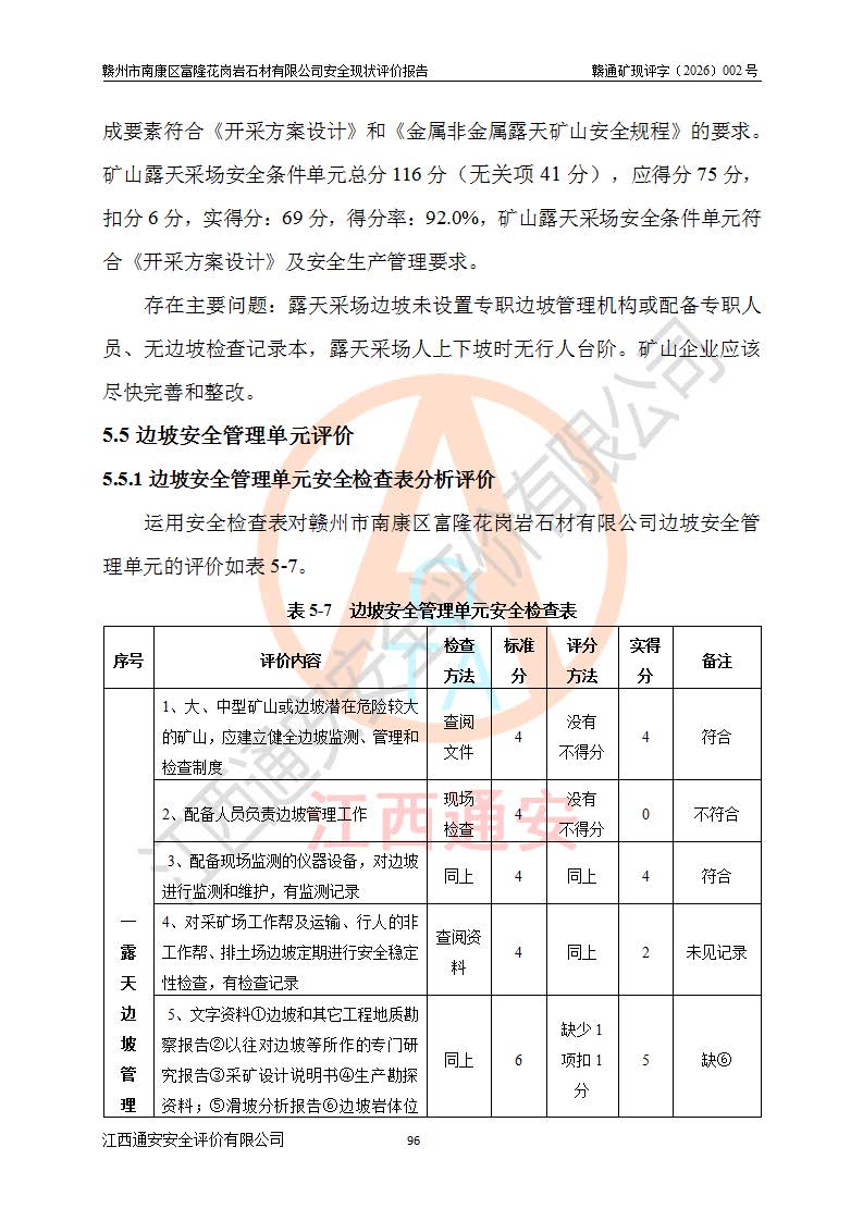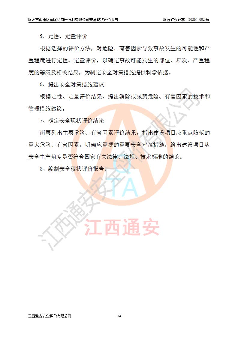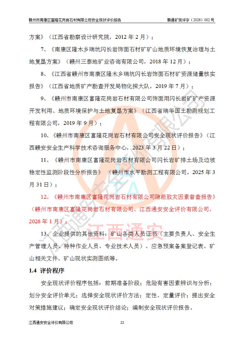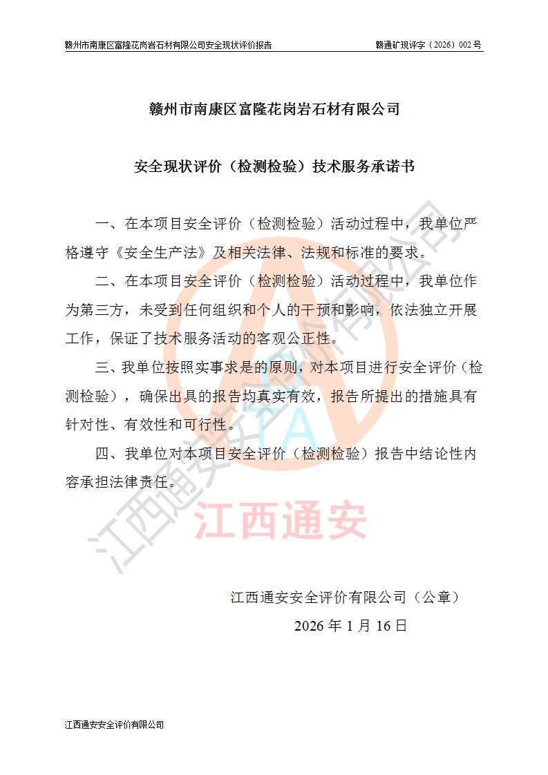 项目名称 | 赣州市南康区富隆花岗岩石材有限公司安全现状评价报告 | ||||